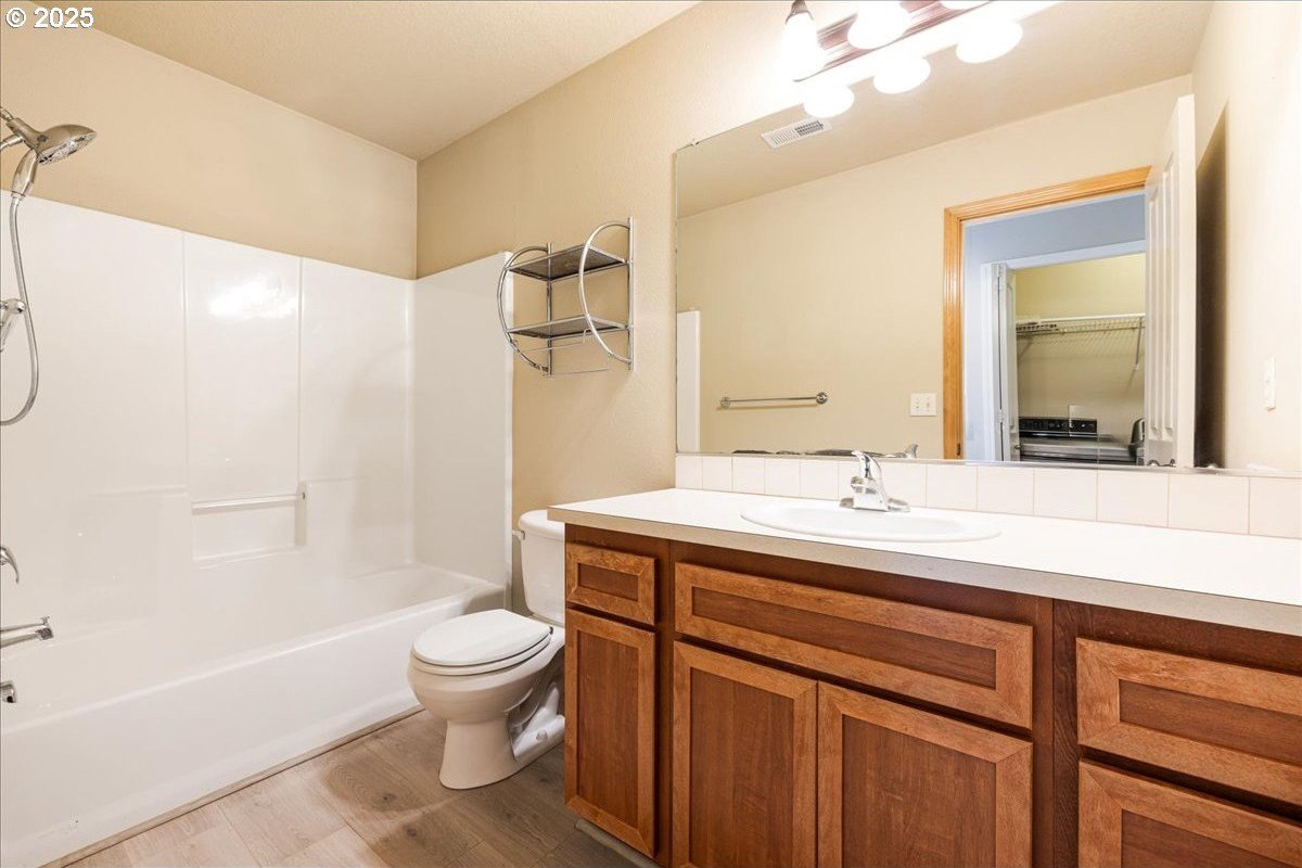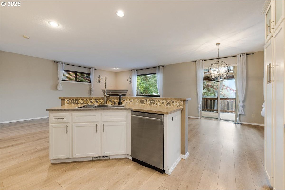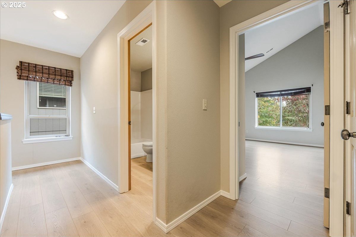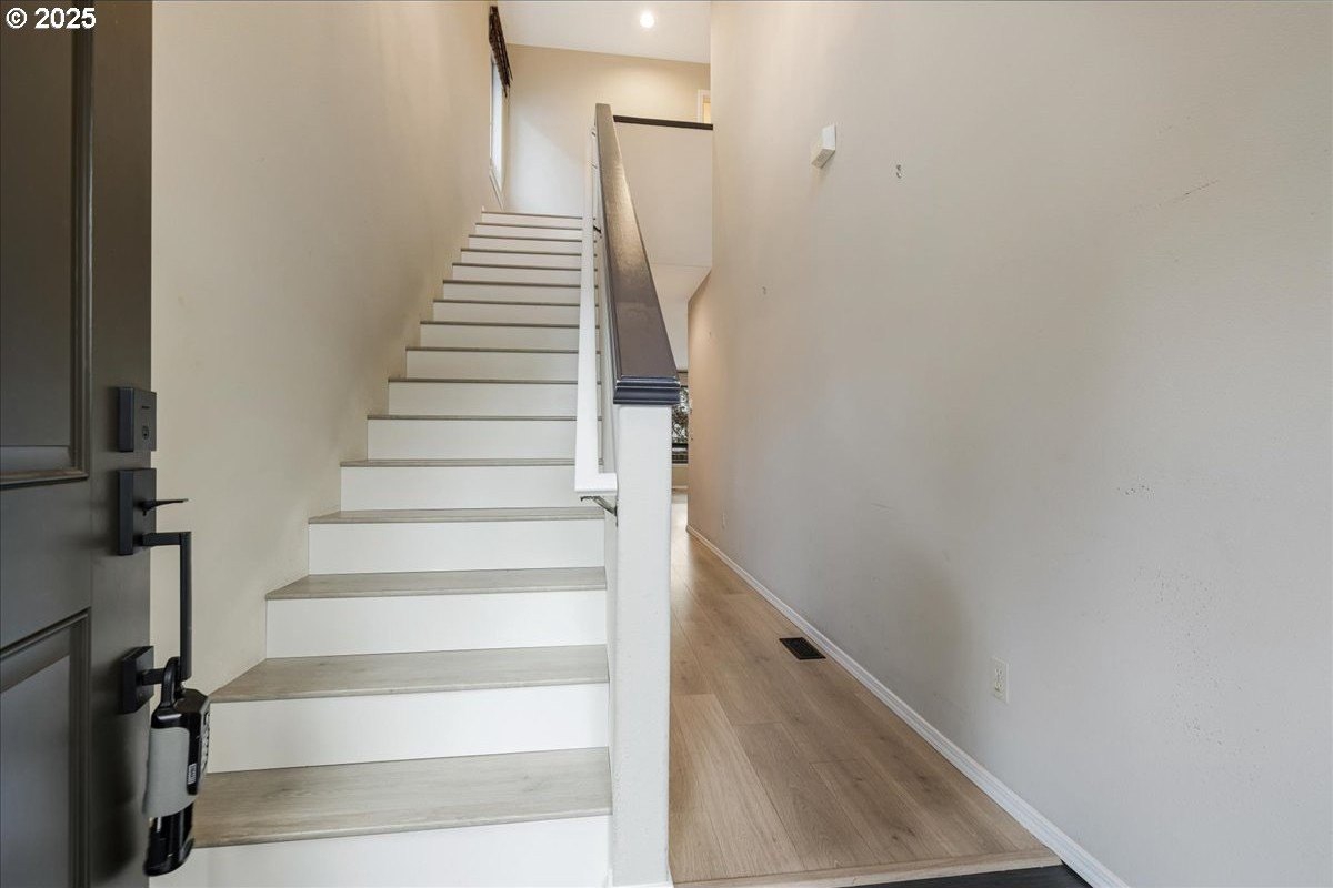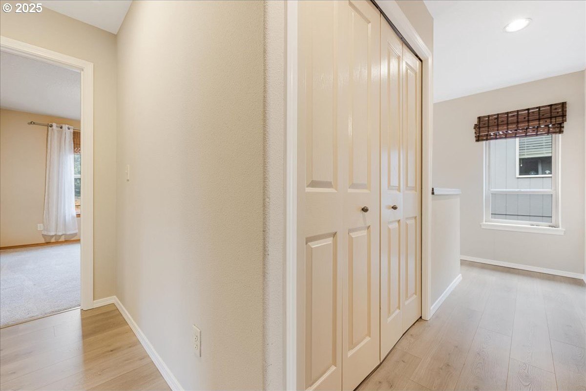 Darling 4-bedroom, 2.5 bath home! You’ll love the easy flow of this home’s open layout with 9-foot ceilings and laminate floors throughout the main level. The living room has a cozy corner gas fireplace, and the dining area opens to a covered back deck, perfect for year-round grilling or morning coffee. The kitchen offers plenty of workspace with a center island, classic white cabinets, and stainless-steel appliances, including the fridge, gas range, and dishwasher, which are all included with the home. A half bath and attached two-car garage complete the main level. Upstairs you'll find four bedrooms, two full baths, and a laundry closet with washer and dryer included. The primary suite feels spacious and bright with vaulted ceilings, dual closets (one walk-in), and a private bath featuring a double-sink vanity and walk-in shower. Outside, the fully fenced backyard and covered deck make it easy to enjoy the outdoors in any season. This one’s move-in ready and ready for it's next chapter. Come take a look!