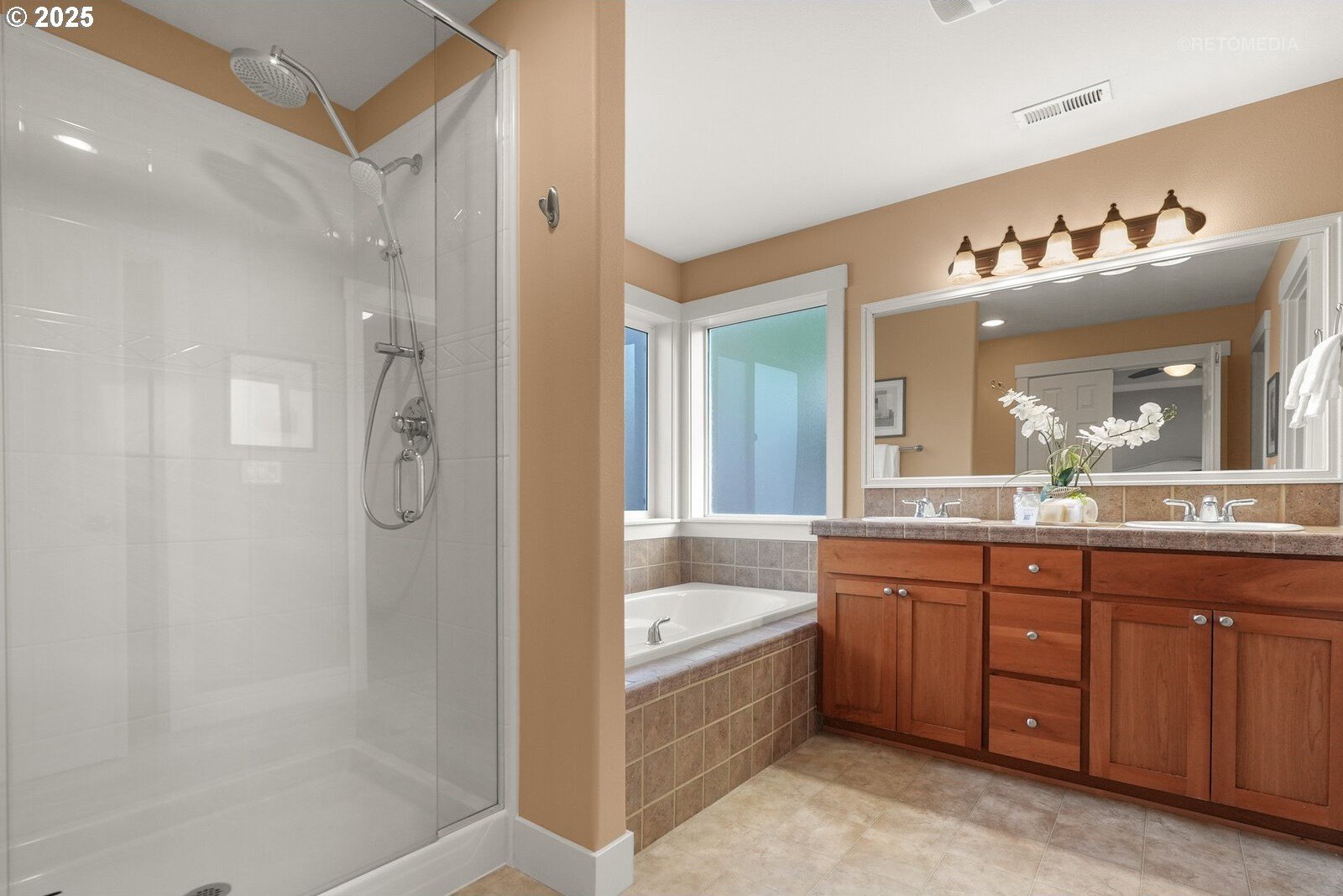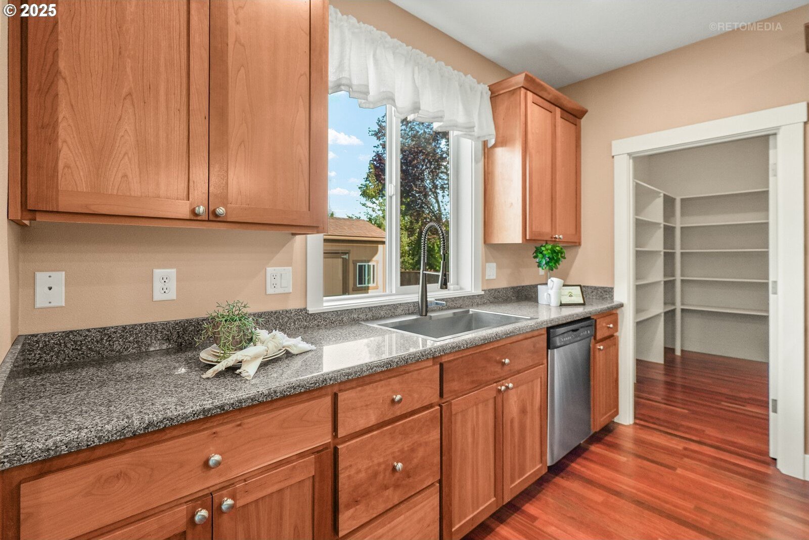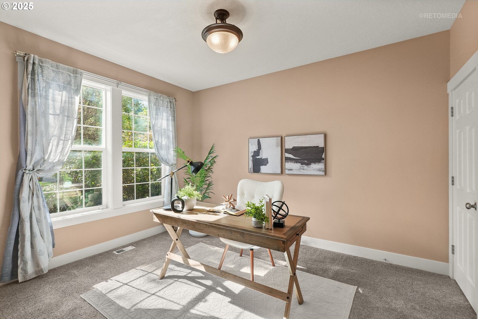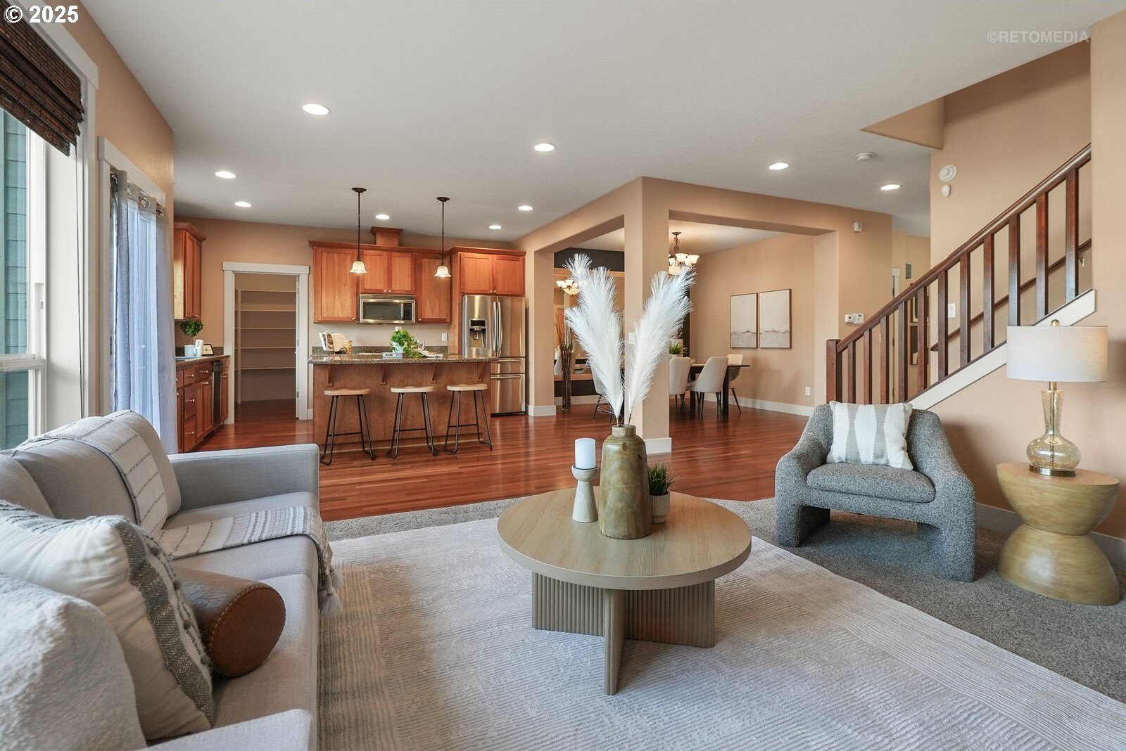 Beautifully designed and ideally located, this Sherwood home offers a functional and versatile floor plan with room for everyone. Featuring 4 bedrooms upstairs, plus a large bonus (or 5th bedroom), an open loft, and a main-level office or guest suite, the layout provides exceptional flexibility. The kitchen shines with cherry cabinetry, rich-toned hardwoods, slab granite countertops, stainless steel appliances, a walk-in pantry, and a large island that flows into the dining and great room with access to the paved outdoor living area... perfect for easy maintenance and year-round enjoyment. Upstairs, an open bonus loft leads to additional rooms. The spacious primary suite features tray ceilings, dual vanity bath, soaking tub, and walk-in closet with built-ins. Just steps to Sherwood Middle School, wine bar, local salon, gym, parks, walking paths, and Old Town Sherwood, offering dining and local amenities for all ages, you’ll quickly see why you’ll love living here!