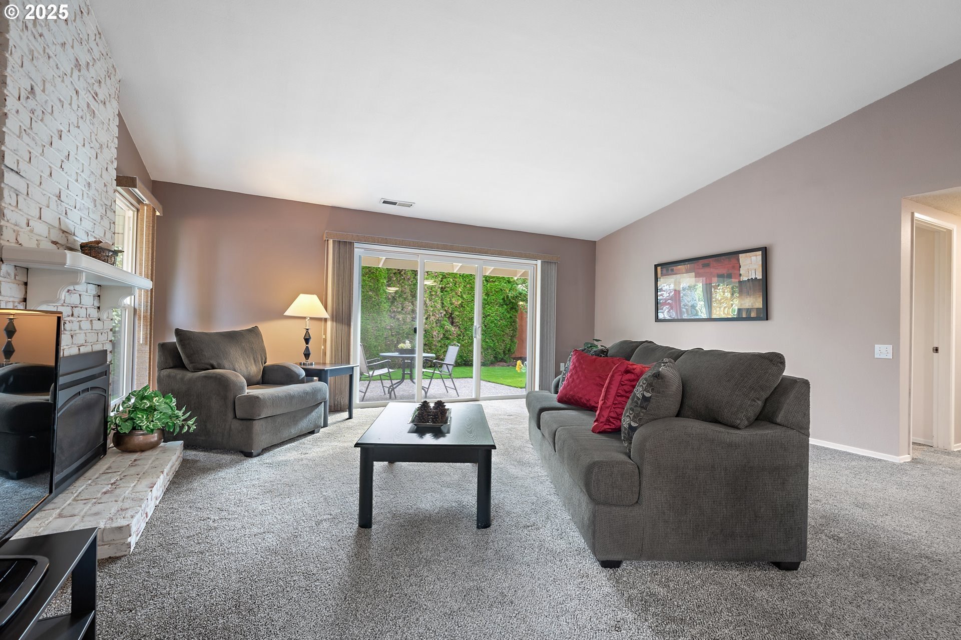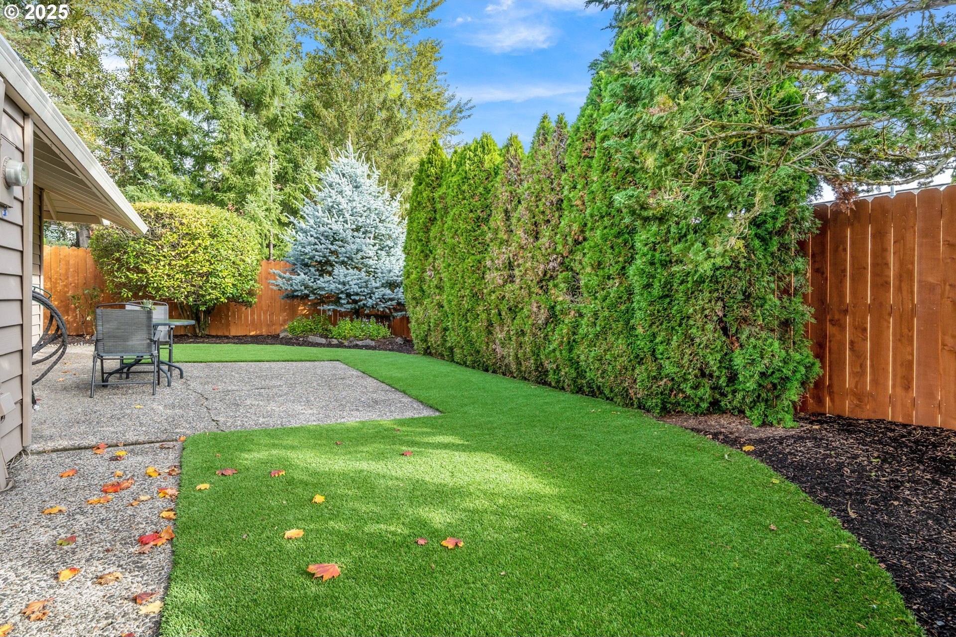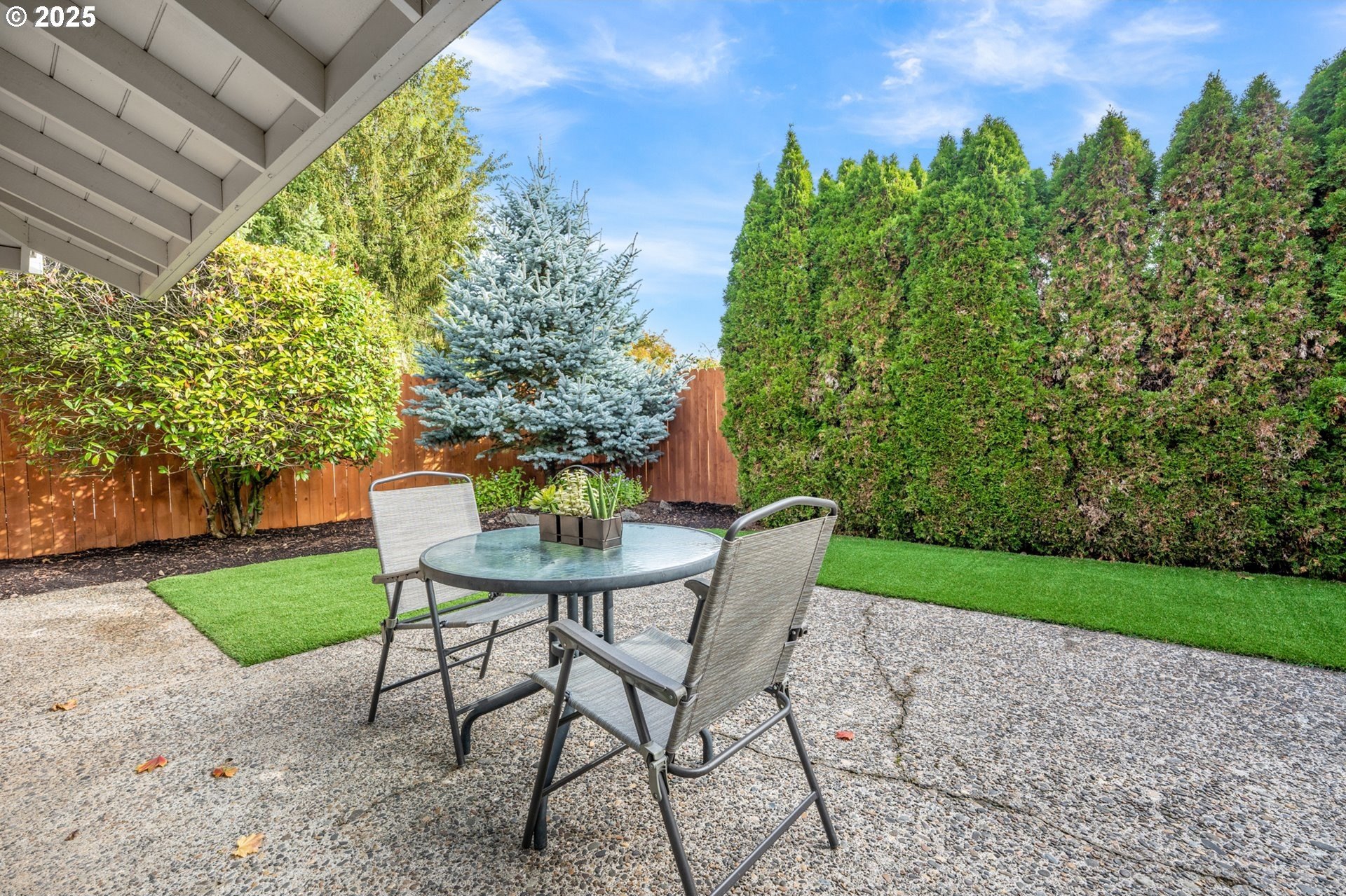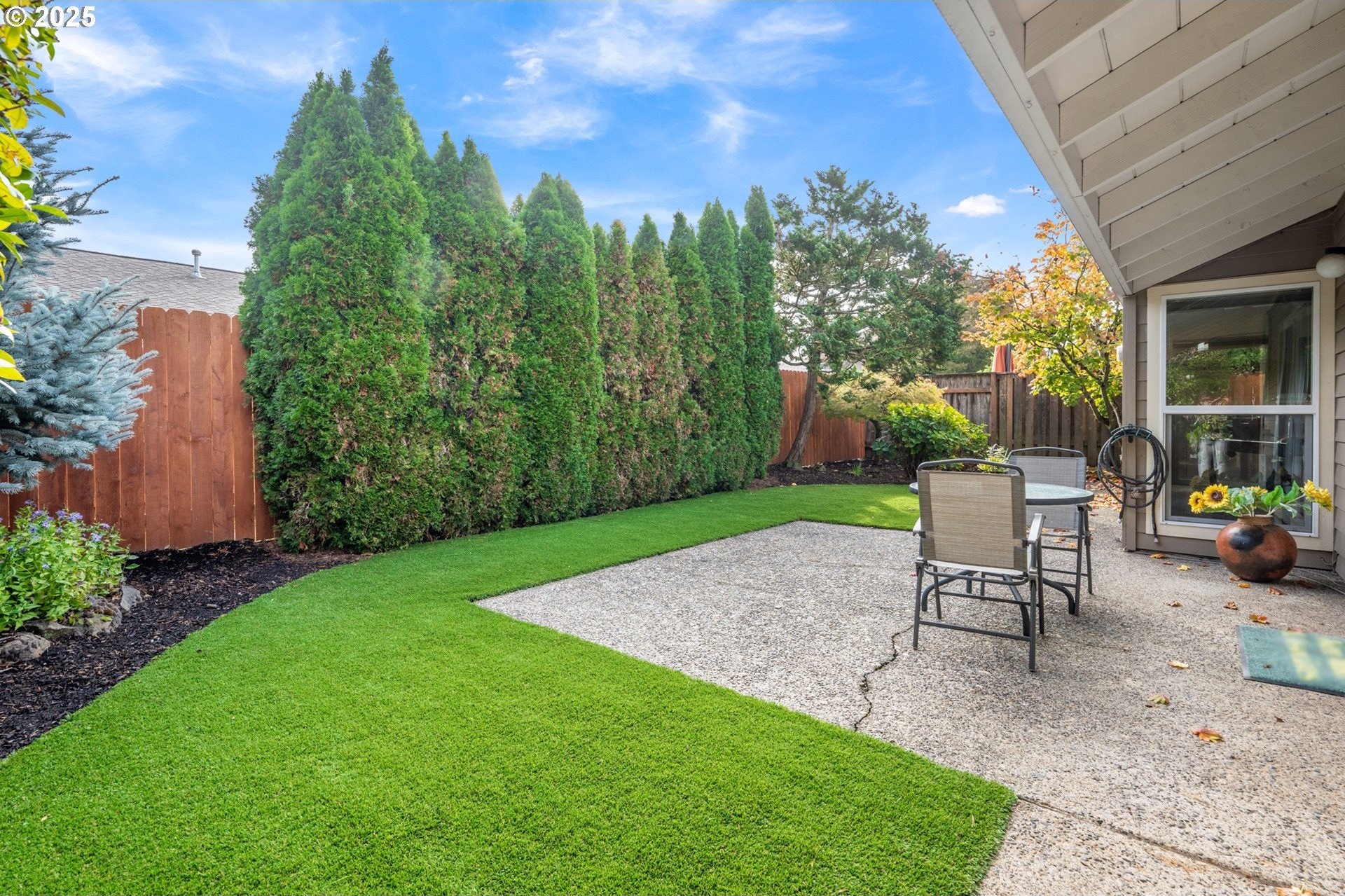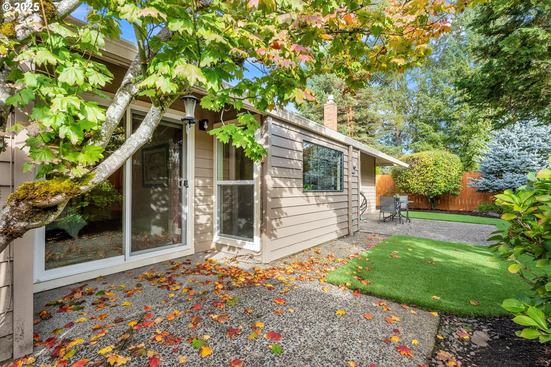 Welcome to the exclusive Garden Villa section of King City Civic Association, where easy living meets vibrant community. This beautifully maintained 1365 sq ft, two-bedroom, two-bath attached home offers a lifestyle as comfortable as it is convenient—and absolutely no stairs! Step into the private front courtyard, featuring a charmingly refurbished brick wall, making it the perfect spot for morning coffee. Inside, the vaulted ceiling living room feels light and airy, anchored by a cozy gas fireplace insert. The remodeled kitchen is a delight with butcher block countertops, soft-close cabinetry, a newer refrigerator and gas range, plus a cheerful eating nook. Tile floors add durability and style throughout. The primary suite is designed for comfort, featuring a walk-in closet and a walk-in shower. The guest bedroom and second bathroom provide space for visitors or hobbies. A fenced backyard with newer artificial turf invites easy-care outdoor living, enhanced by sprinklers positioned at the front, back, and sides. Practical updates, such as vinyl windows and sliders, an updated electrical panel, and a new fence, add peace of mind. This home and property features four outdoor living areas....the front courtyard, patio off the primary bedroom, another off the living room and the last off the dining room.Best of all, this home is just a short stroll from the Crown Center Clubhouse, soon to open its new indoor pool and gym. The King City Civic Association offers an unparalleled 55+ lifestyle with a golf course, outdoor pool, pro shop, croquet and lawn bowling green, woodworking shop, library, and dozens of clubs to keep you as busy as you wish. Wonderfully located near full-service shopping, dining, health services, and easy highway access, this home is more than just a place to live—it’s your gateway to comfort, convenience, and community. Don’t miss the chance to begin your next chapter in one of Oregon’s most vibrant, award-winning active adult communities!