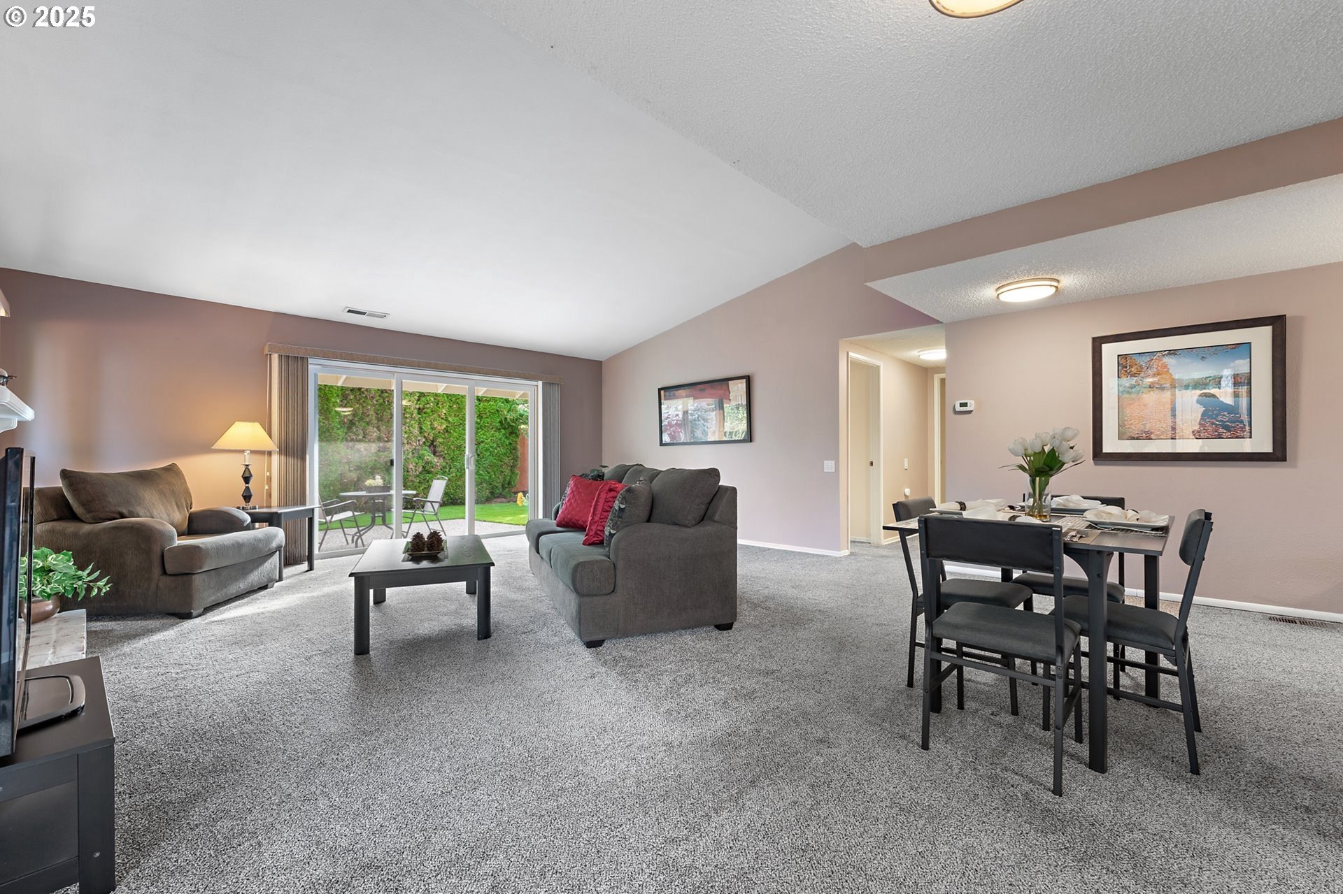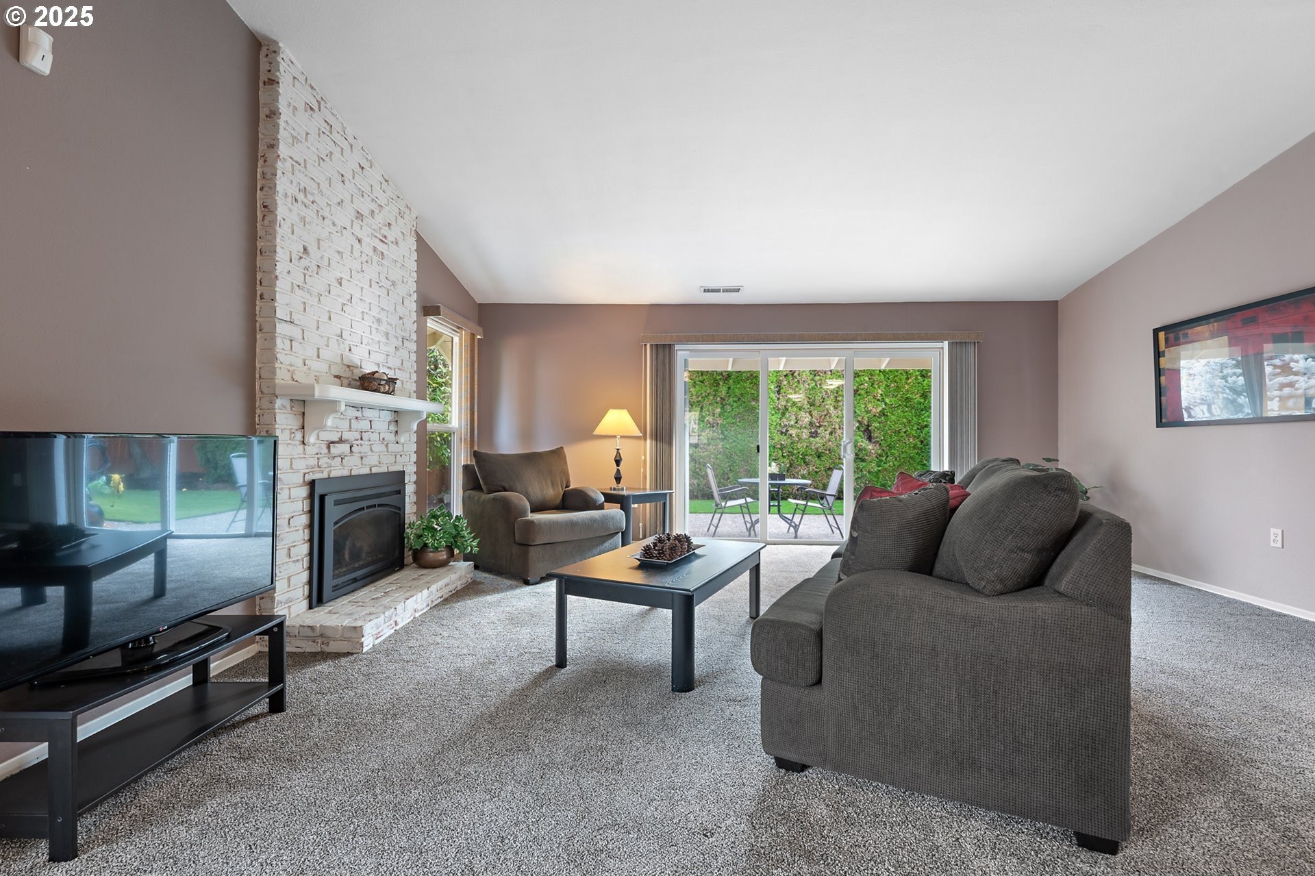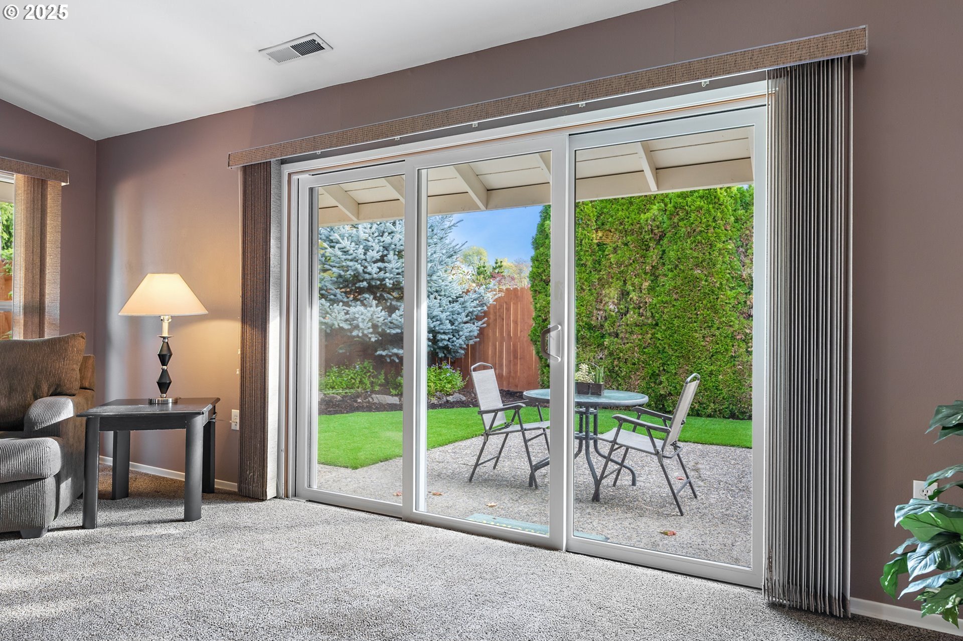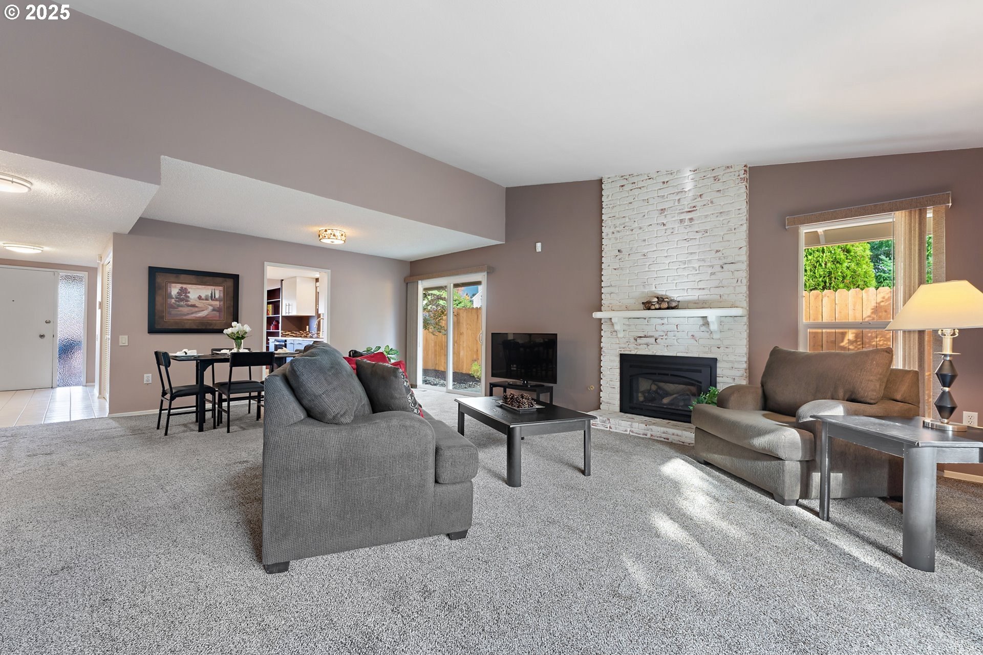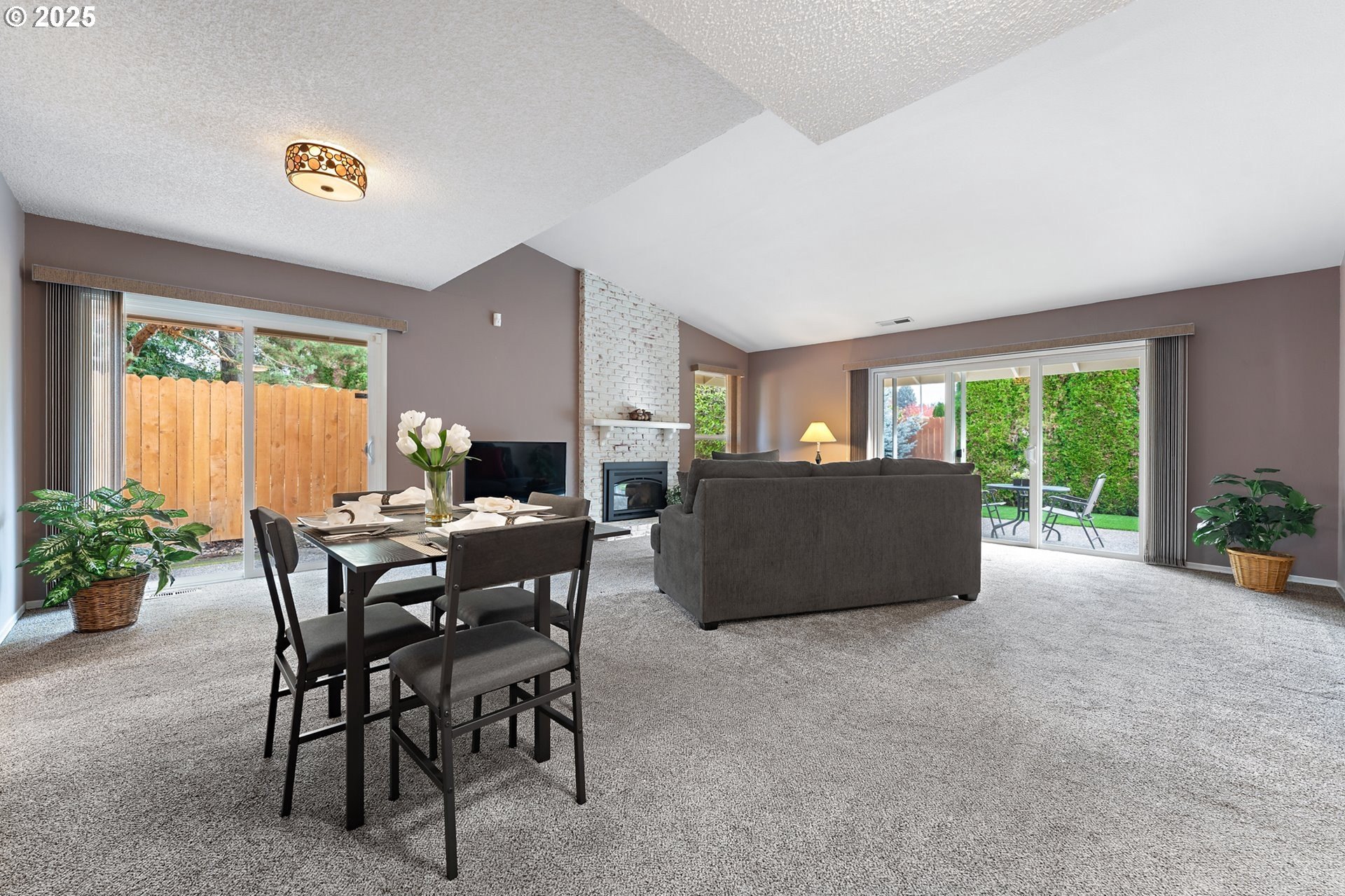 Welcome to the exclusive Garden Villa section of King City Civic Association, where easy living meets vibrant community. This beautifully maintained 1365 sq ft, two-bedroom, two-bath attached home offers a lifestyle as comfortable as it is convenient—and absolutely no stairs! Step into the private front courtyard, featuring a charmingly refurbished brick wall, making it the perfect spot for morning coffee. Inside, the vaulted ceiling living room feels light and airy, anchored by a cozy gas fireplace insert. The remodeled kitchen is a delight with butcher block countertops, soft-close cabinetry, a newer refrigerator and gas range, plus a cheerful eating nook. Tile floors add durability and style throughout. The primary suite is designed for comfort, featuring a walk-in closet and a walk-in shower. The guest bedroom and second bathroom provide space for visitors or hobbies. A fenced backyard with newer artificial turf invites easy-care outdoor living, enhanced by sprinklers positioned at the front, back, and sides. Practical updates, such as vinyl windows and sliders, an updated electrical panel, and a new fence, add peace of mind. This home and property features four outdoor living areas....the front courtyard, patio off the primary bedroom, another off the living room and the last off the dining room.Best of all, this home is just a short stroll from the Crown Center Clubhouse, soon to open its new indoor pool and gym. The King City Civic Association offers an unparalleled 55+ lifestyle with a golf course, outdoor pool, pro shop, croquet and lawn bowling green, woodworking shop, library, and dozens of clubs to keep you as busy as you wish. Wonderfully located near full-service shopping, dining, health services, and easy highway access, this home is more than just a place to live—it’s your gateway to comfort, convenience, and community. Don’t miss the chance to begin your next chapter in one of Oregon’s most vibrant, award-winning active adult communities!