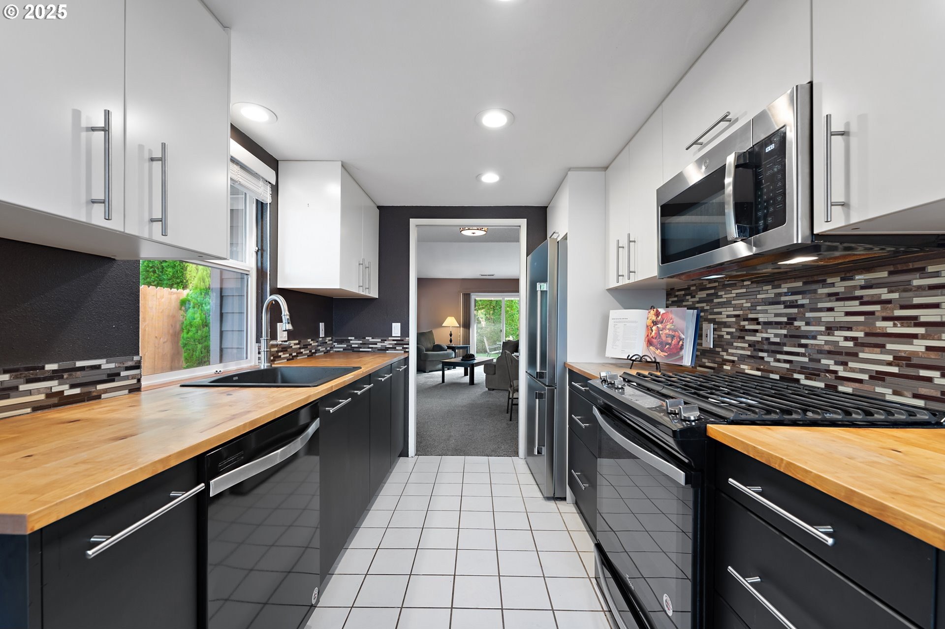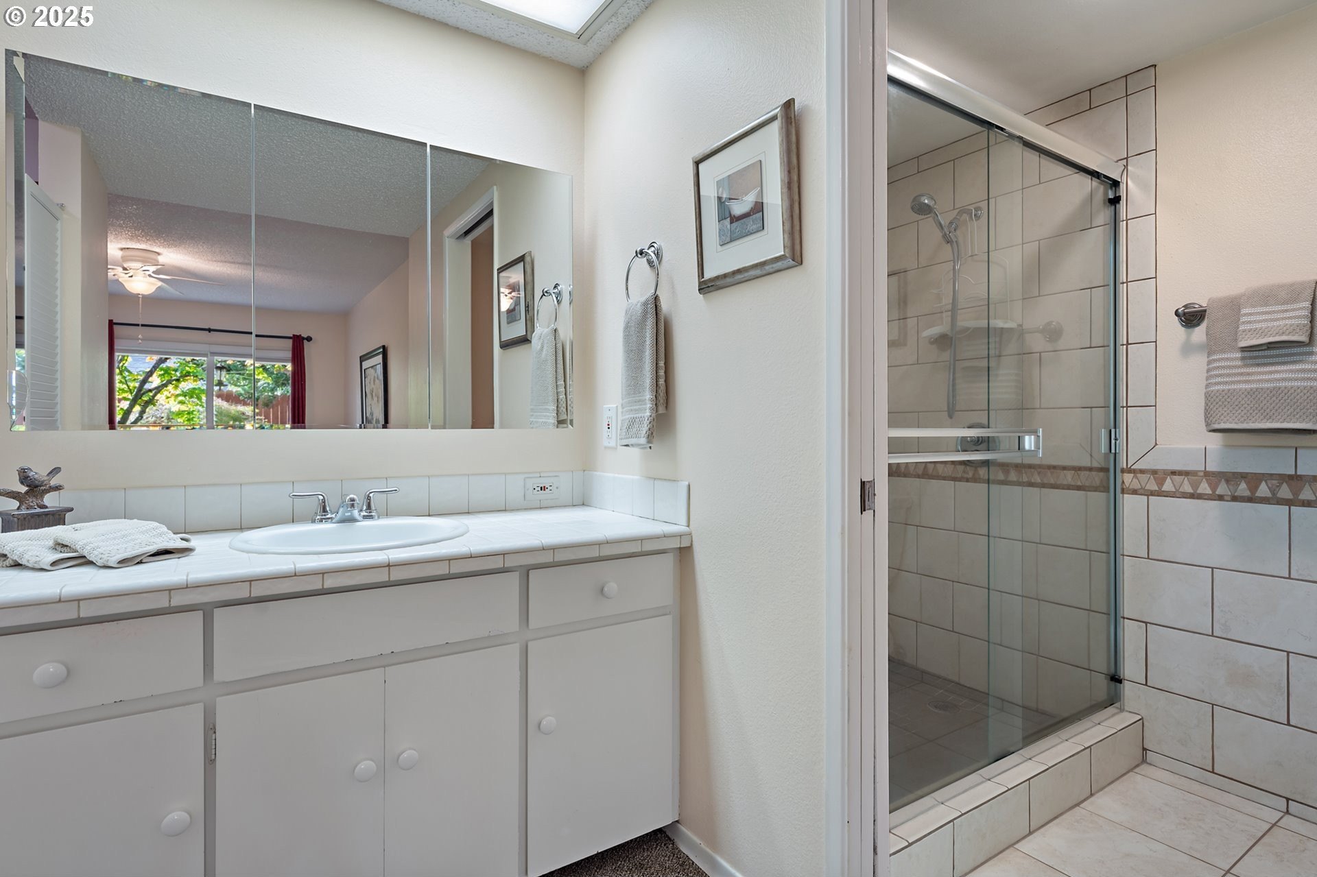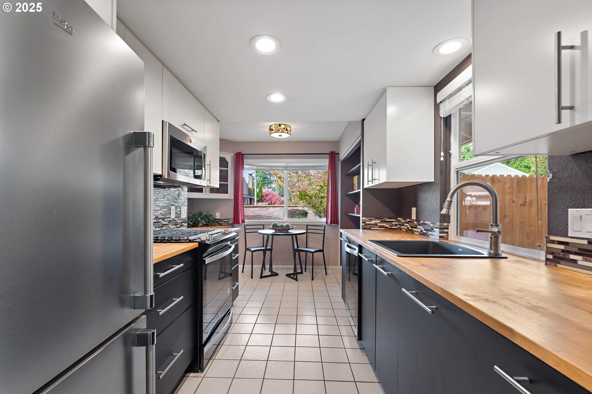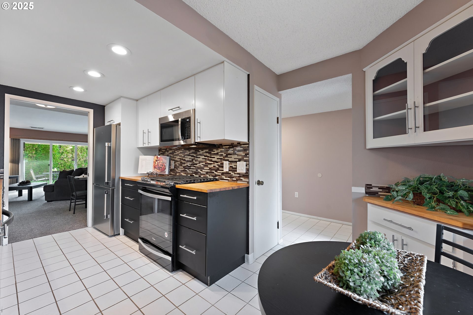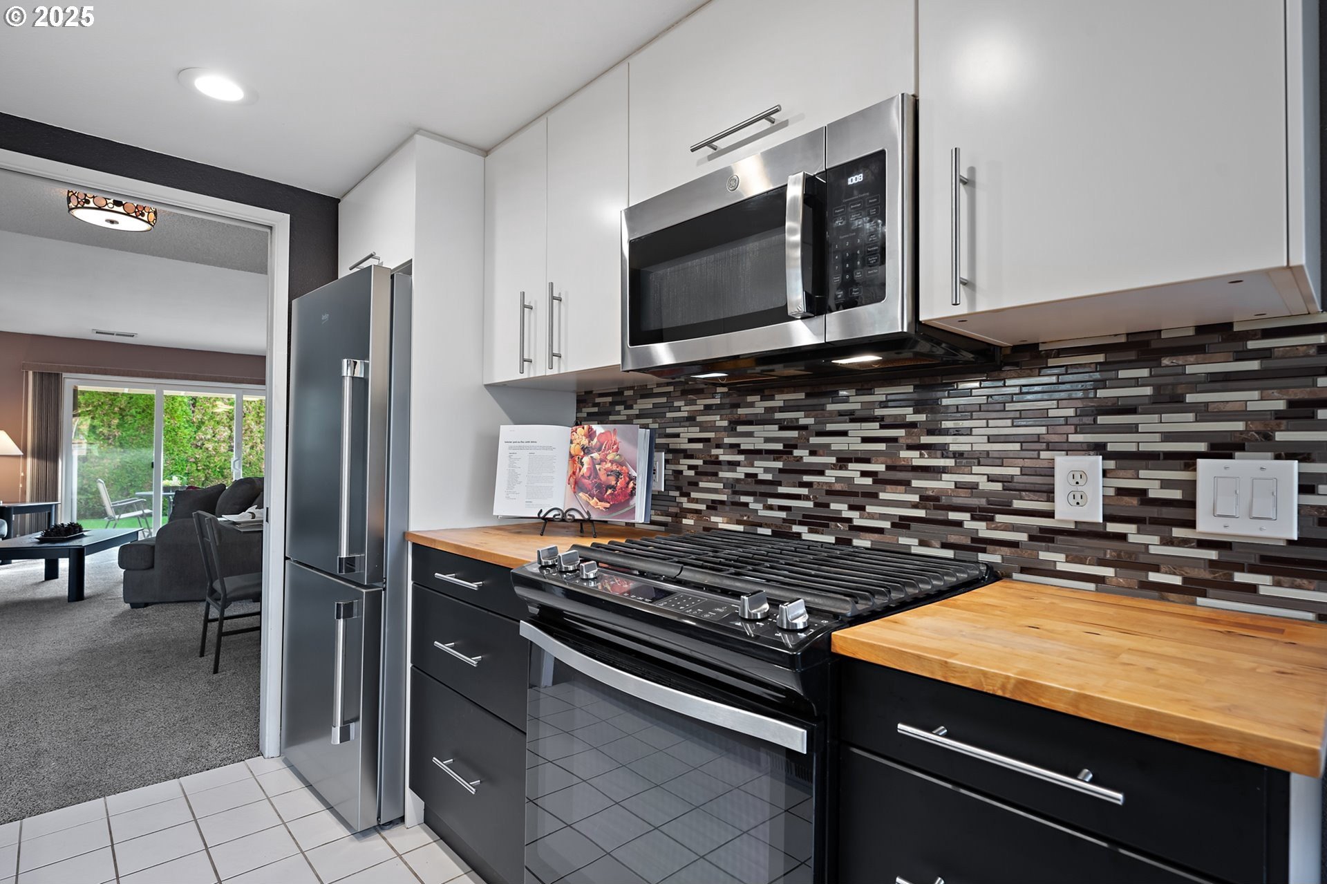 Welcome to the exclusive Garden Villa section of King City Civic Association, where easy living meets vibrant community. This beautifully maintained 1365 sq ft, two-bedroom, two-bath attached home offers a lifestyle as comfortable as it is convenient—and absolutely no stairs! Step into the private front courtyard, featuring a charmingly refurbished brick wall, making it the perfect spot for morning coffee. Inside, the vaulted ceiling living room feels light and airy, anchored by a cozy gas fireplace insert. The remodeled kitchen is a delight with butcher block countertops, soft-close cabinetry, a newer refrigerator and gas range, plus a cheerful eating nook. Tile floors add durability and style throughout. The primary suite is designed for comfort, featuring a walk-in closet and a walk-in shower. The guest bedroom and second bathroom provide space for visitors or hobbies. A fenced backyard with newer artificial turf invites easy-care outdoor living, enhanced by sprinklers positioned at the front, back, and sides. Practical updates, such as vinyl windows and sliders, an updated electrical panel, and a new fence, add peace of mind. This home and property features four outdoor living areas....the front courtyard, patio off the primary bedroom, another off the living room and the last off the dining room.Best of all, this home is just a short stroll from the Crown Center Clubhouse, soon to open its new indoor pool and gym. The King City Civic Association offers an unparalleled 55+ lifestyle with a golf course, outdoor pool, pro shop, croquet and lawn bowling green, woodworking shop, library, and dozens of clubs to keep you as busy as you wish. Wonderfully located near full-service shopping, dining, health services, and easy highway access, this home is more than just a place to live—it’s your gateway to comfort, convenience, and community. Don’t miss the chance to begin your next chapter in one of Oregon’s most vibrant, award-winning active adult communities!