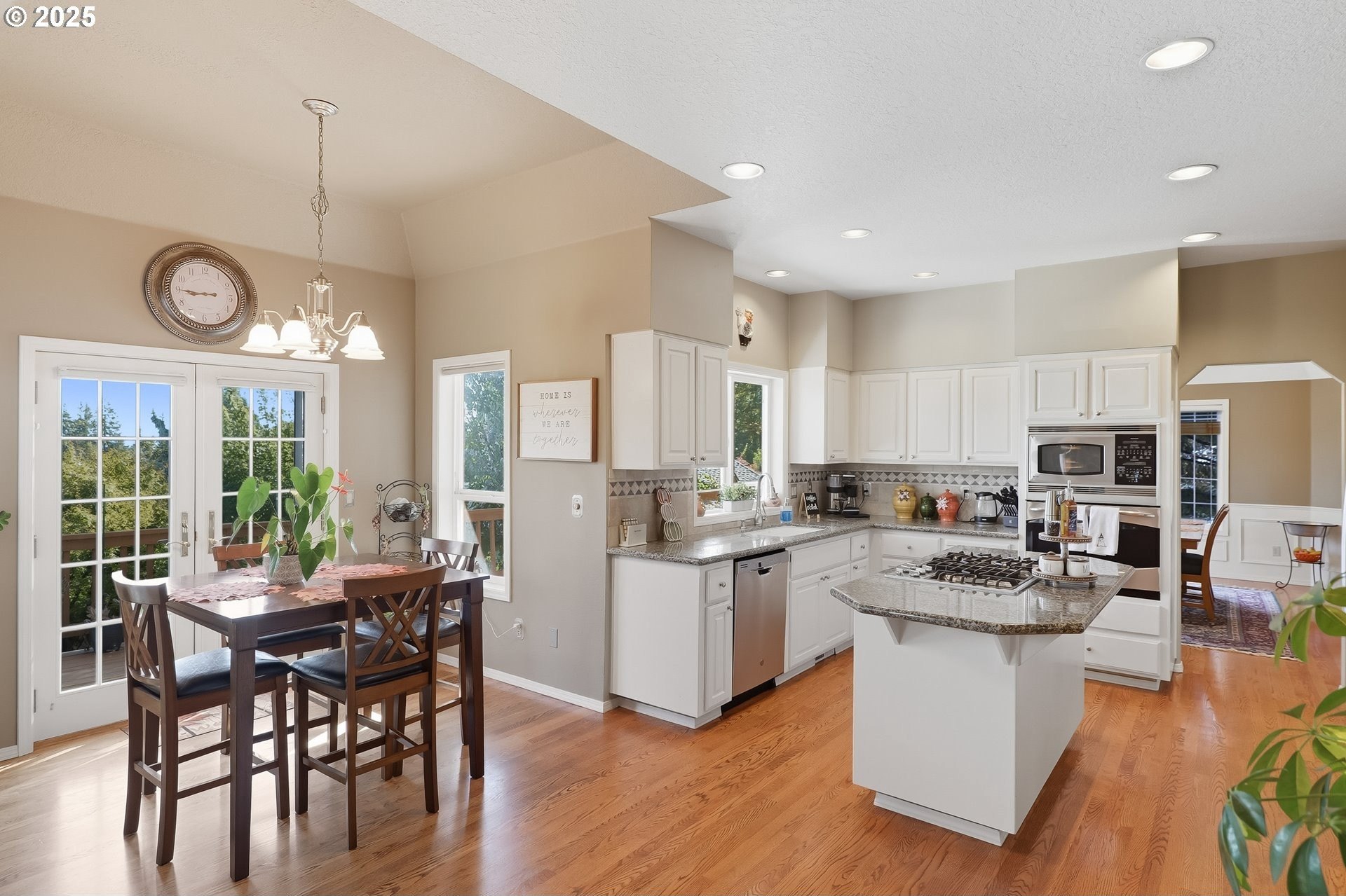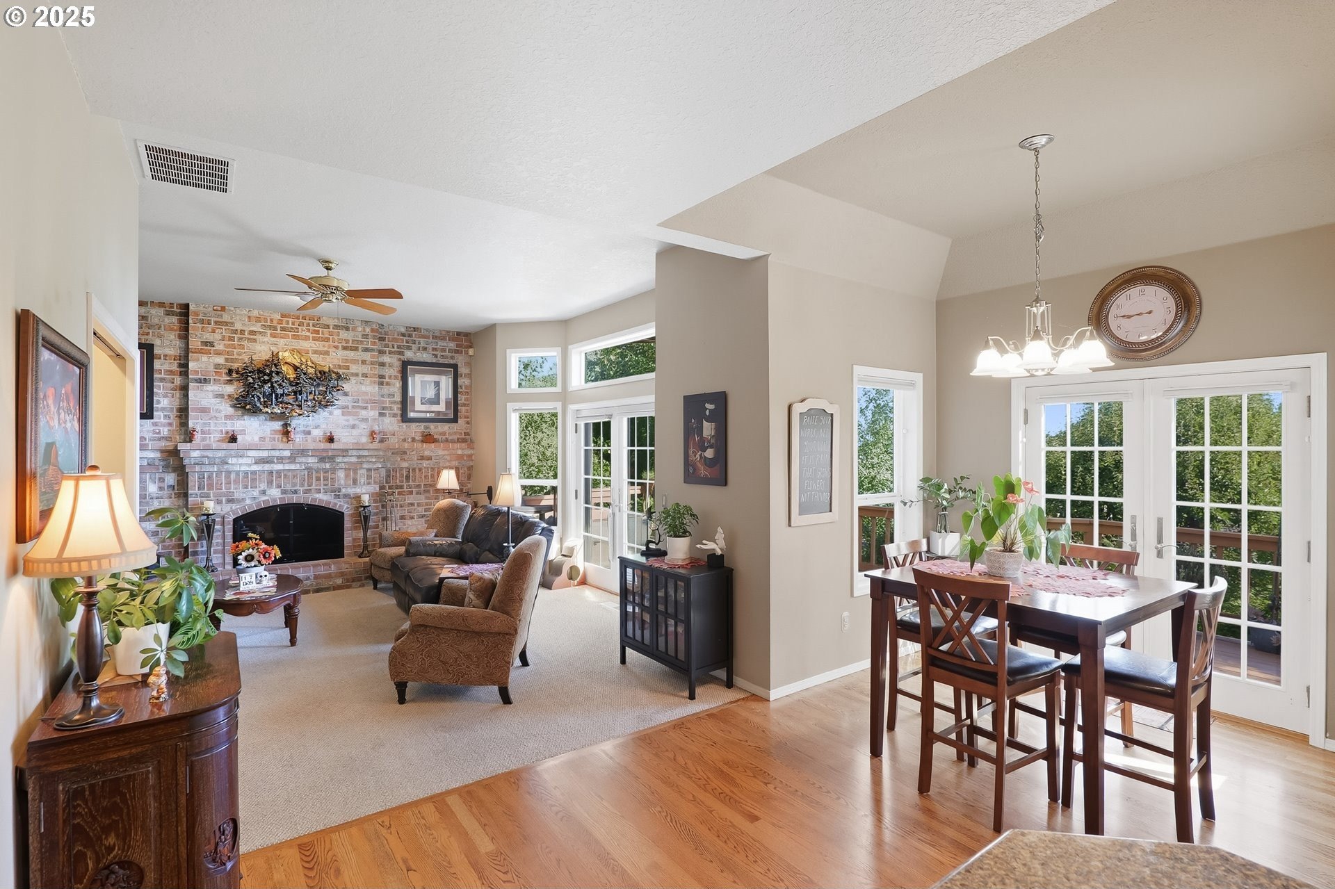Positioned high on Bull Mountain with commanding views of Mt. Hood, Mt. Bachelor and Mt. St Helens. This 3,527 sq ft traditional classic balances elevation, privacy, and refined design. Every element reflects intention—vaulted ceilings, rich hardwoods, and seamless transitions between formal and informal living spaces.The main level pairs scale with warmth: an updated kitchen with granite counters and stainless-steel appliances opens to a family room anchored by a wood-burning fireplace. A formal dining room, French-door office, and abundant natural light create spaces that live as beautifully as they photograph.Upstairs, four spacious bedrooms and a versatile bonus room continue the home’s rhythm and livability. The primary suite features a gas fireplace, soaking tub, double vanity, and unobstructed Mt. Hood views. Waking up to the mountain every morning is an experience that never fades.Below the main-level deck, a full workshop and storage area expand the home’s function without altering its clean design. Outdoors, a dog-friendly fenced backyard with two serene ponds provides an uncommon mix of tranquility and privacy. Recent updates include a 50-year roof (2019) and dual 50-gallon water heaters (2024). A three-car garage and mature landscaping complete the property’s confident presence.Located in one of Tigard’s most established enclaves, Bull Mountain rarely gives up a property with this kind of placement. 14362 SW 134th Dr represents the rare mix of architectural integrity, placement, and care that defines Bull Mountain living.