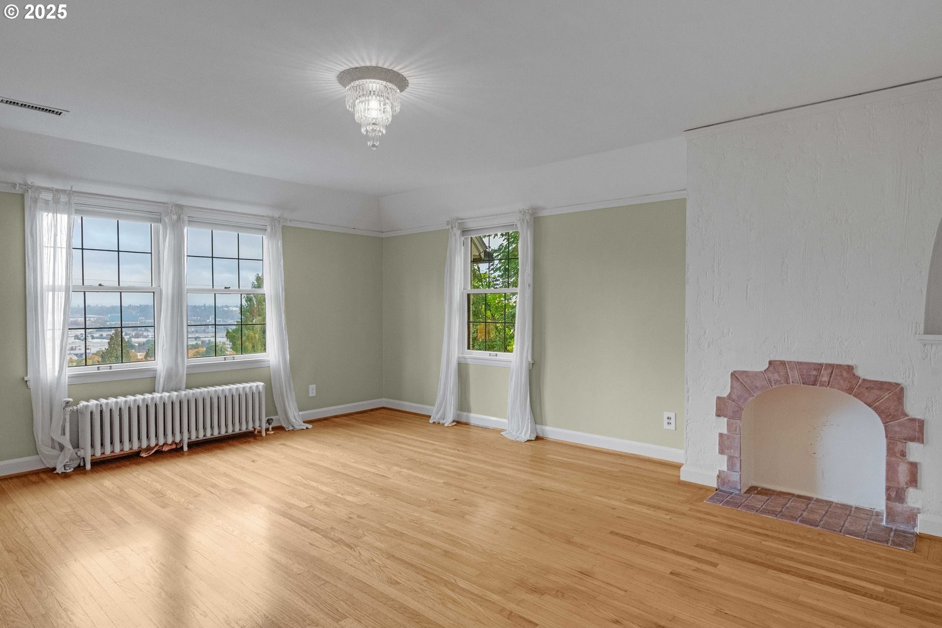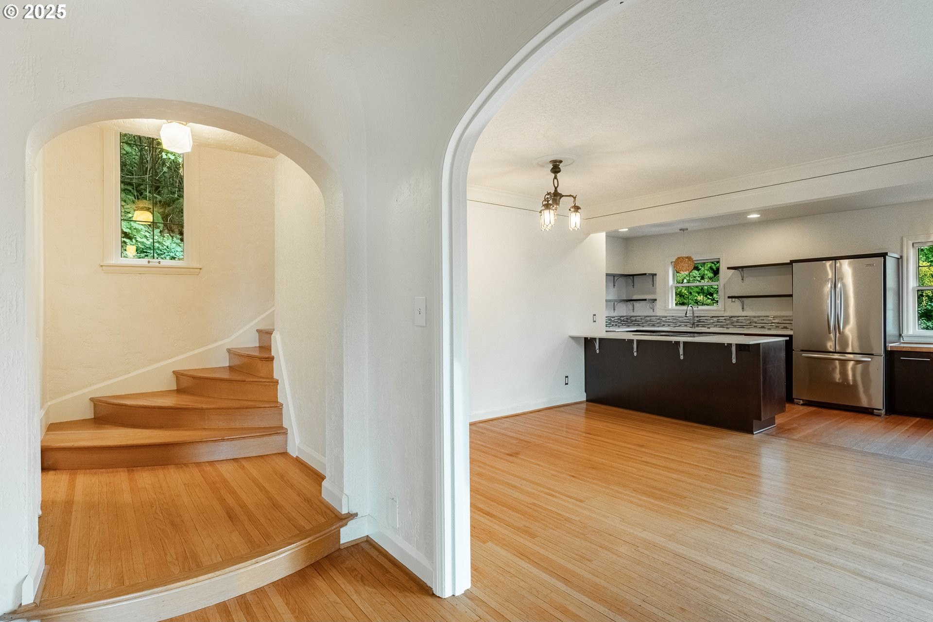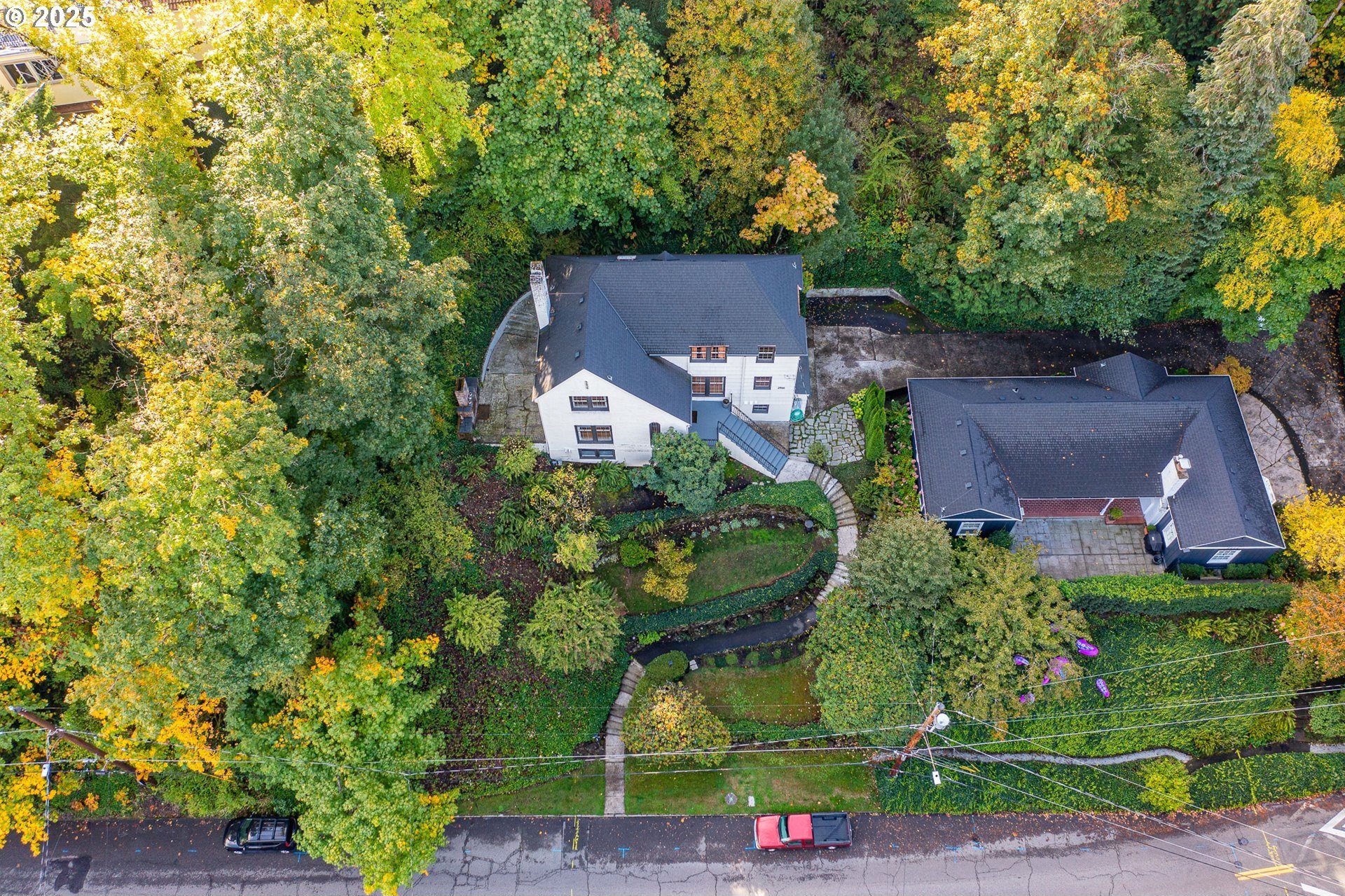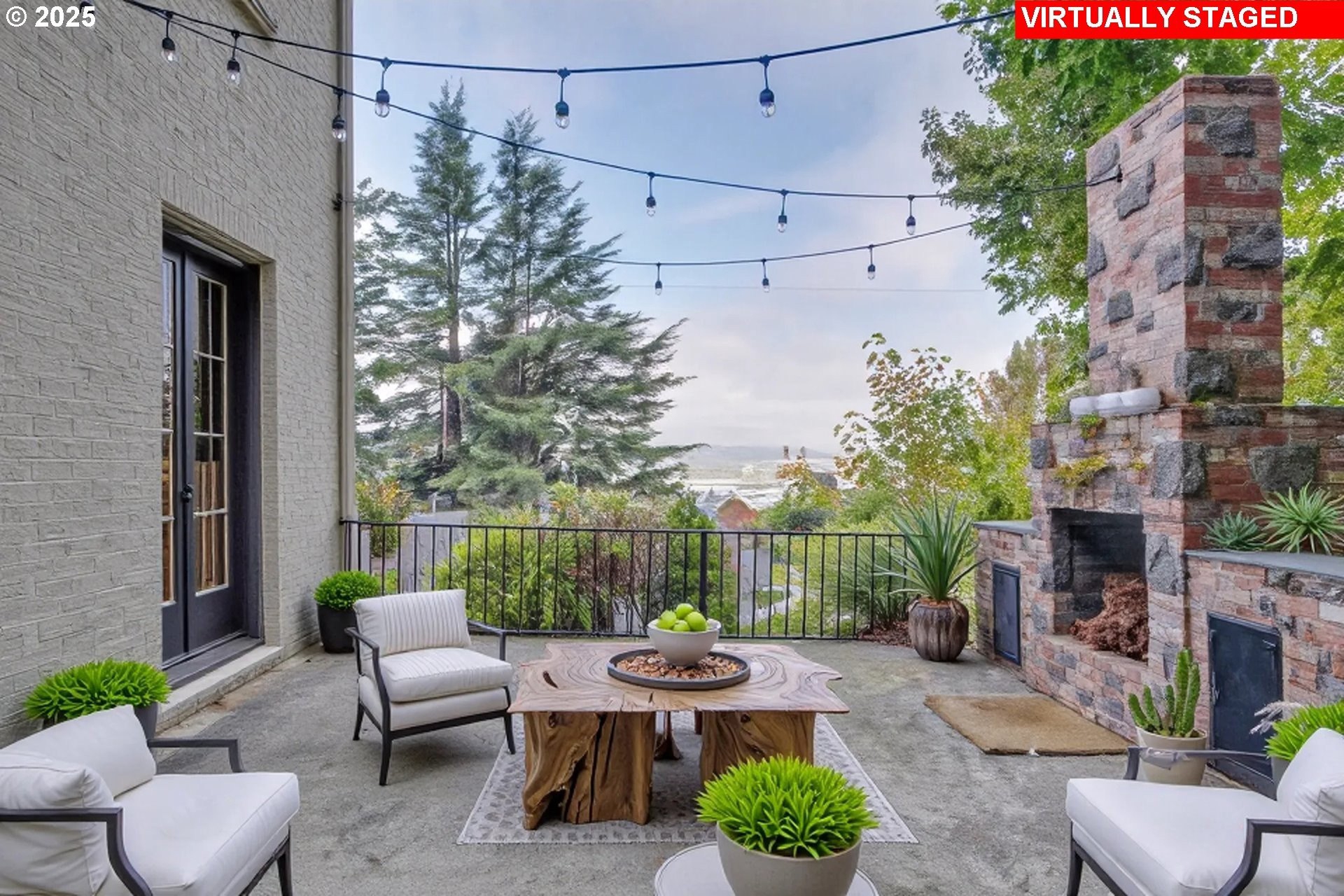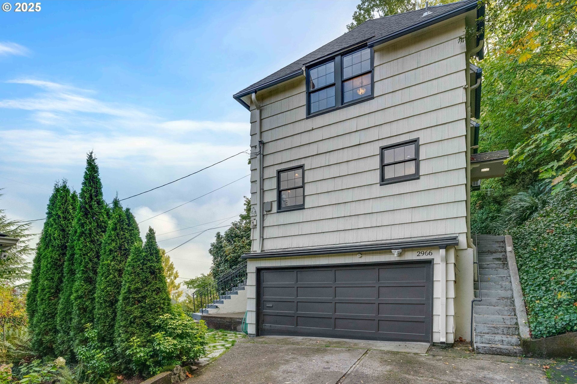 Perched on a picturesque Portland hillside with sweeping views, this modernized Tudor Revival home perfectly blends timeless charm with refined updates. A welcoming foyer opens to a gracious living room featuring a classic fireplace and elegant arched pass-throughs, highlighting the home’s character and craftsmanship. The updated kitchen is a showpiece with stainless steel appliances, an island for casual dining, and direct access to a private patio—complete with the original brick wood-burning fireplace for cozy outdoor entertaining. A dining area off the kitchen and a convenient half bath complete the main floor. Upstairs, three light-filled bedrooms include an expansive primary suite, with a beautifully updated full bath in the hallway. The lower level offers a guest bedroom with en suite bath, a spacious laundry room, generous storage and utility area, and direct entry to the attached garage. Combining historic appeal with modern livability, this hillside retreat is truly one of Portland’s hidden gems. [Home Energy Score = 4. HES Report at https://rpt.greenbuildingregistry.com/hes/OR10099864]