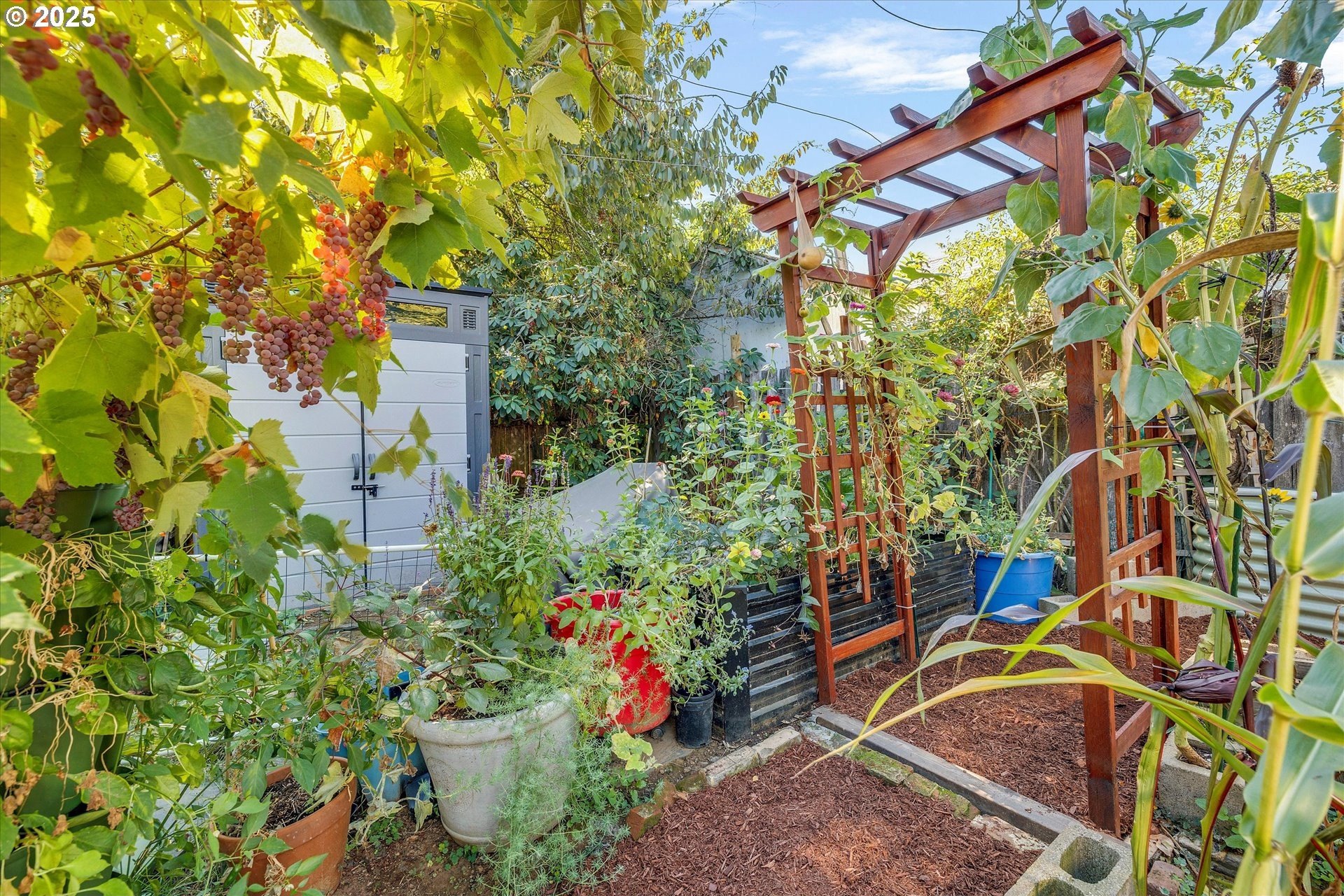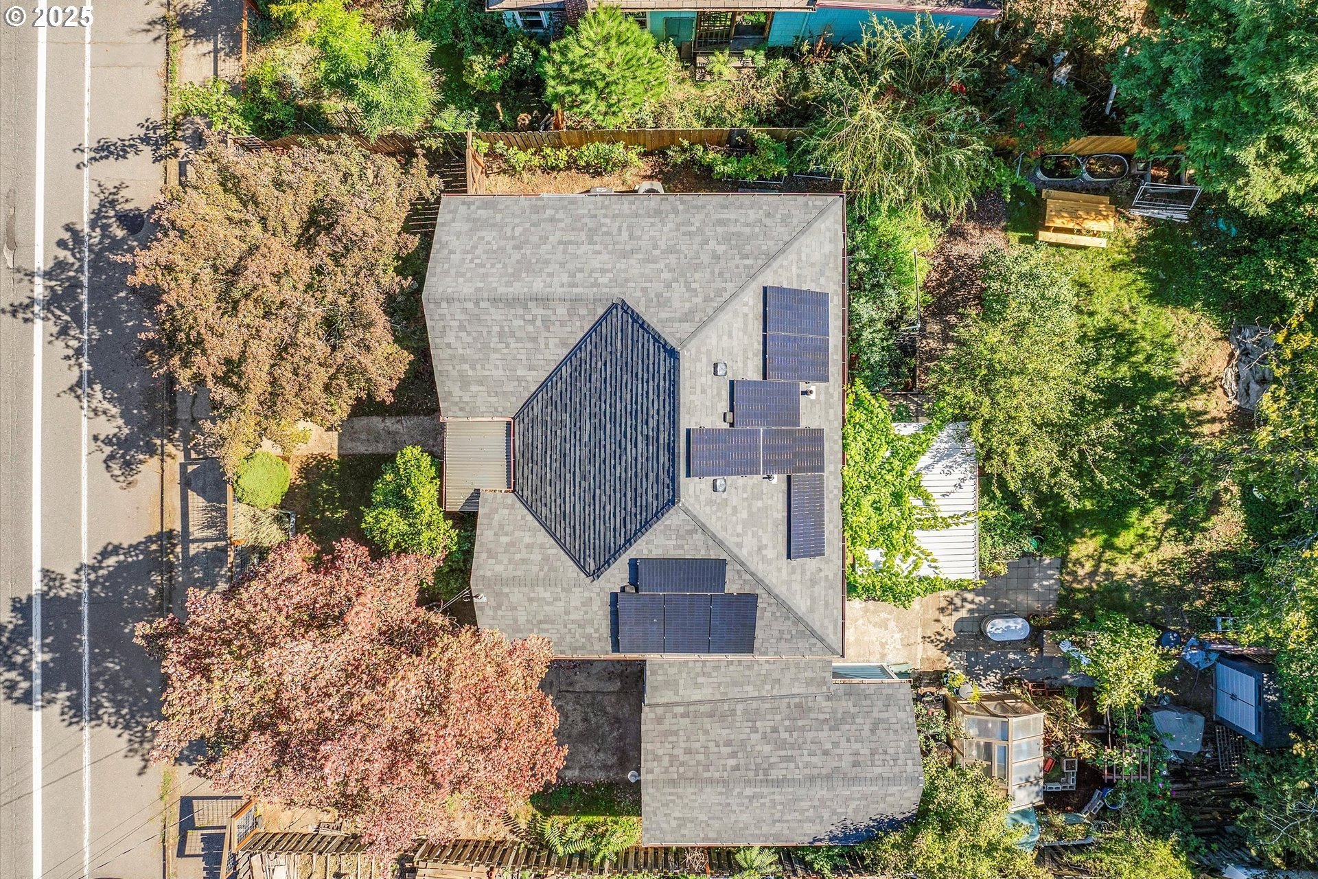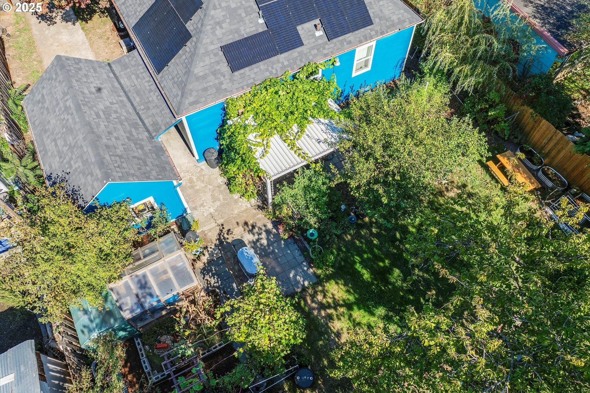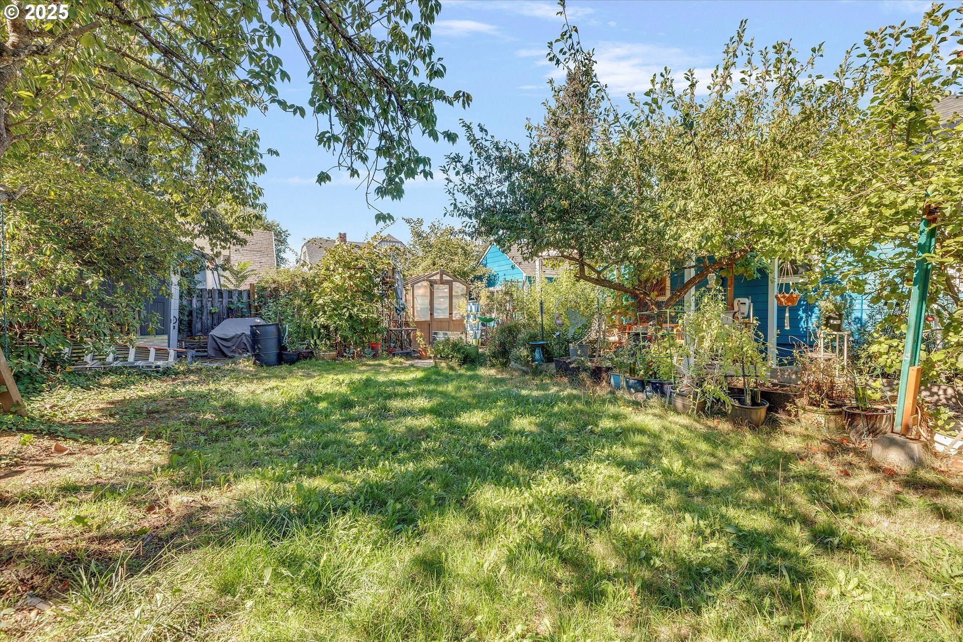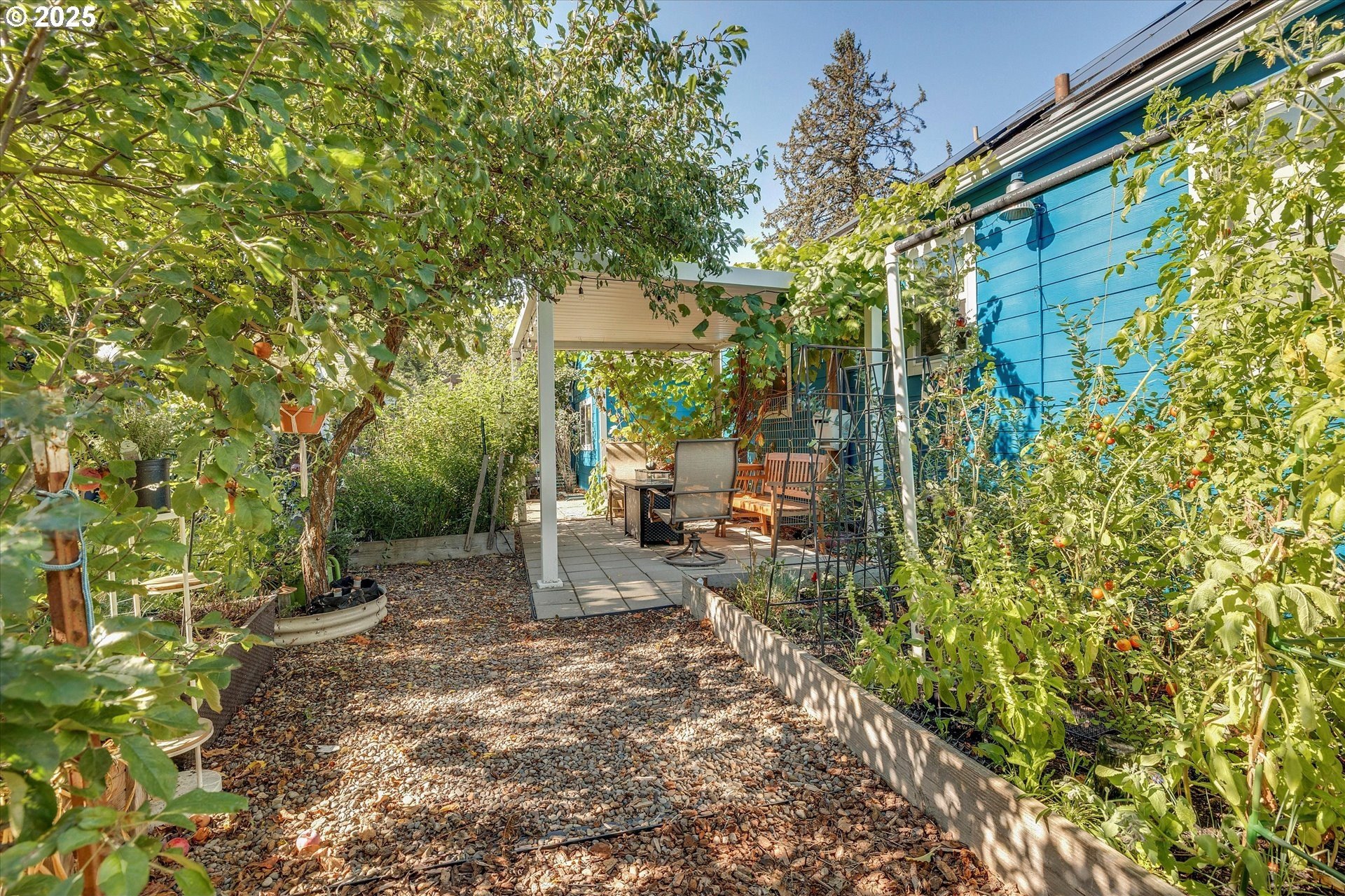 Charming One-Level with Full Basement & Backyard Garden Paradise! This home is much larger than it looks! Step inside to a welcoming formal living room with coved ceilings and gleaming hardwood floors. The open kitchen and dining area offers an easy flow for entertaining, complete with an eat-in bar and plenty of natural light. The main level includes two bedrooms, while the fully finished basement adds two more bedrooms, a spacious family room, a bonus/storage area, and a large laundry room — perfect for guests, hobbies, or multi-generational living. Extensive updates provide peace of mind: new roof, solar panels, siding, vinyl windows, hot water heater, and A/C (2021) — ensuring comfort and efficiency year-round.Step outside to your private backyard oasis featuring grapes, blueberries, raspberries, tomatoes, apples, lemons, and kiwi! Relax under the pergola-covered patio, surrounded by lush gardens. A detached deep garage, greenhouse, and tool shed offer incredible storage and workspace. Conveniently located near parks, shopping, restaurants, and freeway access — this home blends classic charm, modern comfort, and a true gardener’s paradise!