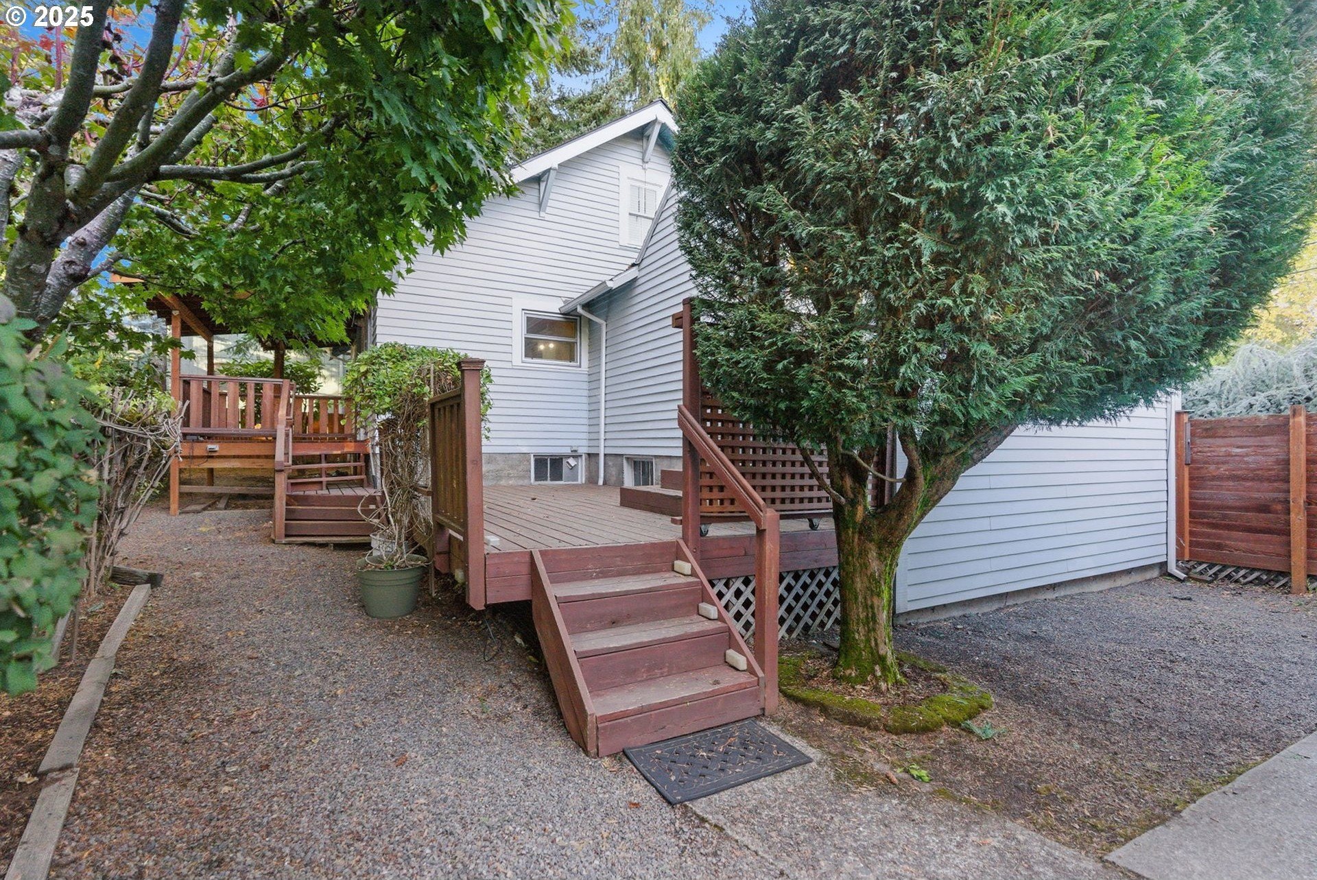 Don’t miss this light-filled, lovingly maintained 1927 Portland bungalow, just minutes from the heart of charming Multnomah Village! Step into an inviting open-concept living and dining area featuring hardwood floors and a wood-burning fireplace — perfect for everyday living and entertaining. The main level includes a primary bedroom and a full bath, along with a vintage kitchen full of character, a sunroom, and family room with original built-ins. Upstairs, you’ll find two additional bedrooms connected by a Jack-and-Jill walk-in closet, skylights that fill the space with natural light, and a convenient half bath. With its generous layout, this upper level could easily be transformed into a luxurious primary suite — the possibilities are endless! Outside, enjoy a private, fully fenced backyard with mature landscaping and a large deck — ideal for entertaining, gardening, or simply relaxing in your own outdoor retreat. The home also features ample off-street parking with a spacious driveway and a detached 2-car garage. Located in a top-rated school district and just a short stroll to the shops, cafes, and parks, this classic bungalow offers the perfect blend of vintage charm and modern convenience. Come see all that this vibrant home — and neighborhood — has to offer! [Home Energy Score = 2. HES Report at https://rpt.greenbuildingregistry.com/hes/OR10242342]