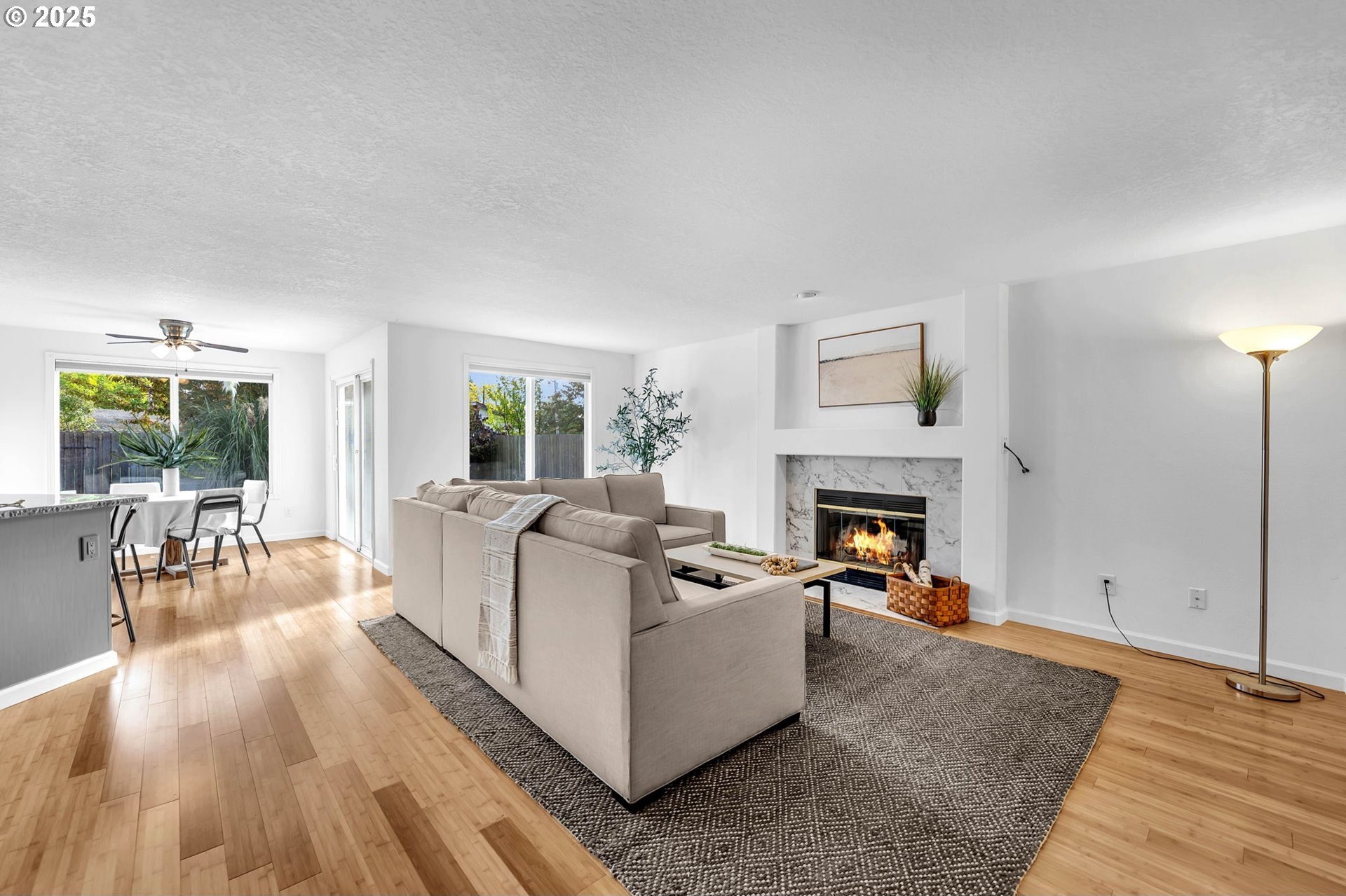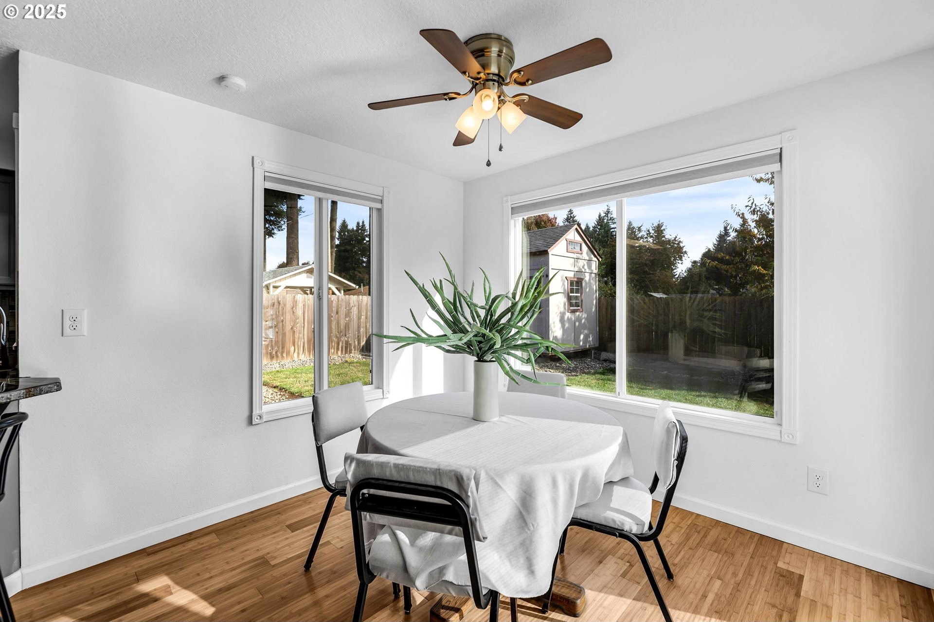 Welcome Home to this spacious contemporary retreat where every detail — big and small — has already been taken care of for you. From the moment your through the front door, you’re greeted by brand new bamboo hardwoods that flow effortlessly from the living room to the formal dining room, through the bright remodeled kitchen, and into the cozy family room anchored by a stunning modern fireplace. Picture yourself curled up on the couch with a fall movie playing, the fire crackling beside you.As autumn sets in, start your morning in the sunny eating nook, where you can sip a pumpkin spice latte while watching the leaves fall and listening to the gentle sound of the backyard water feature. The kitchen boasts stainless steel appliances, a new dishwasher, fresh countertops, and a deep sink perfect for washing and drying your farmers’ market finds. A thoughtful pantry and extra storage under the stairs keep everything neatly tucked away.Every bathroom has been beautifully refreshed with new tile, sinks, and faucets, and the laundry room now features durable new LVP flooring.Upstairs, you’ll find four spacious bedrooms, including a serene primary suite with a walk-in closet and ensuite bath. Settle in with a good book by the built-in window seat under the bay window, the perfect little hideaway. Two of the bedrooms offer clever multi-use closets complete with built-in desks—ideal for homework, creative projects, or remote work.Just outside is a private backyard that’s ready for every hobby and dream project. A mini workshop and tool shed are perfect for gardening, tinkering, or crafting. There’s even potential space for RV or boat parking, just bring your imagination.And here’s the best part—the big-ticket items are already done: new siding, roof, gutters, HVAC, and water heater. What more is there left to do but move in!Freshly repainted inside in timeless Snowbound white, this move-in-ready home truly has it all: style, warmth, and thoughtful updates at every turn.