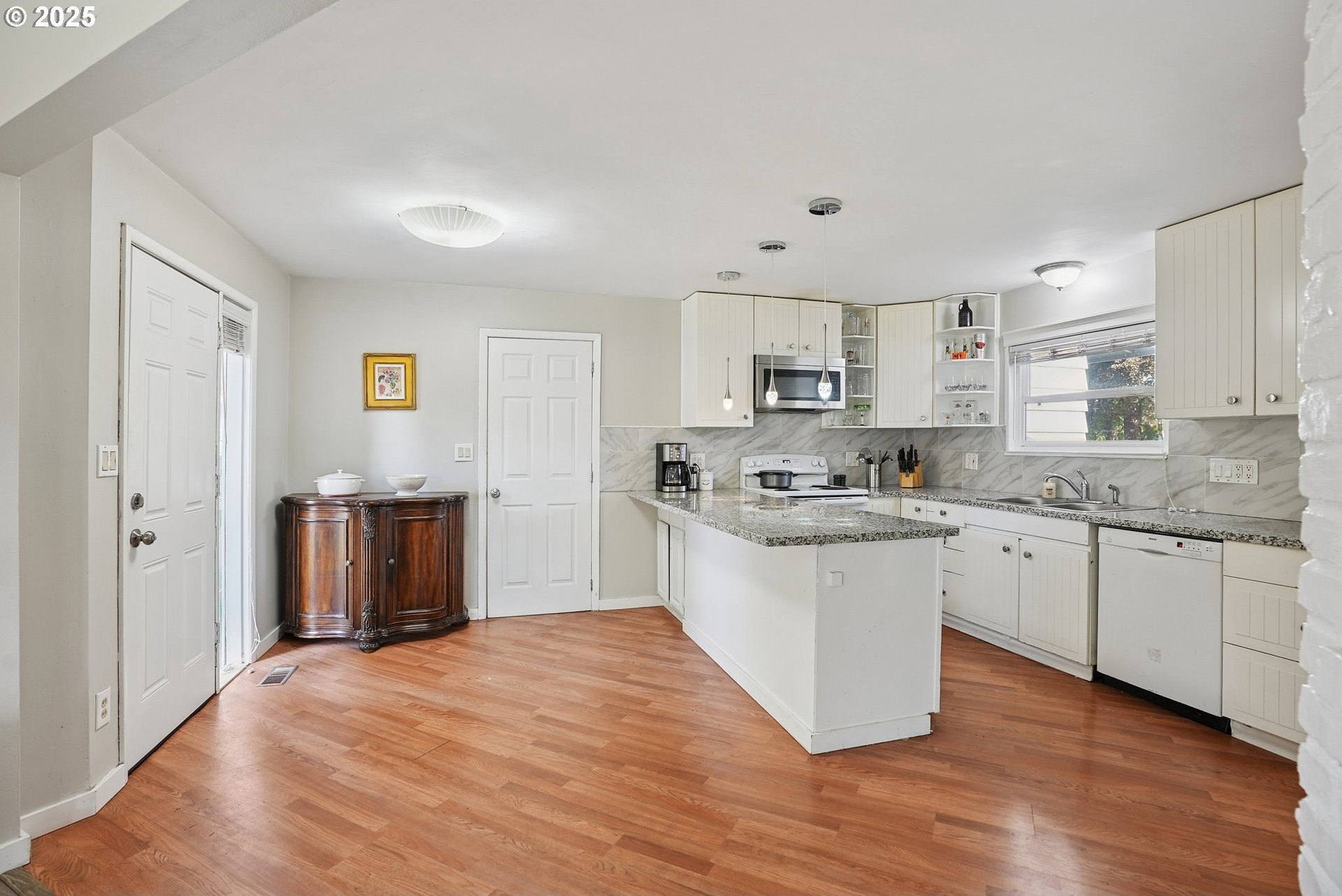 Where Comfort Meets Versatility. Step into a home that perfectly balances warmth, function, and flexibility. From the moment you enter, the open floor plan invites easy connection—whether you’re gathering around one of two cozy fireplaces on a cool evening or hosting dinners that spill effortlessly between the kitchen and living spaces. With five bedrooms, including three on the main level, this layout adapts beautifully to any stage of life. Need dual home offices, a guest suite, or creative space for hobbies? This home has room for it all. Every detail has been designed for convenience and comfort, from the double sinks in the main-level bathroom to the spacious closets and natural light throughout. Downstairs, a daylight basement offers a world of possibilities—think media room, gym, or guest quarters—with its own full bathroom and direct access to the backyard. The large, fully fenced lot provides plenty of room for play, gardening, or simply relaxing outdoors in privacy. Practical updates make living easy: a 5-year-old roof, ample storage, and a large garage that’s ideal for projects or extra gear. Whether you’re working from home, welcoming guests, or just enjoying a quiet night by the fire, this home is built for real living. Here, every season feels right at home—summer barbecues in the backyard, autumn fireside evenings, and the joy of having space that grows with you. It’s more than a house—it’s a lifestyle that blends comfort, flexibility, and everyday ease.