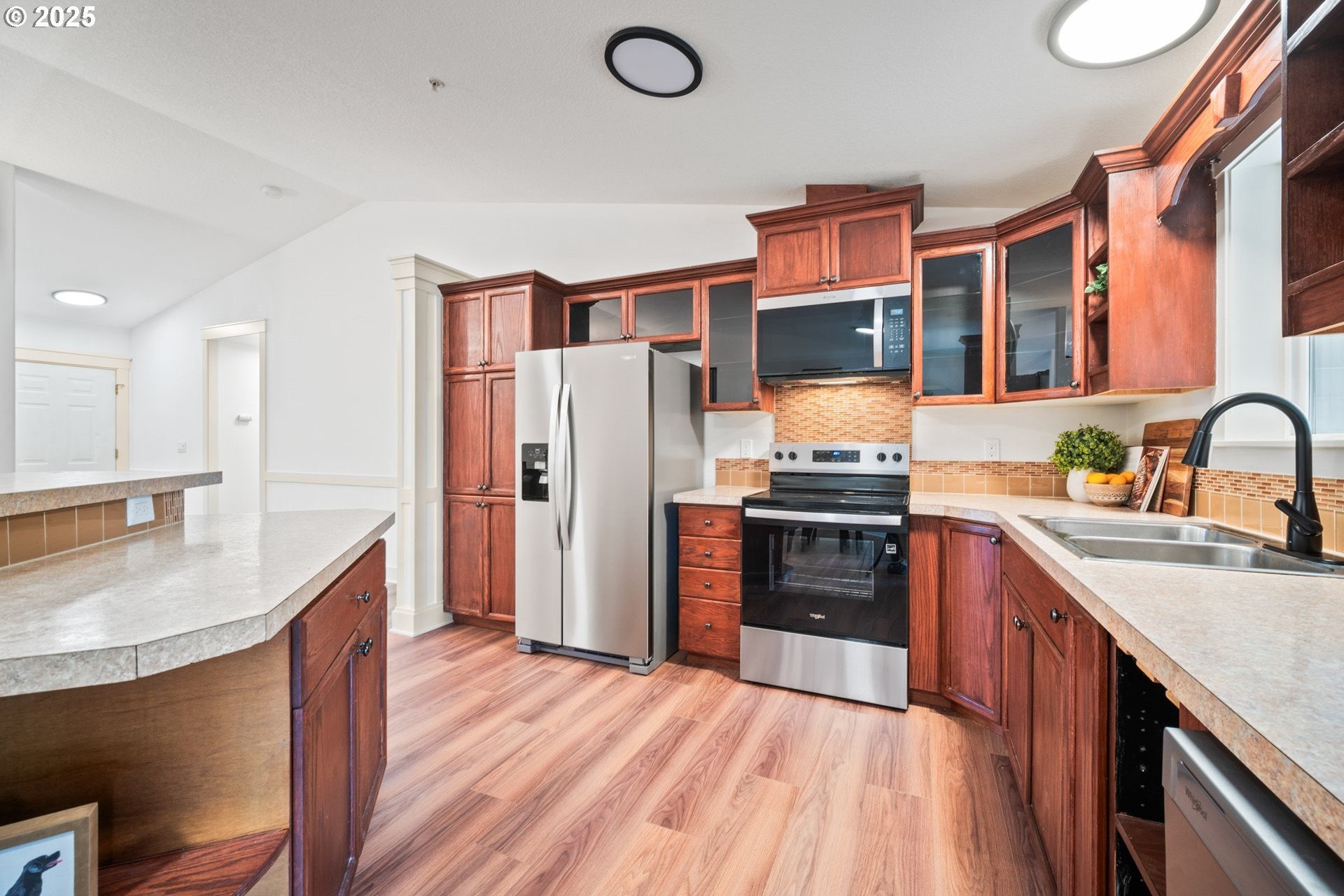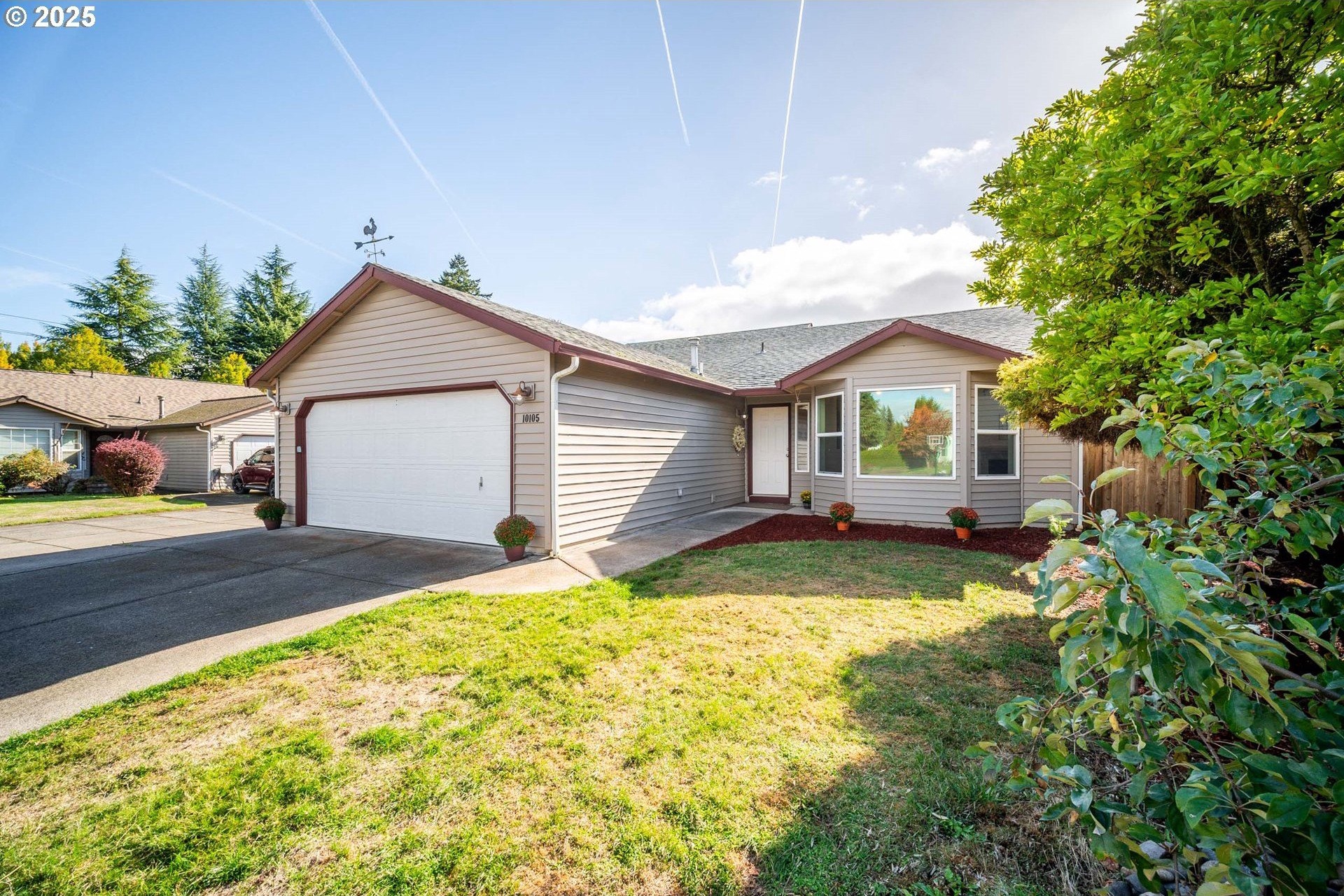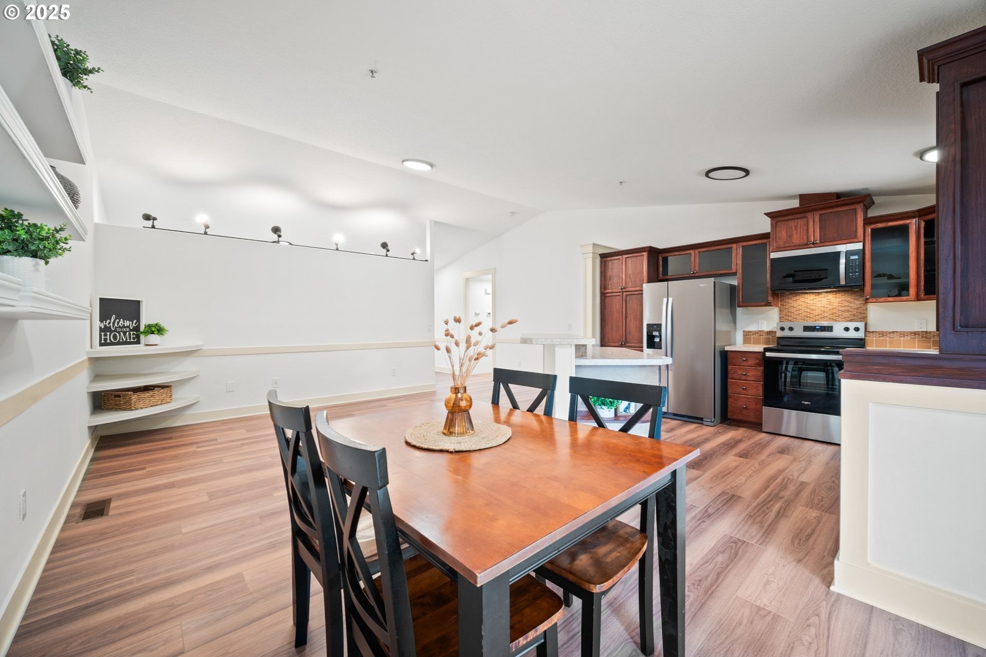 Welcome home to this light and bright single-level charmer! Step inside to find fresh interior paint, vaulted ceilings in the main living areas, and brand-new luxury vinyl flooring throughout. The kitchen features rich cabinetry with ample storage and all new stainless-steel appliances — including a refrigerator, range, microwave, and dishwasher. You’ll love the beautifully updated bathrooms, complete with new vanities, light fixtures, flooring, and toilets. The furnace has been recently serviced, and the home has a built-in interior sprinkler system that provides an added layer of safety. Enjoy the spacious backyard — perfect for entertaining, gardening, or play — featuring a covered patio for year-round enjoyment. The roof was replaced in 2015, offering peace of mind for years to come. With a washer and dryer included, this home is truly move-in ready. This one has it all — comfort, style, and value. Don’t wait — it’s priced to sell and sure to go quickly!