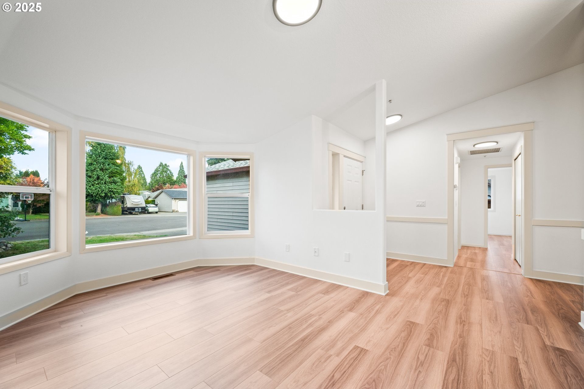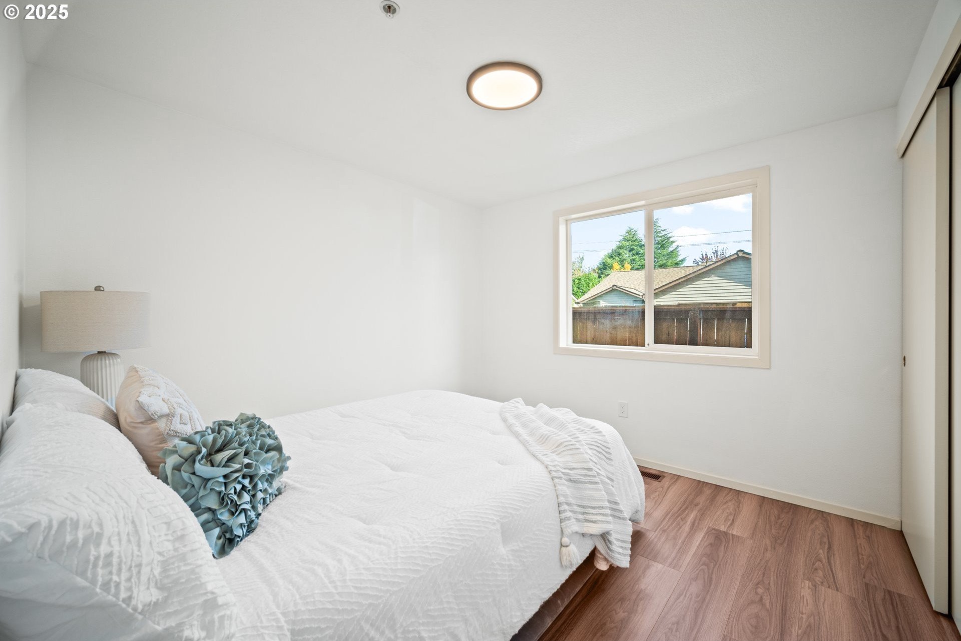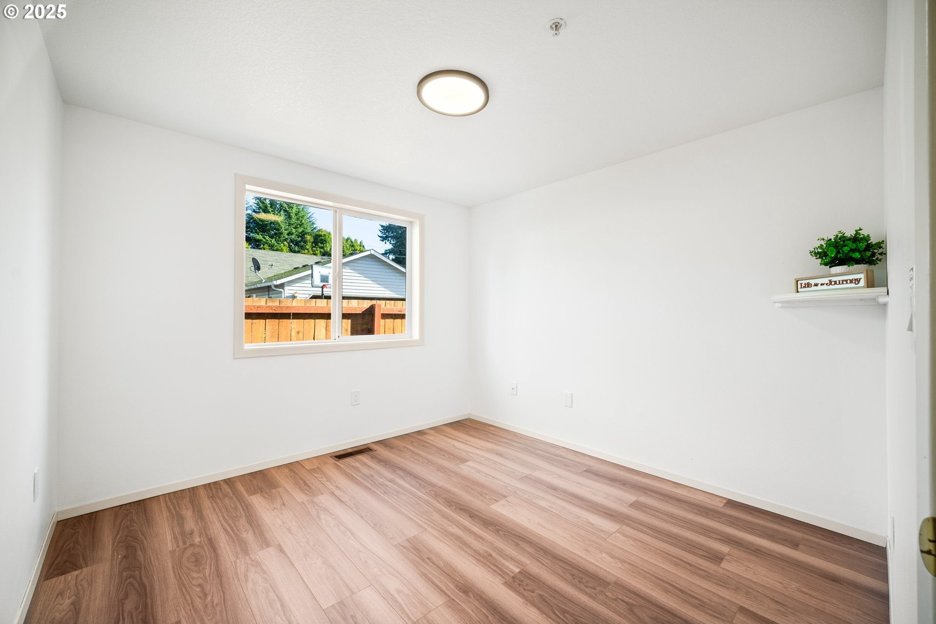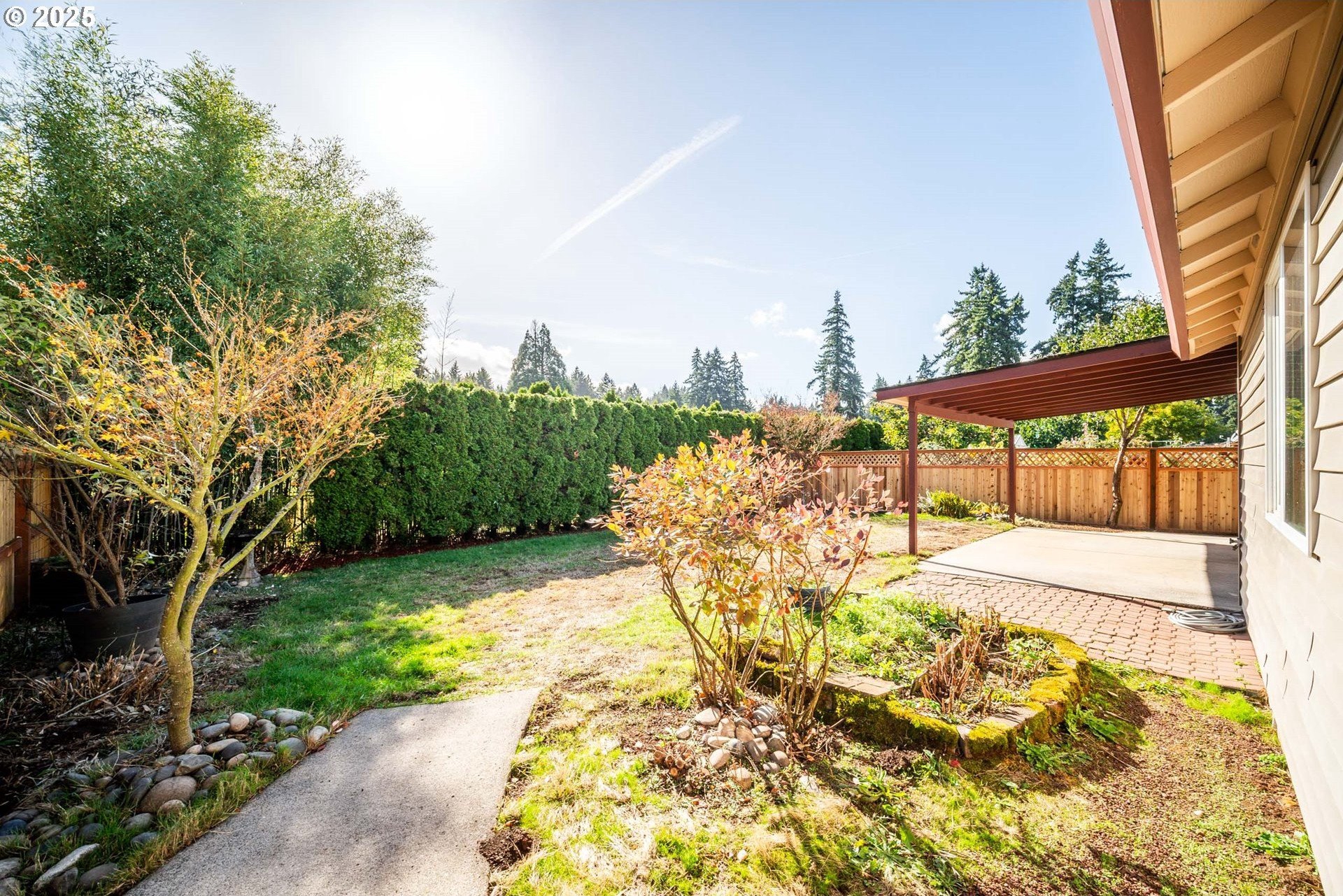 Welcome home to this light and bright single-level charmer! Step inside to find fresh interior paint, vaulted ceilings in the main living areas, and brand-new luxury vinyl flooring throughout. The kitchen features rich cabinetry with ample storage and all new stainless-steel appliances — including a refrigerator, range, microwave, and dishwasher. You’ll love the beautifully updated bathrooms, complete with new vanities, light fixtures, flooring, and toilets. The furnace has been recently serviced, and the home has a built-in interior sprinkler system that provides an added layer of safety. Enjoy the spacious backyard — perfect for entertaining, gardening, or play — featuring a covered patio for year-round enjoyment. The roof was replaced in 2015, offering peace of mind for years to come. With a washer and dryer included, this home is truly move-in ready. This one has it all — comfort, style, and value. Don’t wait — it’s priced to sell and sure to go quickly!