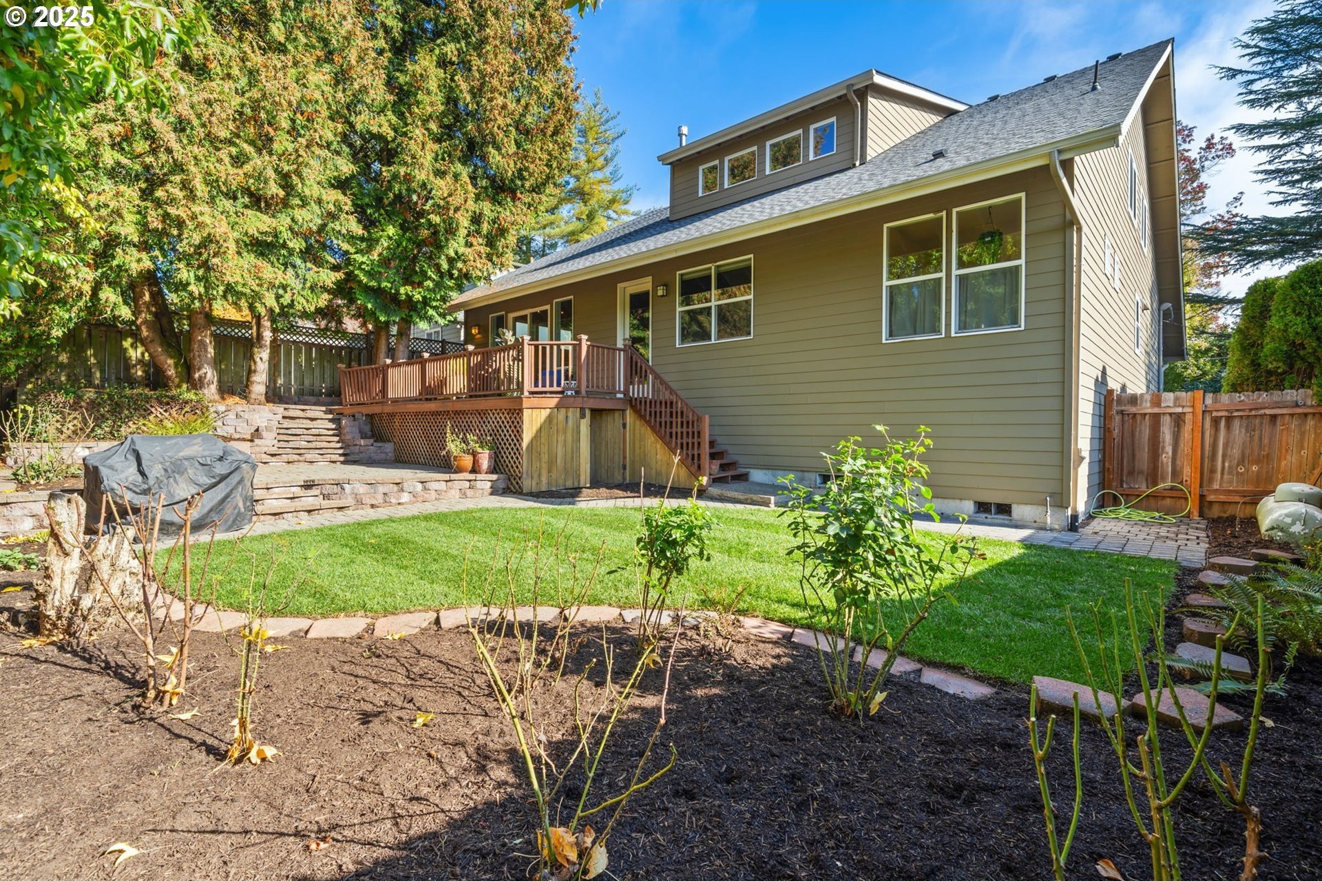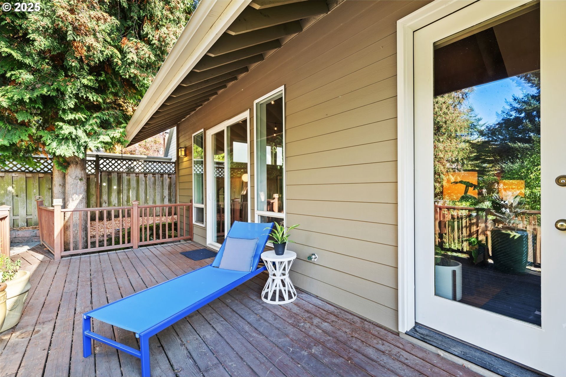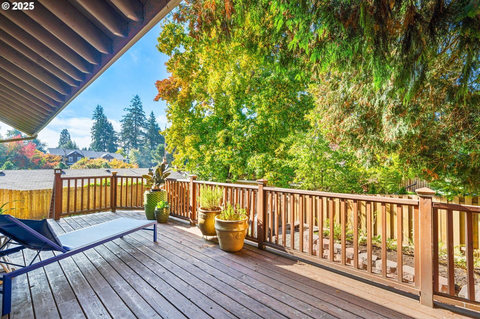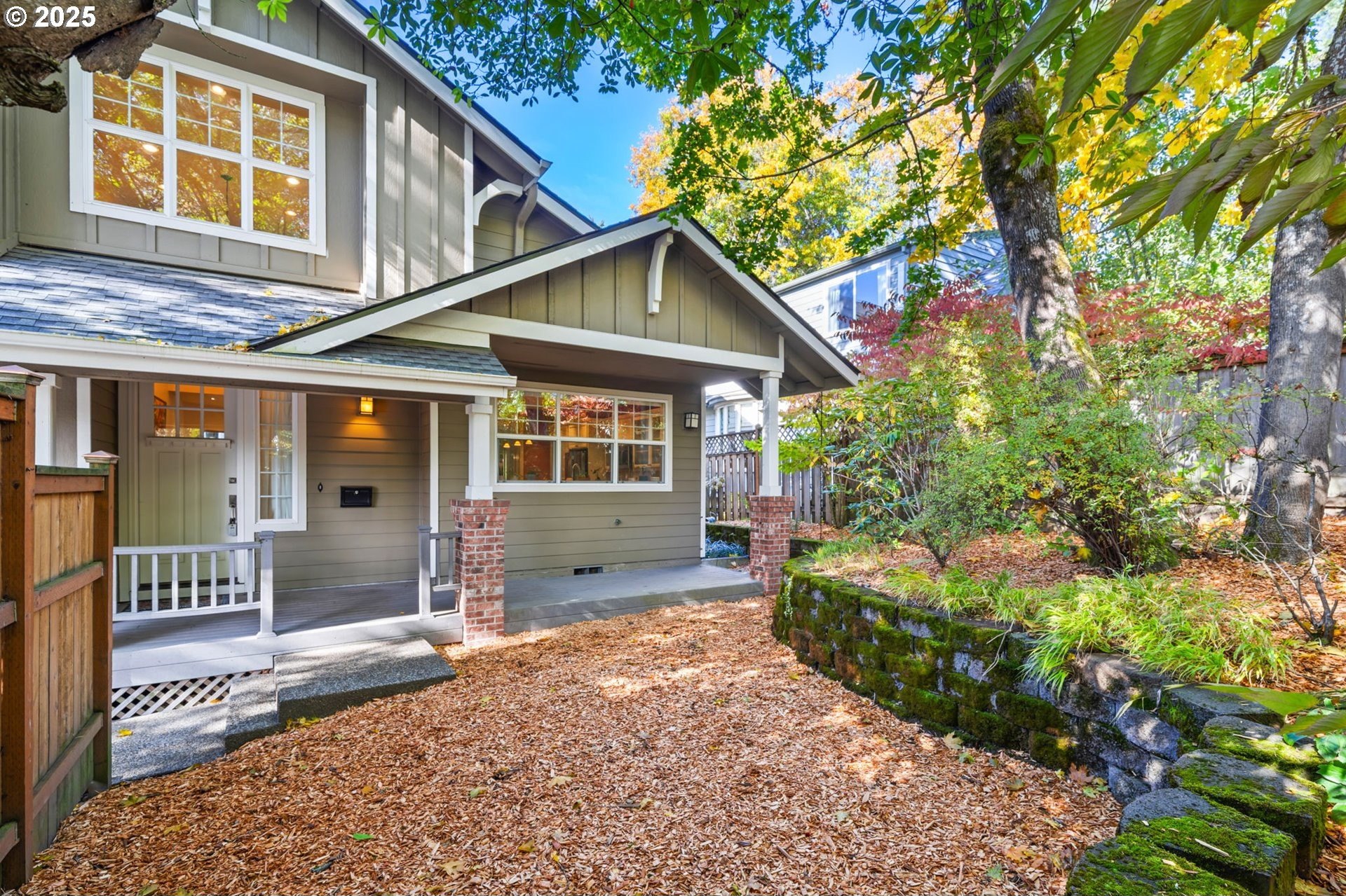 Just blocks to the heart of Multnomah Village! This contemporary craftsman offers equal parts modern convenience and classic charm on an enchanting fenced lot. Thoughtful touches throughout include intricate millwork, large windows, and lustrous hardwoods. The generous open kitchen welcomes cooking and conversation with an island, breakfast bar, built-in desk, modern appliances, and lots of light. The airy formal dining room leads to an impressive great room with soaring vaulted ceilings, gas fireplace, and slider out to the spacious deck. Deluxe primary suite on the main floor! The plush bedroom offers more vaulted ceilings, stylish design, a private door out to the deck, and dream en suite bathroom with double sinks, vanity, clawfoot tub, and walk-in closet. Endless possibilities for work and play upstairs with two additional bedrooms, open loft, bonus room, flex space, and lots of storage. Beautifully tiered backyard that flows from deck to patio to flat grassy area, all surrounded by established landscaping. Attached two-car garage. Just minutes to the best dining, shopping, and entertainment in Multnomah Village. Ask for features list! Updated HVAC, roof, water heater, appliances! [Home Energy Score = 5. HES Report at https://rpt.greenbuildingregistry.com/hes/OR10144915]