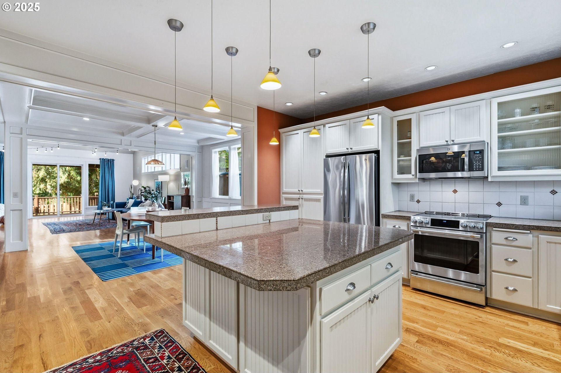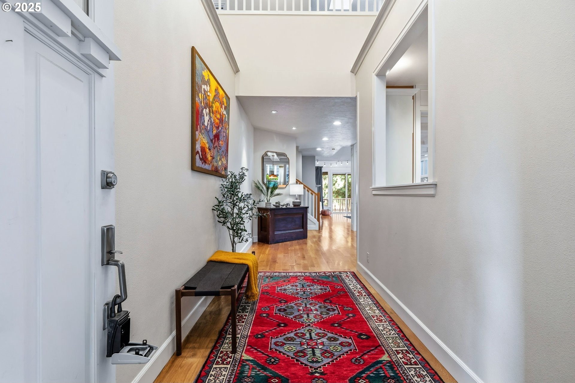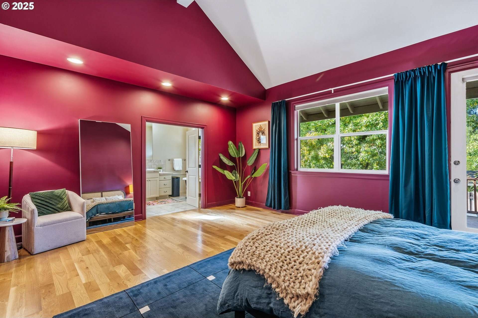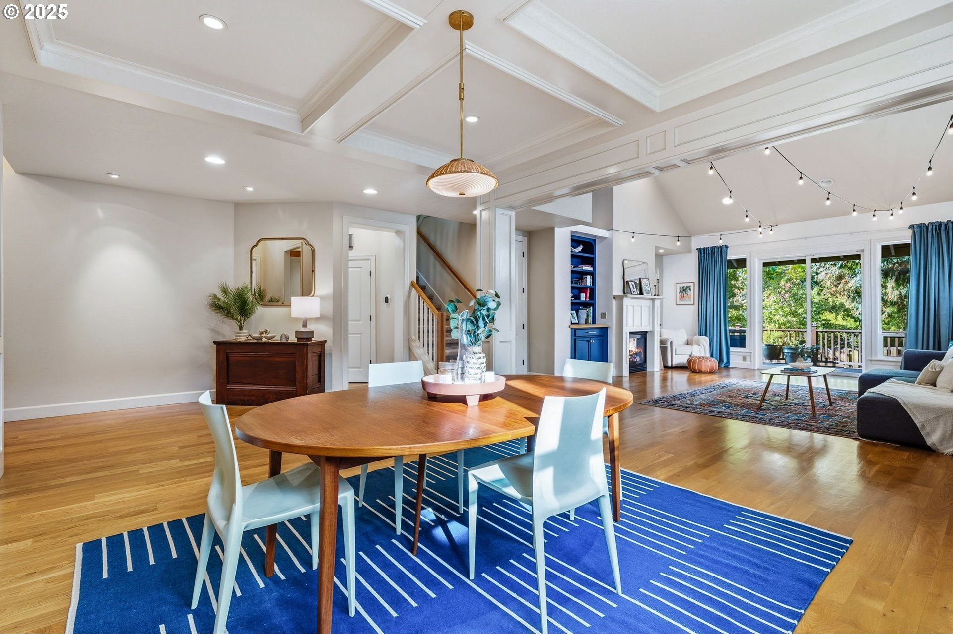 Just blocks to the heart of Multnomah Village! This contemporary craftsman offers equal parts modern convenience and classic charm on an enchanting fenced lot. Thoughtful touches throughout include intricate millwork, large windows, and lustrous hardwoods. The generous open kitchen welcomes cooking and conversation with an island, breakfast bar, built-in desk, modern appliances, and lots of light. The airy formal dining room leads to an impressive great room with soaring vaulted ceilings, gas fireplace, and slider out to the spacious deck. Deluxe primary suite on the main floor! The plush bedroom offers more vaulted ceilings, stylish design, a private door out to the deck, and dream en suite bathroom with double sinks, vanity, clawfoot tub, and walk-in closet. Endless possibilities for work and play upstairs with two additional bedrooms, open loft, bonus room, flex space, and lots of storage. Beautifully tiered backyard that flows from deck to patio to flat grassy area, all surrounded by established landscaping. Attached two-car garage. Just minutes to the best dining, shopping, and entertainment in Multnomah Village. Ask for features list! Updated HVAC, roof, water heater, appliances! [Home Energy Score = 5. HES Report at https://rpt.greenbuildingregistry.com/hes/OR10144915]