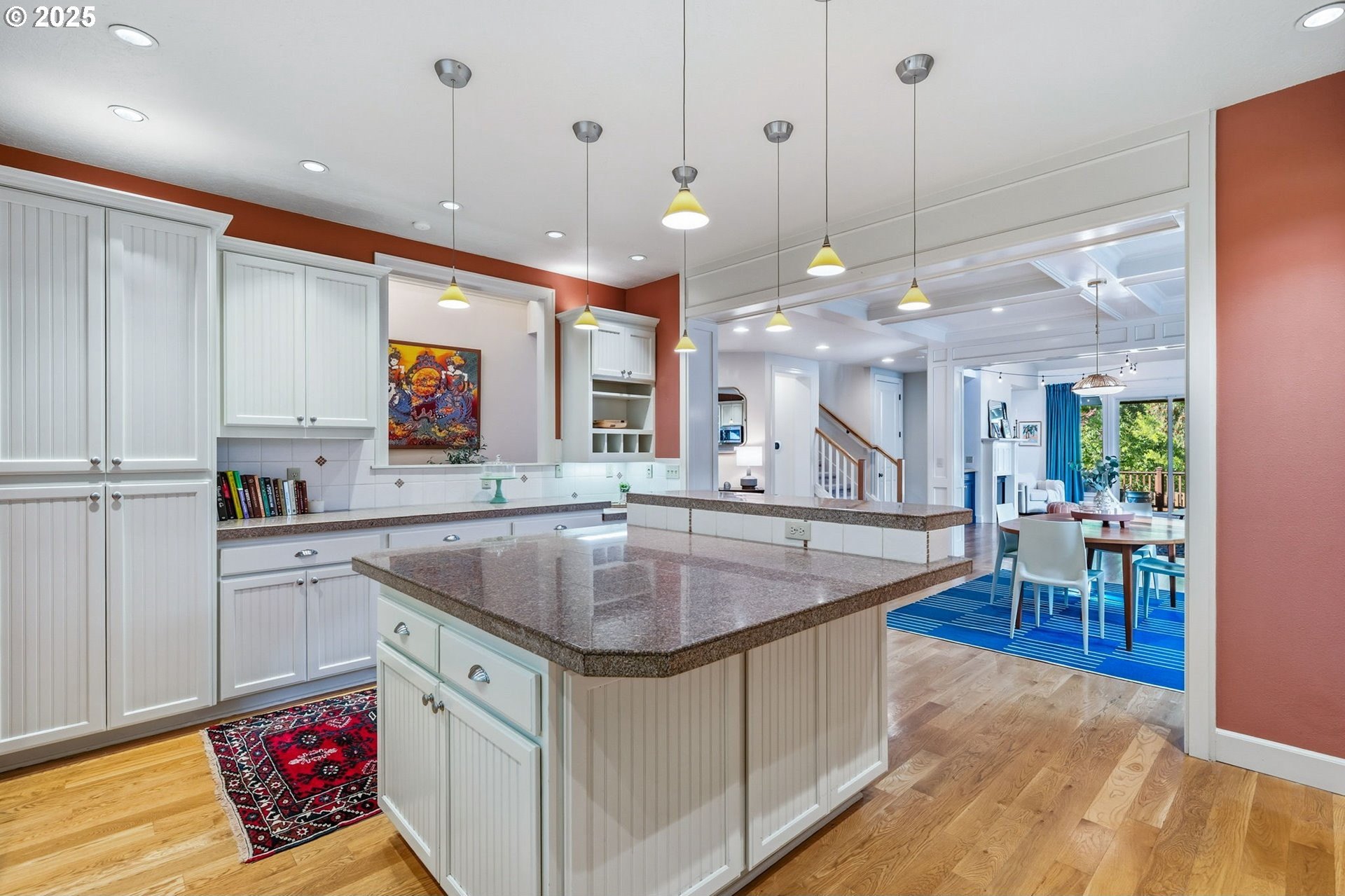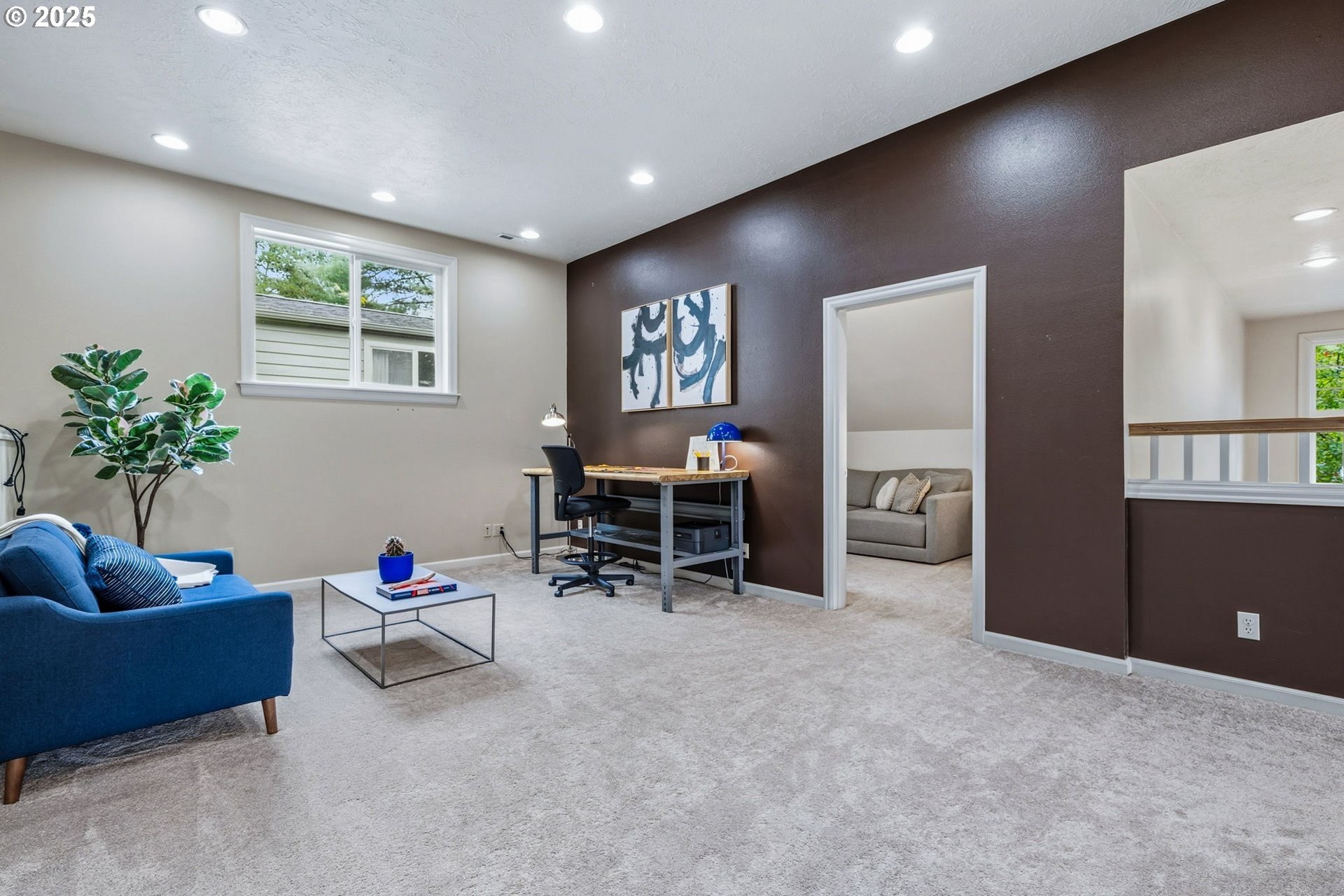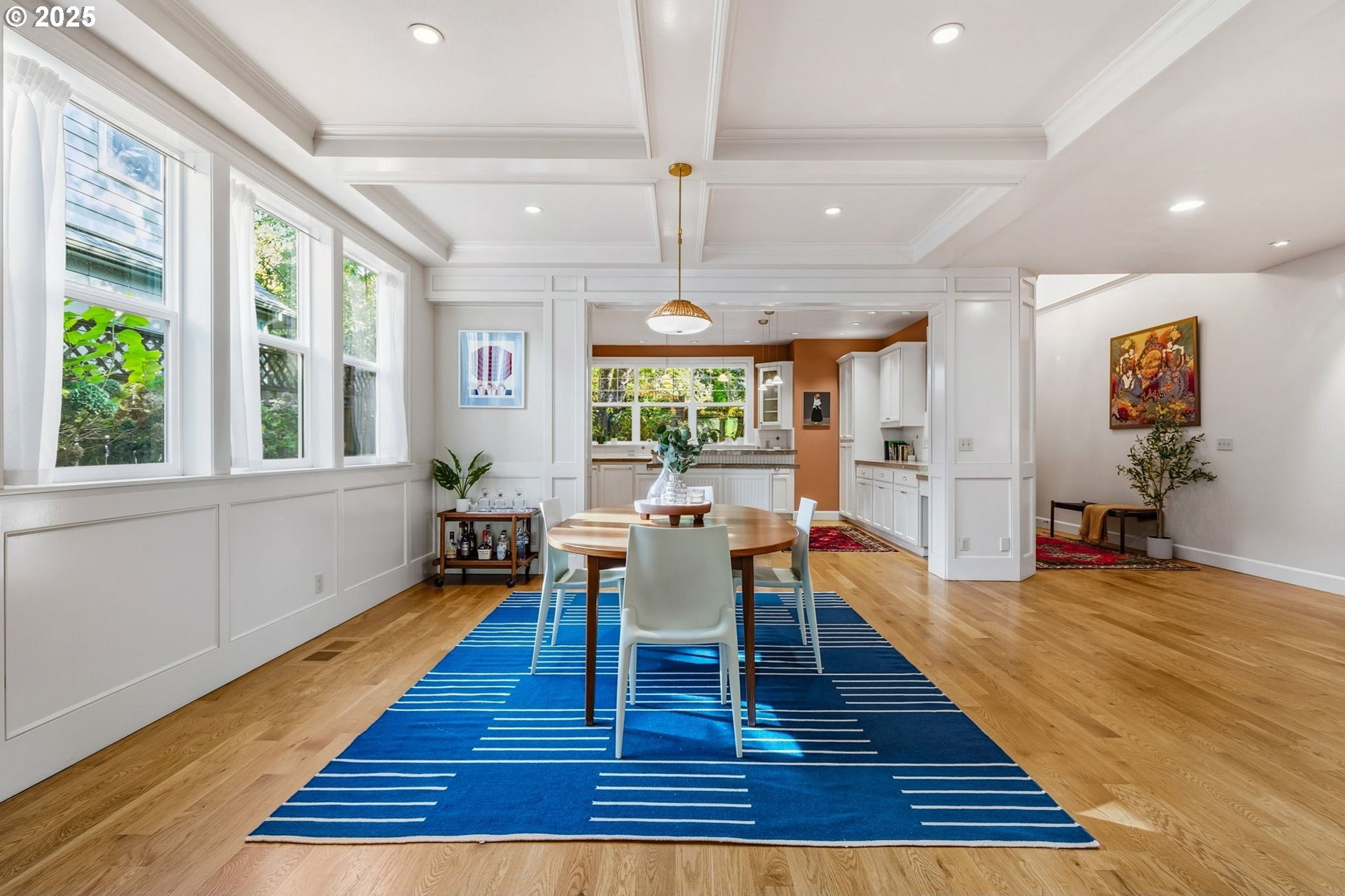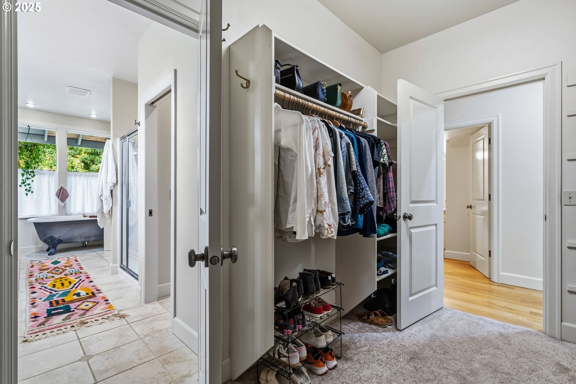 Just blocks to the heart of Multnomah Village! This contemporary craftsman offers equal parts modern convenience and classic charm on an enchanting fenced lot. Thoughtful touches throughout include intricate millwork, large windows, and lustrous hardwoods. The generous open kitchen welcomes cooking and conversation with an island, breakfast bar, built-in desk, modern appliances, and lots of light. The airy formal dining room leads to an impressive great room with soaring vaulted ceilings, gas fireplace, and slider out to the spacious deck. Deluxe primary suite on the main floor! The plush bedroom offers more vaulted ceilings, stylish design, a private door out to the deck, and dream en suite bathroom with double sinks, vanity, clawfoot tub, and walk-in closet. Endless possibilities for work and play upstairs with two additional bedrooms, open loft, bonus room, flex space, and lots of storage. Beautifully tiered backyard that flows from deck to patio to flat grassy area, all surrounded by established landscaping. Attached two-car garage. Just minutes to the best dining, shopping, and entertainment in Multnomah Village. Ask for features list! Updated HVAC, roof, water heater, appliances! [Home Energy Score = 5. HES Report at https://rpt.greenbuildingregistry.com/hes/OR10144915]