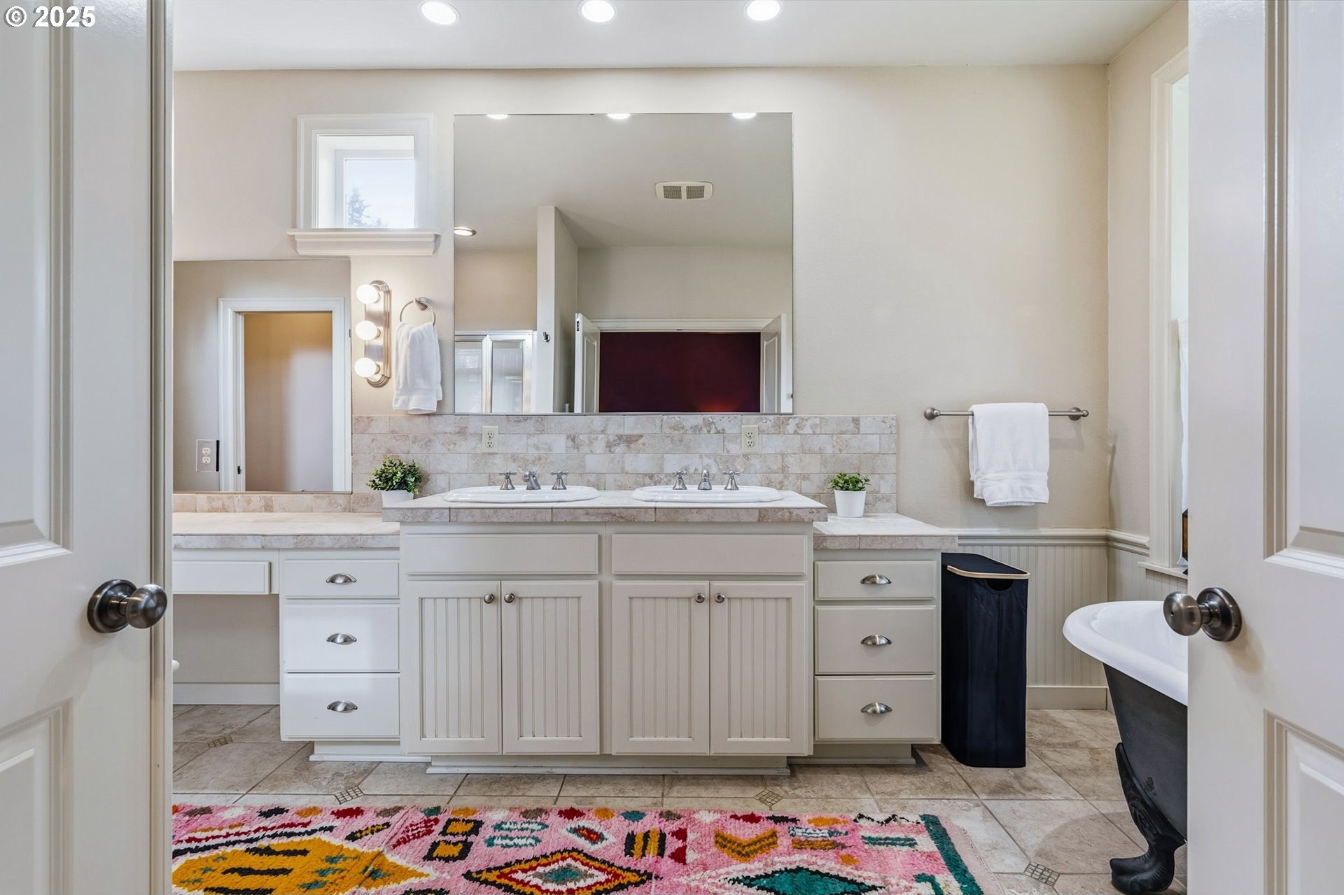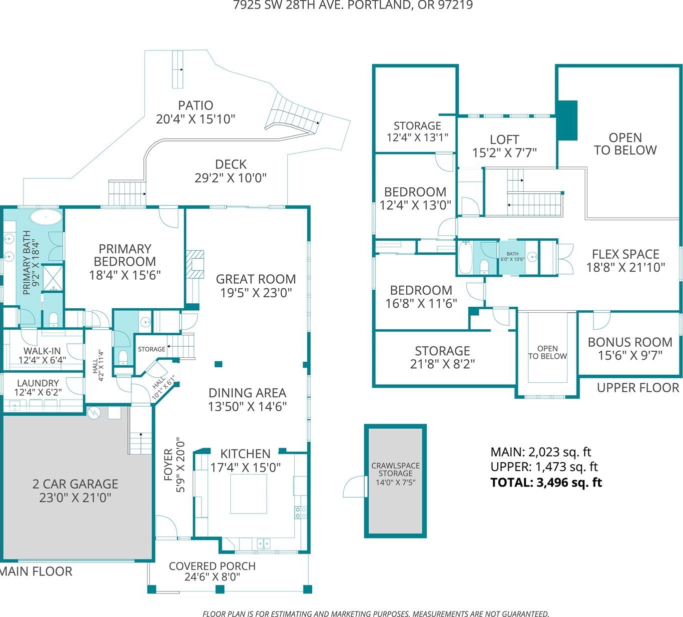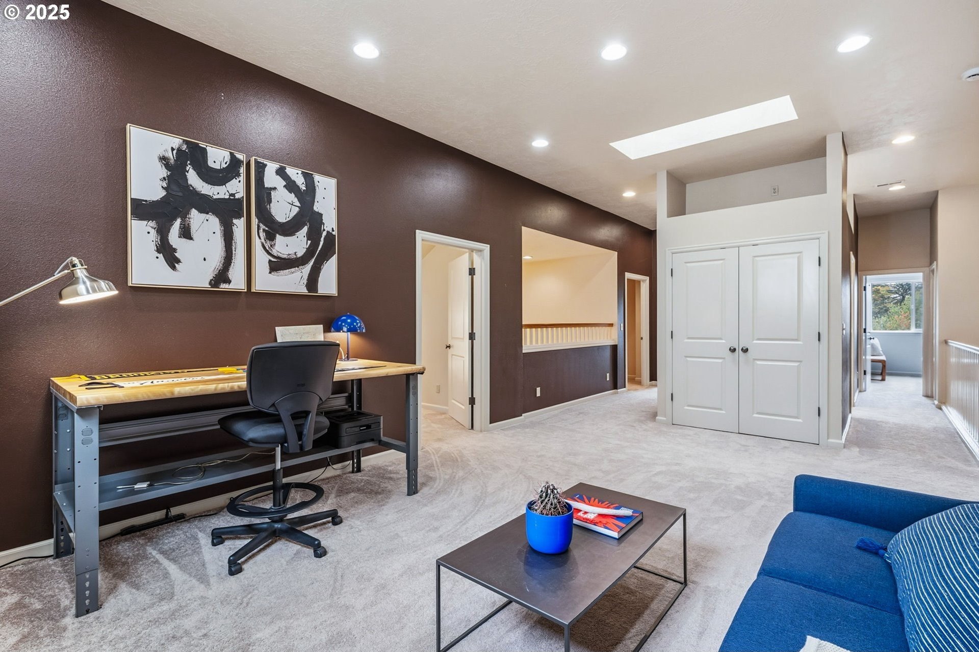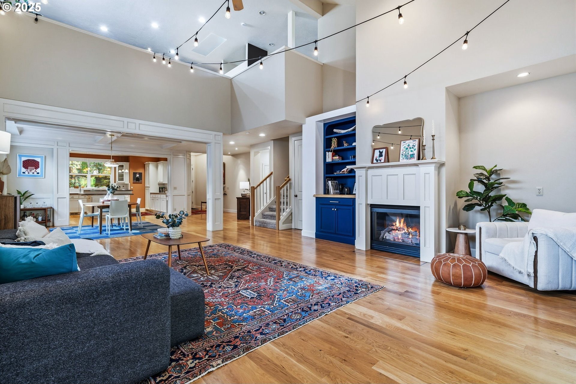 Just blocks to the heart of Multnomah Village! This contemporary craftsman offers equal parts modern convenience and classic charm on an enchanting fenced lot. Thoughtful touches throughout include intricate millwork, large windows, and lustrous hardwoods. The generous open kitchen welcomes cooking and conversation with an island, breakfast bar, built-in desk, modern appliances, and lots of light. The airy formal dining room leads to an impressive great room with soaring vaulted ceilings, gas fireplace, and slider out to the spacious deck. Deluxe primary suite on the main floor! The plush bedroom offers more vaulted ceilings, stylish design, a private door out to the deck, and dream en suite bathroom with double sinks, vanity, clawfoot tub, and walk-in closet. Endless possibilities for work and play upstairs with two additional bedrooms, open loft, bonus room, flex space, and lots of storage. Beautifully tiered backyard that flows from deck to patio to flat grassy area, all surrounded by established landscaping. Attached two-car garage. Just minutes to the best dining, shopping, and entertainment in Multnomah Village. Ask for features list! Updated HVAC, roof, water heater, appliances! [Home Energy Score = 5. HES Report at https://rpt.greenbuildingregistry.com/hes/OR10144915]