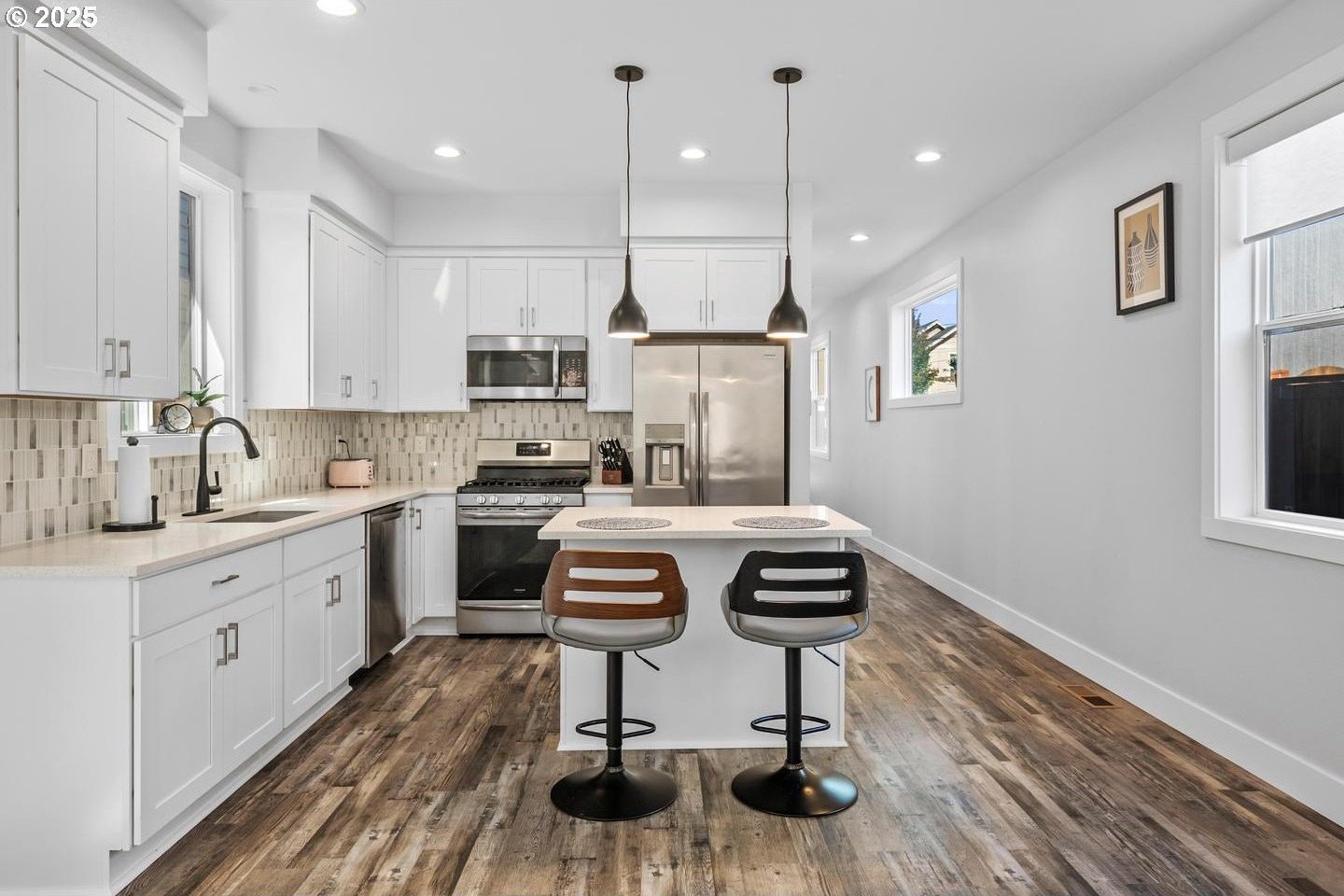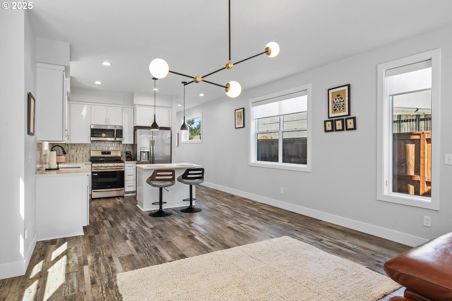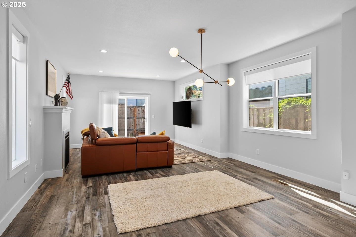 Step into elevated Portland living: thoughtfully designed, beautifully maintained, and perfectly placed in the heart of Brentwood-Darlington. Welcome home to 5424 SE Knapp Street—a light-filled retreat where modern comfort meets vibrant community.From the moment you enter, soaring ceilings and an open floor plan create a sense of space and ease. Natural light pours through oversized windows, highlighting fresh landscaping in both the front and back yards, while a cozy fireplace adds warmth and charm to the living area. The seamless flow from the kitchen to dining to living spaces makes this home as functional as it is inviting—ideal for both everyday living and entertaining.The kitchen features a generous island, quartz countertops, stainless steel appliances, and stylish fixtures, designed to bring people together in the heart of the home. Upstairs, the spacious primary suite offers a peaceful retreat with vaulted ceilings, a walk-in closet, and an en suite bathroom with dual vanities. Two additional bedrooms, a full guest bath, and convenient upstairs laundry add flexibility for family, guests, or a home office.Step outside to enjoy your private fenced backyard—perfect for summer BBQs, gardening, or simply unwinding in your own outdoor oasis. Professional landscaping ensures beauty and curb appeal year-round.Located in one of Portland’s most connected neighborhoods, this home boasts a 96 Bike Score and puts you just blocks from Woodstock shops, coffee houses, restaurants, parks, and community amenities. With quick access to downtown and nearby nature escapes like Mt. Tabor and Oaks Bottom Wildlife Refuge, you’ll enjoy the best of both urban convenience and outdoor lifestyle.Don’t miss this one—5424 SE Knapp Street offers the unbeatable blend of style, comfort, and community you’ve been searching for.