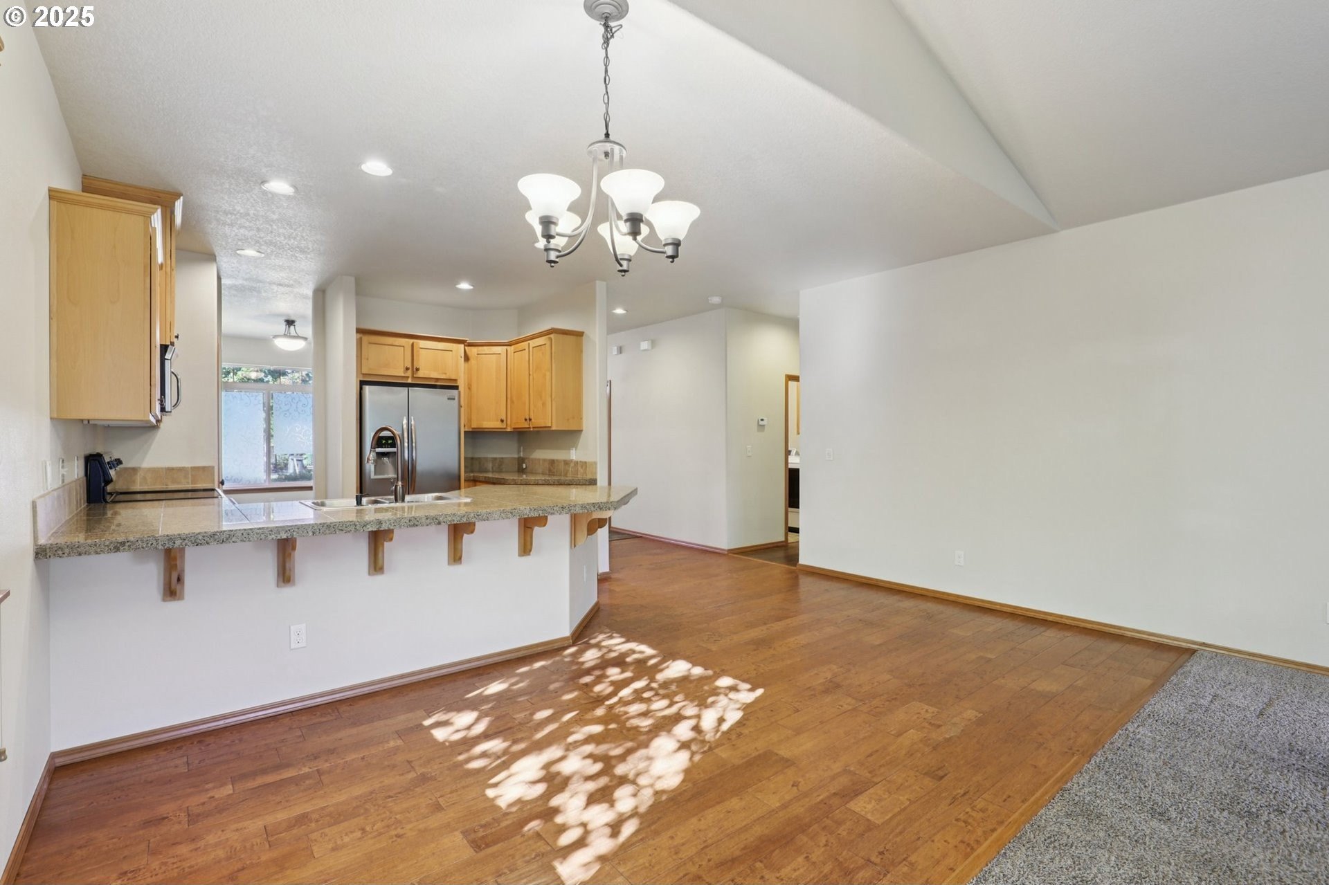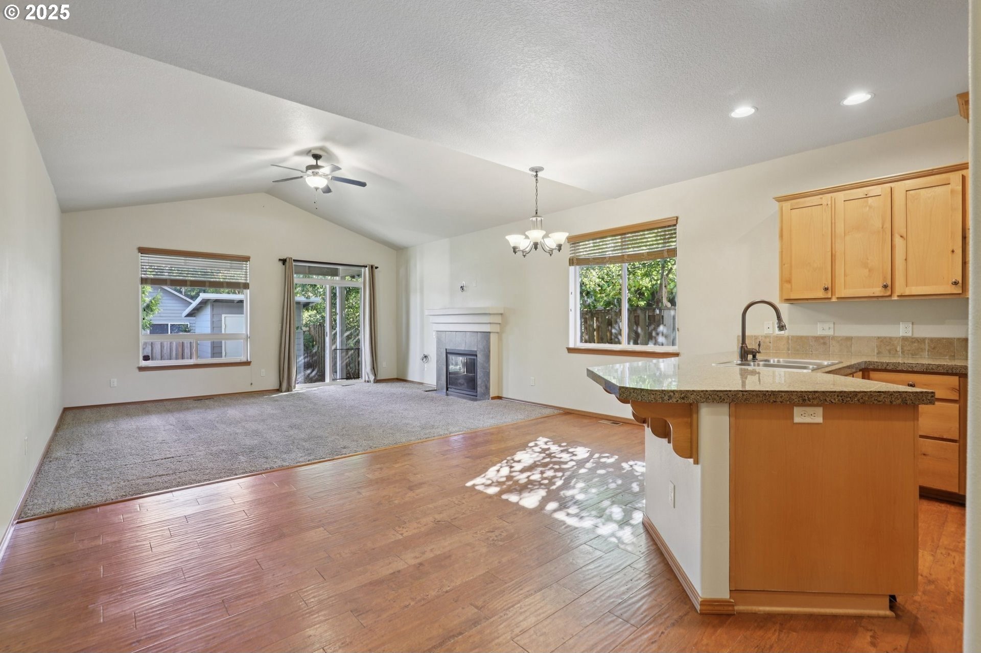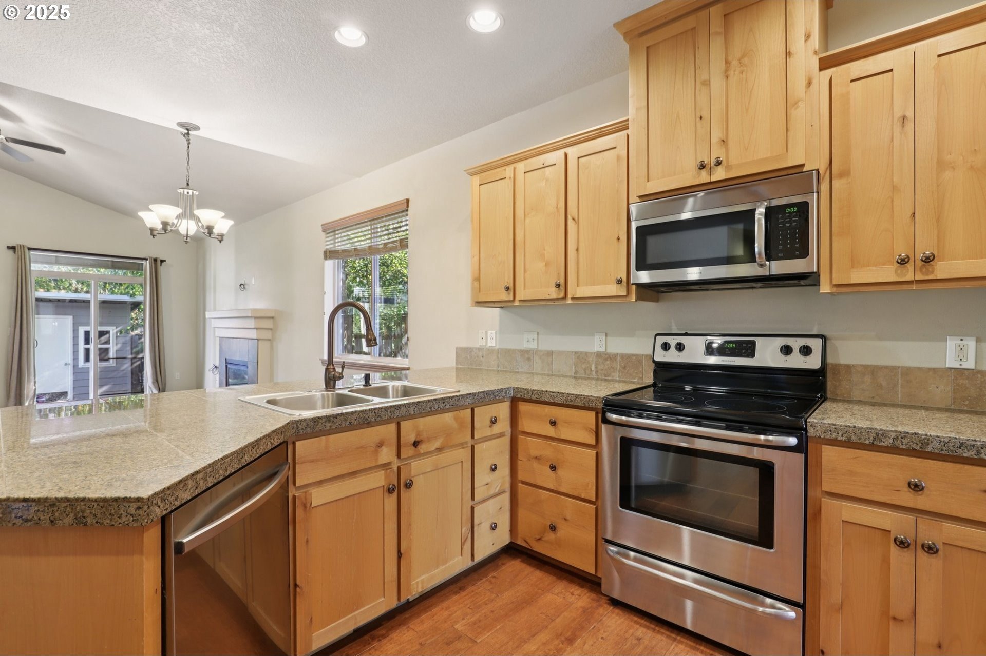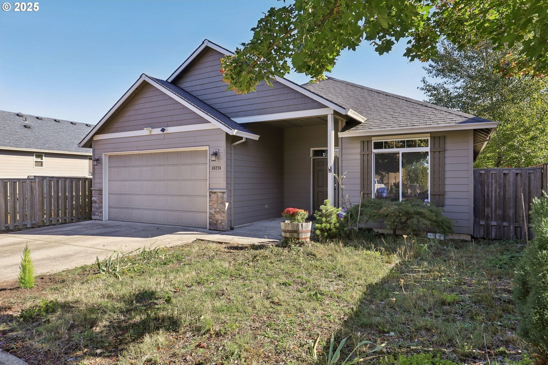 Experience the charm and versatility of this Craftsman-style single-level home at 18274 Antler Ave, where comfort and thoughtful design come together in an inviting setting. Ideal for anyone seeking flexible living options, this detached home beautifully blends signature details like a vaulted great-room ceiling and a gas fireplace with slate surround, creating an atmosphere that feels both spacious and welcoming from the moment you step inside.The open great-room floor plan encourages effortless flow between the living, dining, and kitchen areas, perfect for hosting gatherings or savoring quiet nights at home. A den or flex space at the entry offers endless possibilities for a home office or cozy retreat. In the kitchen, stainless appliances, a pantry, refrigerator, disposal, eating bar, and modern tile backsplash make meal preparation a pleasure, while the seamless integration with the living space ensures you stay connected to every moment. Retreat to a master bedroom thoughtfully designed for comfort, complete with a walk-in closet and an accessible walk-in shower—showing attention to convenience at every turn. Everyday details like laundry and garage access on the main floor, plus an AC unit and a leased security system, offer true peace of mind and effortless living.Enjoy alfresco meals or morning coffee beneath the covered patio, plumbed for a gas BBQ and designed to extend your living area outdoors all year round. The sprinkler system keeps landscaping low-maintenance, freeing up more time to relax and entertain. The single-level layout enhances accessibility and encourages easy movement throughout the entire home.Located in Sandy, this residence provides a retreat while keeping you connected to local amenities and community conveniences. Here, you can enjoy all the benefits of a well-crafted home that adapts to your unique lifestyle, whether you need space for productivity, relaxation, or entertaining. Schedule your private showing today!!!