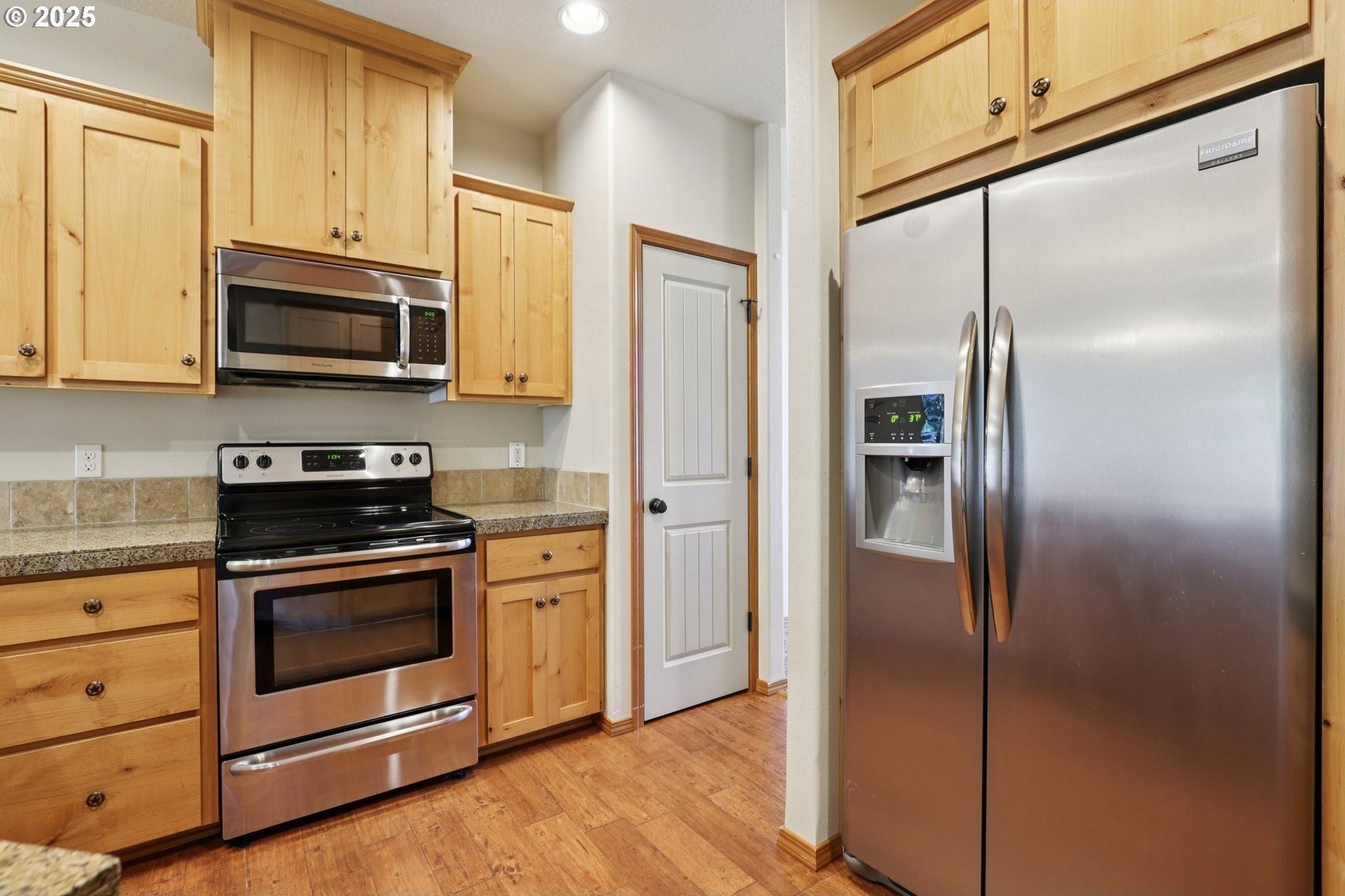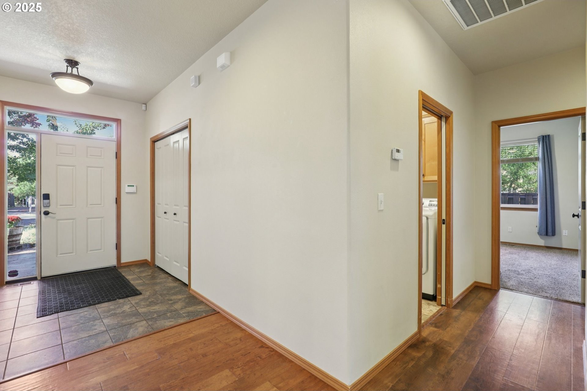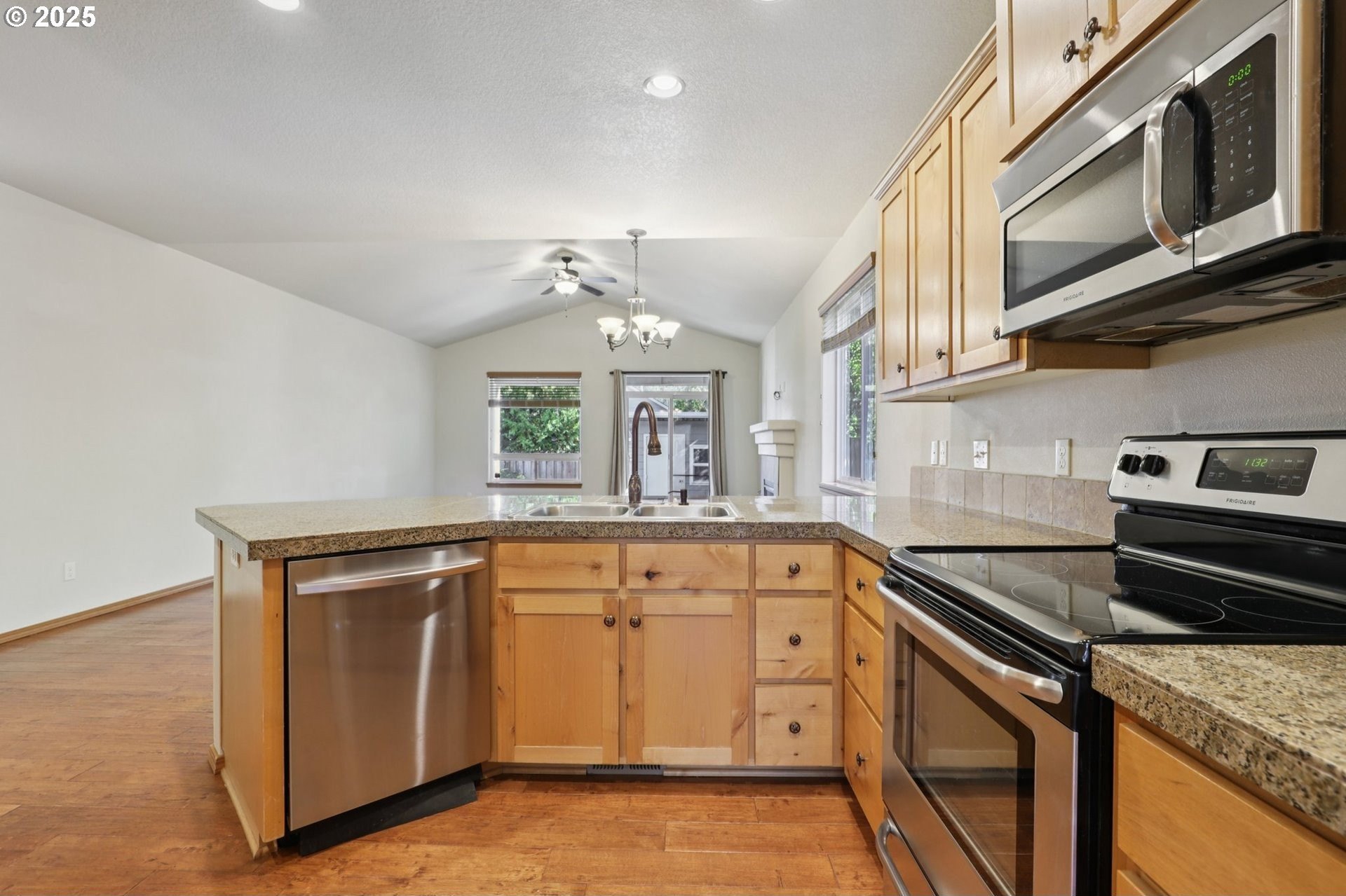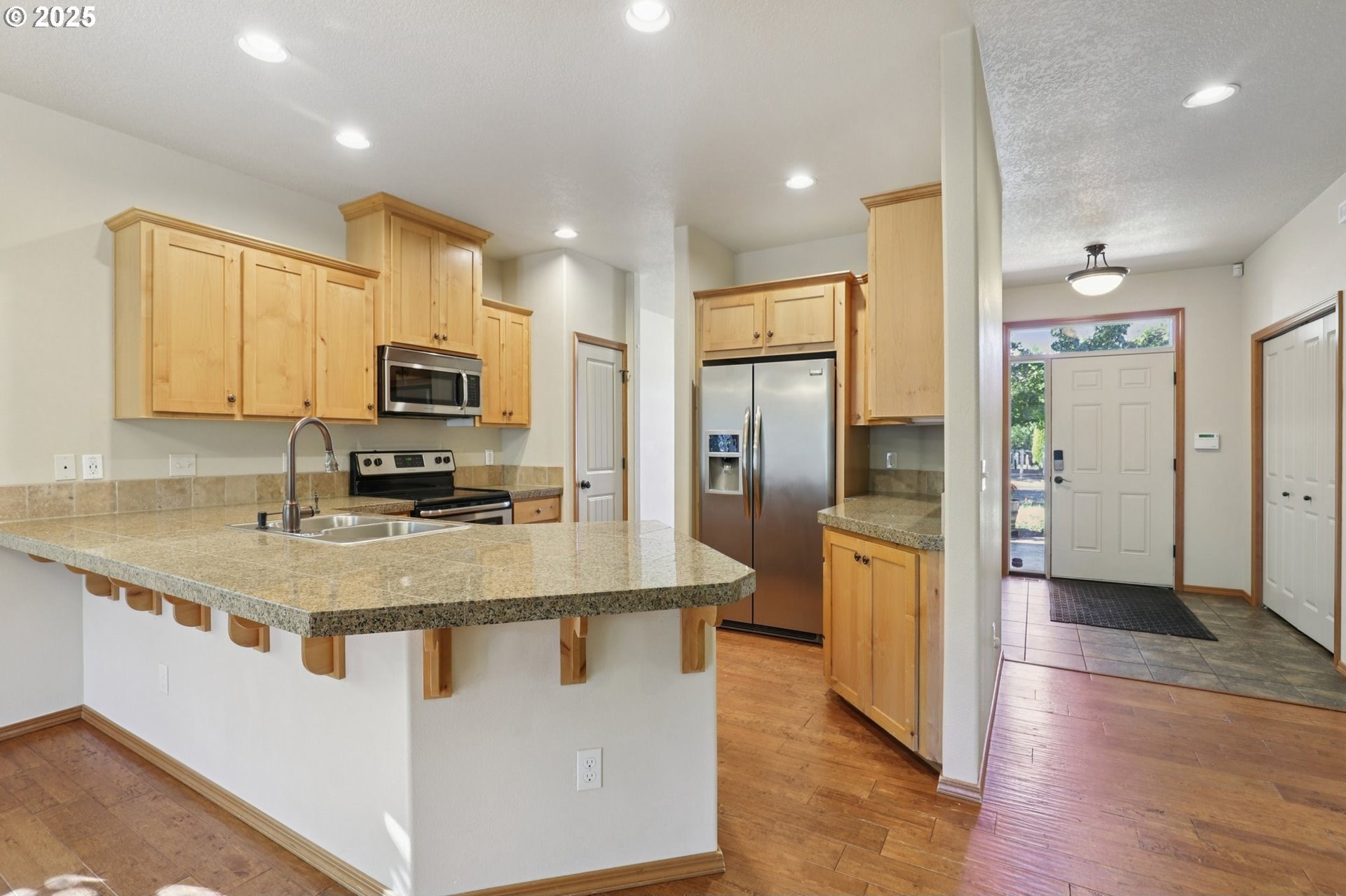 Experience the charm and versatility of this Craftsman-style single-level home at 18274 Antler Ave, where comfort and thoughtful design come together in an inviting setting. Ideal for anyone seeking flexible living options, this detached home beautifully blends signature details like a vaulted great-room ceiling and a gas fireplace with slate surround, creating an atmosphere that feels both spacious and welcoming from the moment you step inside.The open great-room floor plan encourages effortless flow between the living, dining, and kitchen areas, perfect for hosting gatherings or savoring quiet nights at home. A den or flex space at the entry offers endless possibilities for a home office or cozy retreat. In the kitchen, stainless appliances, a pantry, refrigerator, disposal, eating bar, and modern tile backsplash make meal preparation a pleasure, while the seamless integration with the living space ensures you stay connected to every moment. Retreat to a master bedroom thoughtfully designed for comfort, complete with a walk-in closet and an accessible walk-in shower—showing attention to convenience at every turn. Everyday details like laundry and garage access on the main floor, plus an AC unit and a leased security system, offer true peace of mind and effortless living.Enjoy alfresco meals or morning coffee beneath the covered patio, plumbed for a gas BBQ and designed to extend your living area outdoors all year round. The sprinkler system keeps landscaping low-maintenance, freeing up more time to relax and entertain. The single-level layout enhances accessibility and encourages easy movement throughout the entire home.Located in Sandy, this residence provides a retreat while keeping you connected to local amenities and community conveniences. Here, you can enjoy all the benefits of a well-crafted home that adapts to your unique lifestyle, whether you need space for productivity, relaxation, or entertaining. Schedule your private showing today!!!