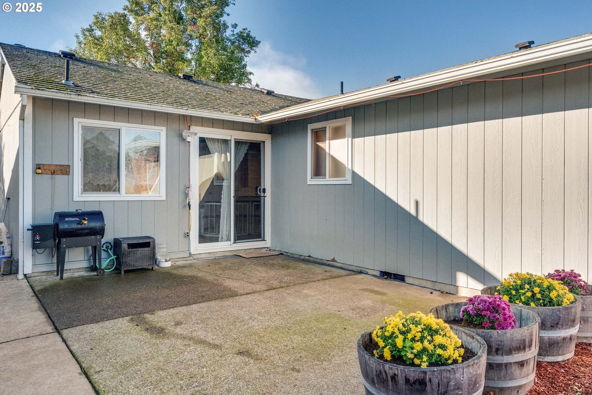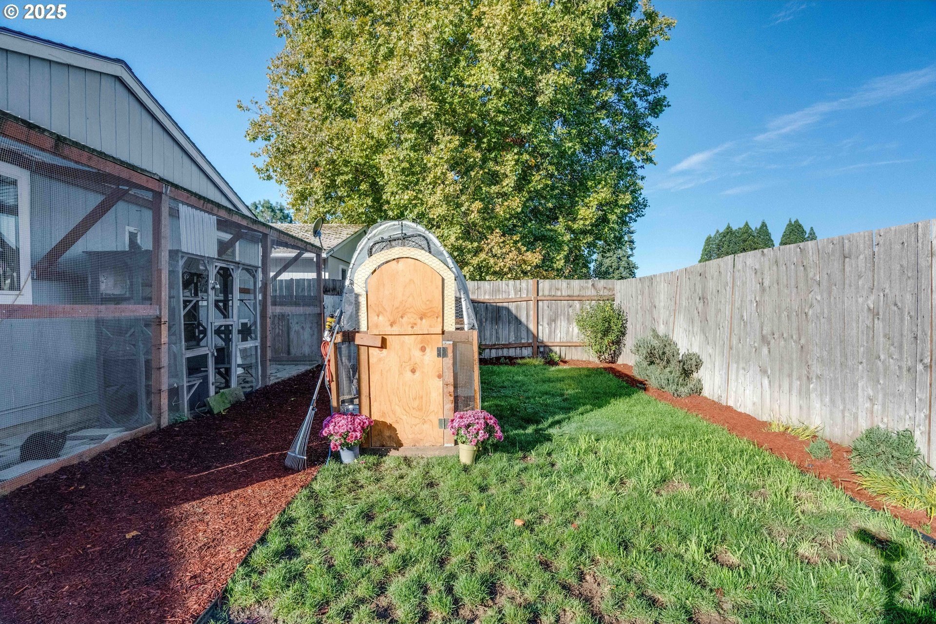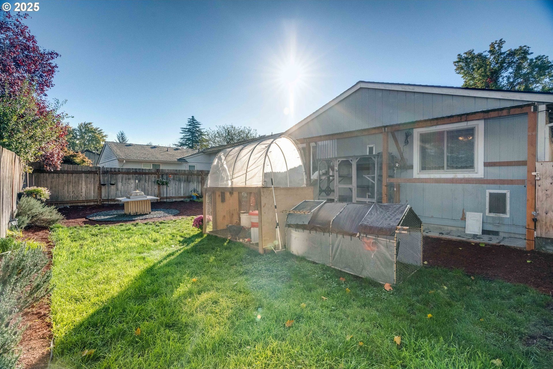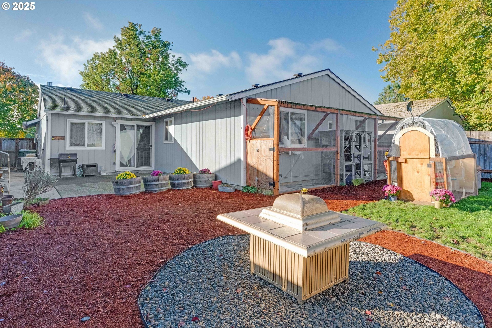 Welcome to this beautifully maintained single-level home in the heart of Newberg! Step inside to an inviting living room just off the entryway that flows into an open-concept kitchen and dining area featuring stainless steel appliances and elegant chair rail molding accents. The dining area opens through a sliding glass door to a lovely backyard patio, perfect for relaxing or entertaining. Enjoy the nicely landscaped, fully fenced yard complete with a dog run, chicken coop and a catio — a rare find for animal lovers! Down the hall, you’ll find a full bathroom and comfortable bedrooms, including a primary suite with an ensuite bath featuring a walk-in shower. With an attached two-car garage and great curb appeal, this move-in-ready home radiates pride of ownership and Newberg charm.