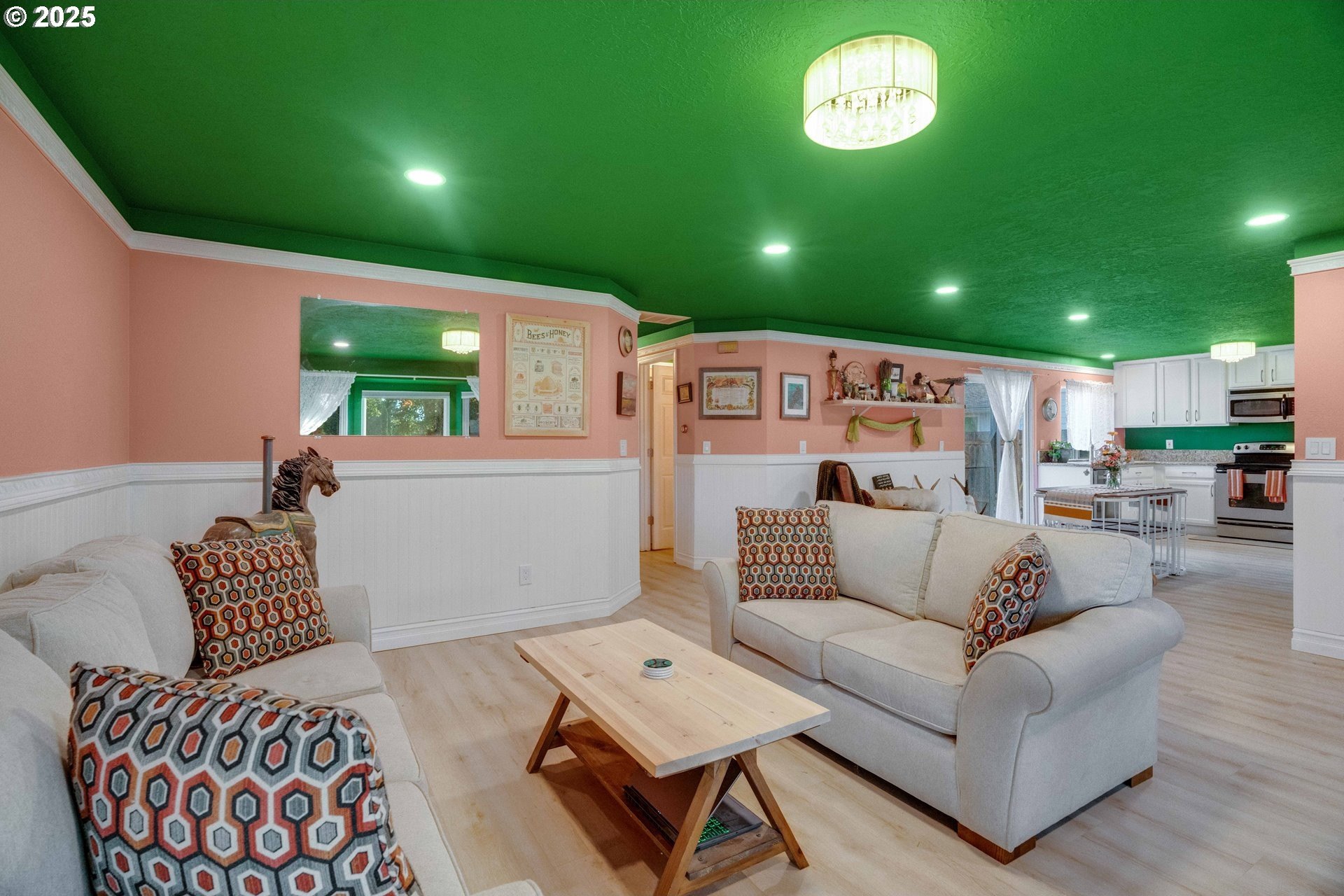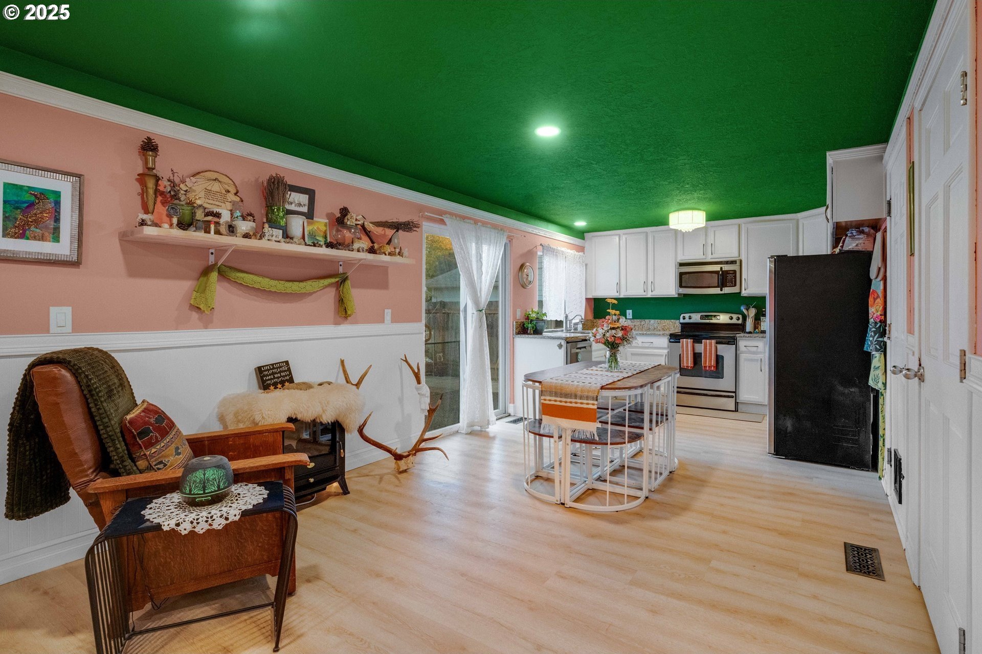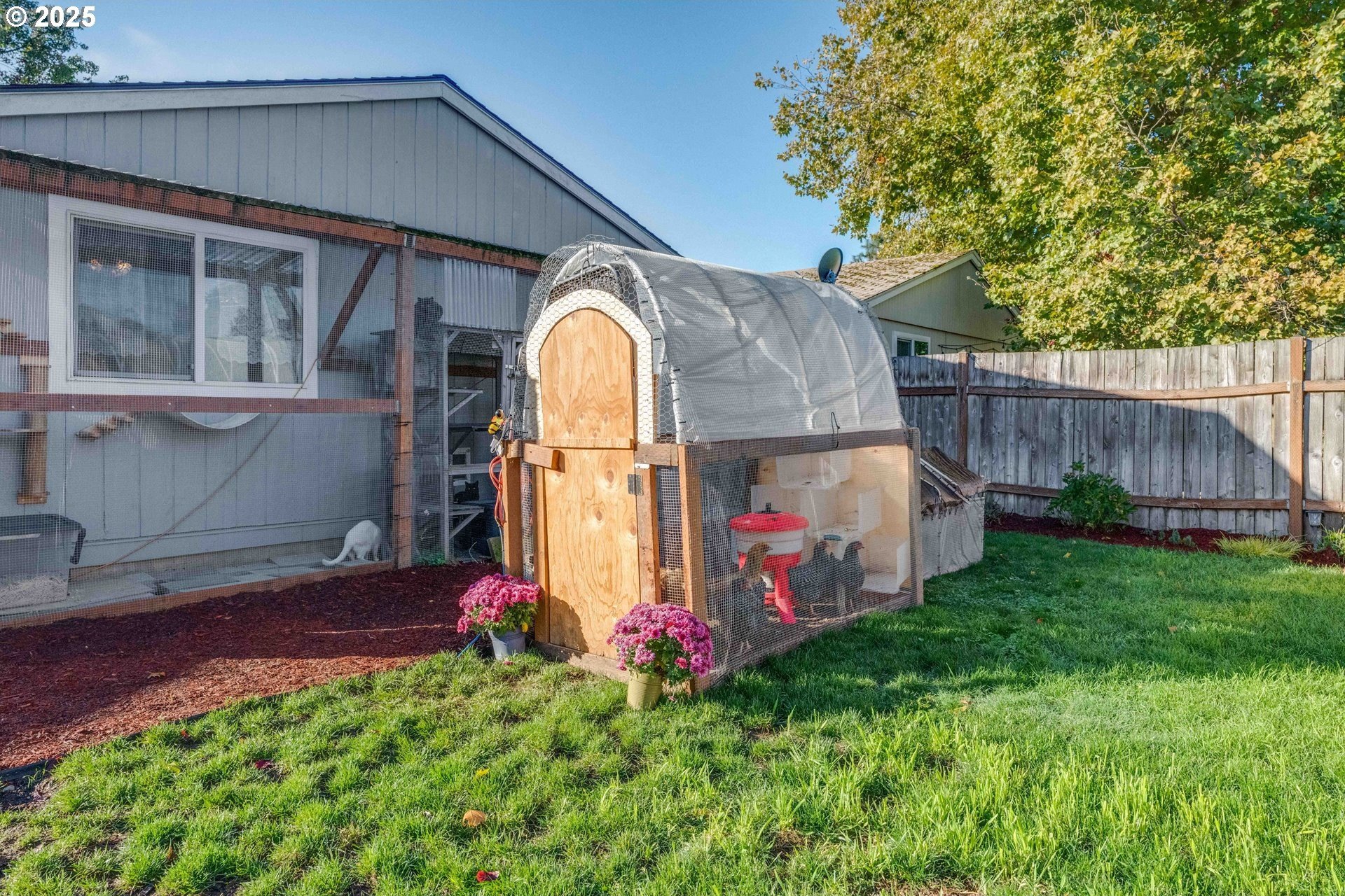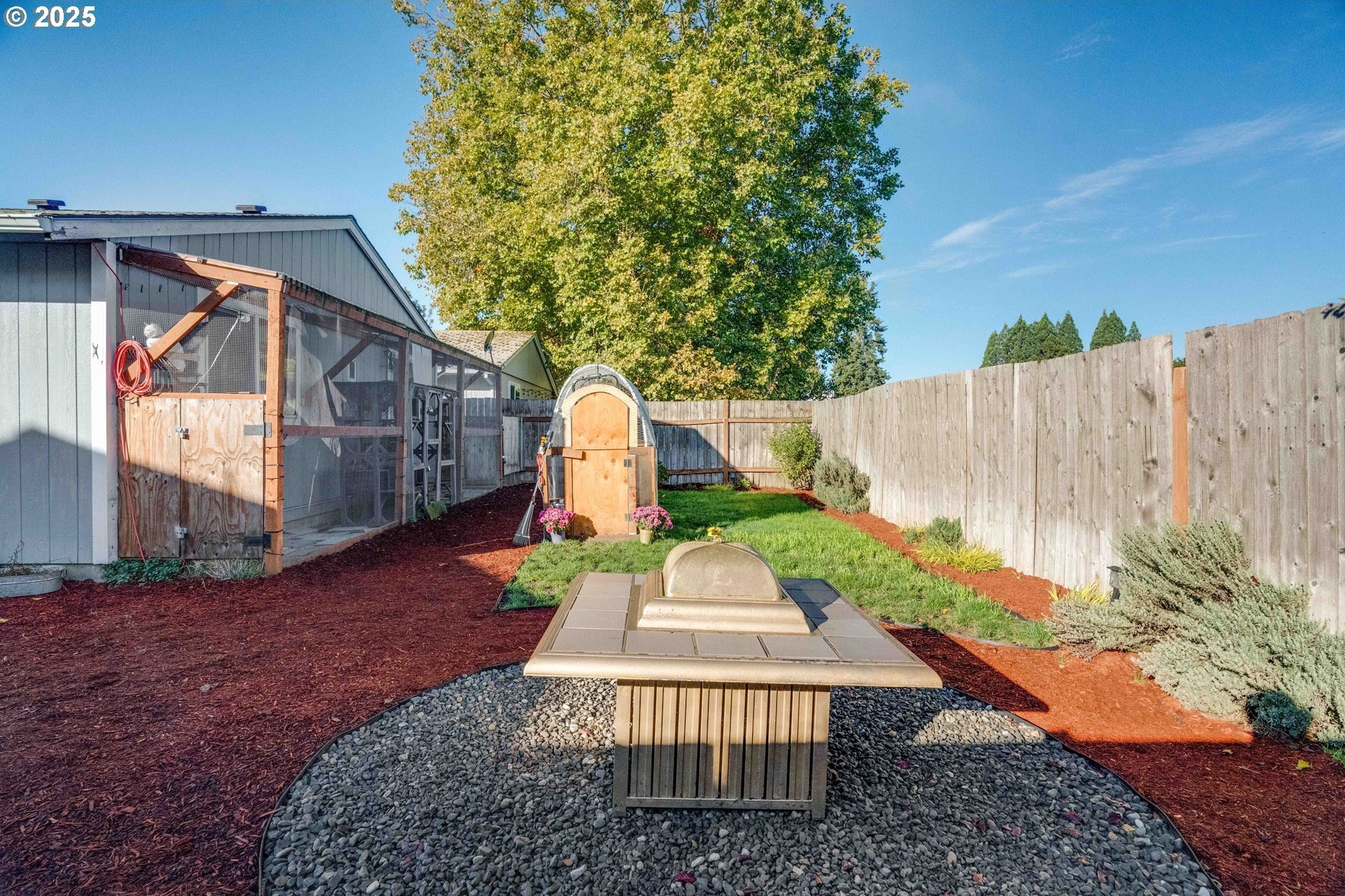 Welcome to this beautifully maintained single-level home in the heart of Newberg! Step inside to an inviting living room just off the entryway that flows into an open-concept kitchen and dining area featuring stainless steel appliances and elegant chair rail molding accents. The dining area opens through a sliding glass door to a lovely backyard patio, perfect for relaxing or entertaining. Enjoy the nicely landscaped, fully fenced yard complete with a dog run, chicken coop and a catio — a rare find for animal lovers! Down the hall, you’ll find a full bathroom and comfortable bedrooms, including a primary suite with an ensuite bath featuring a walk-in shower. With an attached two-car garage and great curb appeal, this move-in-ready home radiates pride of ownership and Newberg charm.