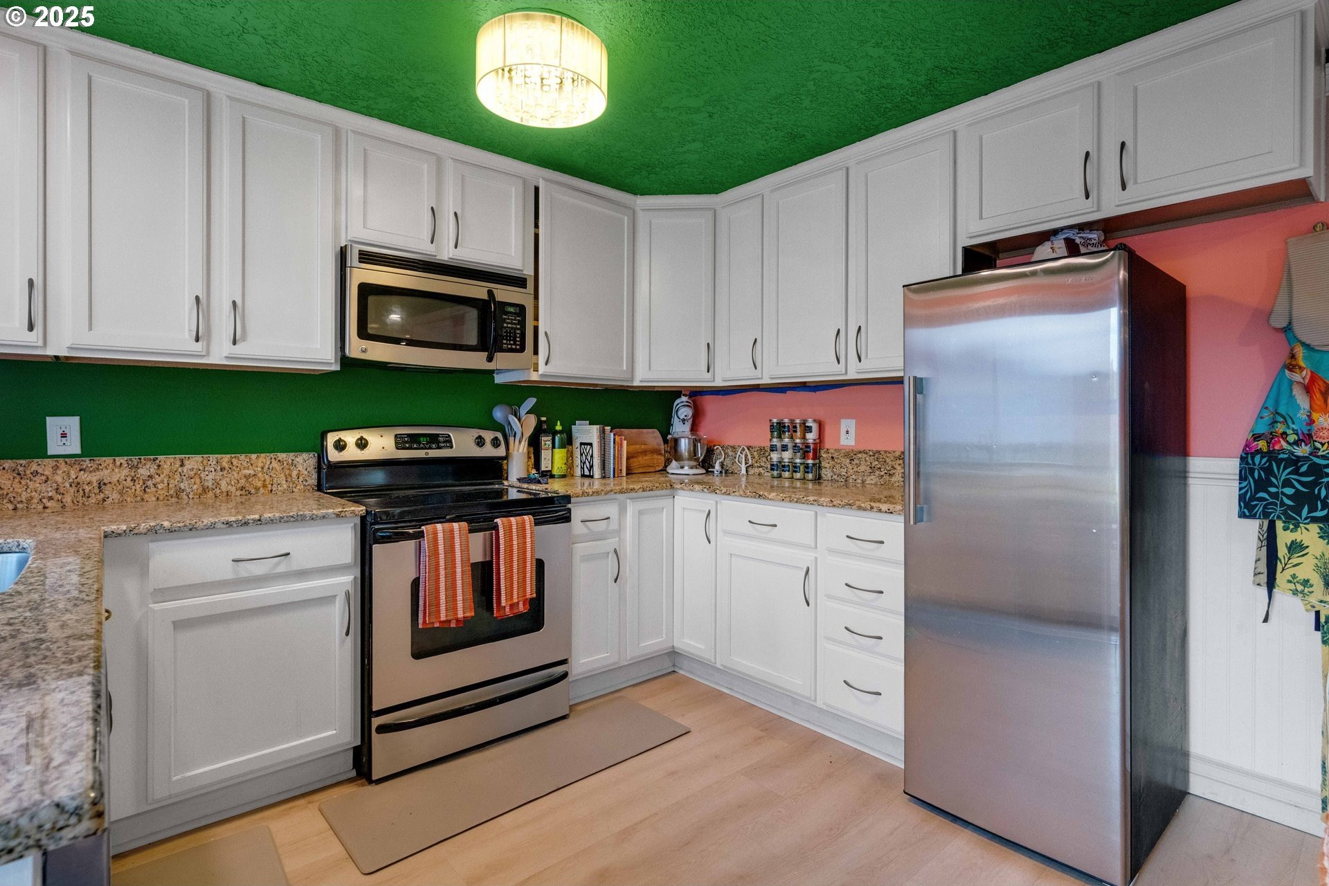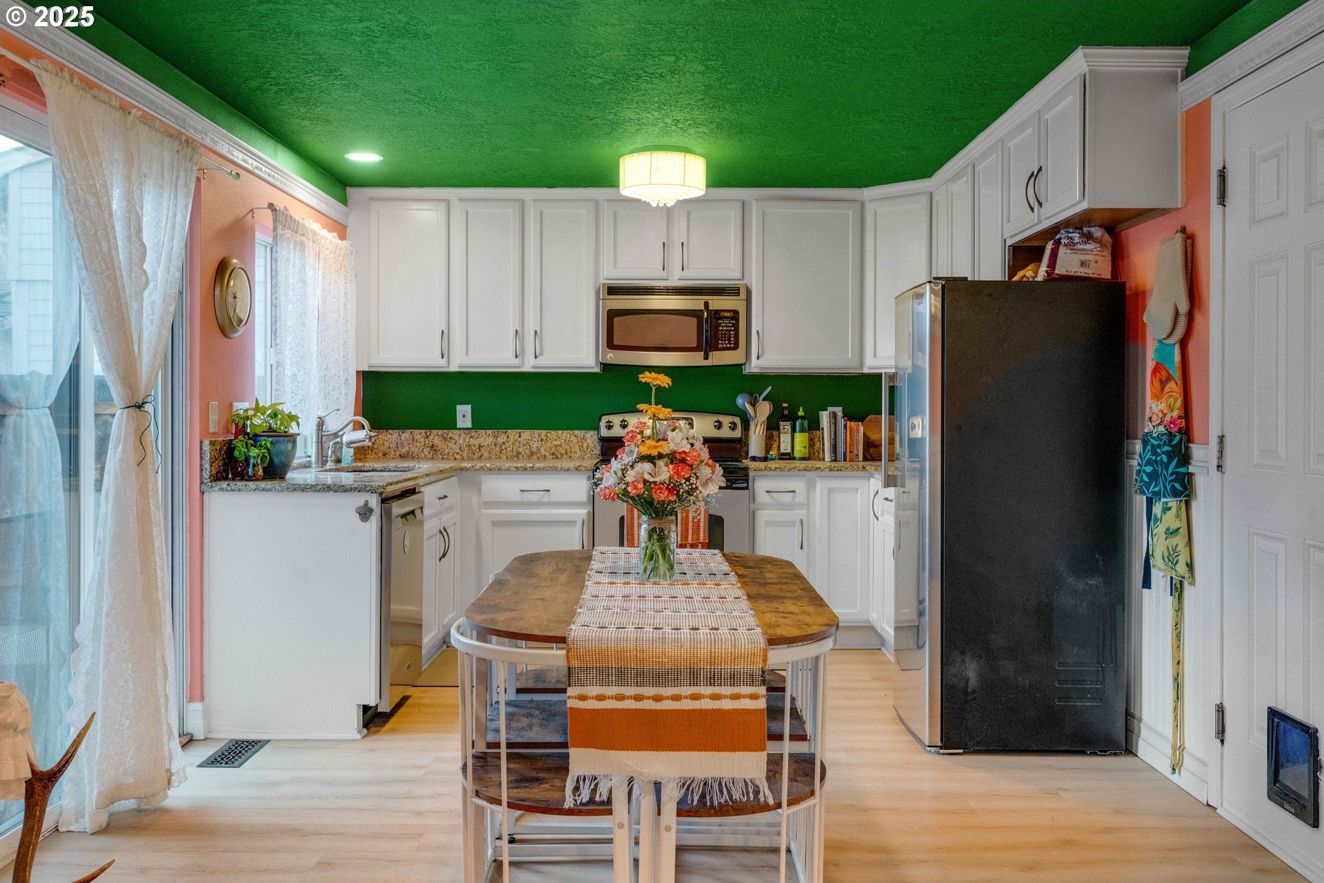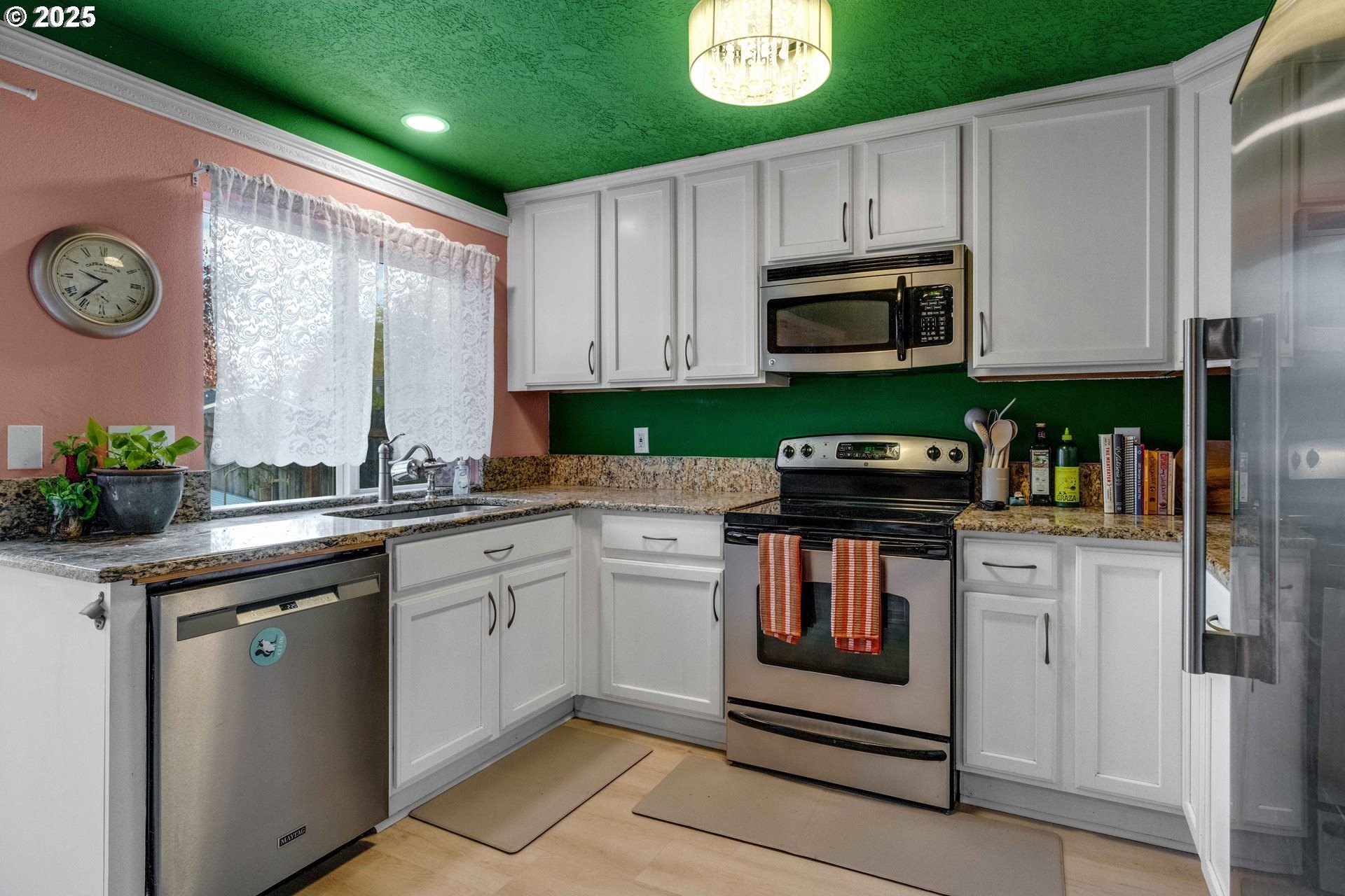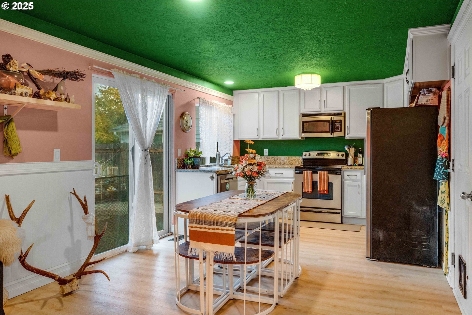 Welcome to this beautifully maintained single-level home in the heart of Newberg! Step inside to an inviting living room just off the entryway that flows into an open-concept kitchen and dining area featuring stainless steel appliances and elegant chair rail molding accents. The dining area opens through a sliding glass door to a lovely backyard patio, perfect for relaxing or entertaining. Enjoy the nicely landscaped, fully fenced yard complete with a dog run, chicken coop and a catio — a rare find for animal lovers! Down the hall, you’ll find a full bathroom and comfortable bedrooms, including a primary suite with an ensuite bath featuring a walk-in shower. With an attached two-car garage and great curb appeal, this move-in-ready home radiates pride of ownership and Newberg charm.