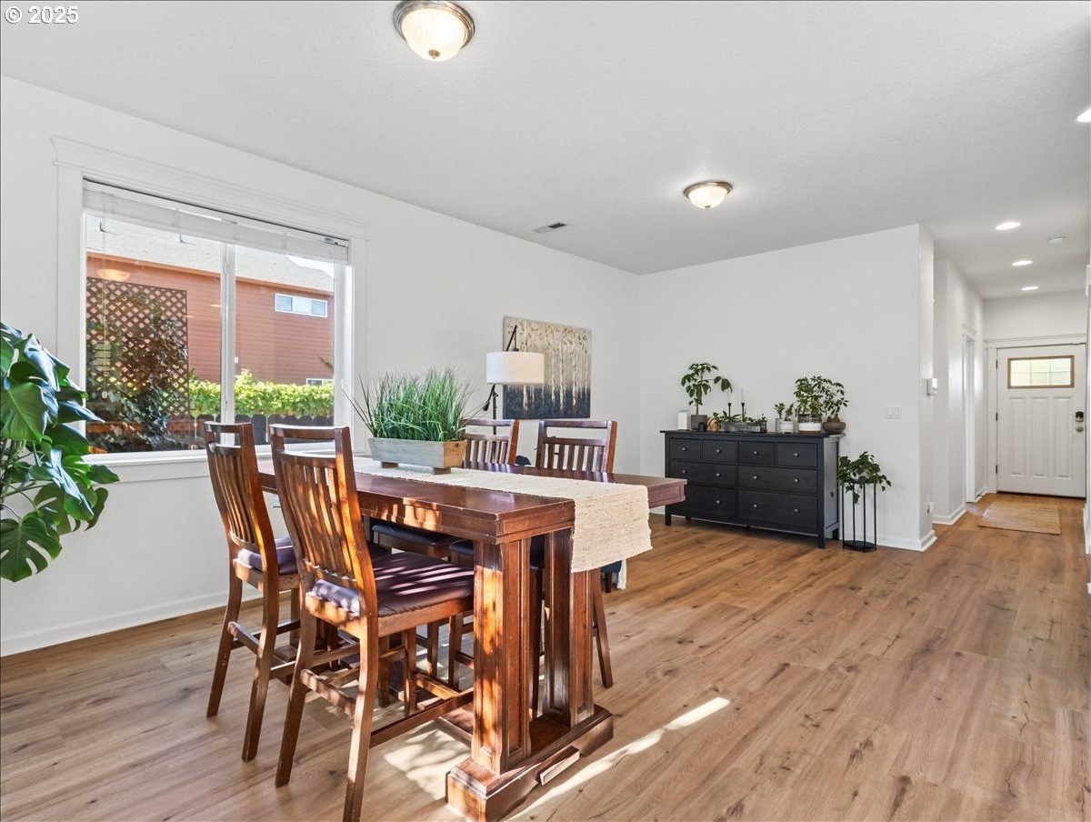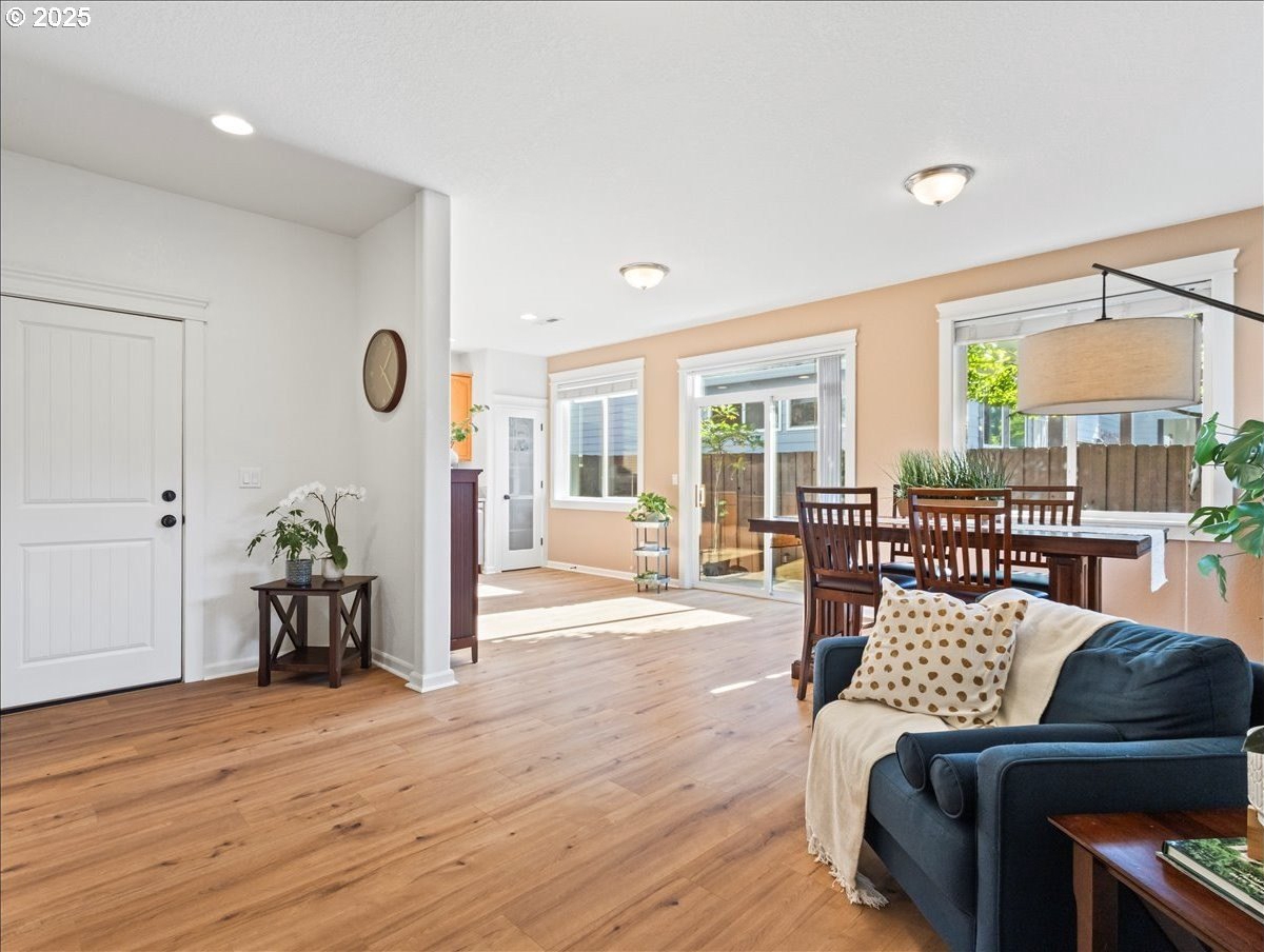 Welcome to this delightful and spacious contemporary home tucked away in a quiet neighborhood of newer homes. Offering 5 bedrooms + 3 full bathrooms, 9’ ceilings and oversized double-pane windows; It features an easy living open-concept floorplan that is filled with natural light, perfect for today’s routines and lifestyle. An expansive kitchen, equipped with stainless steel appliances, stone countertops and pantry flows seamlessly into the dining and living rooms creating the ideal setting for gathering or entertaining. Upstairs, you will find four generously sized bedrooms, including a bright and airy primary suite with a vaulted ceiling in addition to a full hall bath complete with an enclosed laundry area. A versatile office space/bonus room with a closet located on the main level as well as a full bathroom offer the potential for a main-floor bedroom or flexibility for guests. Outside, you will find a fully fenced, low-maintenance yard and charming slab patio—perfect for morning coffee or evening relaxation. Recent updates include new luxury plank flooring on the main level and carpet upstairs, making this home truly move-in ready. Just blocks from Gilbert Heights Park and Elementary School. NO HOA. This SE Portland home really is a must-see and priced to sell!