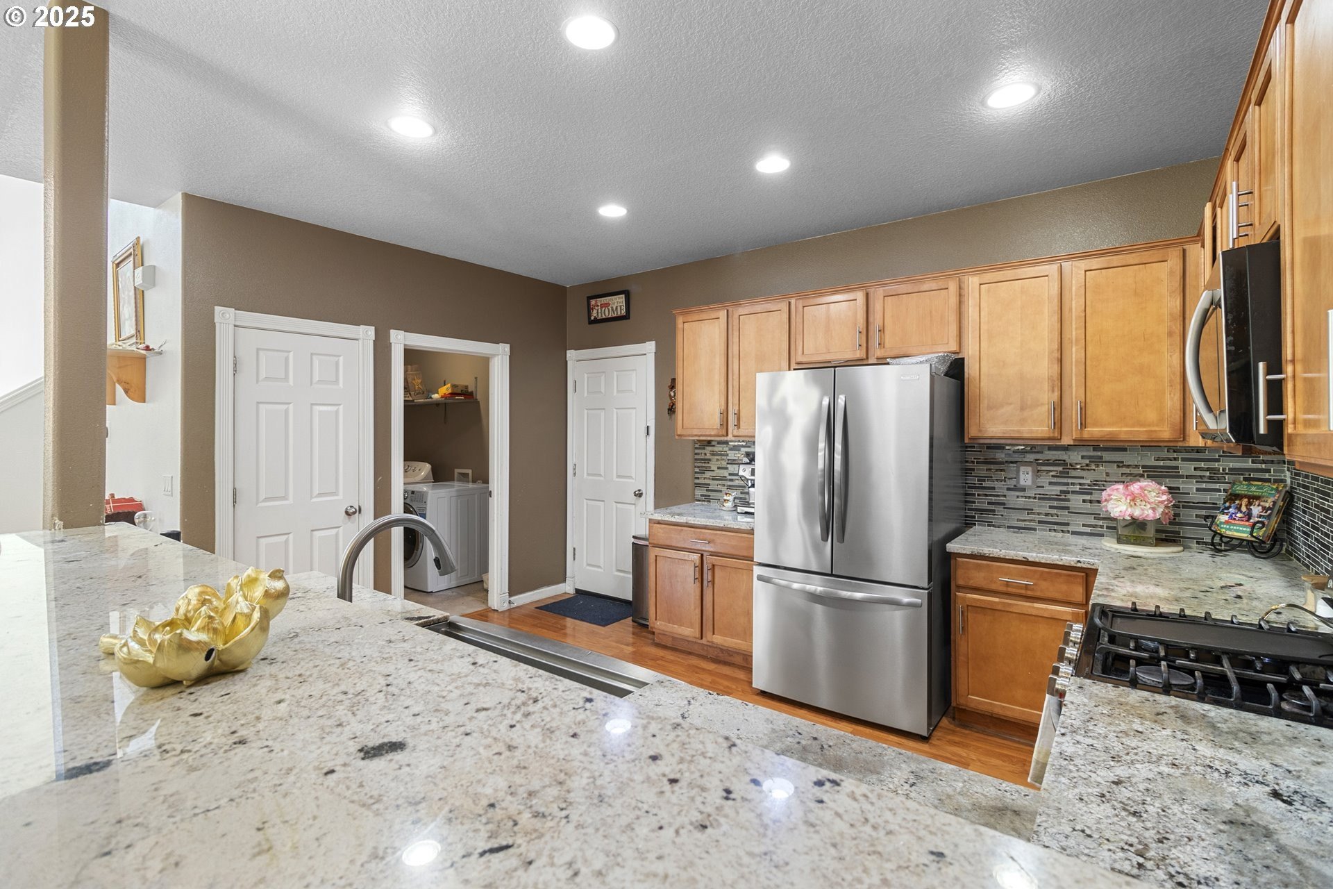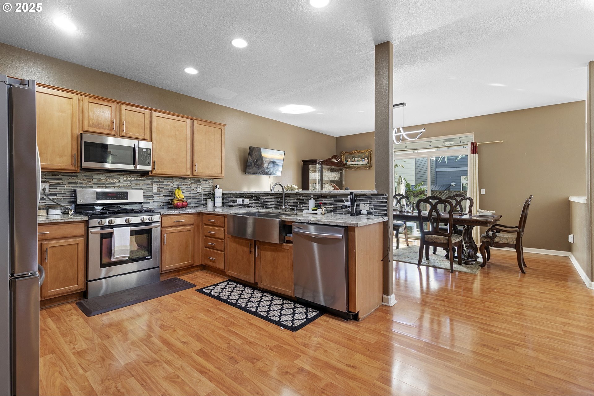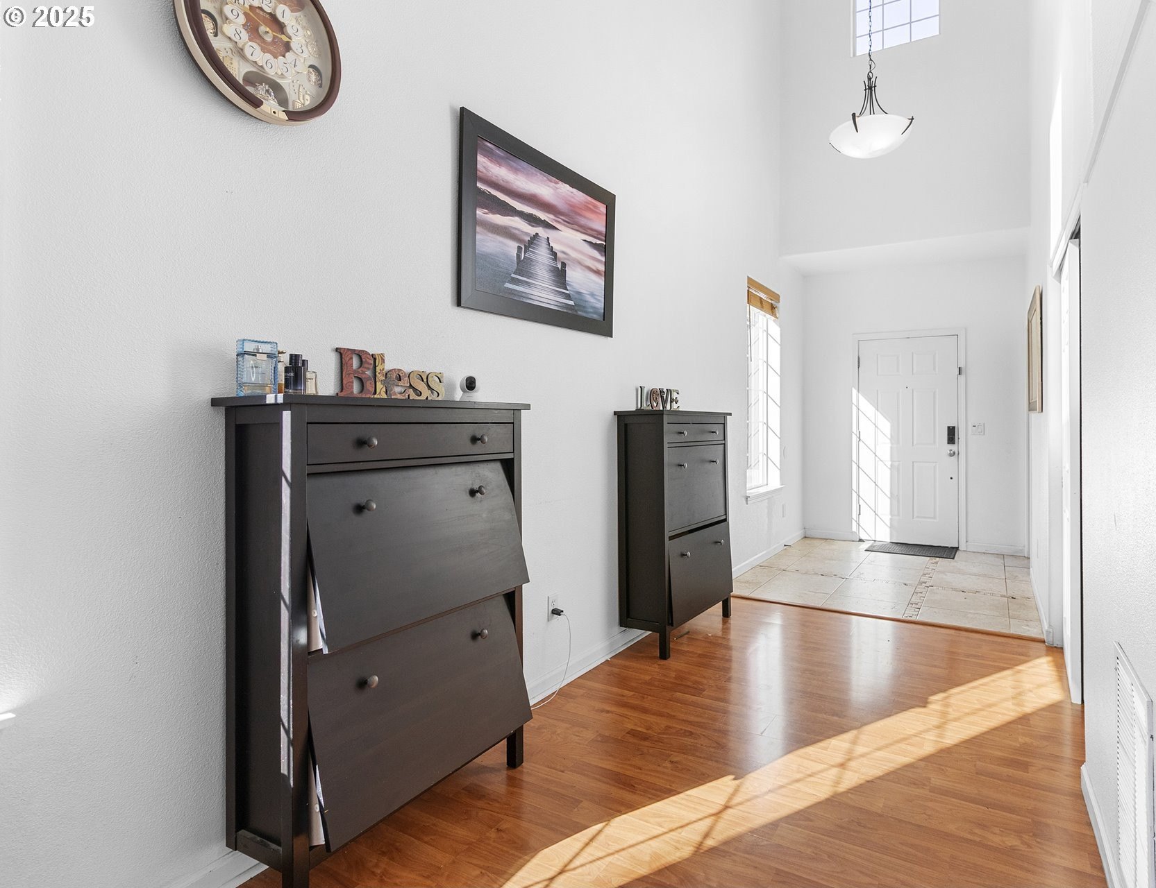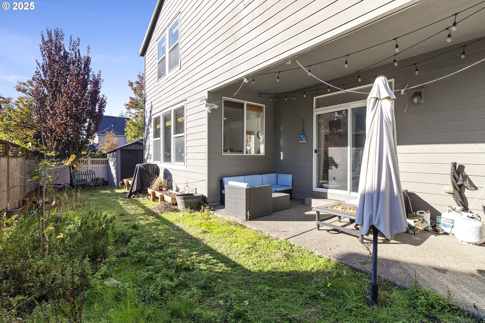 Welcome to this stunning home in Hillsboro’s desirable Oakhurst neighborhood! This beautifully updated residence offers 3 bedrooms plus an office/loft, 2.5 bathrooms, and nearly 2,200 sq. ft. of thoughtfully designed living space on a prime corner lot. With its spacious layout, smart home features, and bright, open interior, this home perfectly blends comfort, style, and functionality. The home greets you with a grand high-ceiling entry, offering a perfect blend of charm and elegance. The main level offers an inviting open-concept design that seamlessly connects the living, dining, and kitchen areas, along with a convenient laundry room—ideal for both entertaining and everyday living. The kitchen highlights stainless steel appliances, updated granite countertops, and a newer farmhouse sink, combining charm with practicality. Upstairs, the private primary suite provides a relaxing retreat with a walk-in closet and en-suite bath featuring dual vanities and a soaking tub. Two additional bedrooms and a versatile loft-style space offer endless possibilities—perfect for a home office, media room, or play area. Recent upgrades include a brand-new 2025 furnace, installed central air, and a smart Nest thermostat for comfort and energy efficiency. The backyard features a covered patio for outdoor enjoyment, while the garage includes a smart garage door opener and built-in storage cabinets. An additional backyard storage shed provides even more space for tools or hobbies.Conveniently located near neighborhood parks, top-rated schools, shopping, and major employers, this home offers the perfect combination of comfort, modern living, and location in one of Hillsboro’s most sought-after communities.