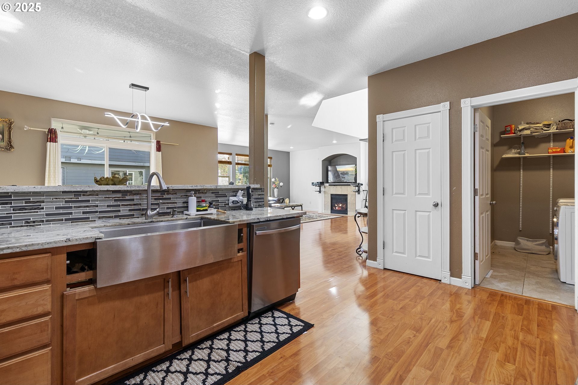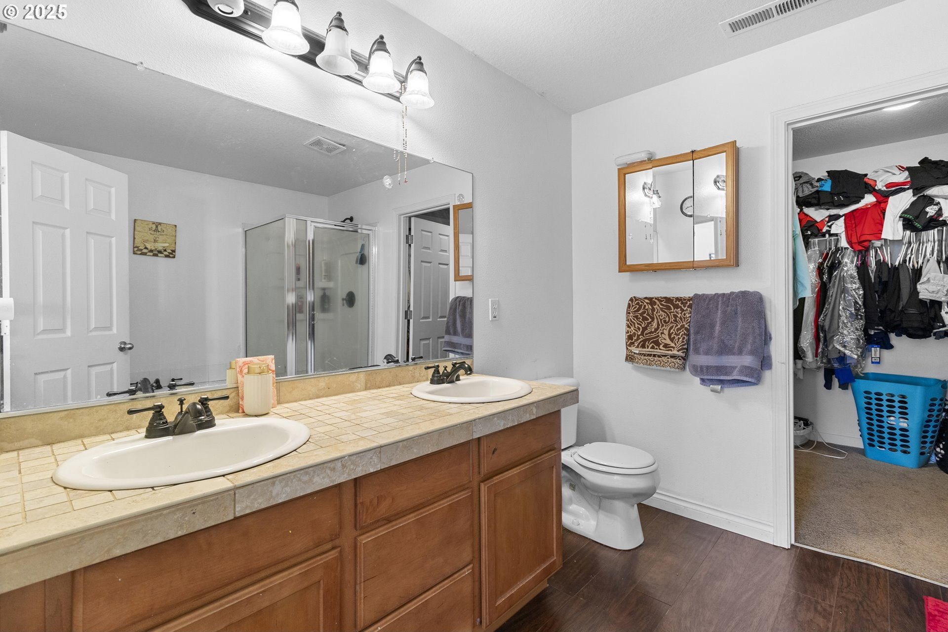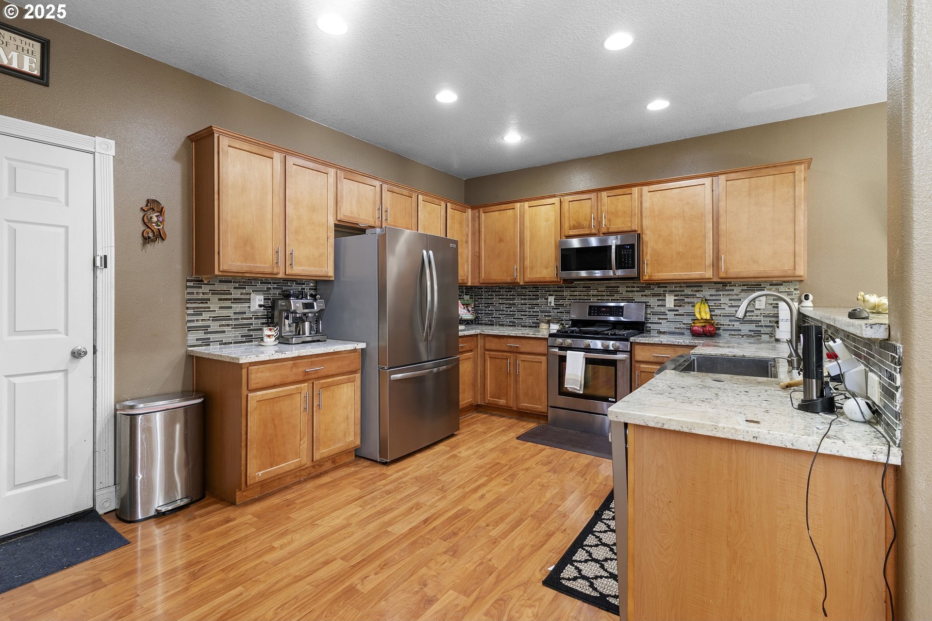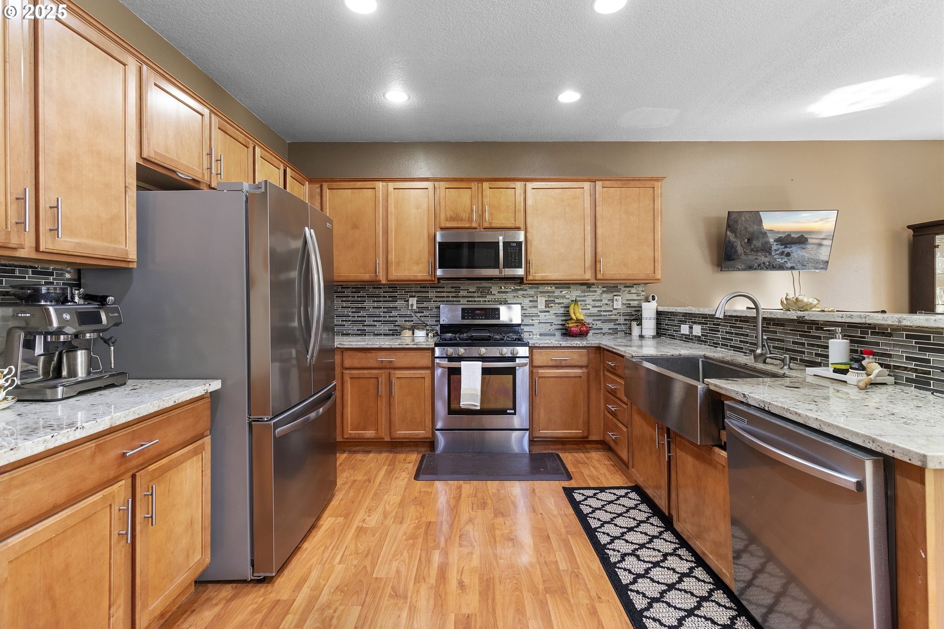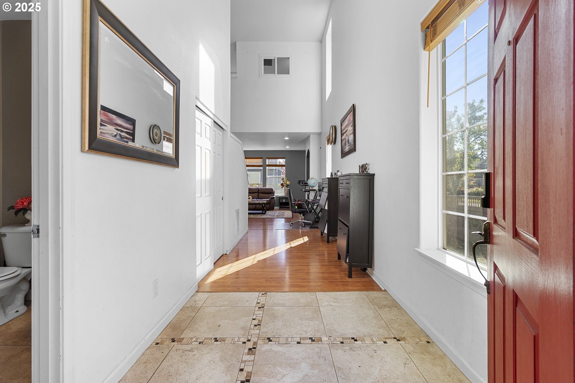 Welcome to this stunning home in Hillsboro’s desirable Oakhurst neighborhood! This beautifully updated residence offers 3 bedrooms plus an office/loft, 2.5 bathrooms, and nearly 2,200 sq. ft. of thoughtfully designed living space on a prime corner lot. With its spacious layout, smart home features, and bright, open interior, this home perfectly blends comfort, style, and functionality. The home greets you with a grand high-ceiling entry, offering a perfect blend of charm and elegance. The main level offers an inviting open-concept design that seamlessly connects the living, dining, and kitchen areas, along with a convenient laundry room—ideal for both entertaining and everyday living. The kitchen highlights stainless steel appliances, updated granite countertops, and a newer farmhouse sink, combining charm with practicality. Upstairs, the private primary suite provides a relaxing retreat with a walk-in closet and en-suite bath featuring dual vanities and a soaking tub. Two additional bedrooms and a versatile loft-style space offer endless possibilities—perfect for a home office, media room, or play area. Recent upgrades include a brand-new 2025 furnace, installed central air, and a smart Nest thermostat for comfort and energy efficiency. The backyard features a covered patio for outdoor enjoyment, while the garage includes a smart garage door opener and built-in storage cabinets. An additional backyard storage shed provides even more space for tools or hobbies.Conveniently located near neighborhood parks, top-rated schools, shopping, and major employers, this home offers the perfect combination of comfort, modern living, and location in one of Hillsboro’s most sought-after communities.