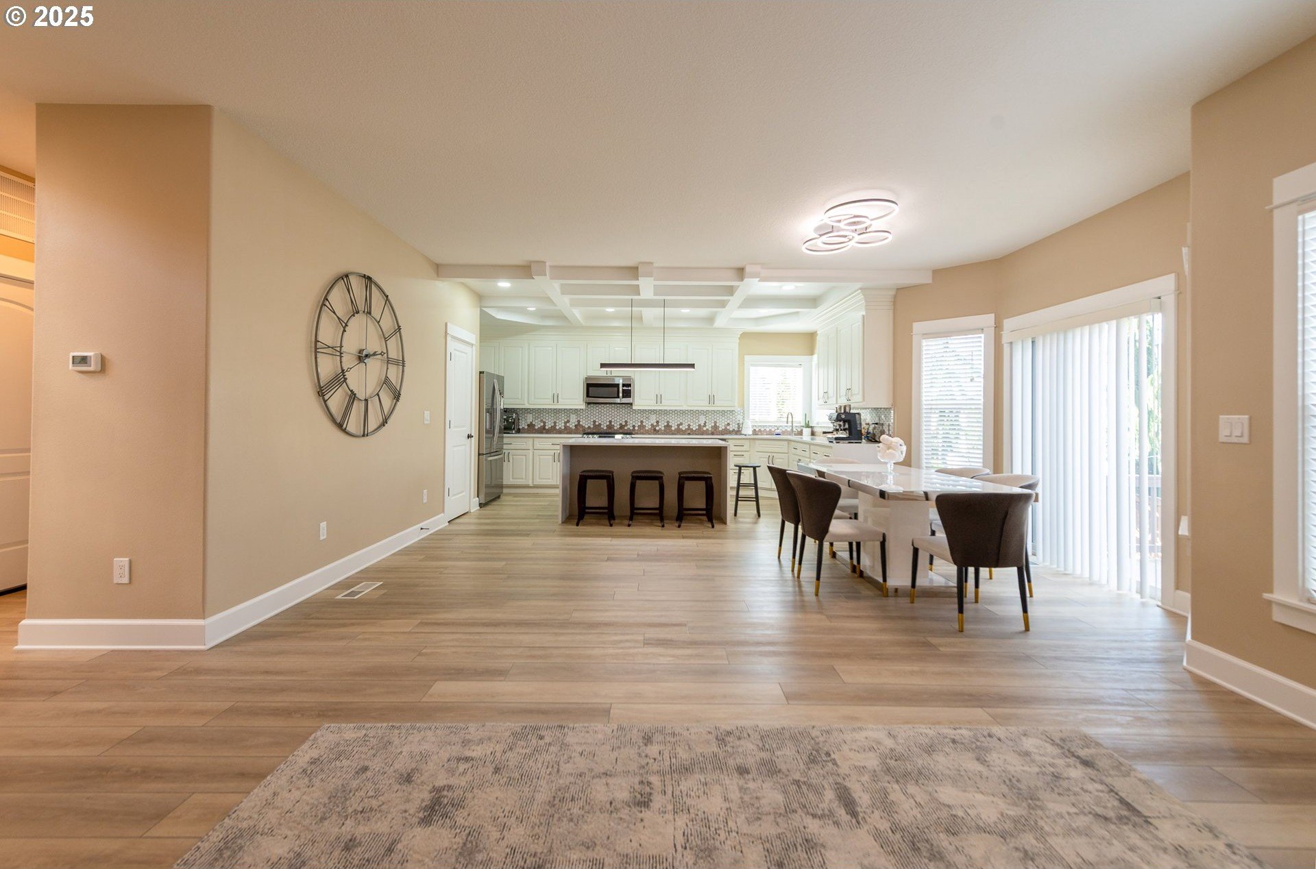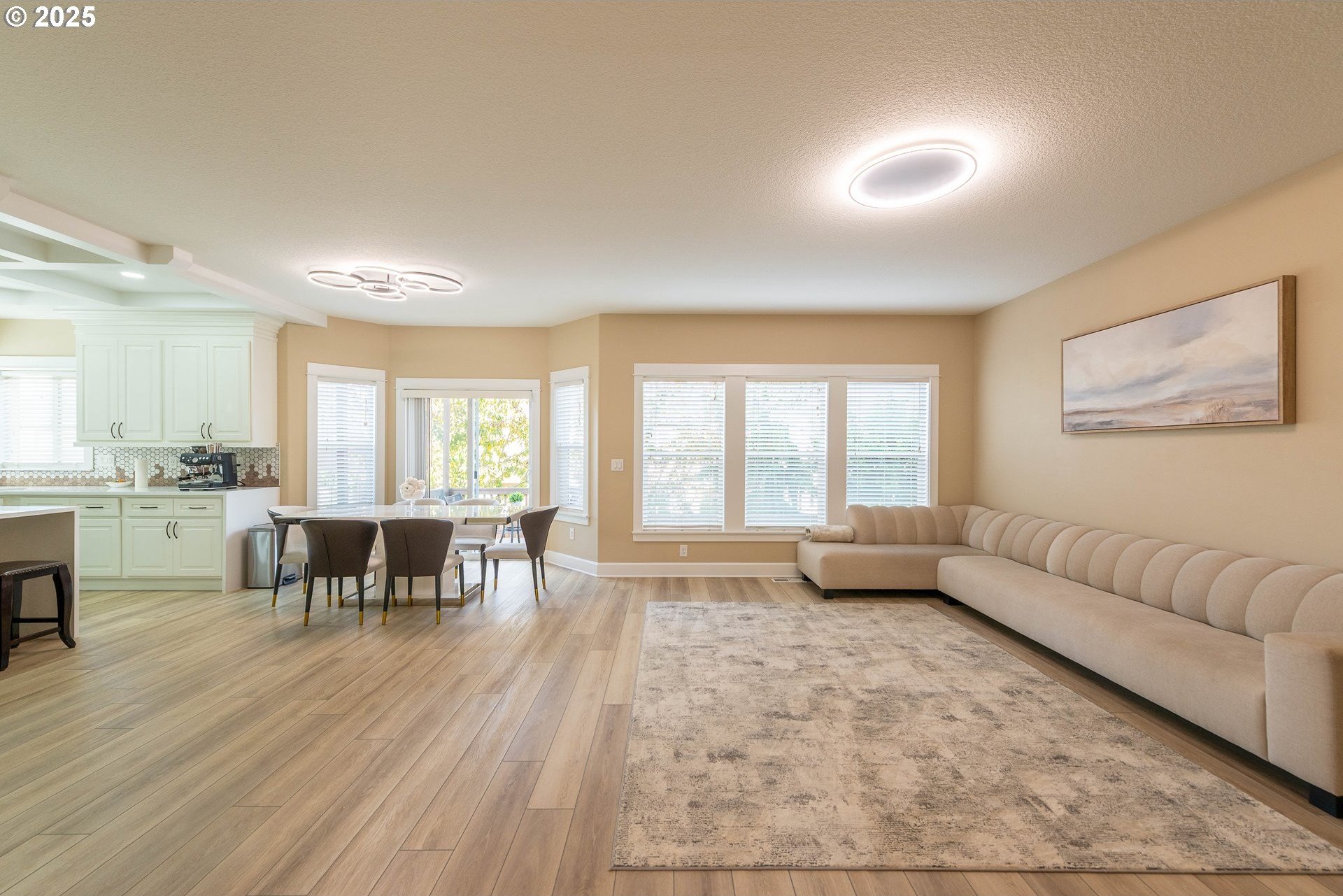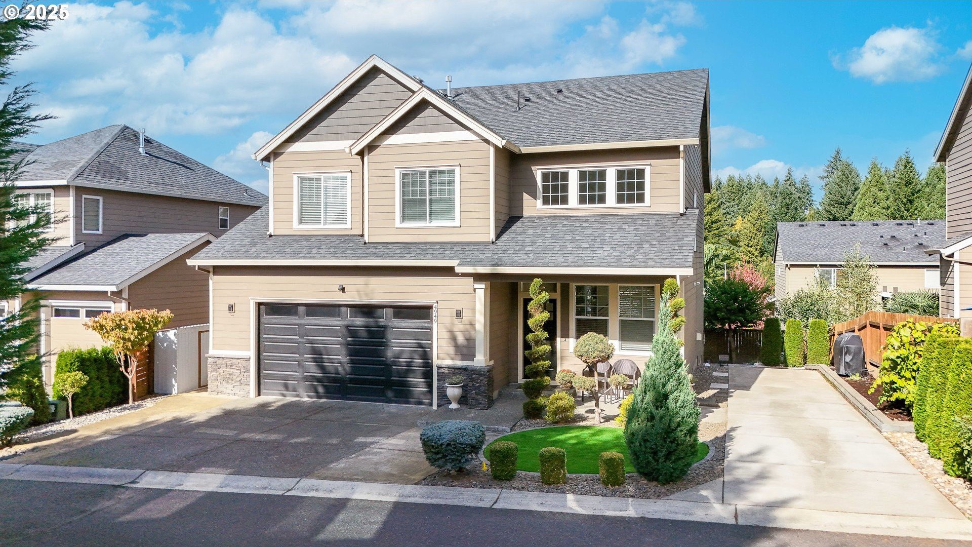 Here is what you’ve been looking for—a spacious, beautifully updated home that effortlessly blends privacy, style, and modern comfort. Nestled at the end of a peaceful dead-end street, this home offers the serenity of a retreat with all the conveniences of vibrant city living.Step inside and discover a thoughtfully designed interior where every detail has been carefully curated. The open staircase and 9-foot ceilings on both floors create a bright, airy flow throughout, while waterproof luxury vinyl plank flooring adds both beauty and durability to every room.The remodeled kitchen is a true centerpiece—featuring elegant slabs, a striking backsplash, custom cabinetry, and architectural beams that add warmth and character. Gather in the living room by the remodeled gas fireplace and in a family room with seeming everlasting tall ceiling, or unwind in one of the modernized bathrooms, all freshly updated with stylish finishes.Retreat to the primary suite, a private haven enhanced with a custom accent wall, designer lighting, and a reimagined closet for maximum functionality. Throughout the home, you’ll find new lighting fixtures, extra outlets for convenience, and added roof vents to enhance comfort and efficiency.The attention to detail continues outdoors with easy-care landscaping featuring lush artificial turf, a concrete backyard with ambient lighting, a tranquil fountain, and a wood-burning fire pit—perfect for relaxing or entertaining. The space is tastefully zoned, offering both beauty and practicality, complete with RV parking and a storage/tool shed.Car enthusiasts and hobbyists will love the oversized garage, outfitted with new LED stick lights, ample shelving, extra outlets, a cozy fireplace, and a 240V EV charger. The RV-driveway accommodates up to seven vehicles, making entertaining effortless.This home truly has it all—style, function, and modern luxury—ready to welcome you to a new chapter of comfortable, connected living.