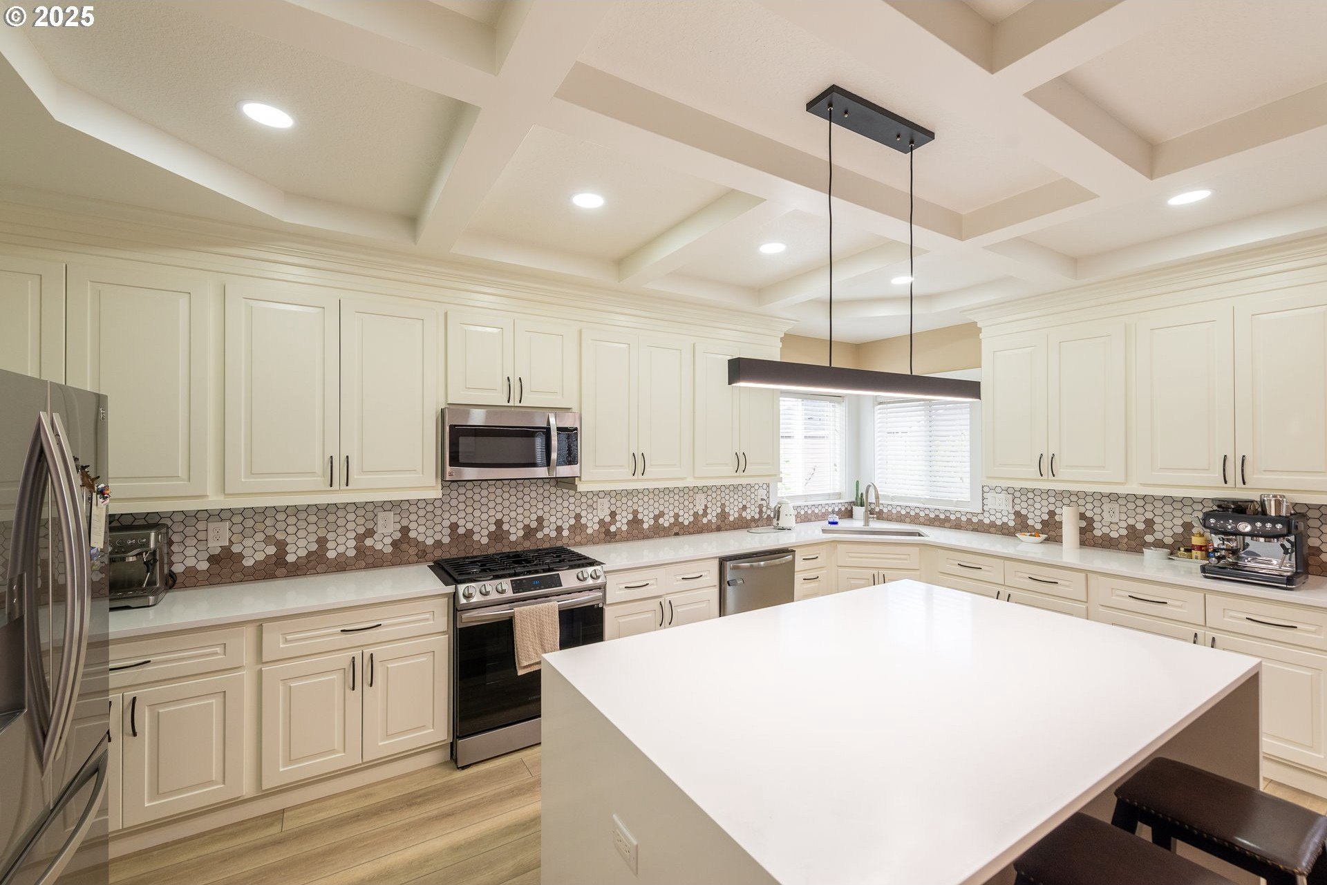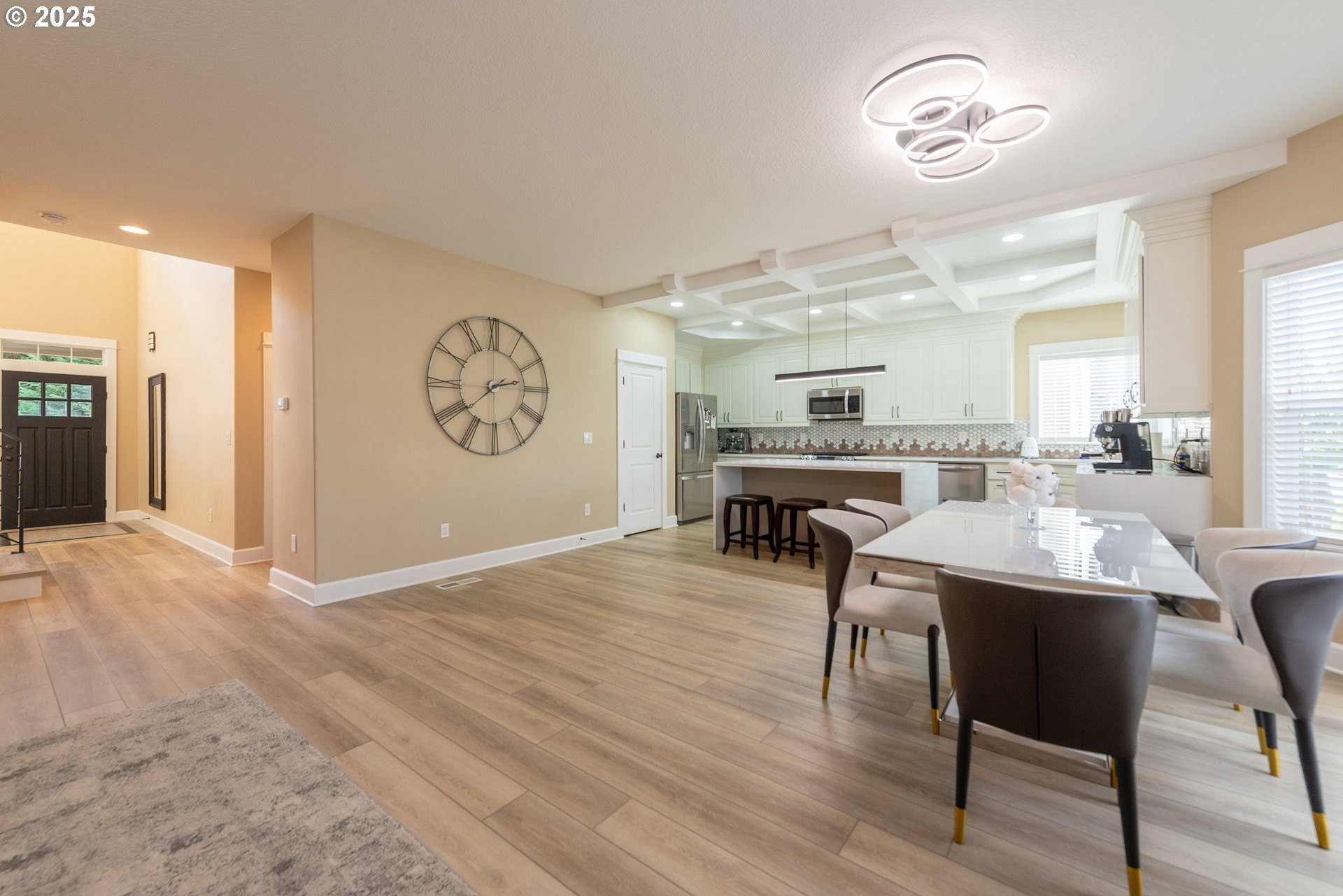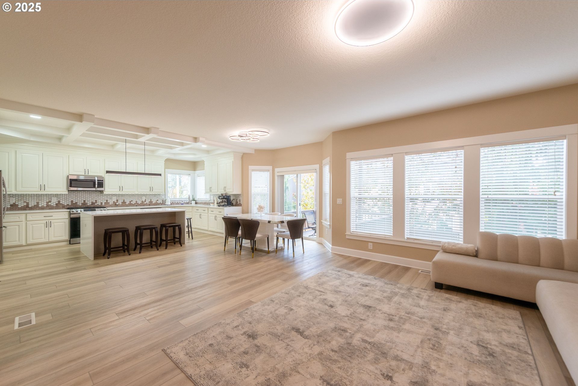 Here is what you’ve been looking for—a spacious, beautifully updated home that effortlessly blends privacy, style, and modern comfort. Nestled at the end of a peaceful dead-end street, this home offers the serenity of a retreat with all the conveniences of vibrant city living.Step inside and discover a thoughtfully designed interior where every detail has been carefully curated. The open staircase and 9-foot ceilings on both floors create a bright, airy flow throughout, while waterproof luxury vinyl plank flooring adds both beauty and durability to every room.The remodeled kitchen is a true centerpiece—featuring elegant slabs, a striking backsplash, custom cabinetry, and architectural beams that add warmth and character. Gather in the living room by the remodeled gas fireplace and in a family room with seeming everlasting tall ceiling, or unwind in one of the modernized bathrooms, all freshly updated with stylish finishes.Retreat to the primary suite, a private haven enhanced with a custom accent wall, designer lighting, and a reimagined closet for maximum functionality. Throughout the home, you’ll find new lighting fixtures, extra outlets for convenience, and added roof vents to enhance comfort and efficiency.The attention to detail continues outdoors with easy-care landscaping featuring lush artificial turf, a concrete backyard with ambient lighting, a tranquil fountain, and a wood-burning fire pit—perfect for relaxing or entertaining. The space is tastefully zoned, offering both beauty and practicality, complete with RV parking and a storage/tool shed.Car enthusiasts and hobbyists will love the oversized garage, outfitted with new LED stick lights, ample shelving, extra outlets, a cozy fireplace, and a 240V EV charger. The RV-driveway accommodates up to seven vehicles, making entertaining effortless.This home truly has it all—style, function, and modern luxury—ready to welcome you to a new chapter of comfortable, connected living.