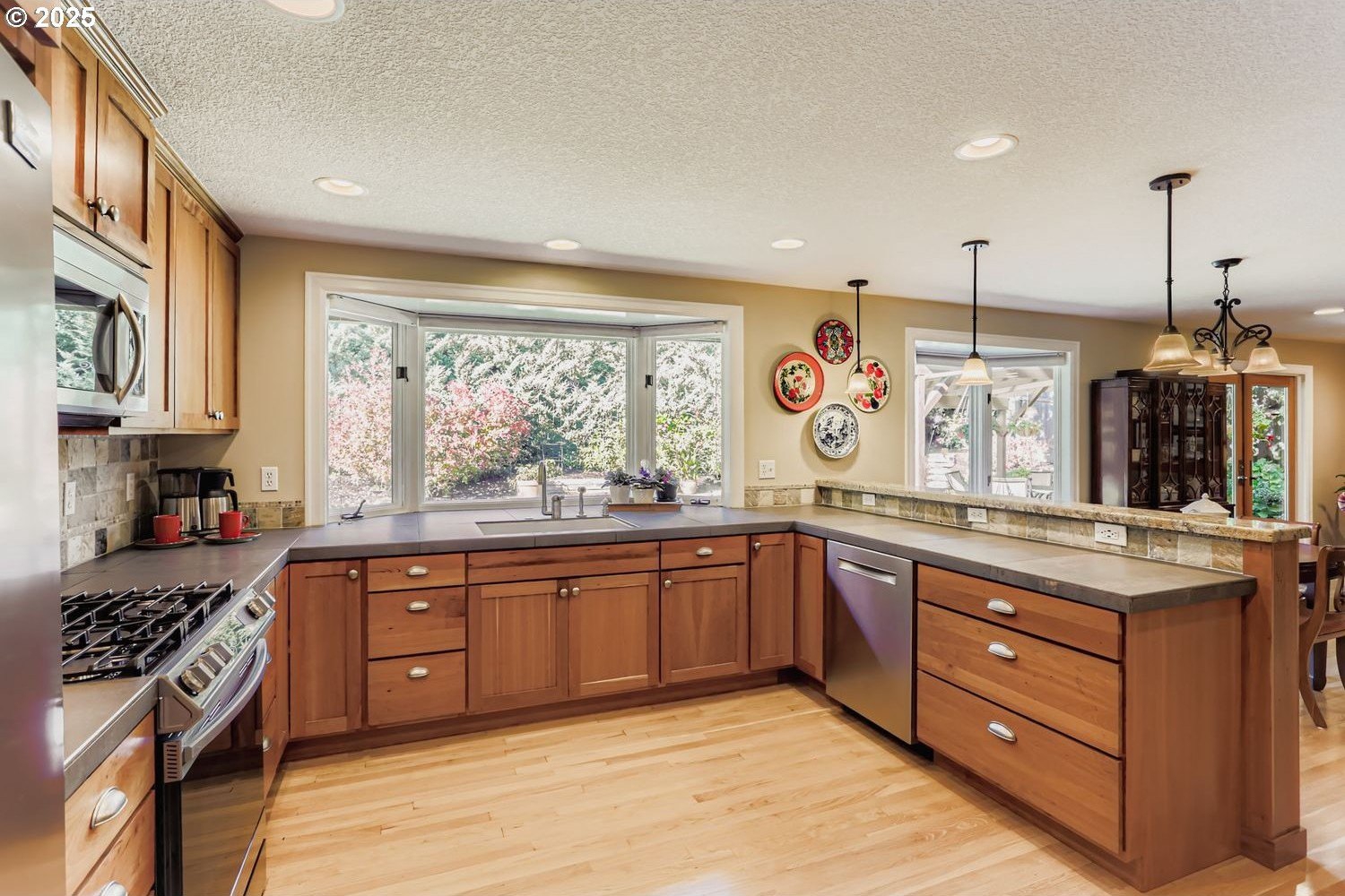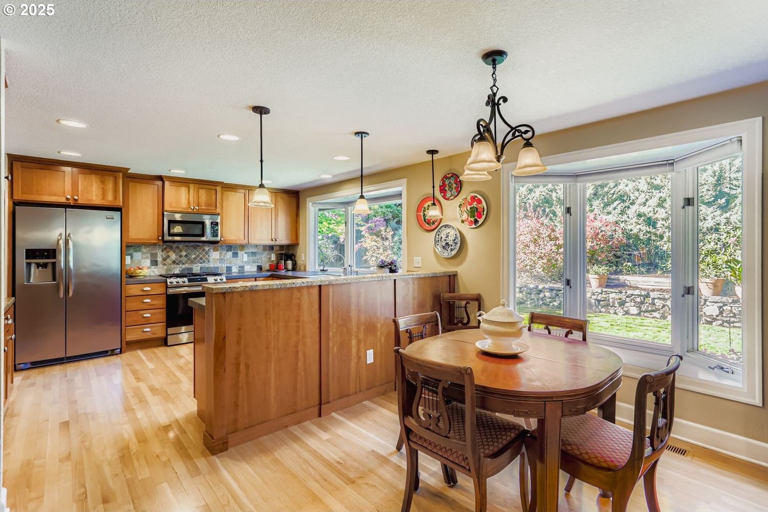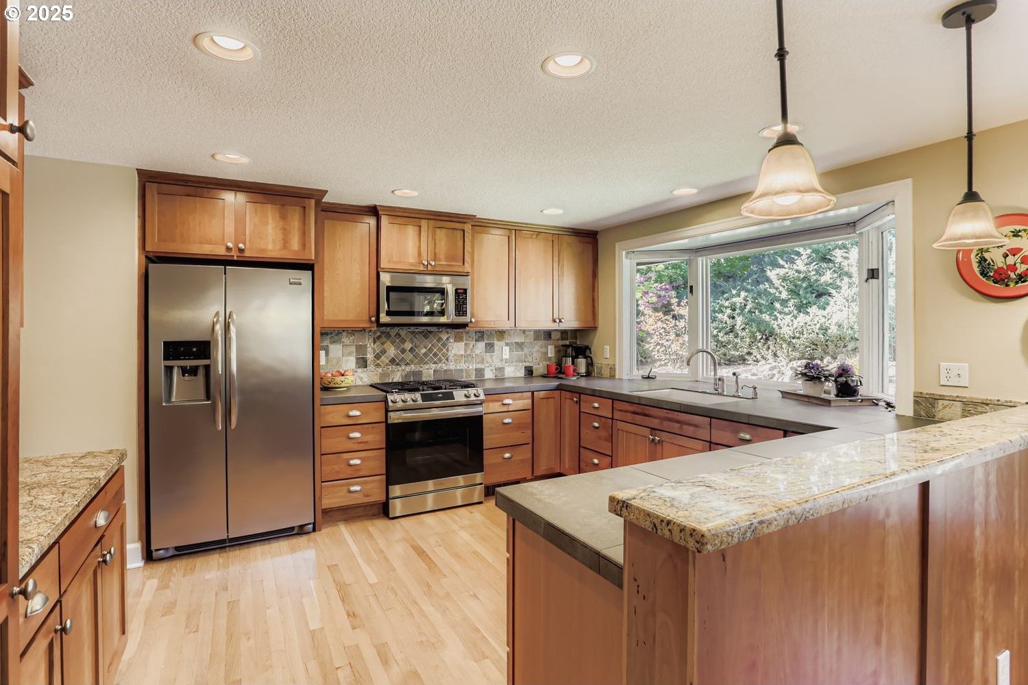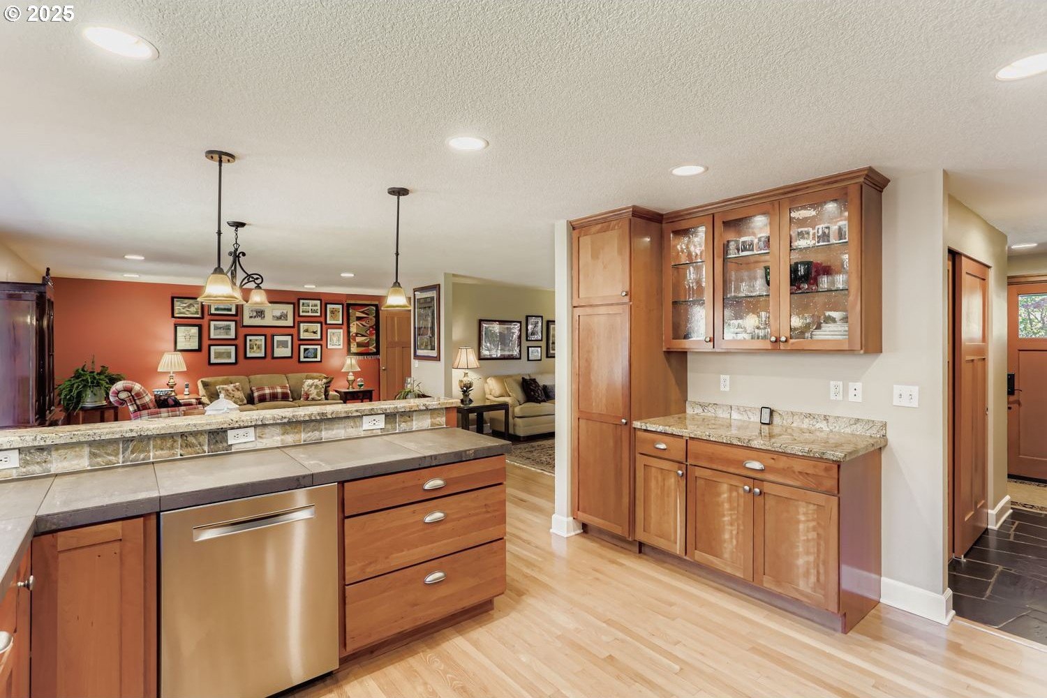 Ideally situated on a quiet, loop street, this Oak Hills ranch offers an exceptionally private greenspace lot, just steps from community amenities, including the pool and rec center. The home has been meticulously maintained and fully updated with extensive hardwood floors, substantial white millwork, an open-concept layout, remodeled kitchen and bathrooms, new roof (2023) and more. With high-quality construction and numerous updates, it’s completely turn-key! Open-concept kitchen features shaker-style cherry cabinetry, stainless steel appliances, and granite breakfast bar. It flows seamlessly to the living spaces, ideal for entertaining. French doors introduce an oversized primary suite with hardwood floors, three closets, and ensuite bathroom with walk-in tile shower, tile floors, and updated vanity with slab counters. There are two more sizable bedrooms with hardwood floors. Incredible greenspace lot with outstanding privacy, covered paver patio, sprinklers, and water feature. Oak Hills is an unbeatable neighborhood with fantastic amenities, including neighborhood pools, rec center, playgrounds, greenspaces with extensive walking paths, community events, and more!