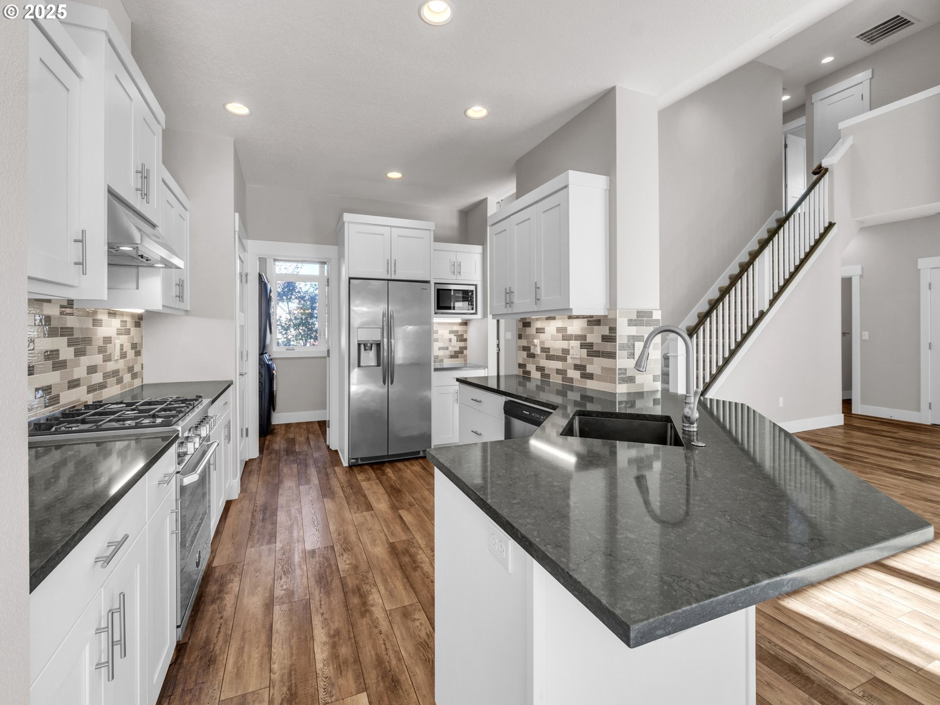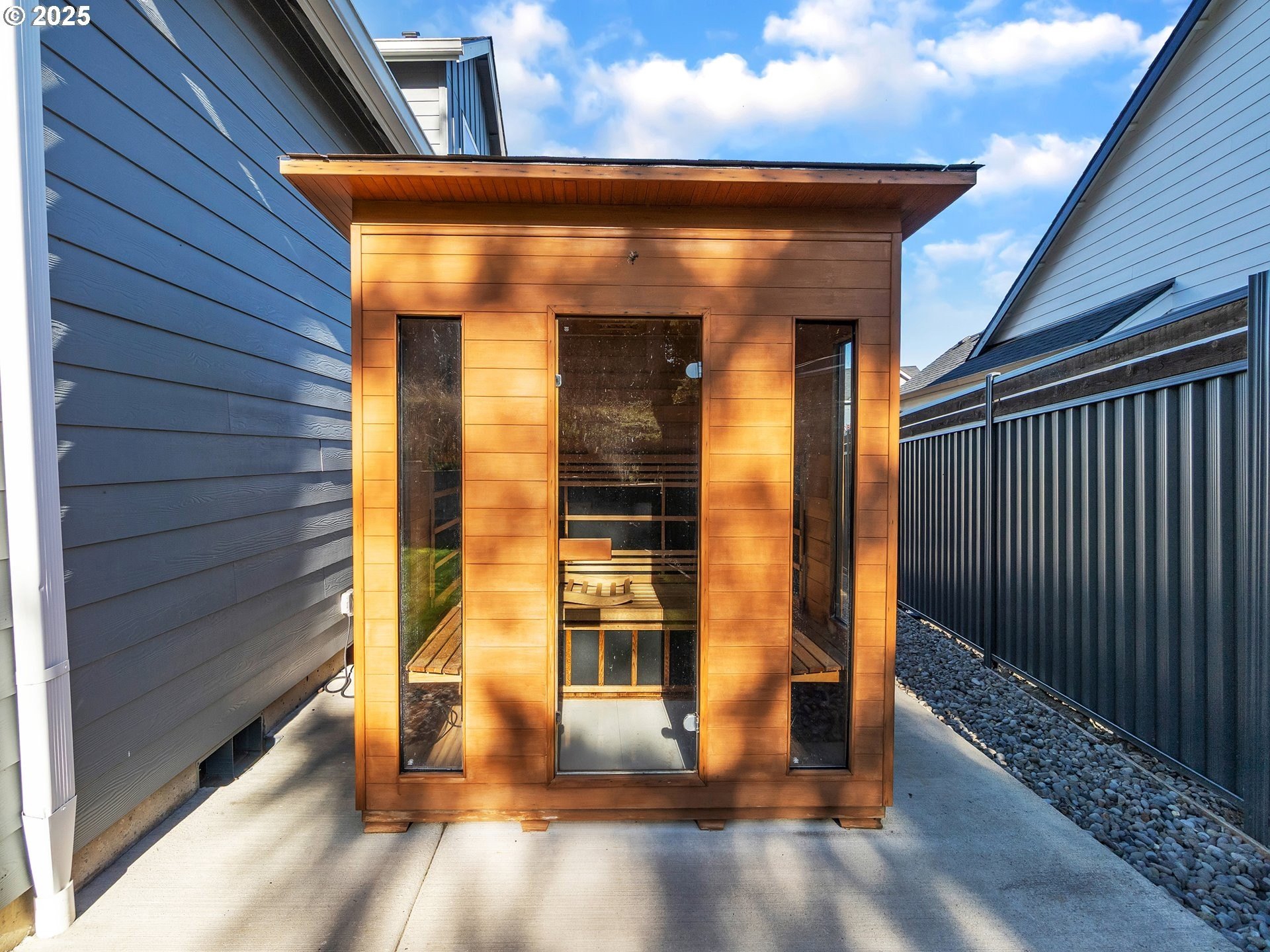 Modern Elegance Meets Everyday Comfort. Built in 2022 by a top-quality builder specializing in meticulous craftsmanship. This impeccably maintained one-owner home combines thoughtful design with timeless style. From the street side, pride of ownership shines. The lovely front elevation offers a nice, big front porch that is covered and an extra parking pad for convenience. From the moment you step inside, you’ll be impressed by the soaring great room ceilings, a dramatic wall of windows that flood the space with natural light, and a cozy gas fireplace with built ins. The gourmet kitchen, perfect for entertaining, is a showstopper, featuring an upscale five burner Bertazzoni gas range, a stunning stainless steel refrigerator, a pantry, an eating bar, tall ceilings and tasteful finishes throughout. The floor plan is as functional as it is beautiful—offering a main-level primary suite for easy living with a walk in shower, luxurious soaking tub and dual sinks, a light-filled office at the front of the home with French doors (opts nicely for a 4th bedroom), and two additional bedrooms upstairs along with a storage space, all generous in size. Enjoy premium extras including a 4-person sauna, a Tesla charger, a lovely washer and dryer, and a rare 3-car tandem garage affording lots of flexibility. The backyard is peaceful and private—perfect for relaxing or entertaining. Located on the outskirts of town, this home provides a serene escape without sacrificing convenience to nearby amenities. With its flawless condition, high-end details, and truly special layout, this home is sure to impress even the most discerning buyer.