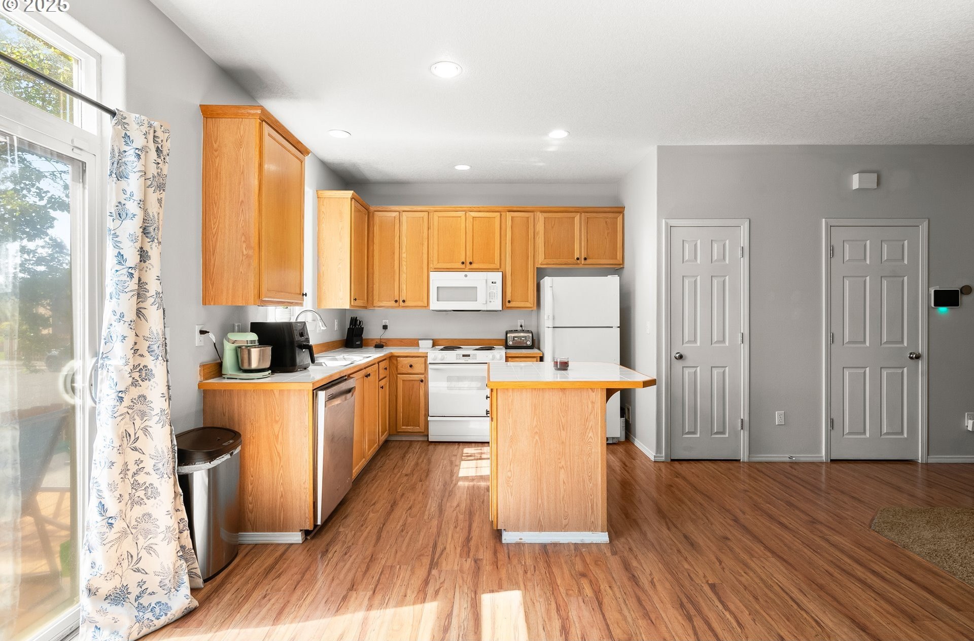 Perfect for First-Time Buyers & Investors!This inviting end unit in Kelly Creek Townhomes—with a brand new roof—offers an open, light-filled layout, soaring ceilings, and modern upgrades throughout. The main floor is ideal for both entertaining and daily living, featuring a spacious living area, a convenient half bath, and a well-equipped kitchen with all appliances, a large island, and plenty of storage—perfect for gatherings. Upstairs, you’ll find three generously sized bedrooms with wall-to-wall carpet and vaulted ceilings. The primary suite includes double closets and a private ensuite bath with dual sinks. A dedicated laundry area on the upper level adds everyday convenience. This home also features key updates that bring peace of mind and energy efficiency, including a new water heater, new AC unit, and an updated HVAC system (within the last 2 years). Plus, it’s wired for Fibernet, keeping you connected with fast, reliable internet.Don’t miss out on this move-in ready gem—schedule your tour today!