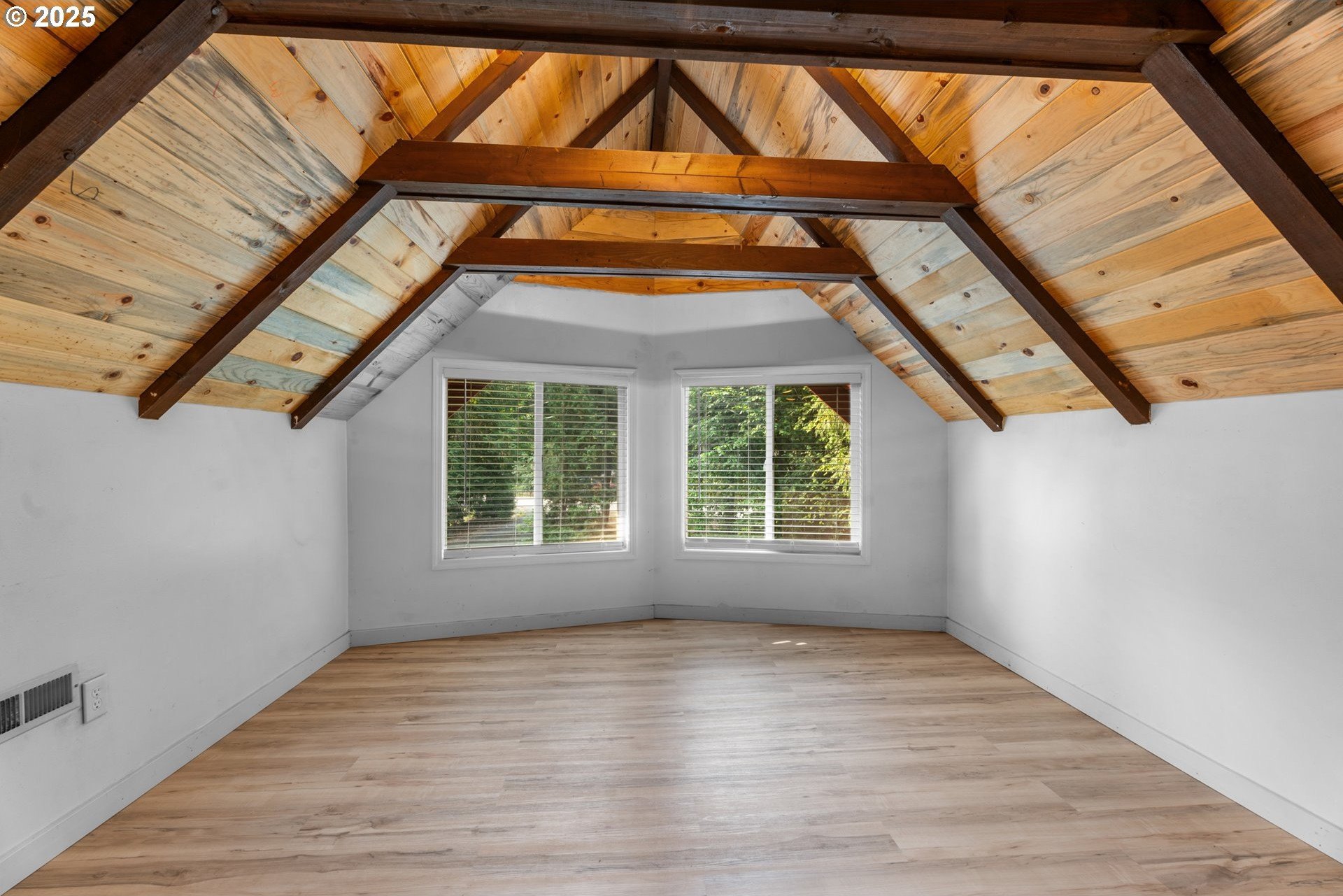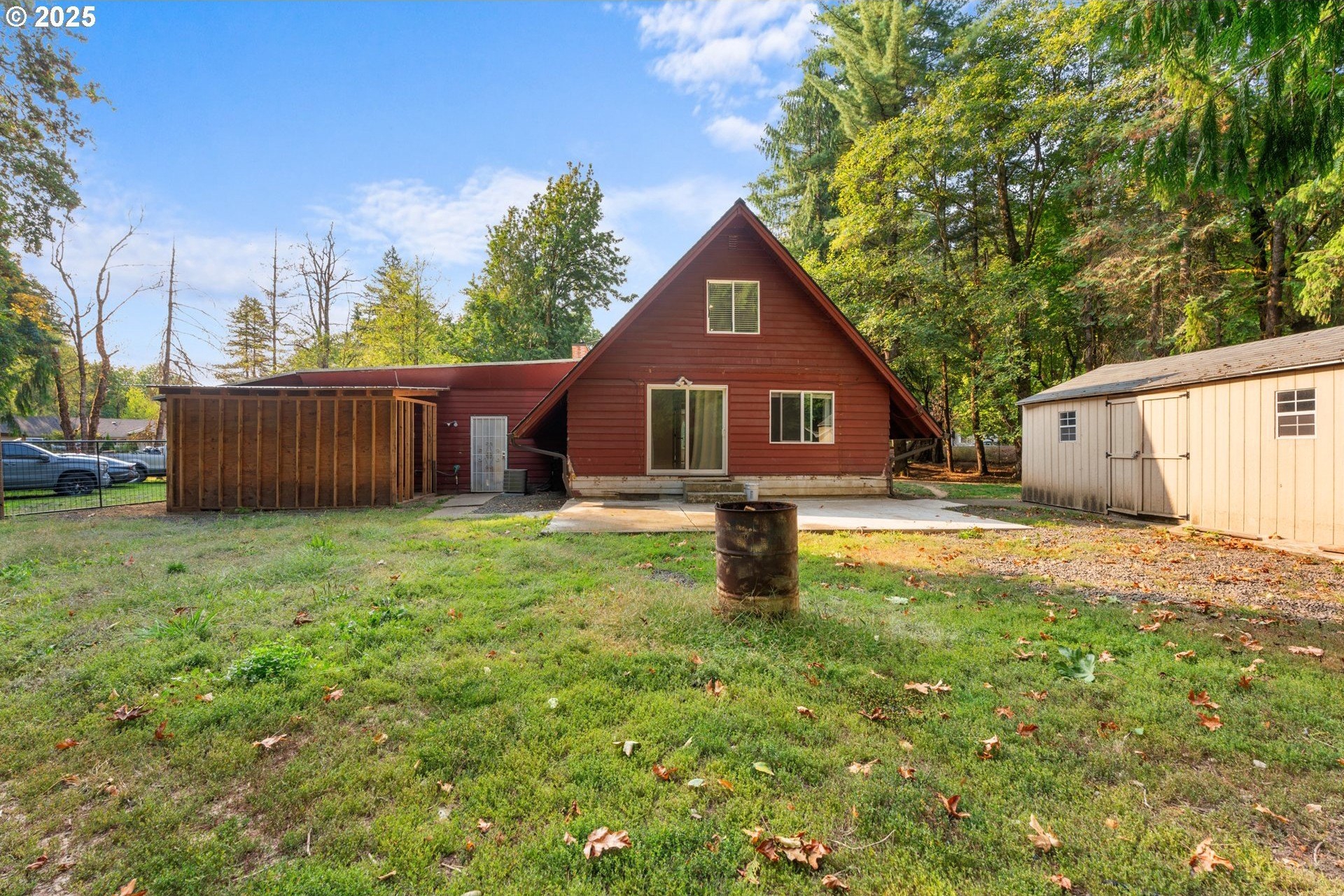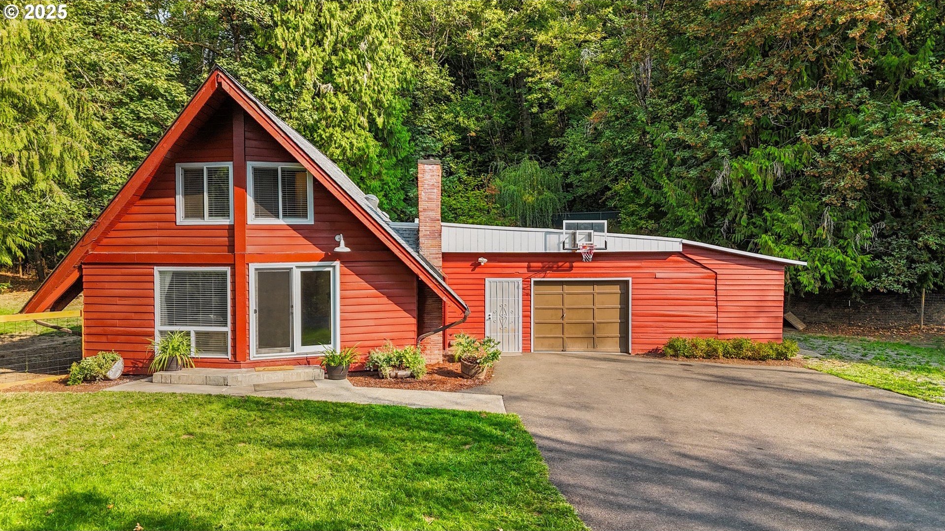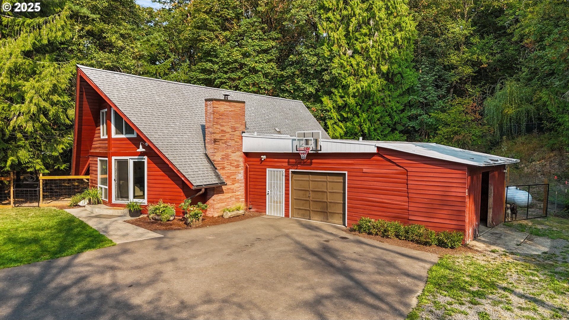 This beautifully remodeled A-frame home combines rustic character with modern updates. Sitting on just over a half-acre, the property offers privacy, mature trees, and plenty of usable space. Inside, you’ll find vaulted wood-beam ceilings, oversized bay windows that flood the home with natural light, and a spacious open layout. Updated flooring and bathrooms bring a fresh, move-in ready feel while still keeping the home’s unique charm.Upstairs, the bedrooms showcase vaulted ceilings and warm wood finishes, creating a cozy retreat. The updated bathroom offers modern fixtures and thoughtful design.Outside, enjoy a detached shop/garage with room for storage or projects, a small barn/outbuilding, and a fully fenced yard perfect for pets, gardening, or hobby farming. The paved driveway provides plenty of parking, while the setting offers peace and quiet just minutes from Scappoose, St. Helens, and an easy commute to Portland.This home is the perfect mix of character and convenience.