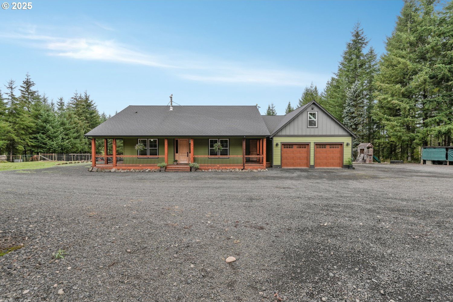A Rare 61.5 Acre Equestrian Retreat in Deer Island. If you’ve never explored Deer Island, you’re missing one of Oregon’s most peaceful hidden gems. Just an hour from Portland and the Oregon Coast, this 61.5 acre retreat blends craftsmanship, privacy, and the rhythm of country life. At the end of a quiet tree lined driveway, a custom built four bedroom, two and a half bath Craftsman ranch awaits, surrounded by pastures, timber, and the hum of nature. Inside, every detail reflects thoughtful design. Warm knotty hickory doors and cabinetry fill the home with rustic character, while the vaulted great room centers around a cozy stone fireplace and sweeping views of the landscape. The kitchen was built for both family and function, with double granite sinks, double ovens, and a generous island that brings everyone together for meals and memories. The primary suite opens to a private porch and spa inspired bath with dual copper sinks, jetted tub, and a walk in shower that feels like a retreat after long days on the property. Upstairs, a spacious bonus room invites creativity or play. The mudroom connects daily living with custom built-ins made for boots, coats, and gear. Outside, a covered deck overlooks rolling pastures and barns designed for true equestrian living. The custom barn includes an insulated tack room, hot and cold water, and stamped concrete floors, while trails wind through the land for horseback rides or ATVs, leading to a tucked away cabin for quiet reflection. The grounds expand into thirty nine acres of twenty two year old Douglas fir, offering privacy and future timber potential. An orchard and garden area with ideal southern exposure provide space for growing and gathering. With LOP hunting rights for two deer and two elk, this property captures the essence of rural luxury, recreation, and self sufficiency all in one extraordinary package.
