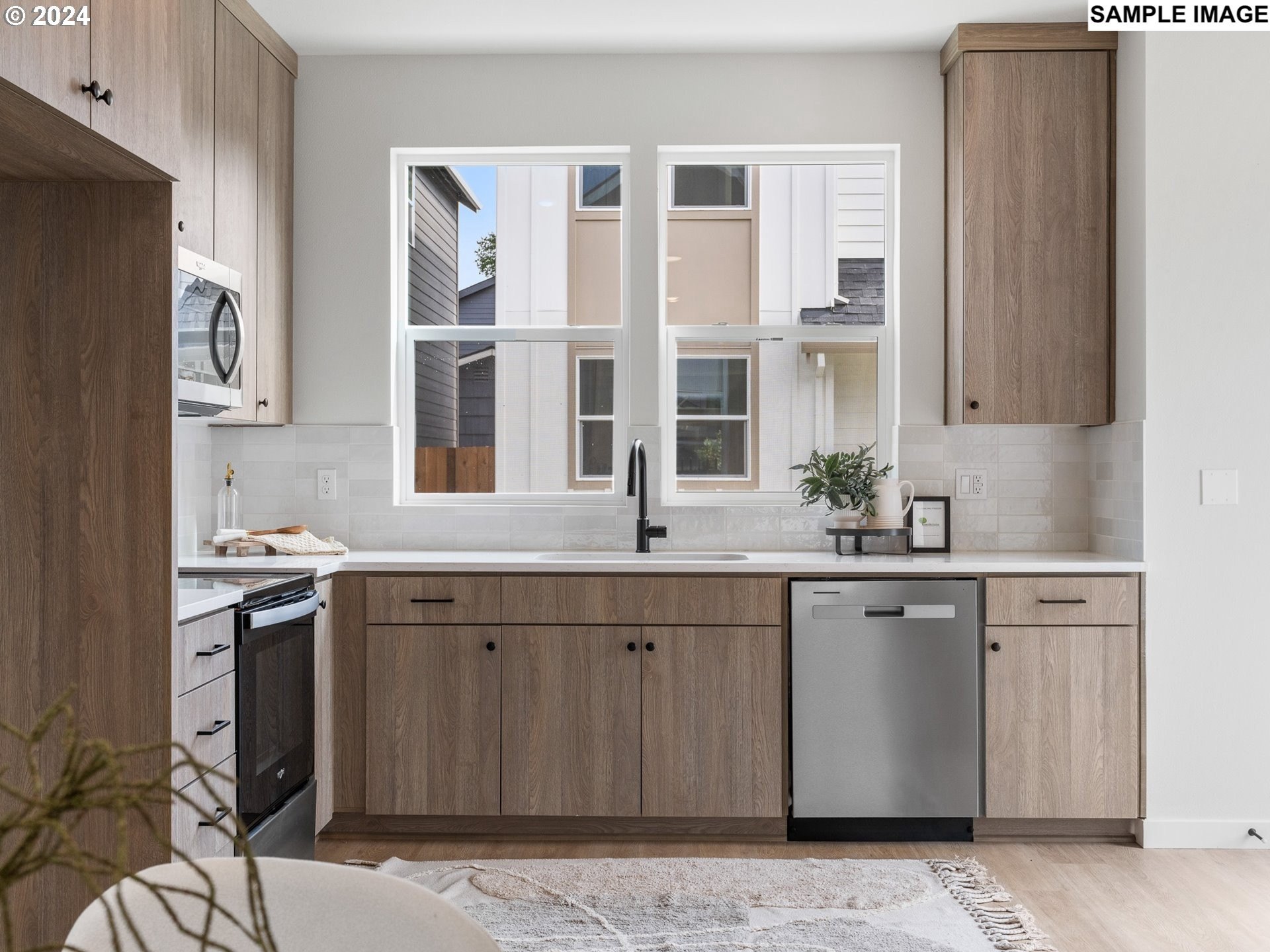 No money down - 100% financing options available! This is not a condo, no HOA! Discover the perfect blend of modern elegance and convenience in this stunning home, ideally located just 0.3 miles from all your favorite amenities, including coffee shops, grocery stores, parks, trendy boutiques, and delightful restaurants. Step inside and be captivated by the beautifully designed kitchen, featuring warm cabinetry, exquisite tilework, sleek black finishes, and gleaming stainless steel appliances. The kitchen seamlessly opens to the dining area and inviting living room, making it an entertainer's dream or a cozy space for relaxation. Enjoy effortless indoor-outdoor living with a slider leading to your private yard. Upstairs, you'll find a bright and airy primary suite, along with an additional spacious bedroom, both illuminated by lofty ceilings and expansive windows that invite natural light. Don't miss this opportunity to call this gem home! Enjoy the peace of mind that comes with new construction, complete with a 1-year builder warranty from a reputable local boutique builder. (List price is subject to the buyer qualifying for the Portland Housing Bureau - System Development Charge exemption program to promote affordable housing in Portland, call for more info.) Need a little help with your down payment? Our friends at Umpqua Bank have their Umpqua Neighbors and Legacy Builder down payment assistance programs to help make your dream home a reality!