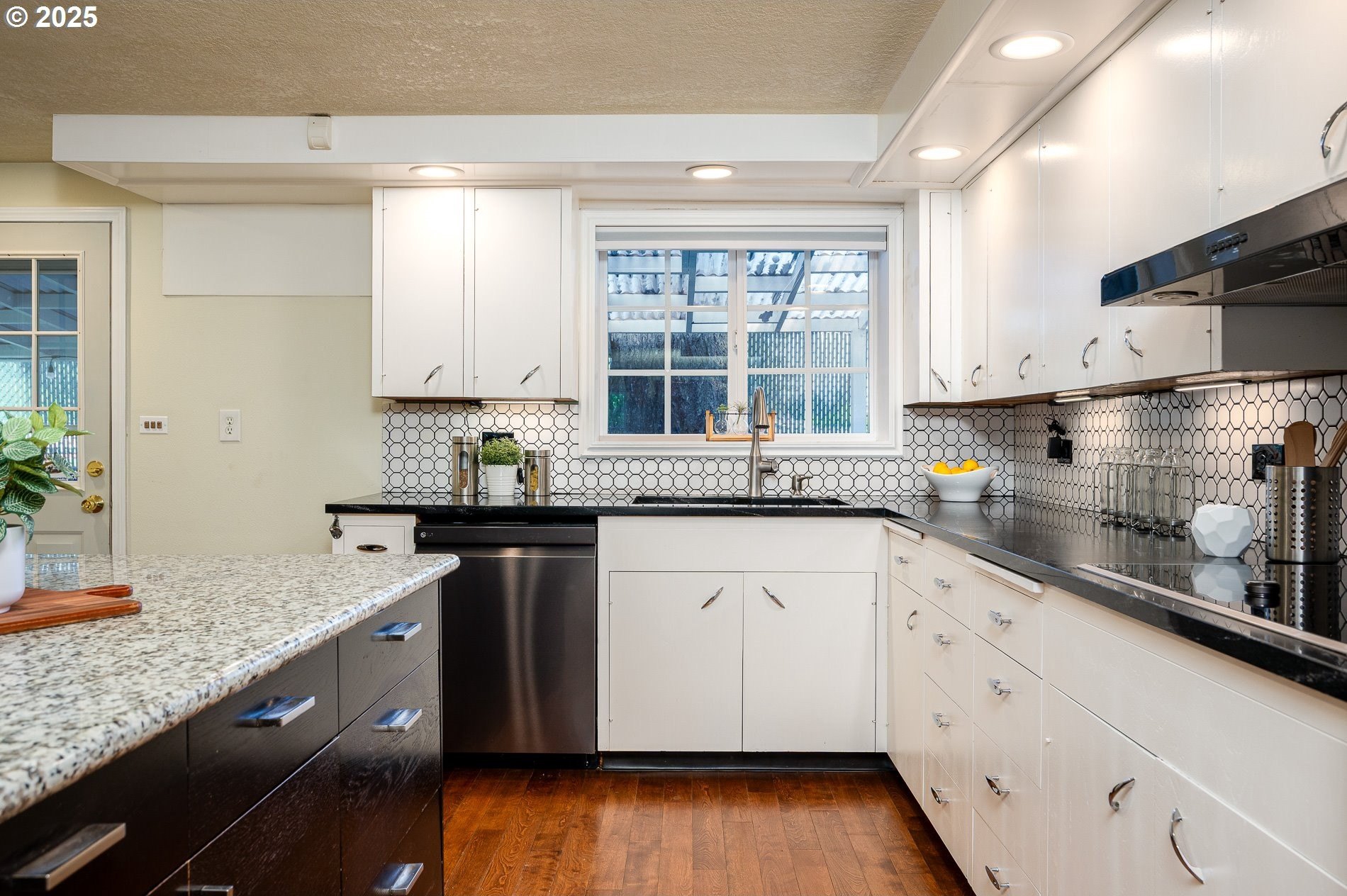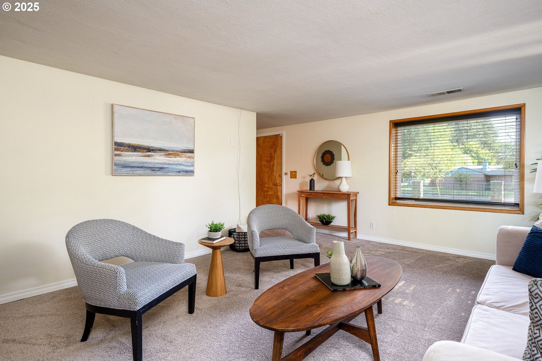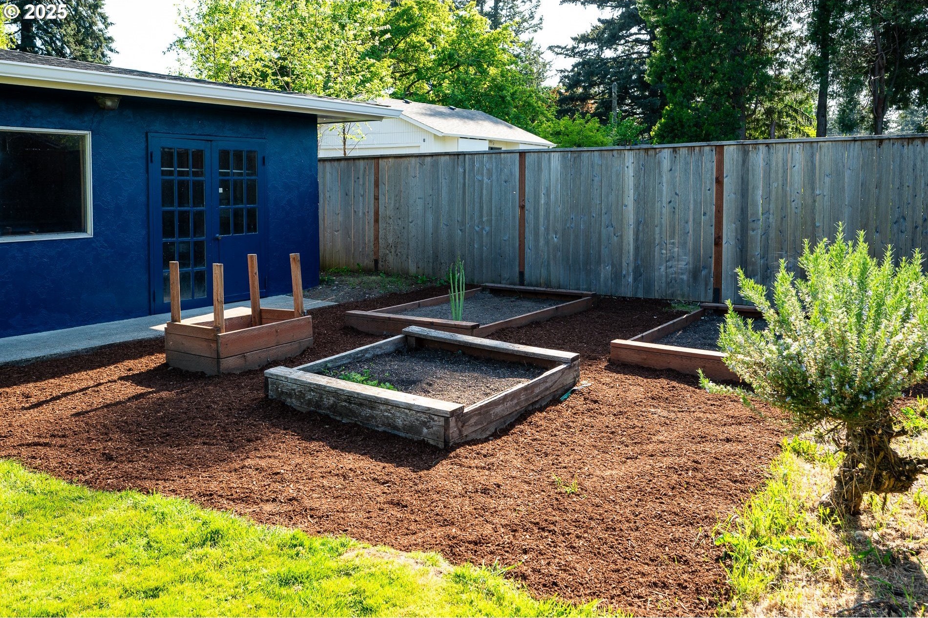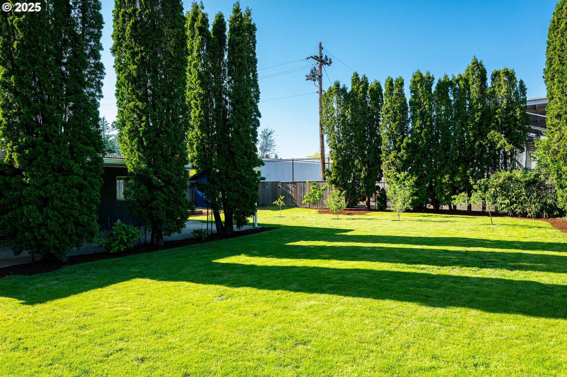 Tucked away from the main road on a peaceful and private 0.36-acre lot, this beautifully refreshed home offers the perfect blend of comfort, space, and potential. Surrounded by mature trees, raised garden beds, and stunning landscaping, the outdoor space feels like your own private retreat. Inside, recent upgrades include a brand-new roof, updated electrical, fresh interior and exterior paint, and new carpet throughout, giving the home a crisp, modern feel. The remodeled kitchen and two bathrooms offer stylish functionality, while the spacious single-level layout provides great flow for everyday living. At the heart of the home is a warm, inviting kitchen—ideal for family meals and entertaining. A standout feature is the huge laundry room, offering extra space and storage rarely found in homes this size. The oversized two-car garage offers not only ample parking but also potential as a workshop, while the additional wood shop at the back of the house provides even more opportunities for hobbyists or those in need of additional storage space. With a large, flat lot, this property also presents the possibility for future multifamily development, adding another layer of potential to this already versatile space. Step outside to a large covered seating area, perfect for year-round relaxation or hosting. With a recently replaced water line and an ideal location just minutes from parks, schools, and local amenities, this home delivers the best of both worlds: peaceful retreat and vibrant community living, with room to grow. [Home Energy Score = 3. HES Report at https://rpt.greenbuildingregistry.com/hes/OR10238211]