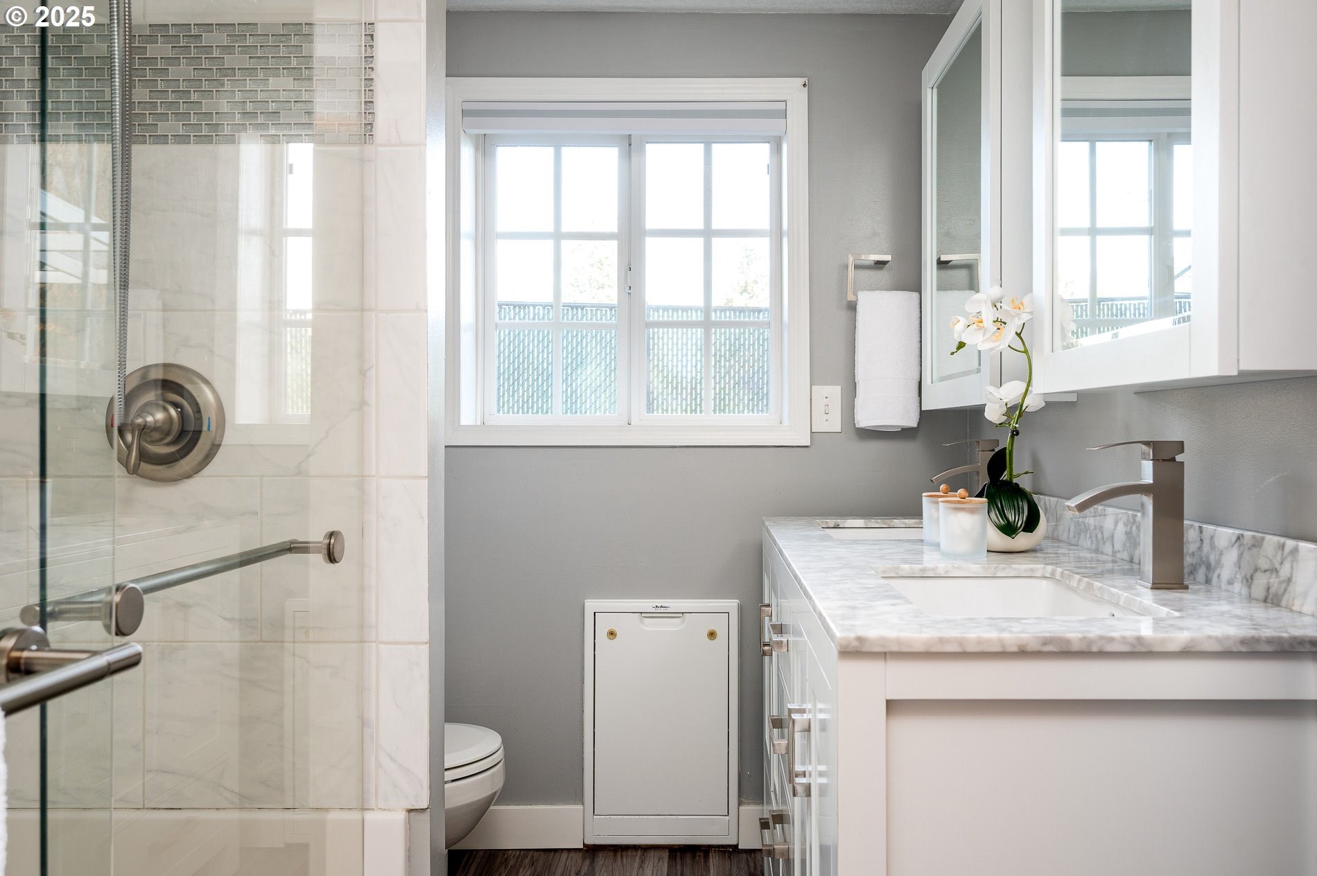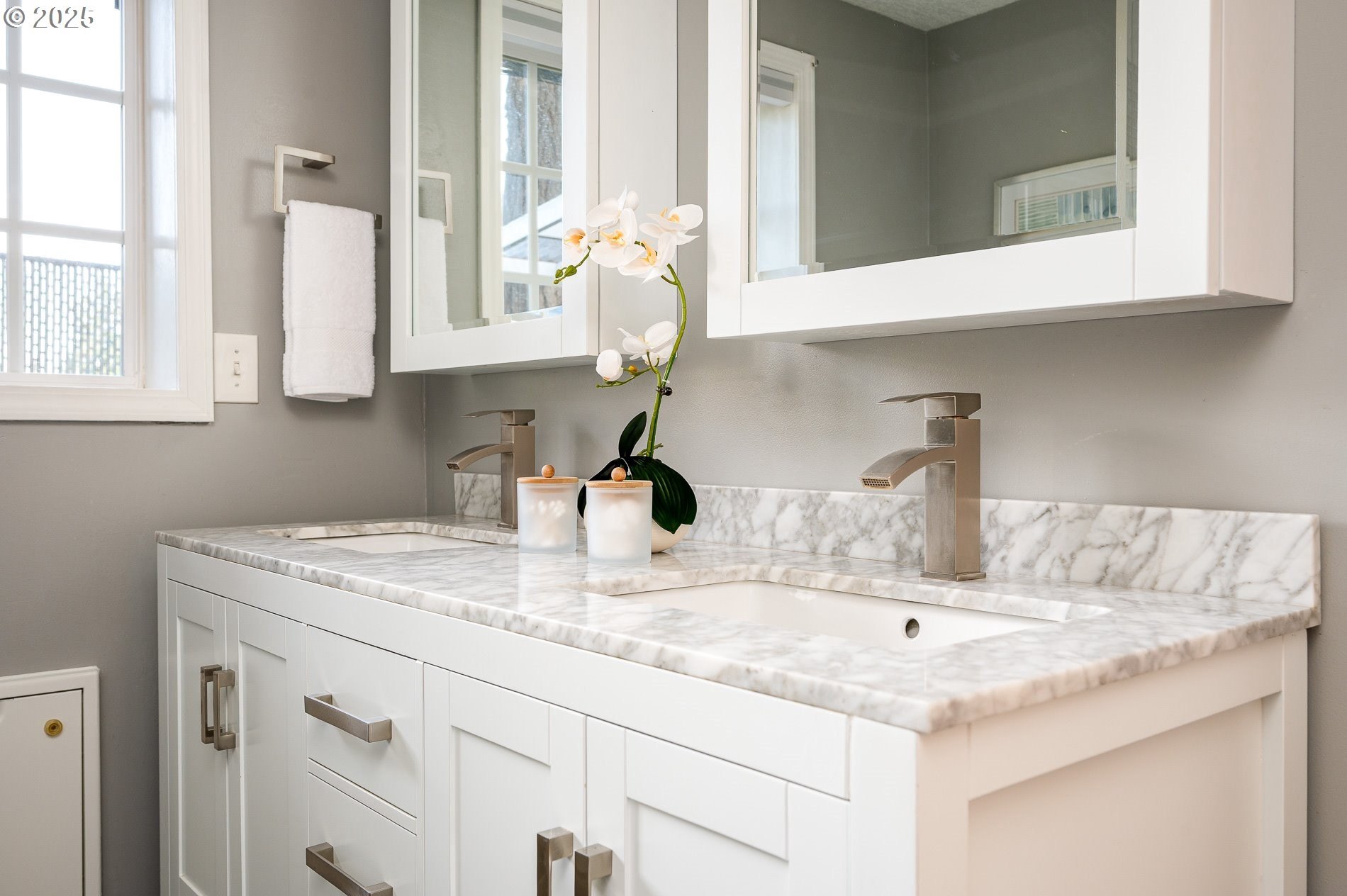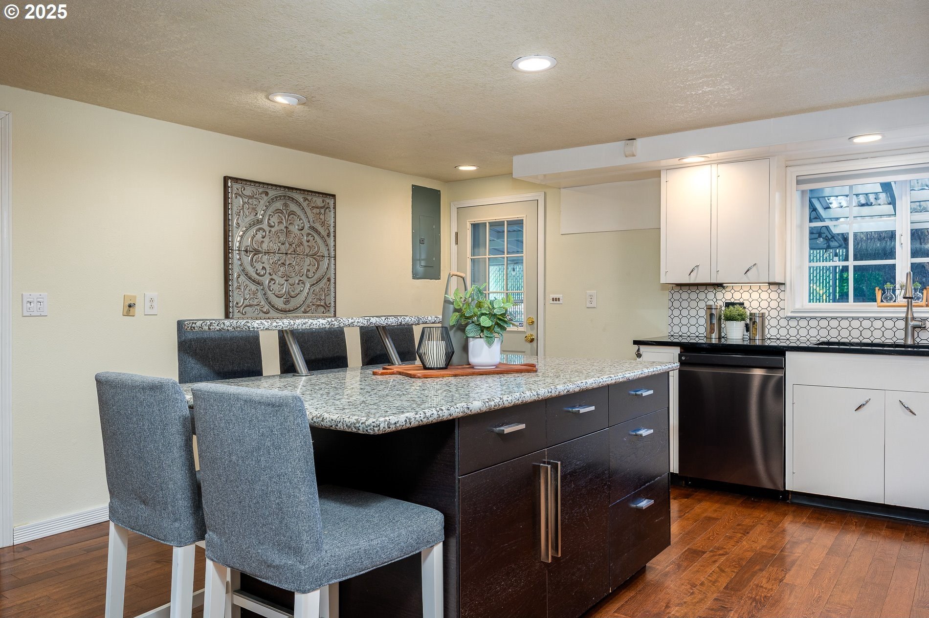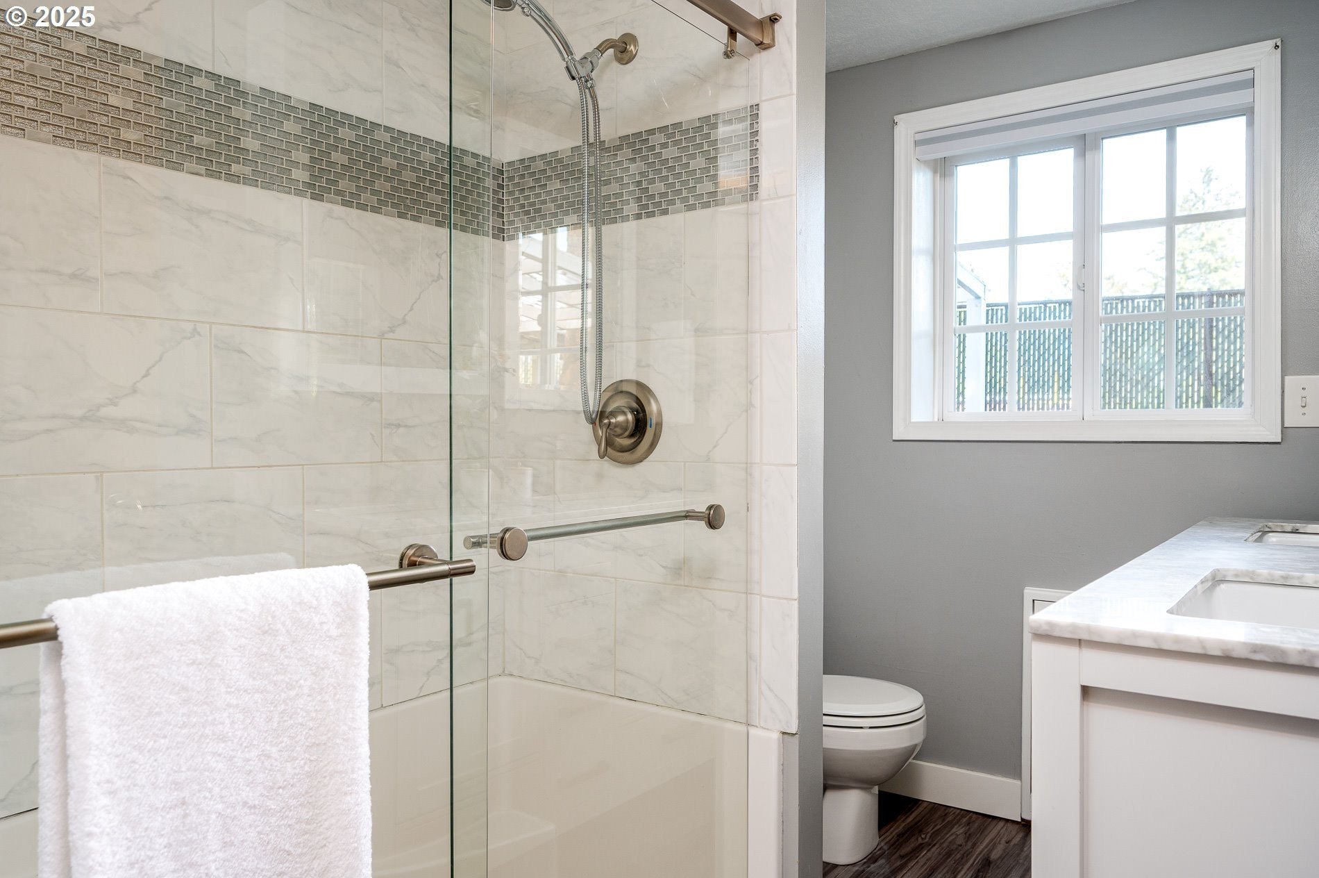Tucked away from the main road on a peaceful and private 0.36-acre lot, this beautifully refreshed home offers the perfect blend of comfort, space, and potential. Surrounded by mature trees, raised garden beds, and stunning landscaping, the outdoor space feels like your own private retreat. Inside, recent upgrades include a brand-new roof, updated electrical, fresh interior and exterior paint, and new carpet throughout, giving the home a crisp, modern feel. The remodeled kitchen and two bathrooms offer stylish functionality, while the spacious single-level layout provides great flow for everyday living. At the heart of the home is a warm, inviting kitchen—ideal for family meals and entertaining. A standout feature is the huge laundry room, offering extra space and storage rarely found in homes this size. The oversized two-car garage offers not only ample parking but also potential as a workshop, while the additional wood shop at the back of the house provides even more opportunities for hobbyists or those in need of additional storage space. With a large, flat lot, this property also presents the possibility for future multifamily development, adding another layer of potential to this already versatile space. Step outside to a large covered seating area, perfect for year-round relaxation or hosting. With a recently replaced water line and an ideal location just minutes from parks, schools, and local amenities, this home delivers the best of both worlds: peaceful retreat and vibrant community living, with room to grow. [Home Energy Score = 3. HES Report at https://rpt.greenbuildingregistry.com/hes/OR10238211]