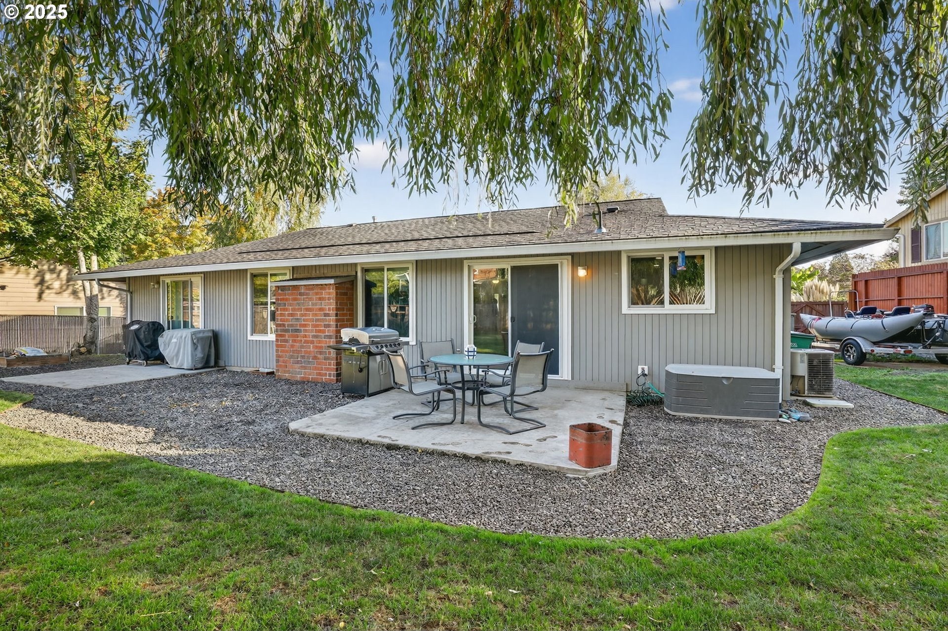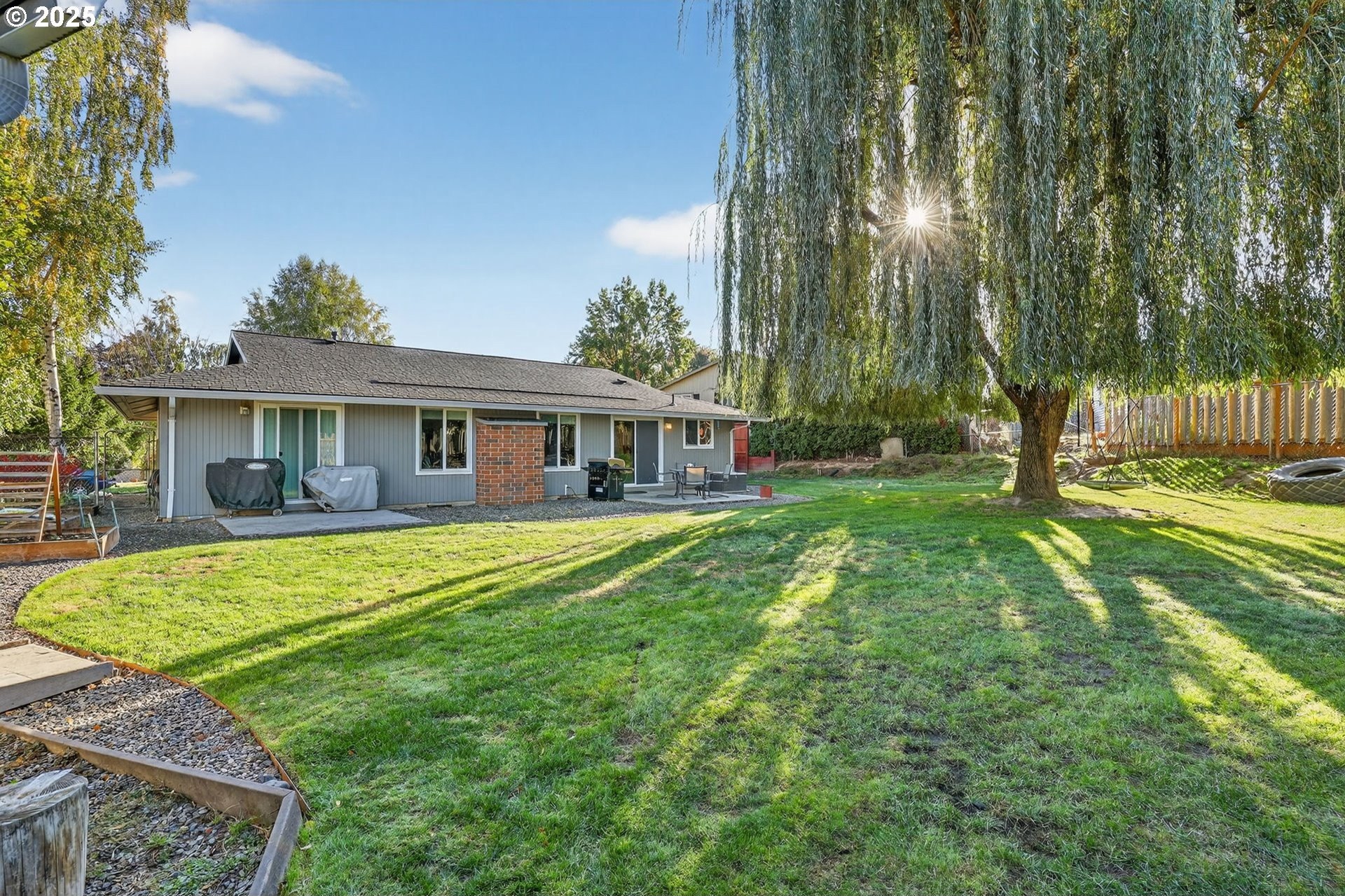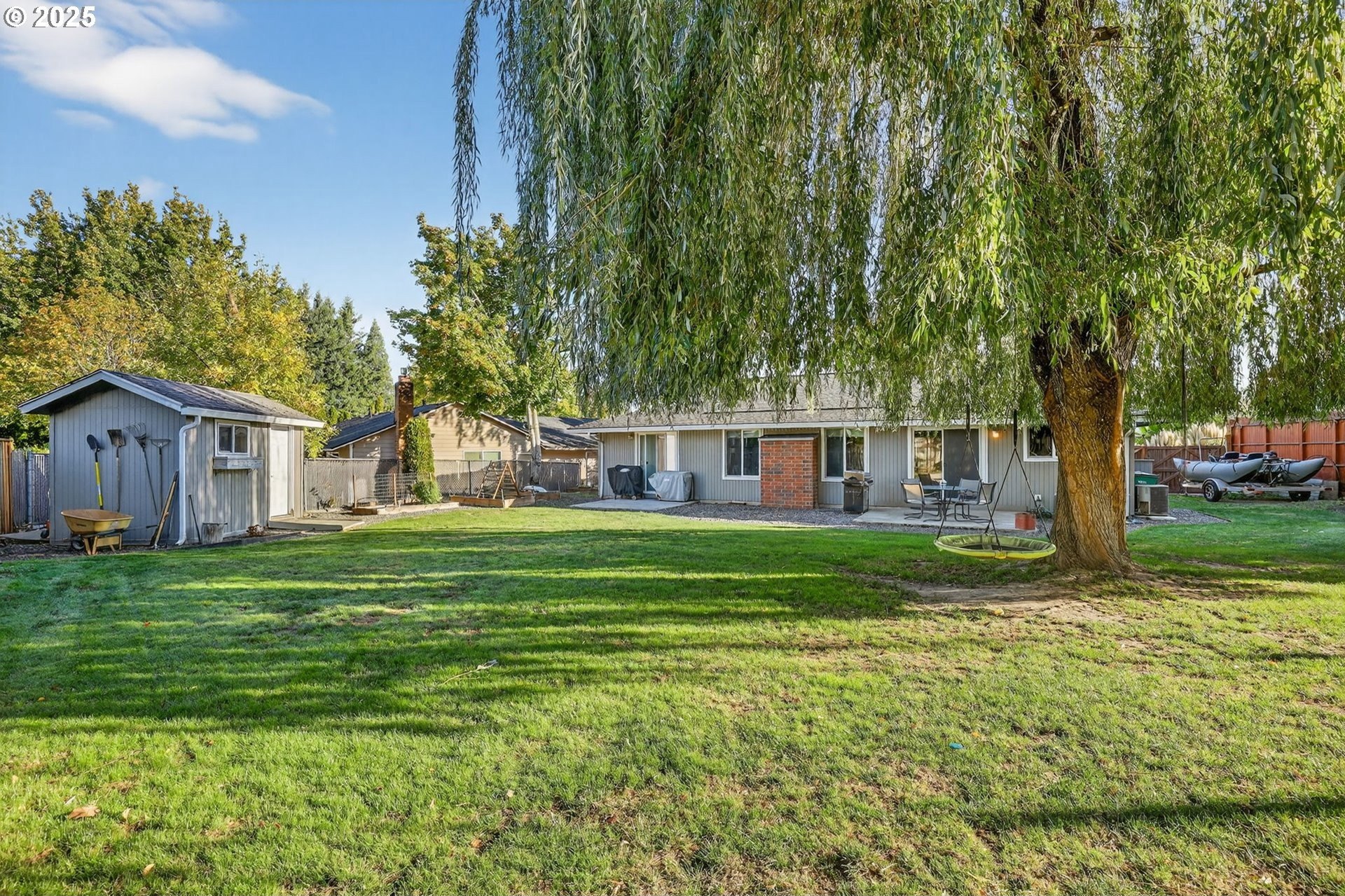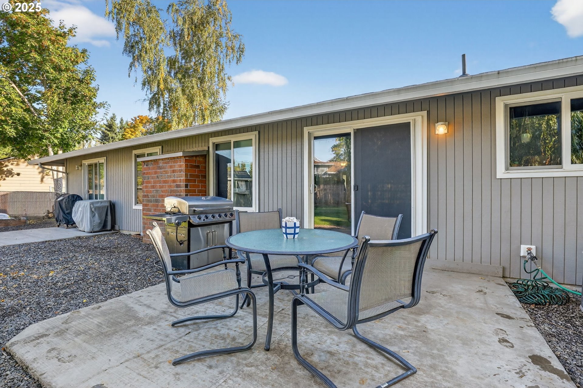 Welcome to a well-maintained single-level home in the desirable Sweetbriar neighborhood. The 3-bedroom, 2-bath layout centers around an open great room and a gourmet kitchen with stainless appliances, gas range and hood, and extensive cabinetry offering both functionality and modern appeal. Engineered hardwoods, updated vinyl windows, and a newer roof showcase the owner’s pride and care throughout. The large lot provides excellent outdoor living with a spacious backyard suited for entertaining, gardening, or relaxation, plus RV or extra parking space. A shed and gas BBQ hookup add everyday convenience. Located on a quiet cul-de-sac (SE Stott Ct) near parks and walking trails, this home offers a private setting yet remains just minutes from I-84, shopping, schools, and dining. The primary suite opens to the backyard, and two secondary bedrooms share a well-appointed hall bath. A rare combination of location, layout, and condition—ideal for those seeking quality single-level living with generous outdoor space.