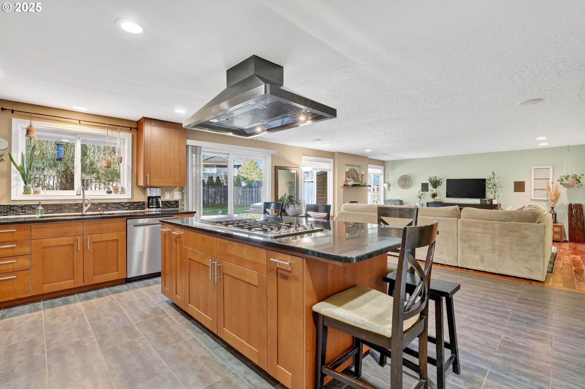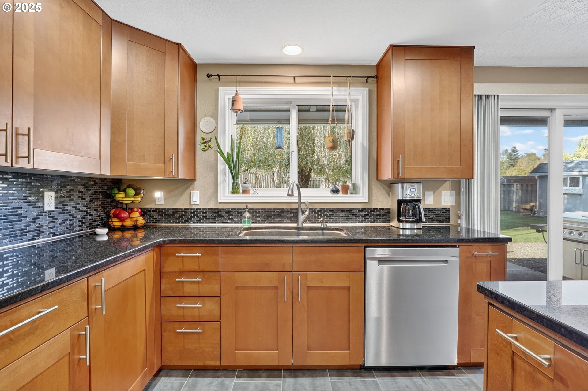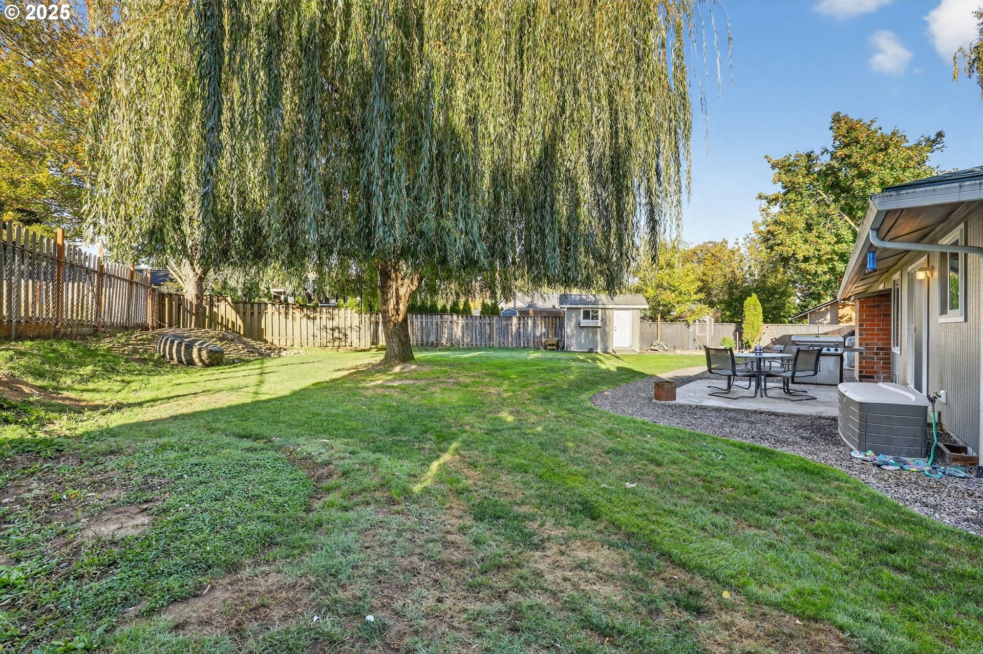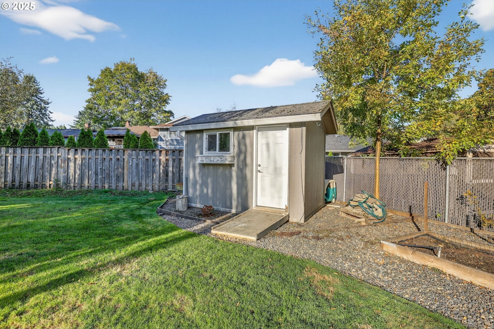 Welcome to a well-maintained single-level home in the desirable Sweetbriar neighborhood. The 3-bedroom, 2-bath layout centers around an open great room and a gourmet kitchen with stainless appliances, gas range and hood, and extensive cabinetry offering both functionality and modern appeal. Engineered hardwoods, updated vinyl windows, and a newer roof showcase the owner’s pride and care throughout. The large lot provides excellent outdoor living with a spacious backyard suited for entertaining, gardening, or relaxation, plus RV or extra parking space. A shed and gas BBQ hookup add everyday convenience. Located on a quiet cul-de-sac (SE Stott Ct) near parks and walking trails, this home offers a private setting yet remains just minutes from I-84, shopping, schools, and dining. The primary suite opens to the backyard, and two secondary bedrooms share a well-appointed hall bath. A rare combination of location, layout, and condition—ideal for those seeking quality single-level living with generous outdoor space.