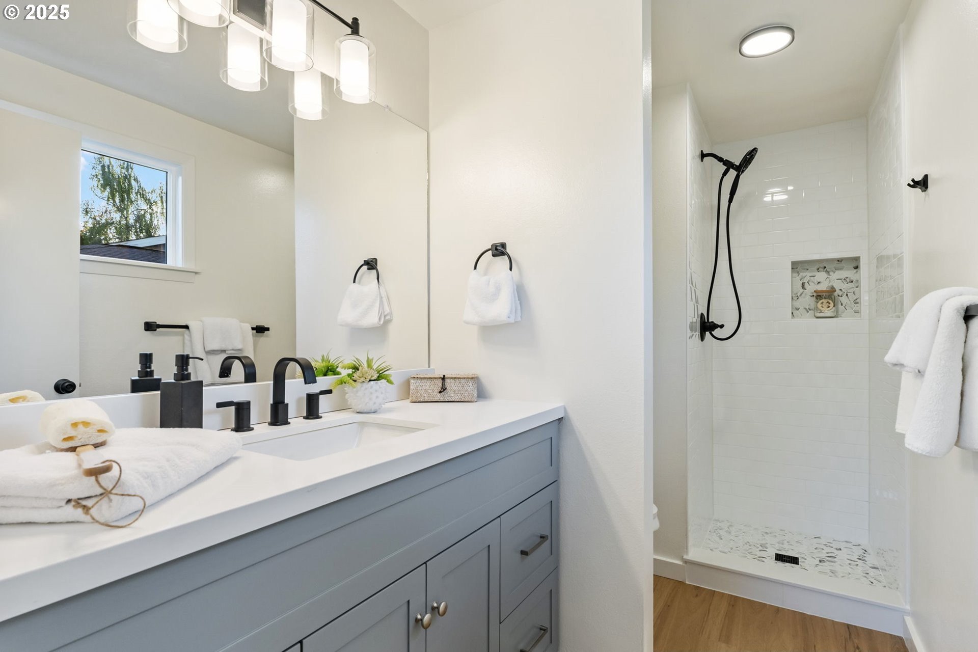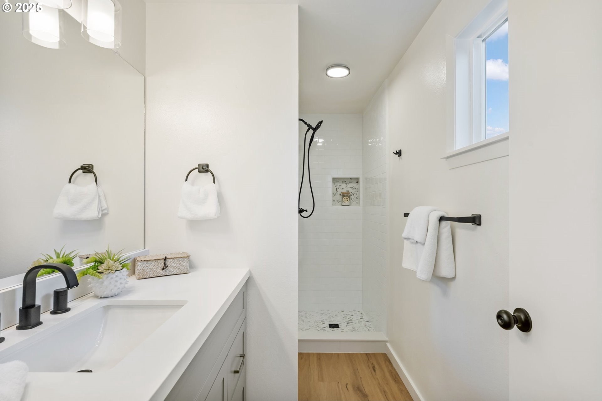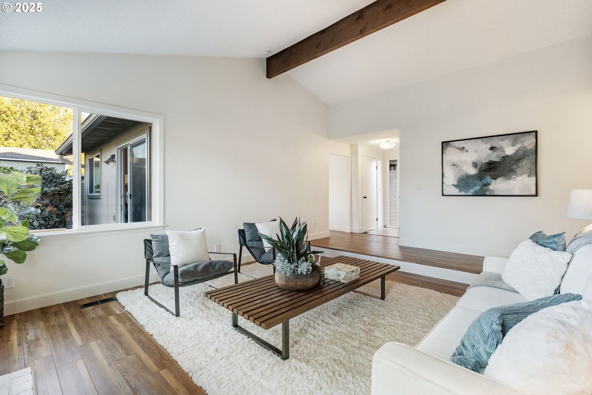 Open House Sat 10/25 12:15-2:15pm, Sun 10/26. Welcome home to this beautifully remodeled single level home, nestled on an oversize lot in a quiet neighborhood. Every surface of this home has been thoughtfully updated to offer modern aesthetics and functionality. The heart of the home features a stunning vaulted ceiling with exposed beam and gas fireplace, a perfect gathering space just in time for the holidays!Luxury vinyl flooring stretches throughout for beauty and easy maintenance. Enjoy a true primary ensuite with a newly restored bathroom. The highlights include a fully tiled shower and gorgeous vanity. The interior of the home has been freshly painted, new hardware and lighting have been added for a fresh classy look. Low maintenance here with a newer roof installed in 2018 and gas furnace in the last year. Central A/C included. Washer/dryer, refrigerator are included in the sale. Fully insulated 2 car attached garage with shelving for ample storage. This home offers beautifully refreshed indoor and outdoor spaces, ready to enjoy. Tranquil living with the convenience of minutes to Intel Jones Farm and Ronler acres.
