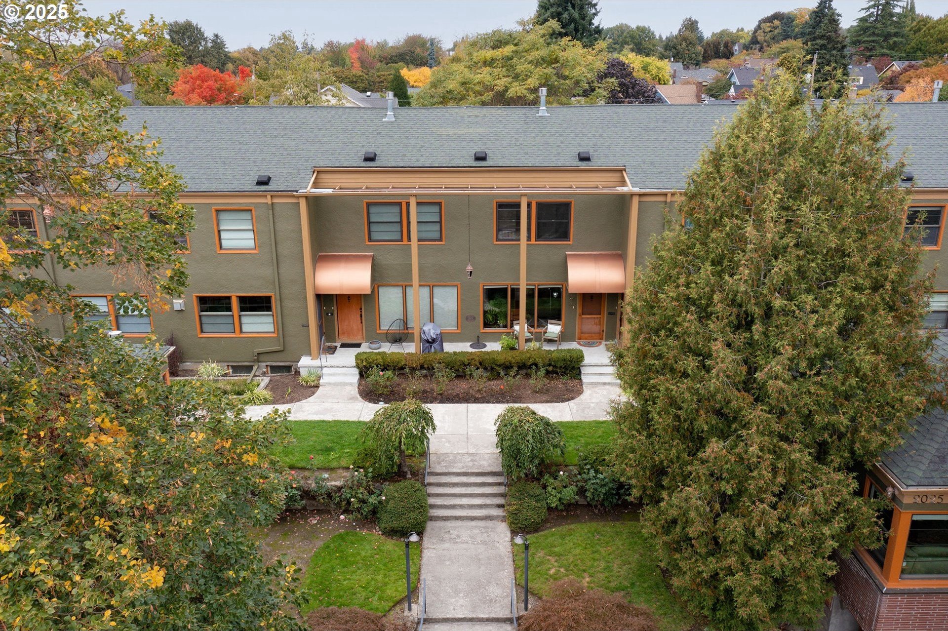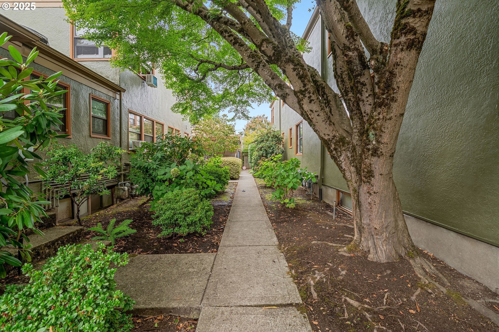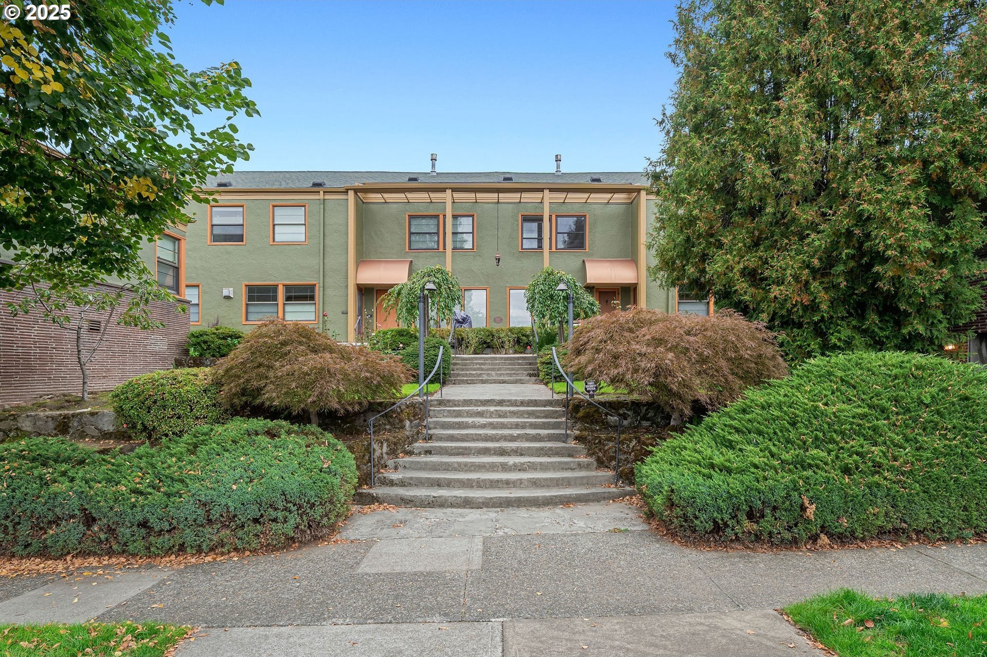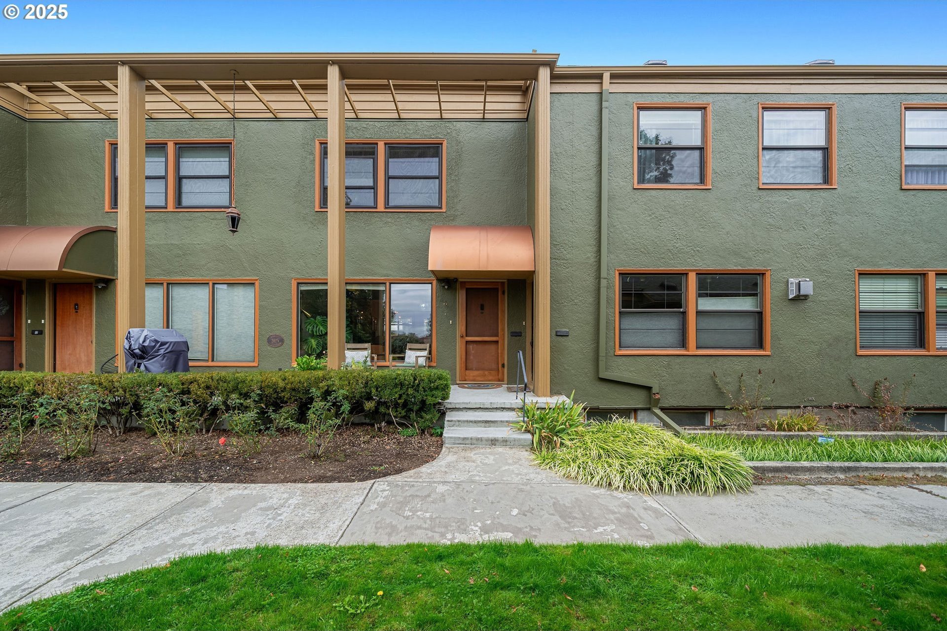 Step into timeless style and effortless living with this meticulously maintained mid-century condo, perfectly situated in one of Portland’s most vibrant inner southeast neighborhoods. Bursting with vintage character and Spanish-inspired architecture, this home offers sun-drenched living spaces, soaring ceilings, and the kind of warmth and charm that never goes out of style. The open-concept floor plan creates an easy flow between living, dining, and kitchen areas, ideal for modern lifestyles. Distinct front and rear entrances provide a sense of privacy and autonomy rarely found in condominium living, while offering convenient access to your deeded garage, personal storage unit, a serene community courtyard, and shared entertainment deck. Evenings are irresistibly cozy by the high-efficiency, Euro-style gas fireplace with instant comfort and control. Generously proportioned bedrooms, custom built-ins, and an in-unit Asko washer and dryer further elevate everyday living. This condo provides unbeatable access to popular restaurants, shops, cafés, grocery stores, bikeways and public transportation. Everything you could possibly need for comfortable, connected urban living. [Home Energy Score = 6. HES Report at https://rpt.greenbuildingregistry.com/hes/OR10182765]