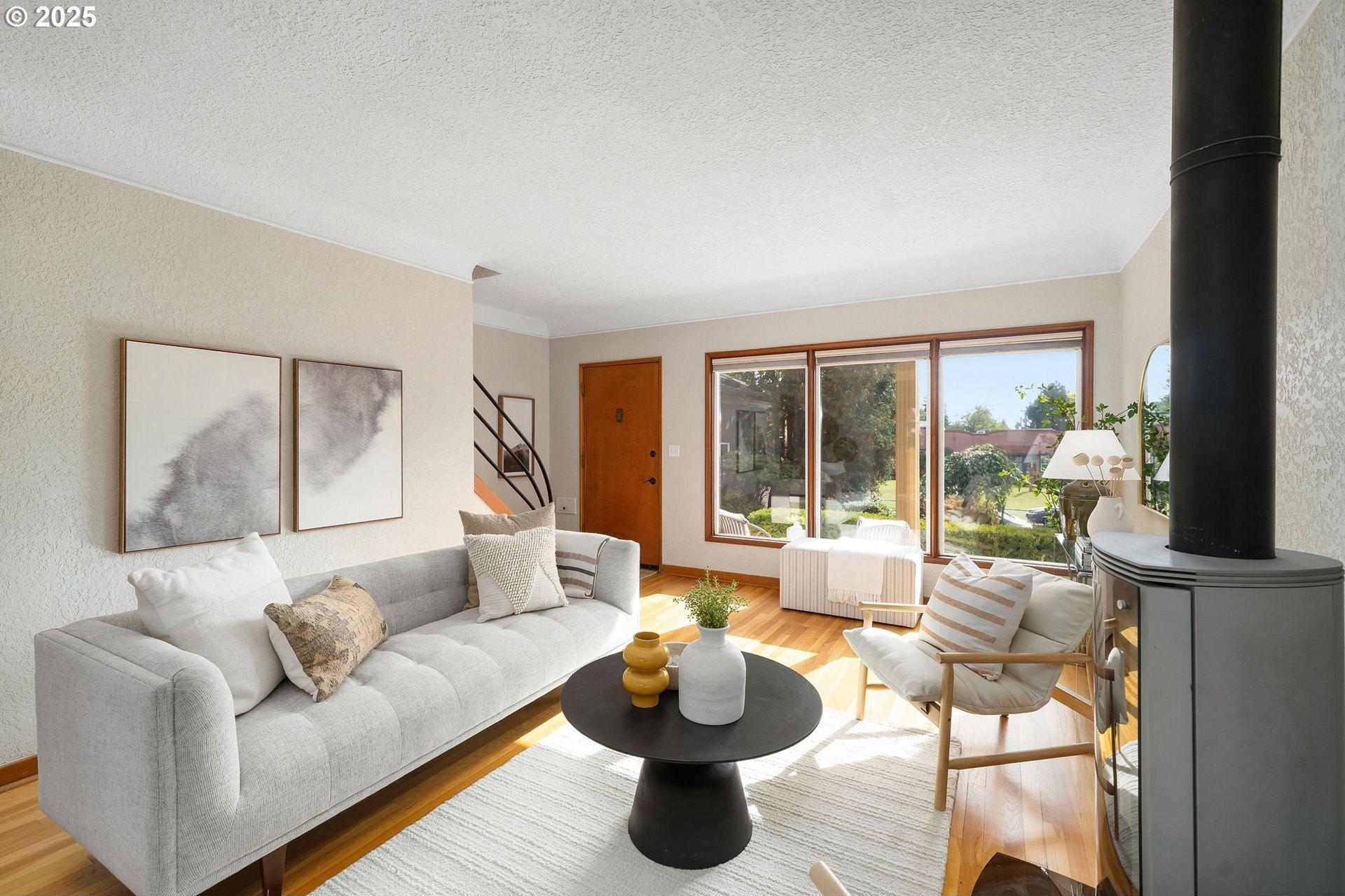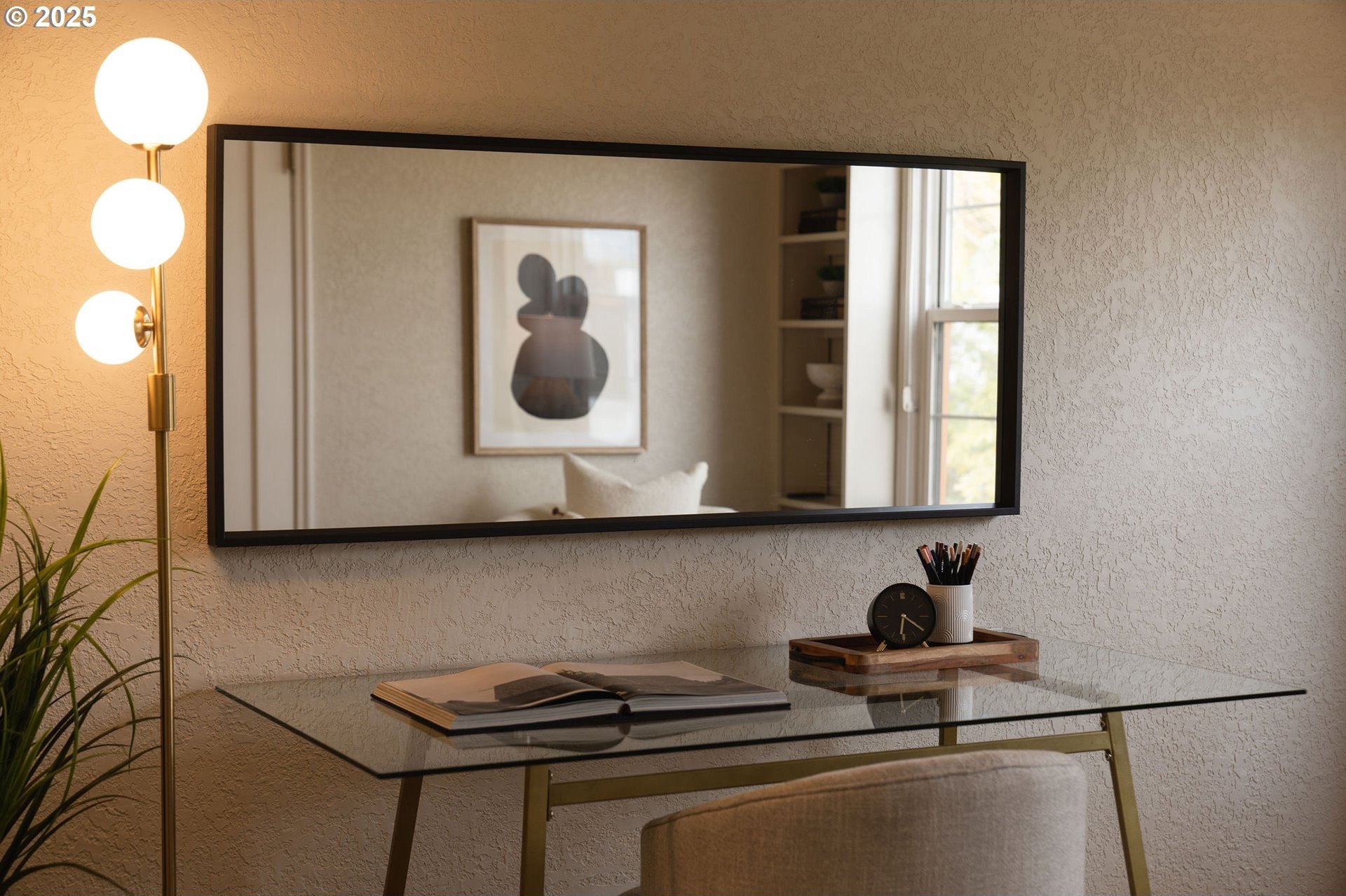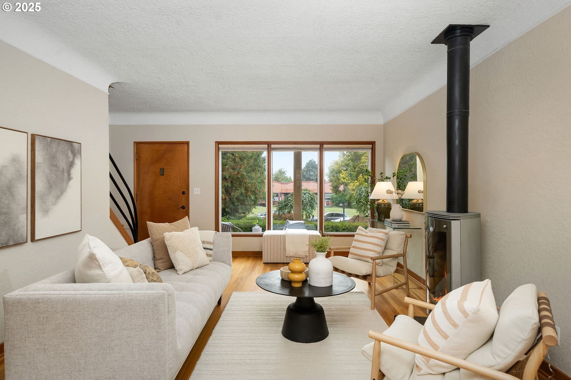Step into timeless style and effortless living with this meticulously maintained mid-century condo, perfectly situated in one of Portland’s most vibrant inner southeast neighborhoods. Bursting with vintage character and Spanish-inspired architecture, this home offers sun-drenched living spaces, soaring ceilings, and the kind of warmth and charm that never goes out of style. The open-concept floor plan creates an easy flow between living, dining, and kitchen areas, ideal for modern lifestyles. Distinct front and rear entrances provide a sense of privacy and autonomy rarely found in condominium living, while offering convenient access to your deeded garage, personal storage unit, a serene community courtyard, and shared entertainment deck. Evenings are irresistibly cozy by the high-efficiency, Euro-style gas fireplace with instant comfort and control. Generously proportioned bedrooms, custom built-ins, and an in-unit Asko washer and dryer further elevate everyday living. This condo provides unbeatable access to popular restaurants, shops, cafés, grocery stores, bikeways and public transportation. Everything you could possibly need for comfortable, connected urban living. [Home Energy Score = 6. HES Report at https://rpt.greenbuildingregistry.com/hes/OR10182765]