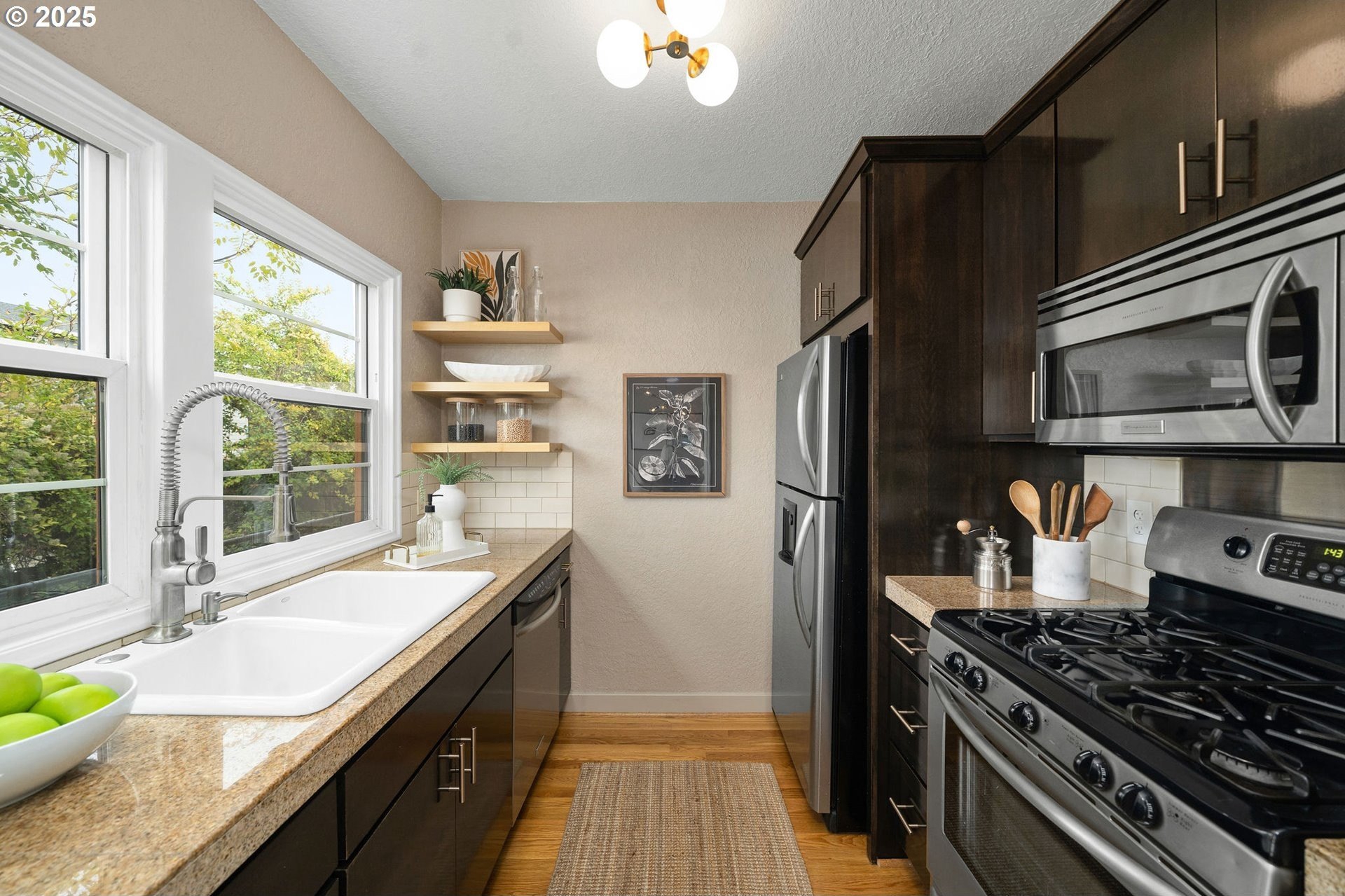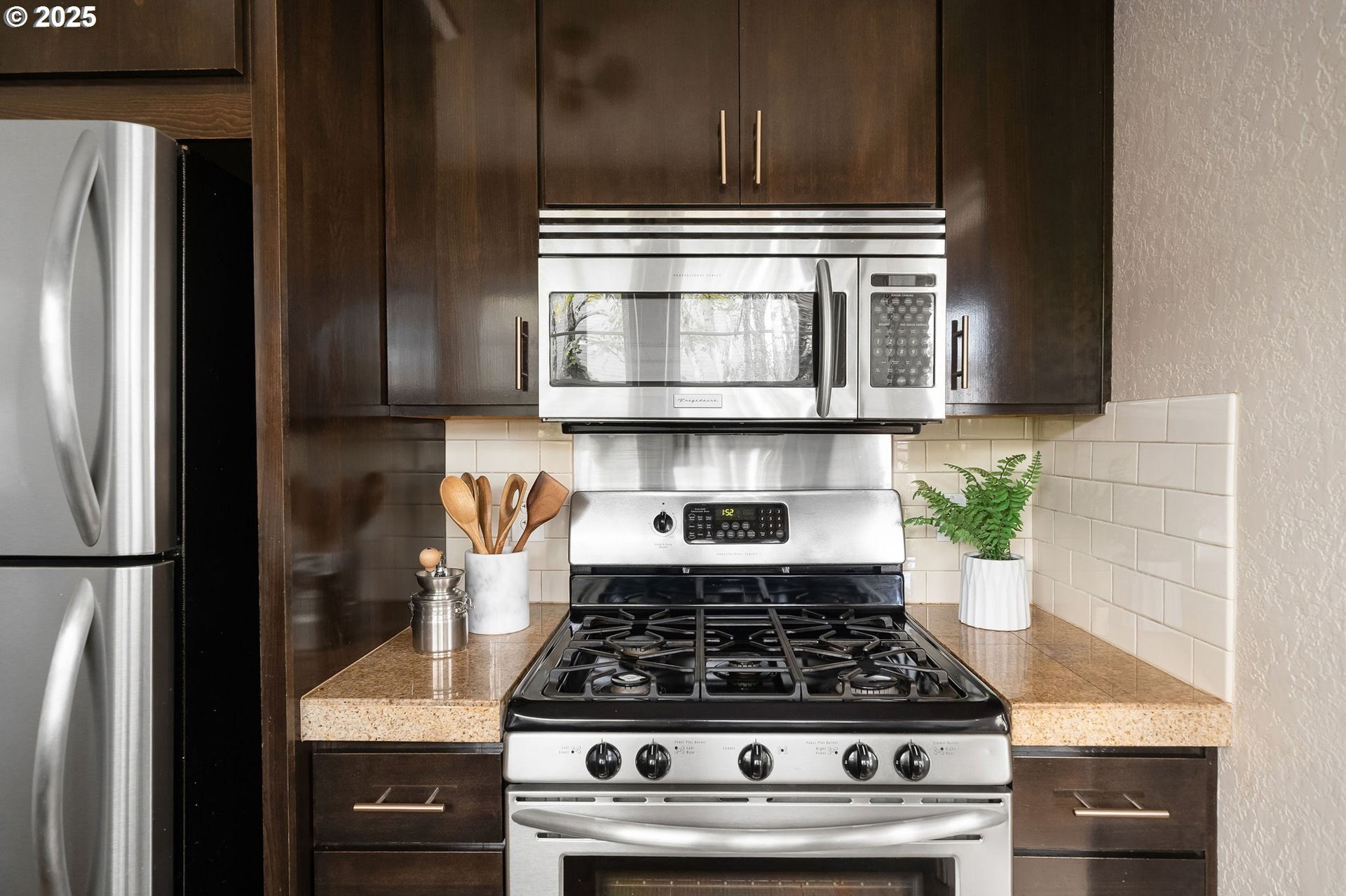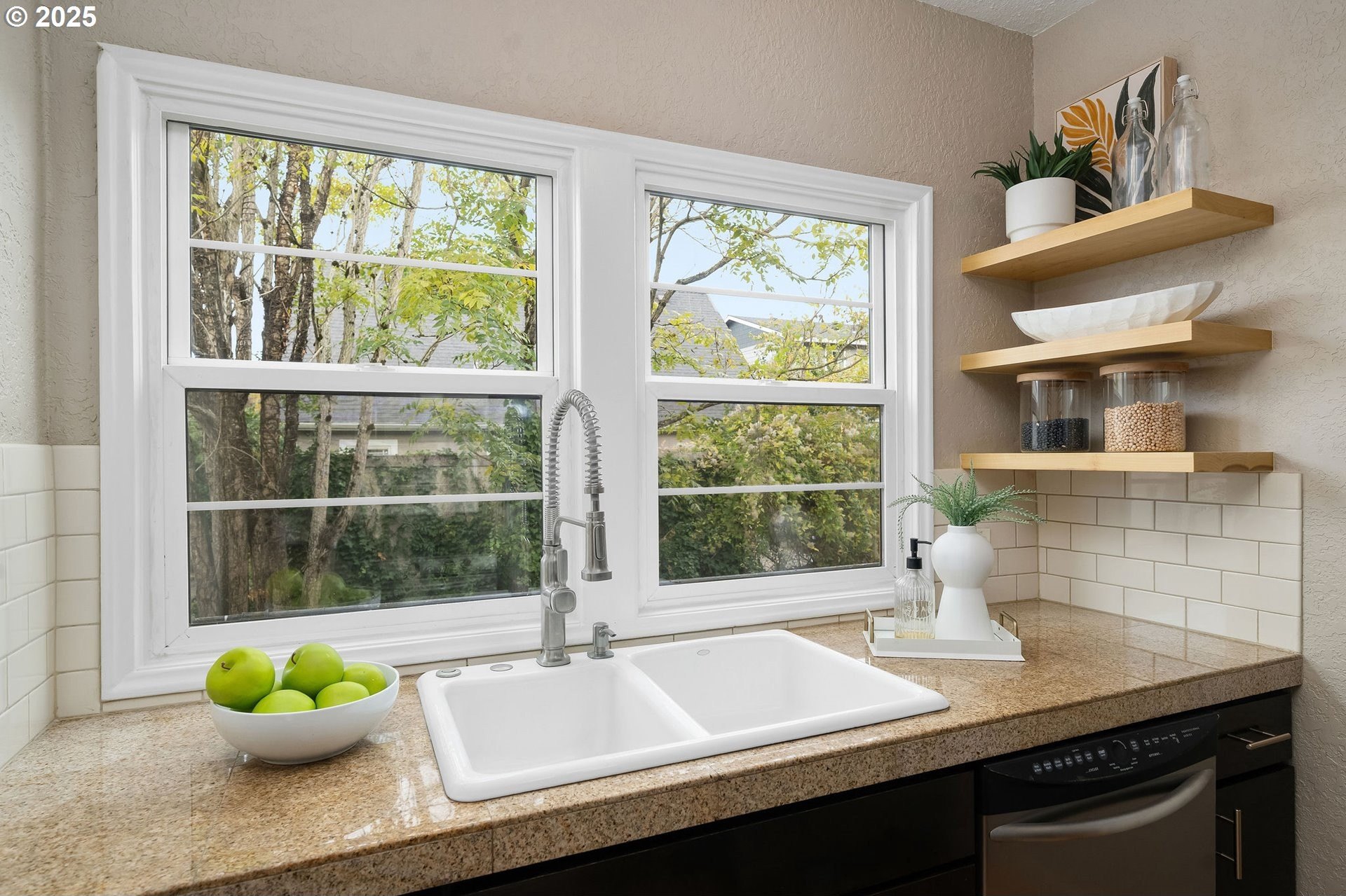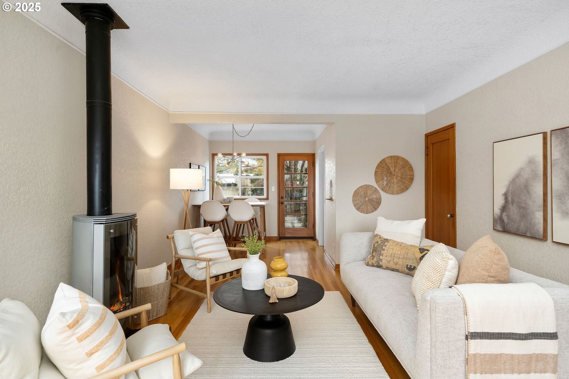 Step into timeless style and effortless living with this meticulously maintained mid-century condo, perfectly situated in one of Portland’s most vibrant inner southeast neighborhoods. Bursting with vintage character and Spanish-inspired architecture, this home offers sun-drenched living spaces, soaring ceilings, and the kind of warmth and charm that never goes out of style. The open-concept floor plan creates an easy flow between living, dining, and kitchen areas, ideal for modern lifestyles. Distinct front and rear entrances provide a sense of privacy and autonomy rarely found in condominium living, while offering convenient access to your deeded garage, personal storage unit, a serene community courtyard, and shared entertainment deck. Evenings are irresistibly cozy by the high-efficiency, Euro-style gas fireplace with instant comfort and control. Generously proportioned bedrooms, custom built-ins, and an in-unit Asko washer and dryer further elevate everyday living. This condo provides unbeatable access to popular restaurants, shops, cafés, grocery stores, bikeways and public transportation. Everything you could possibly need for comfortable, connected urban living. [Home Energy Score = 6. HES Report at https://rpt.greenbuildingregistry.com/hes/OR10182765]
