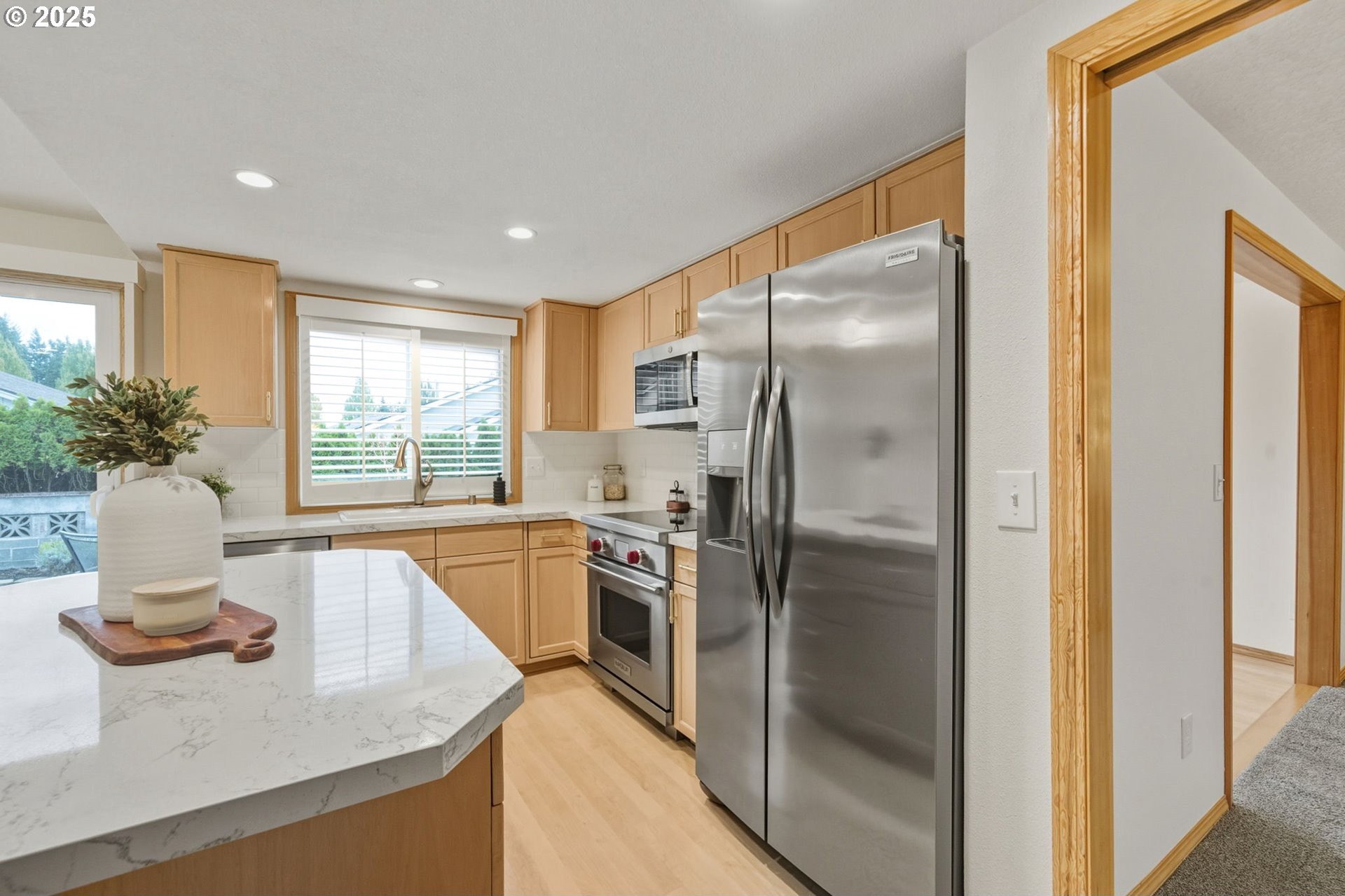 Welcome to effortless living in this beautifully updated home set within the premier 55+ Fairway Village golf course community . Every detail has been thoughtfully upgraded for both comfort and style. Step inside to discover an inviting, light-filled layout featuring an elegant kitchen remodeled in 2021 with sleek stone countertops, a Bosch dishwasher, and a top-of-the-line Wolfe induction range—perfect for everyday meals or entertaining friends after a round of golf.The home’s open design flows seamlessly into the living and dining areas, highlighted by plantation shutters, modern finishes, and Milgard insulated windows installed in 2021 for year-round efficiency. Both bathrooms were completely remodeled in 2021, offering fresh, spa-like spaces.Enjoy peace of mind with newer systems and thoughtful updates throughout, including a 2022 furnace and A/C, a new high-end entry and storm door, and a recently landscaped backyard with a beautiful patio for relaxing evenings outdoors. From the freshly painted interior and exterior with a newer roof, to the newer water heater and garage door, this home blends classic comfort with worry-free modern living—all in a sought-after golf course setting designed for easy, active lifestyles.