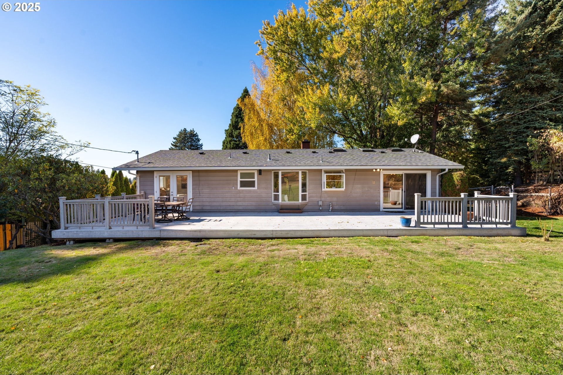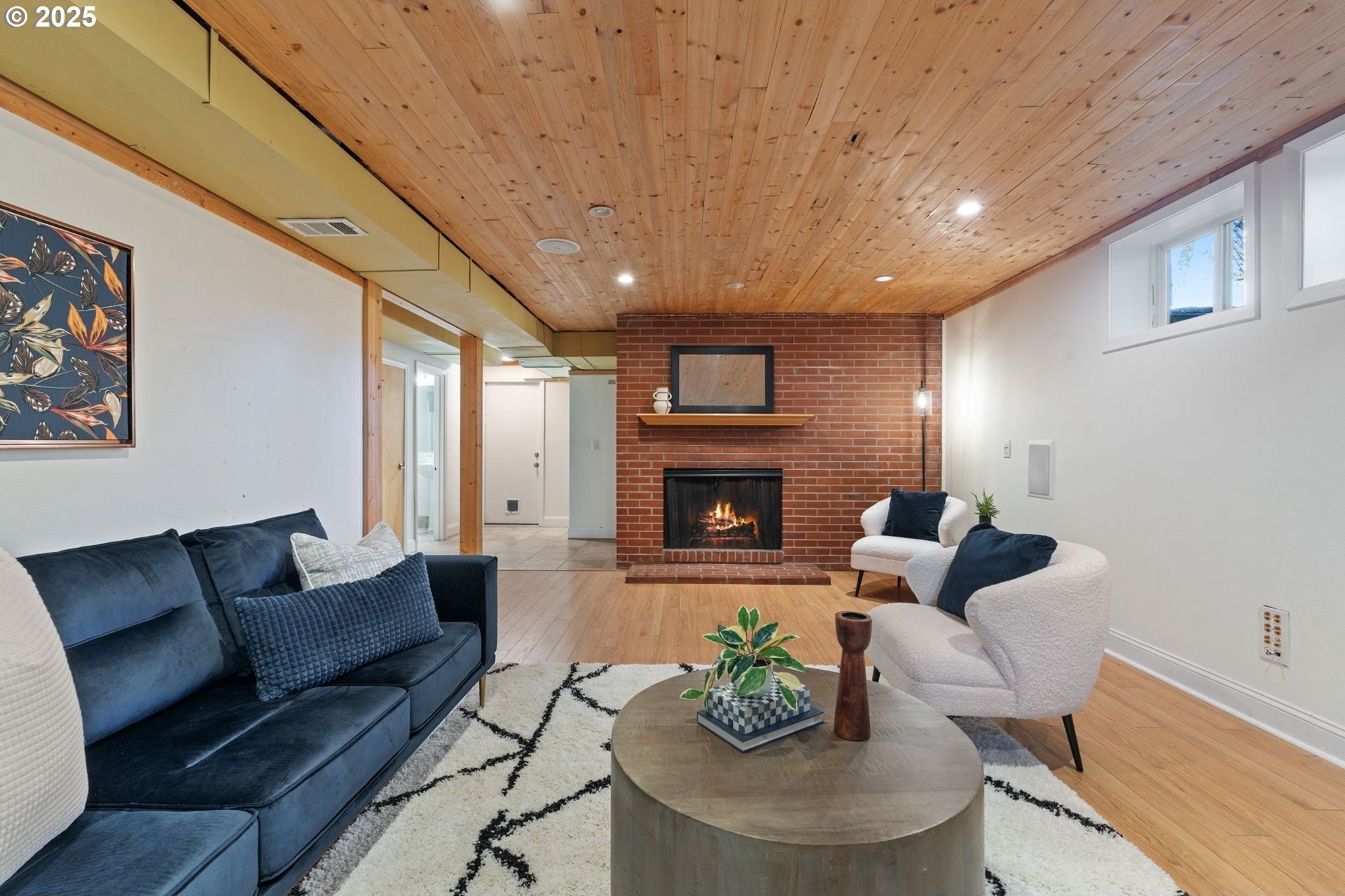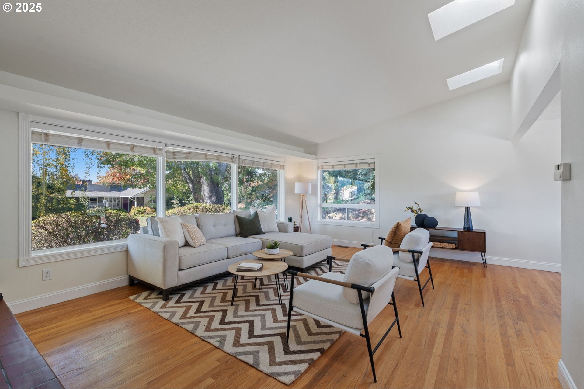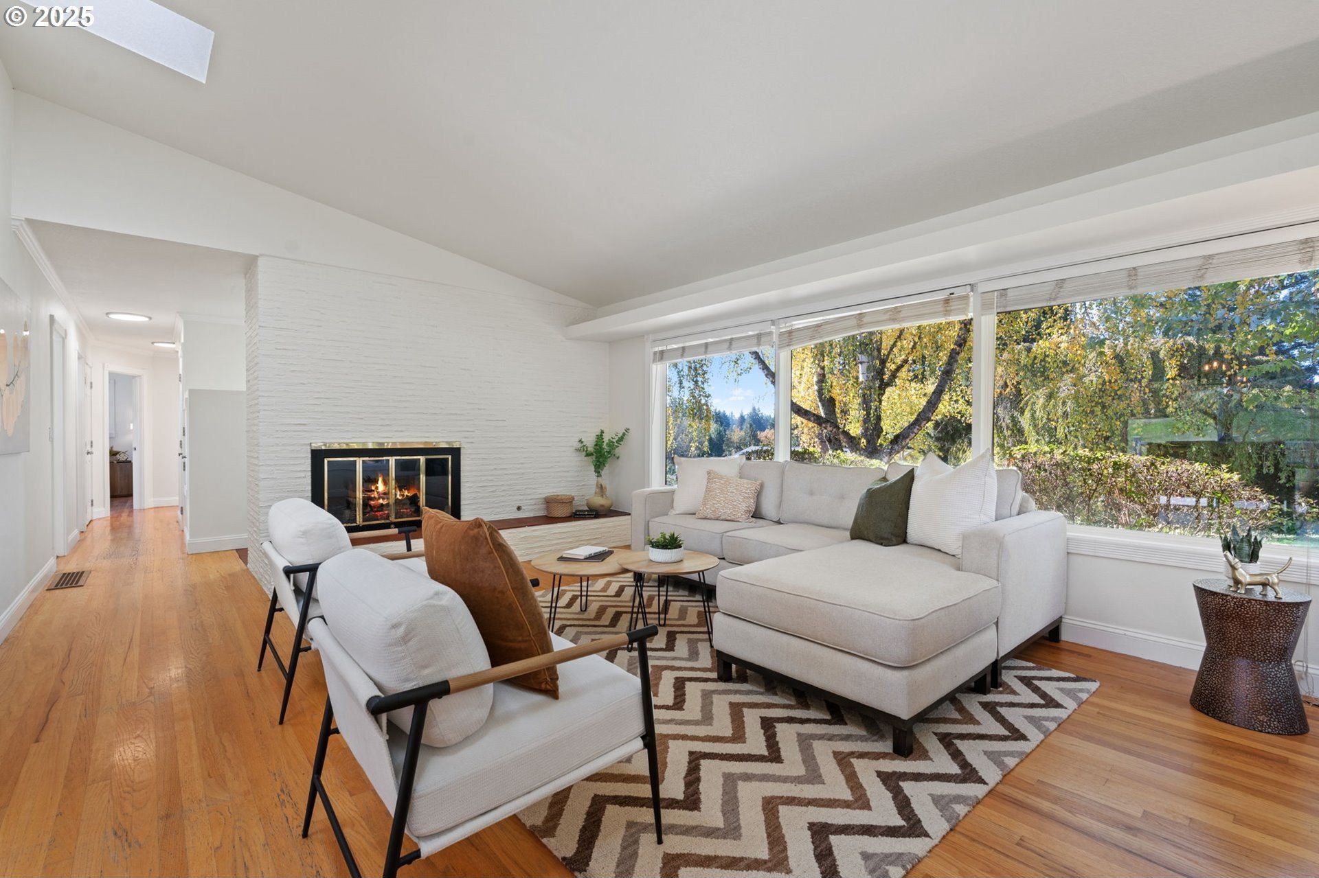 Perched up off the street at the edge of Raleigh Hills in the well kept "secret" pocket neighborhood of Hemstreet Heights, this 50's rancher is waiting for you. Step into that light and airy feeling that vaulted ceilings, XL windows, and skylights delivers so well. There's no shortage of classic 50s feeling and vibes, from the hardwoods throughout to the brick fireplaces but the good bones don't end there...with an updated kitchen, multiple exits to the expansive deck and backyard, and great layout, this home will serve you well for decades to come. Downstairs you'll find another fireplace and media/bonus room that's perfect for spooky season movie nights! The hits just keep coming in the form of the large fido-friendly backyard just waiting for your green thumb. Calm and tree-lined streets of the neighborhood and easy access to parks aplenty are just begging for afternoon strolls and rolls through the wide streets. All that's missing is you!