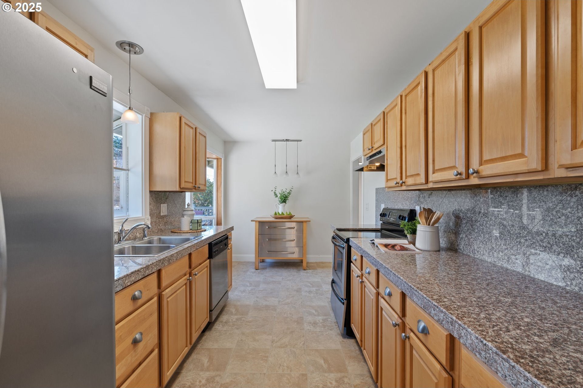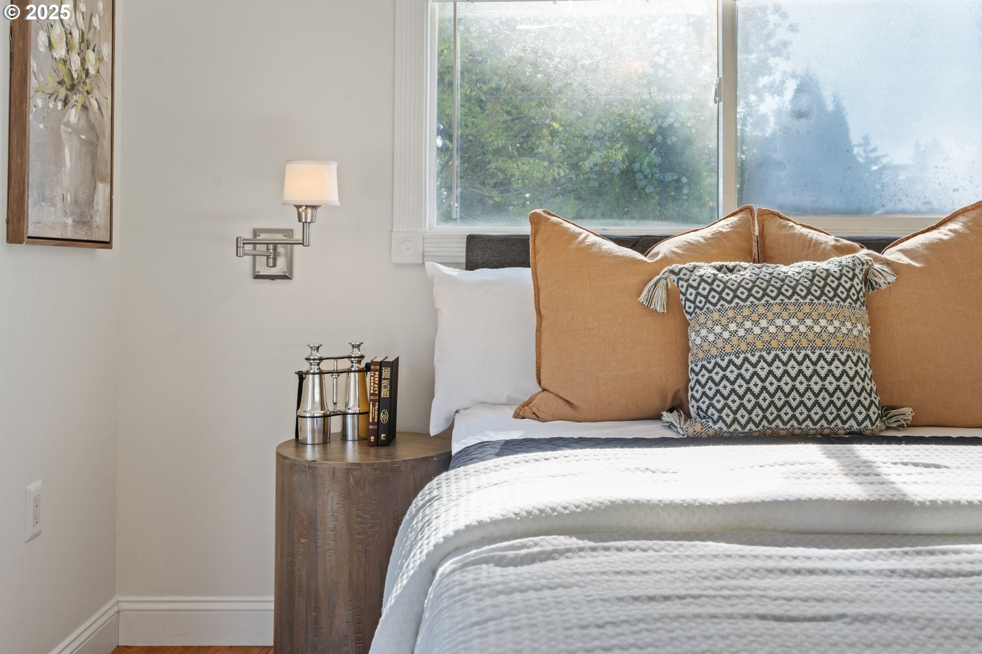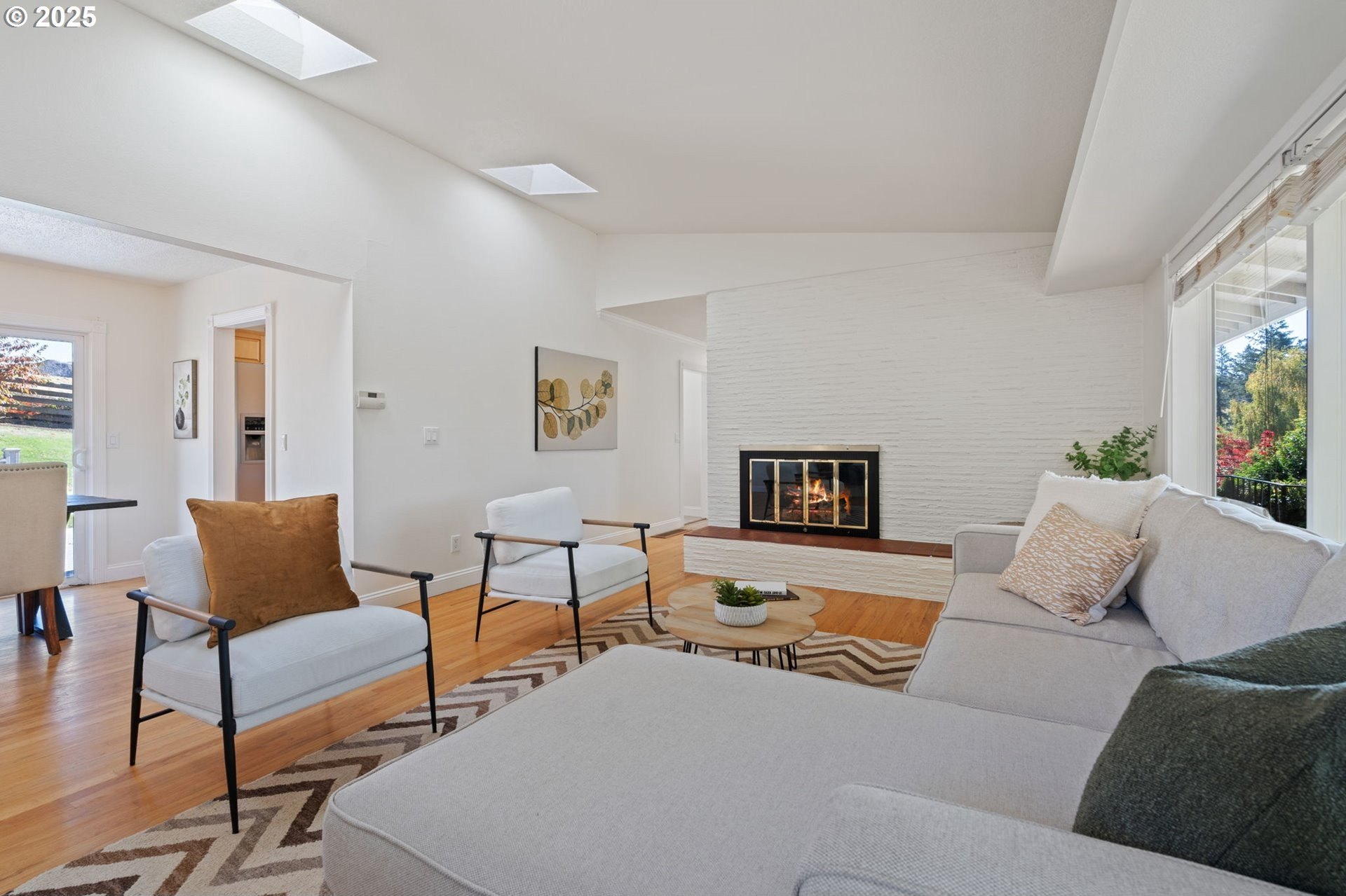 Perched up off the street at the edge of Raleigh Hills in the well kept "secret" pocket neighborhood of Hemstreet Heights, this 50's rancher is waiting for you. Step into that light and airy feeling that vaulted ceilings, XL windows, and skylights delivers so well. There's no shortage of classic 50s feeling and vibes, from the hardwoods throughout to the brick fireplaces but the good bones don't end there...with an updated kitchen, multiple exits to the expansive deck and backyard, and great layout, this home will serve you well for decades to come. Downstairs you'll find another fireplace and media/bonus room that's perfect for spooky season movie nights! The hits just keep coming in the form of the large fido-friendly backyard just waiting for your green thumb. Calm and tree-lined streets of the neighborhood and easy access to parks aplenty are just begging for afternoon strolls and rolls through the wide streets. All that's missing is you!