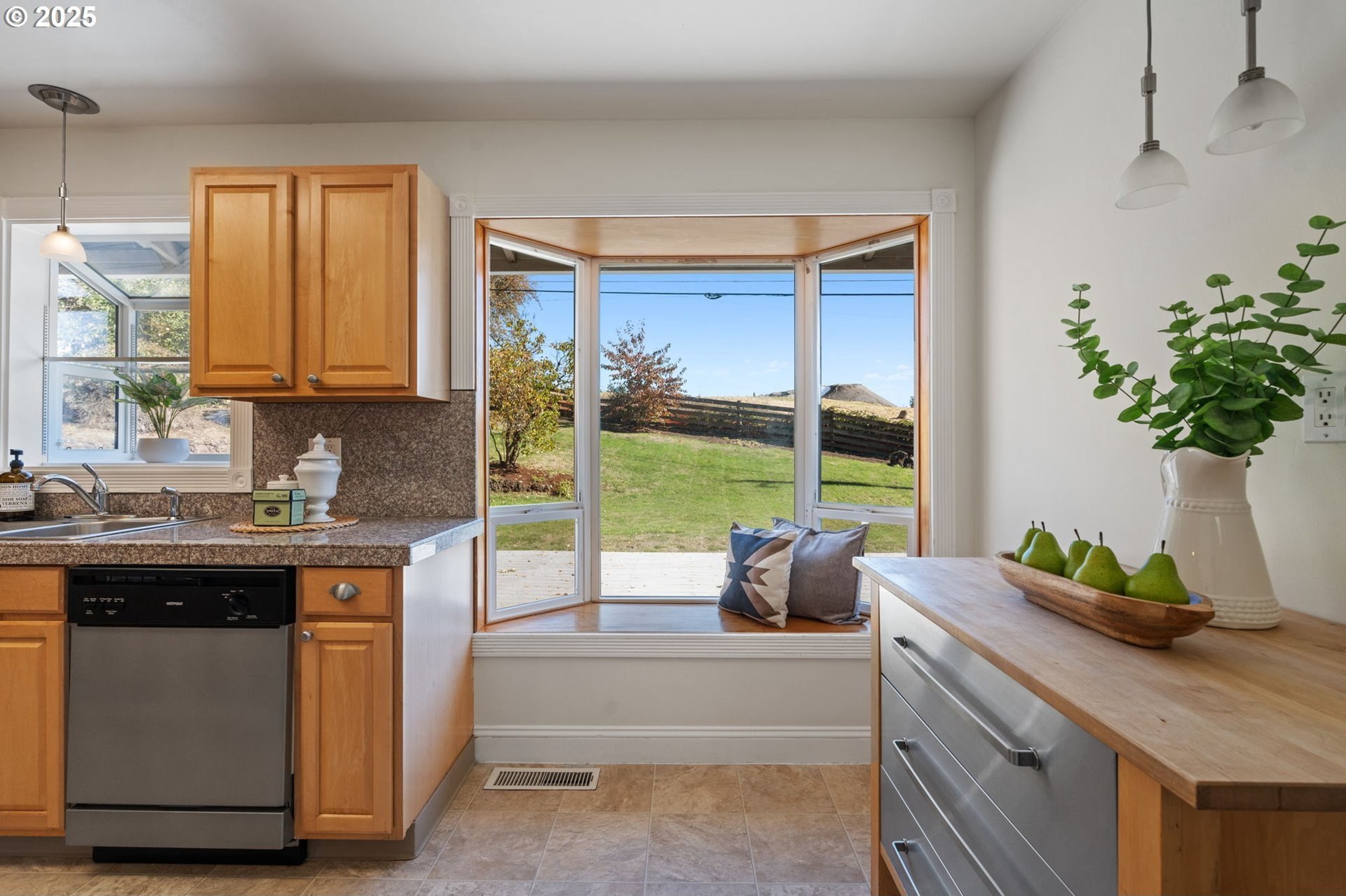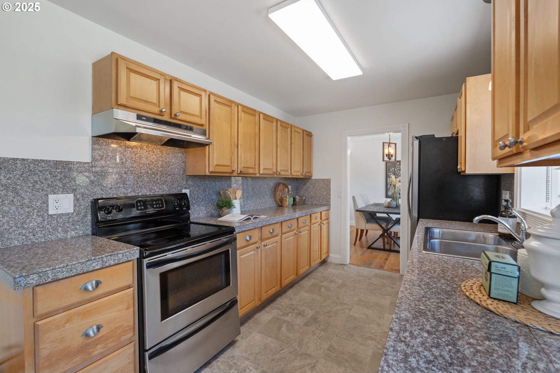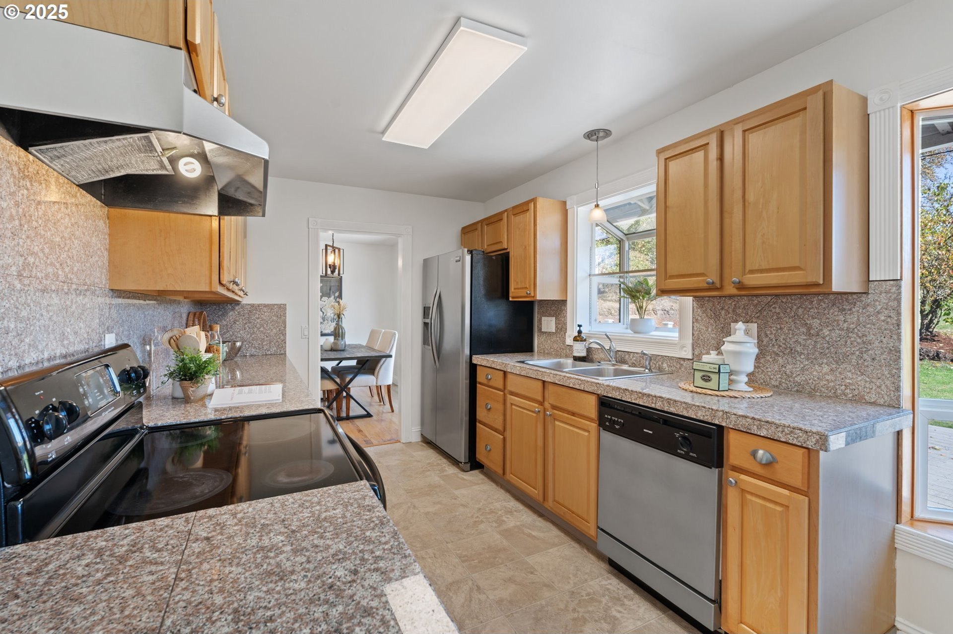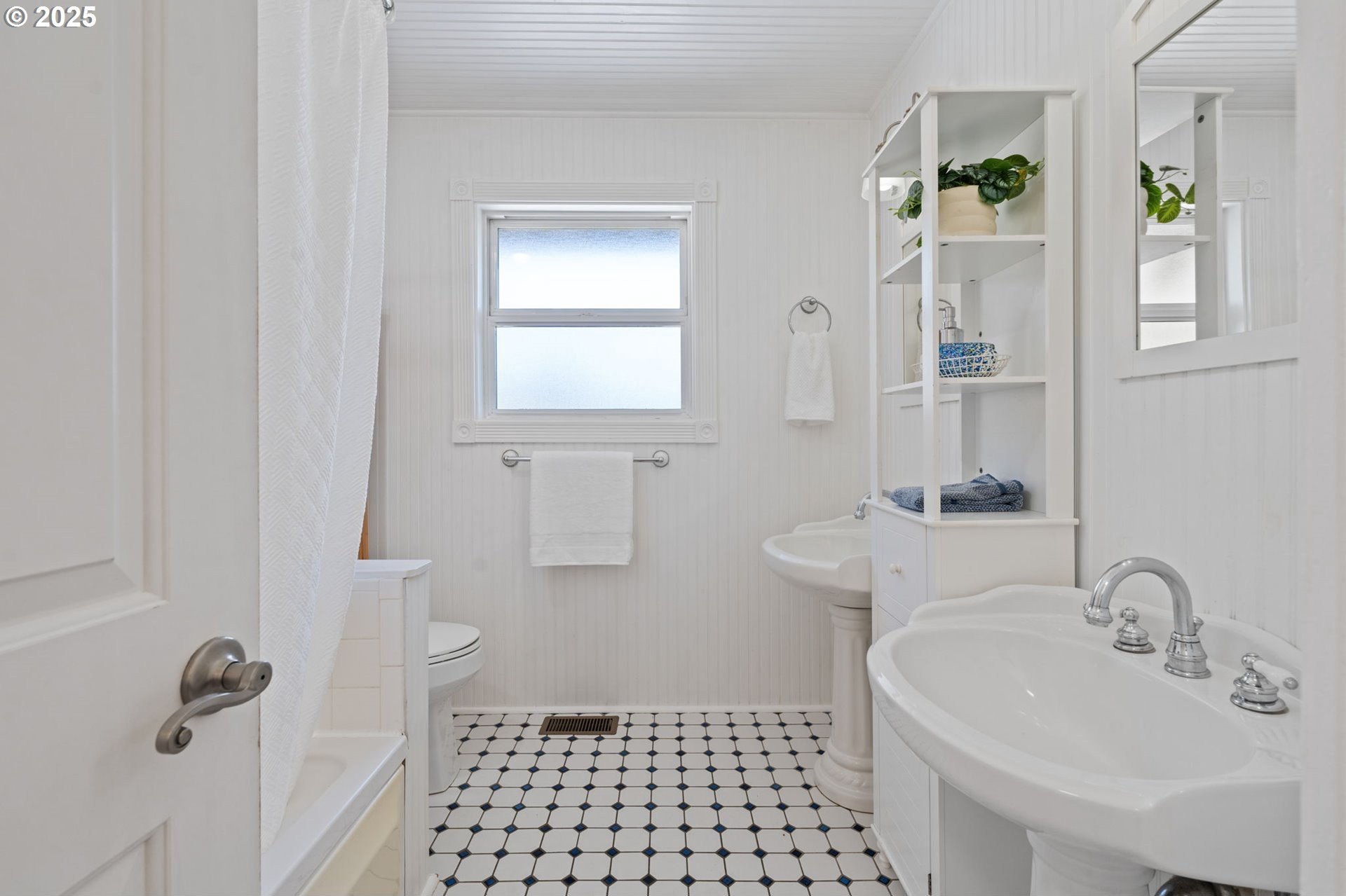 Perched up off the street at the edge of Raleigh Hills in the well kept "secret" pocket neighborhood of Hemstreet Heights, this 50's rancher is waiting for you. Step into that light and airy feeling that vaulted ceilings, XL windows, and skylights delivers so well. There's no shortage of classic 50s feeling and vibes, from the hardwoods throughout to the brick fireplaces but the good bones don't end there...with an updated kitchen, multiple exits to the expansive deck and backyard, and great layout, this home will serve you well for decades to come. Downstairs you'll find another fireplace and media/bonus room that's perfect for spooky season movie nights! The hits just keep coming in the form of the large fido-friendly backyard just waiting for your green thumb. Calm and tree-lined streets of the neighborhood and easy access to parks aplenty are just begging for afternoon strolls and rolls through the wide streets. All that's missing is you!