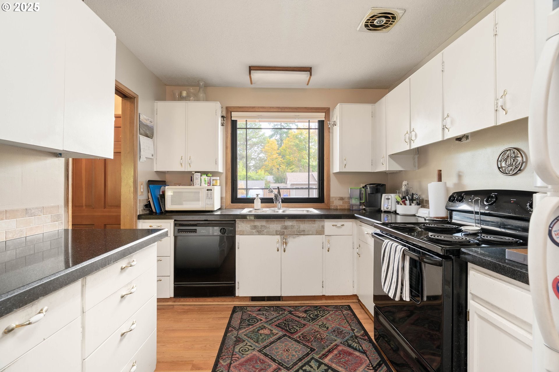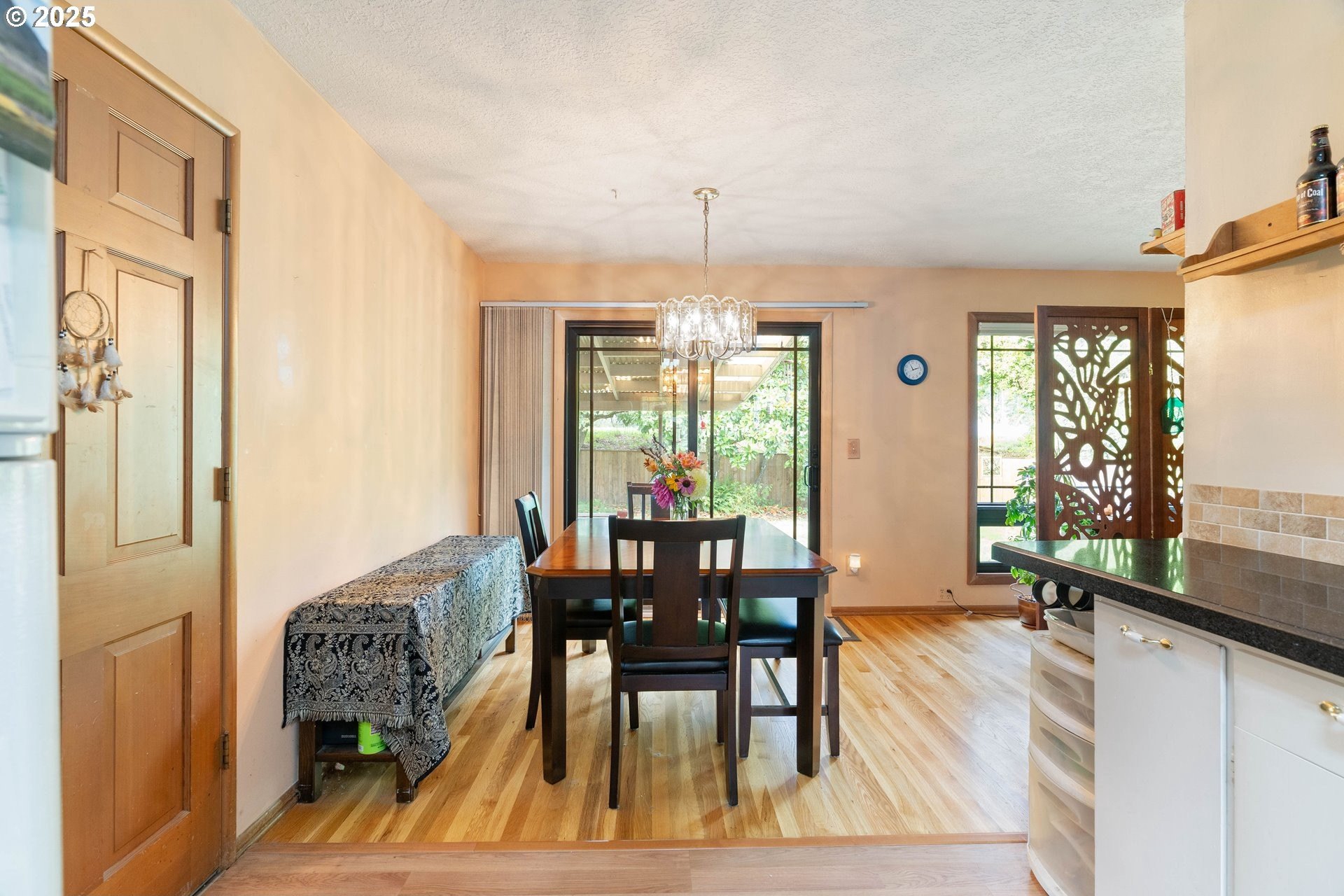 This home is situated in a quiet, established Portland neighborhood. Step inside to find refinished hardwood floors that flow throughout light-filled living spaces. The kitchen features granite countertops and ample storage, combining timeless style with everyday functionality. Recent updates include premium Renewal by Andersen windows for improved comfort and energy efficiency, plus a newer presidential roof that adds both longevity and curb appeal. Outside, the spacious backyard is ideal for relaxing or entertaining — complete with a thriving apple tree that produces abundantly each year. A gate provides direct access to the public field behind the property, offering even more room to roam and play. Thoughtfully maintained and perfectly situated, this home offers the rare blend of modern upgrades, peaceful surroundings, and true Portland charm. [Home Energy Score = 5. HES Report at https://rpt.greenbuildingregistry.com/hes/OR10242528]
