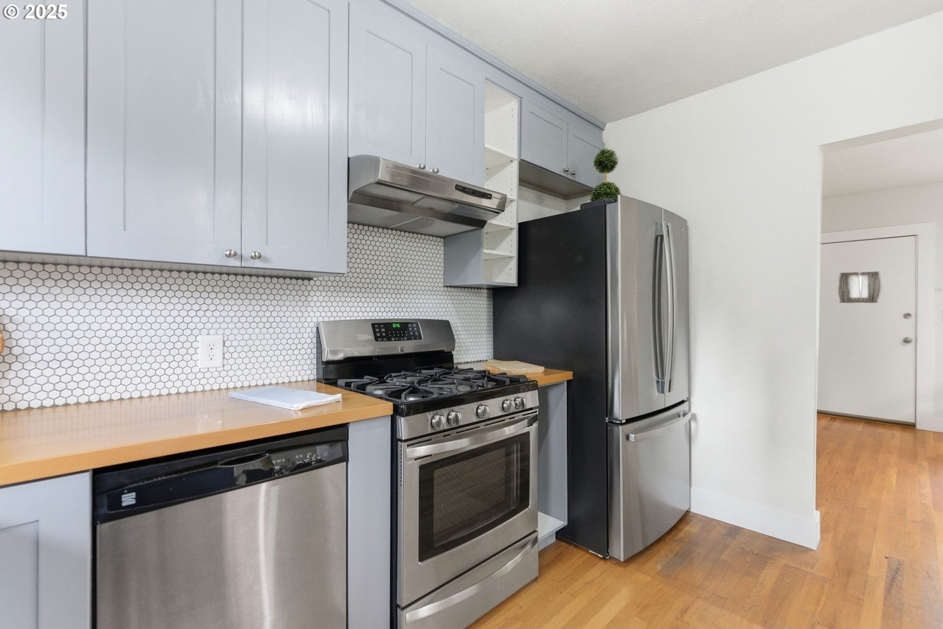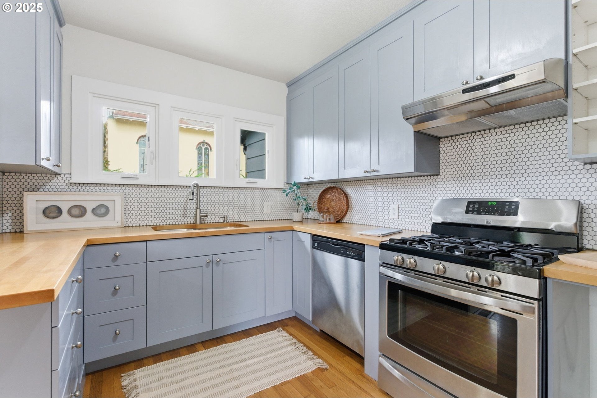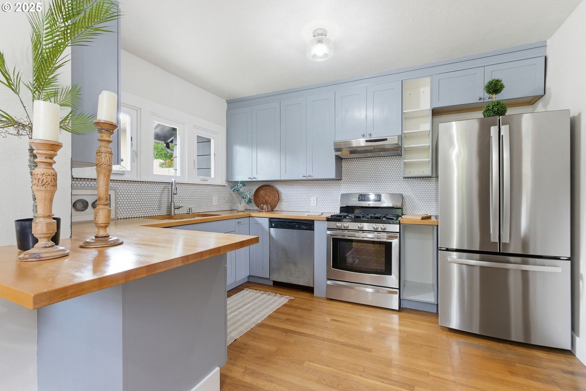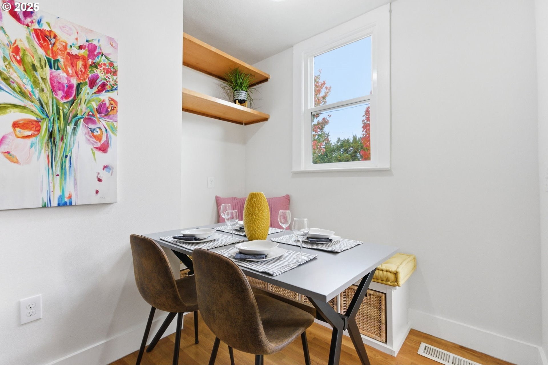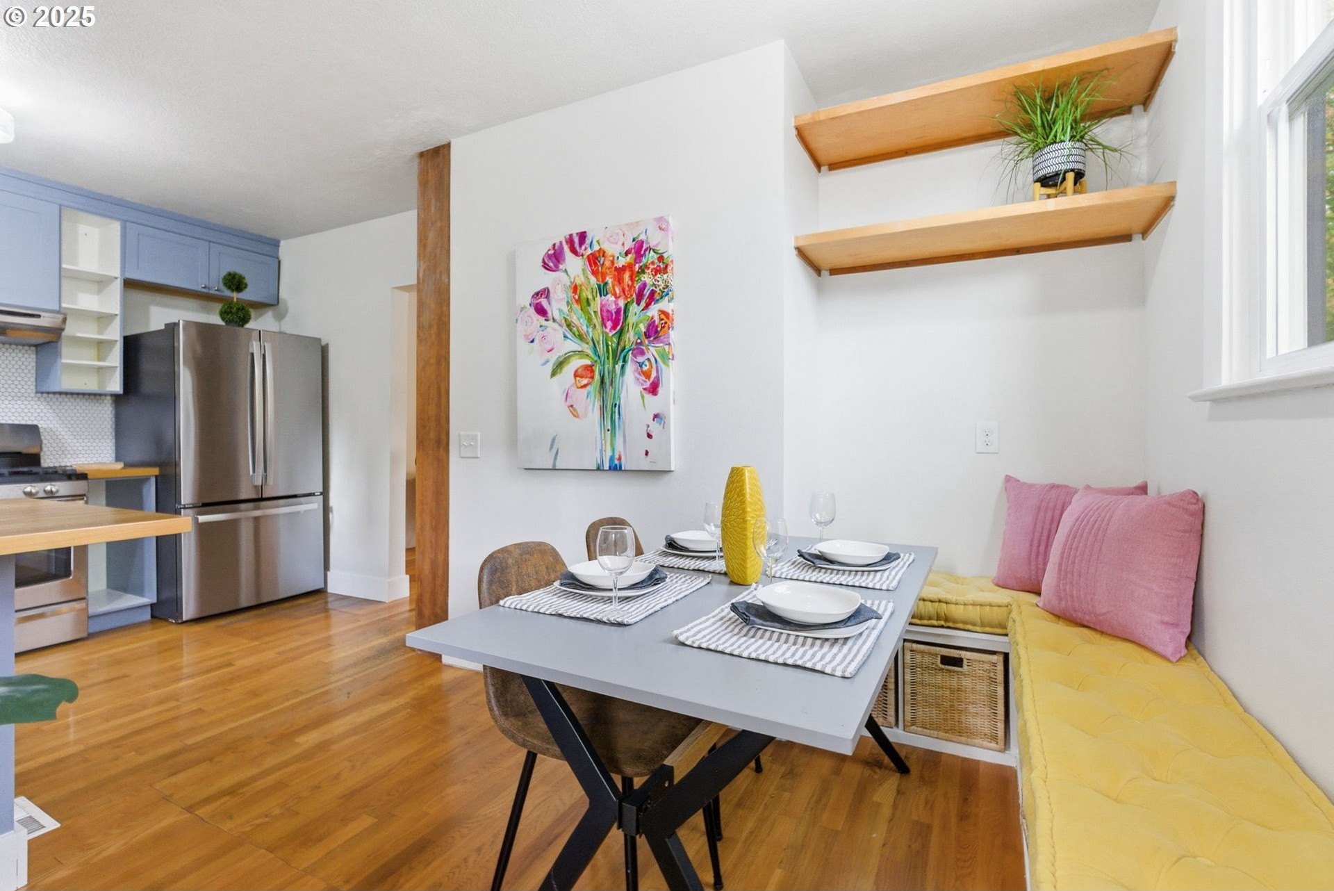 OPEN HOUSE - Saturday 10/25 - 12noon-2pm. If you LOVE bungalows, you have GOT TO SEE this one. It's been restored to the era by the owners over the last 10 years & it's a 10! Original hardwood floors, renovated stylish kitchen complete with gas range and stainless appliances and cute eating nook. Upgraded bathroom with period appropriate fixtures and tile. Gas fireplace in large living room. 3rd bedroom in basement (non-conforming due to no egress window) would be a great office or guest quarters. Half bath in basement complete laundry/small dog washing sink. New roof and gutters (2019), all new windows (2021), AC installed (2023) and upgraded electrical panel. There is AMPLE built-in storage in the basement - PLUS an oversized detached garage. AND...all within just a few blocks of bustling downtown St Johns. This is a place you'll love to call home! [Home Energy Score = 3. HES Report at https://rpt.greenbuildingregistry.com/hes/OR10242533]
