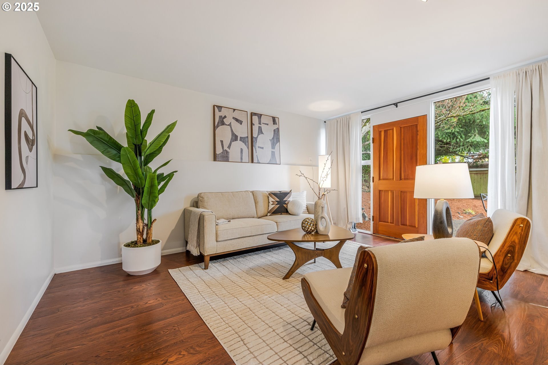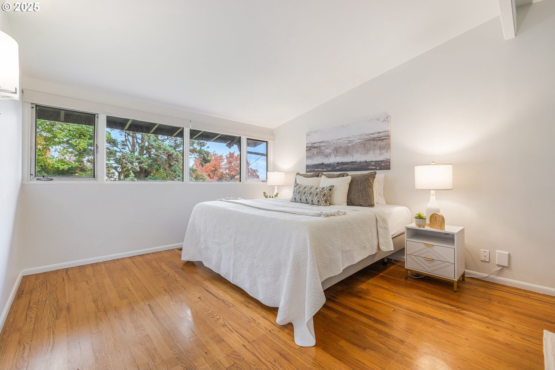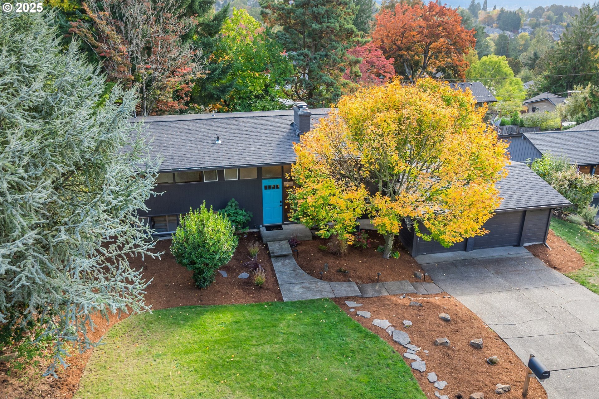 Stunning mid-century home in the beautiful Westerlook Heights neighborhood. Built in 1956 this Southwest Portland home masterfully blends timeless style with modern upgrades. Nestled on a generous lot in one of the area’s most sought-after neighborhoods. Stunning territorial views from the second floor and exceptional privacy on the main, make this home ideal for both lively gatherings or quiet relaxation. Step inside to be greeted by a warm, inviting atmosphere accentuated by the solid wood open staircase and vaulted foyer, cedar accent walls and wood burning fireplaces in both the family room and primary bedroom seating area. Vaulted ceilings and expansive picture windows fill the home with abundant natural light, showcasing the classic mid-century architectural details throughout. The kitchen retains its original period metal cabinets, thoughtfully paired with custom wood shelving for a unique and stylish touch. Elegant quartz countertops elevate the space, while the bathrooms have been tastefully updated to offer modern comfort that harmonizes with the home's authentic aesthetic. Recent improvements include a new roof, furnace, air conditioning, upgraded electrical panel, fresh interior and exterior paint, dishwasher, blinds, EV charging outlet, and professional landscaping. Tucked away in a peaceful, private setting, this home offers tranquility and scenic views while keeping you near every convenience. With its perfect blend of style and comfort, this standout property is truly a rare find. Don’t miss your chance to make this inviting retreat your home! [Home Energy Score = 1. HES Report at https://rpt.greenbuildingregistry.com/hes/OR10226459]