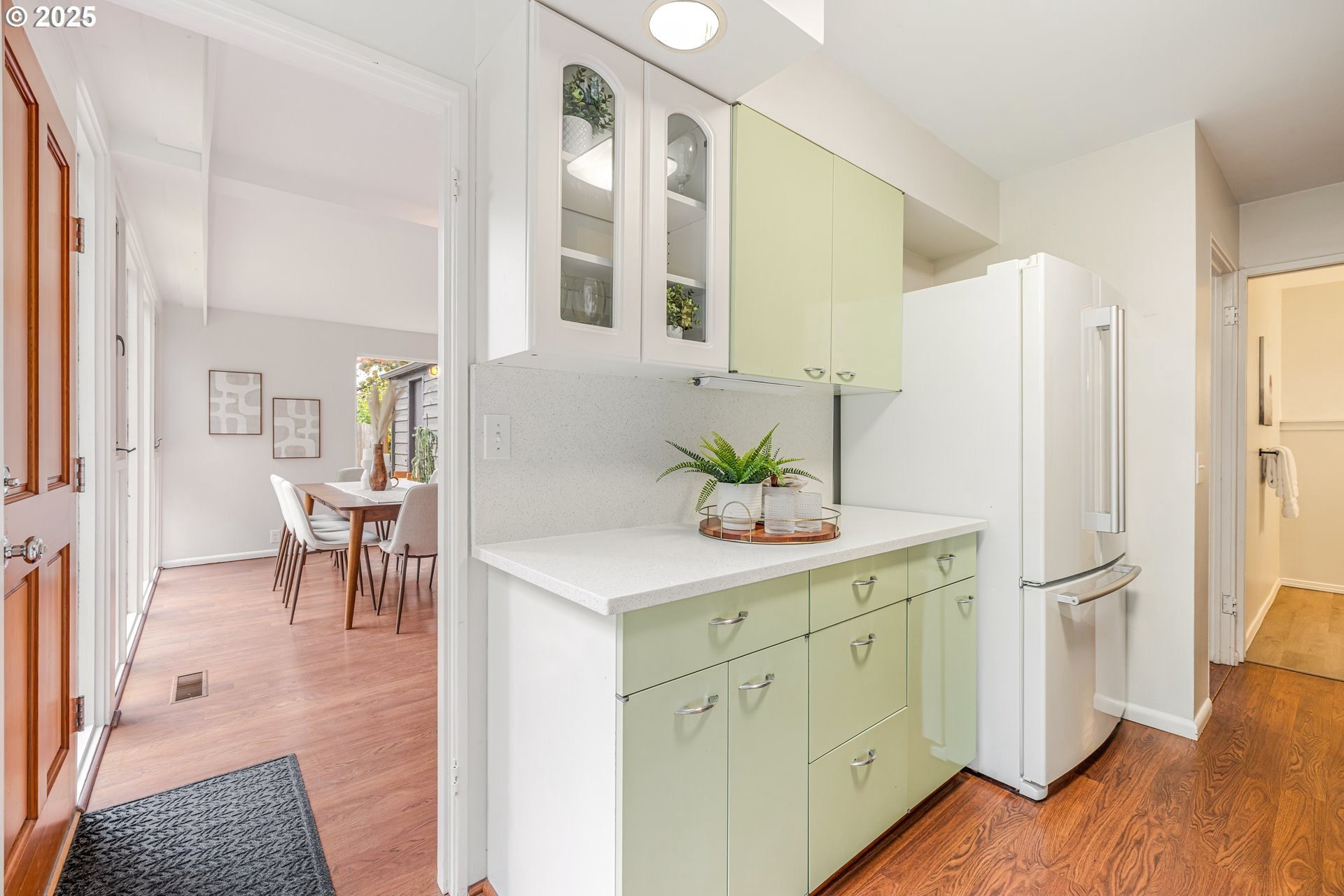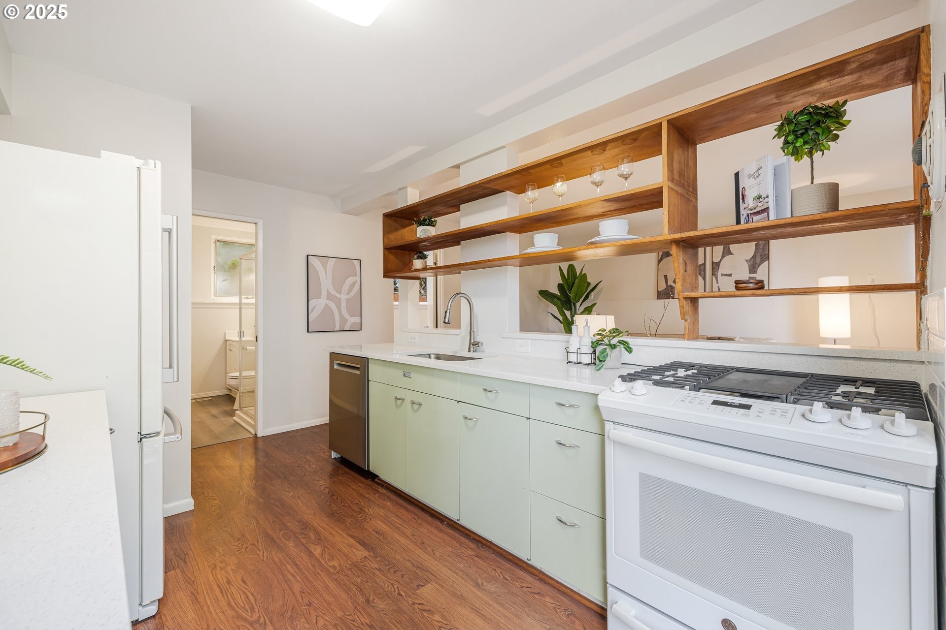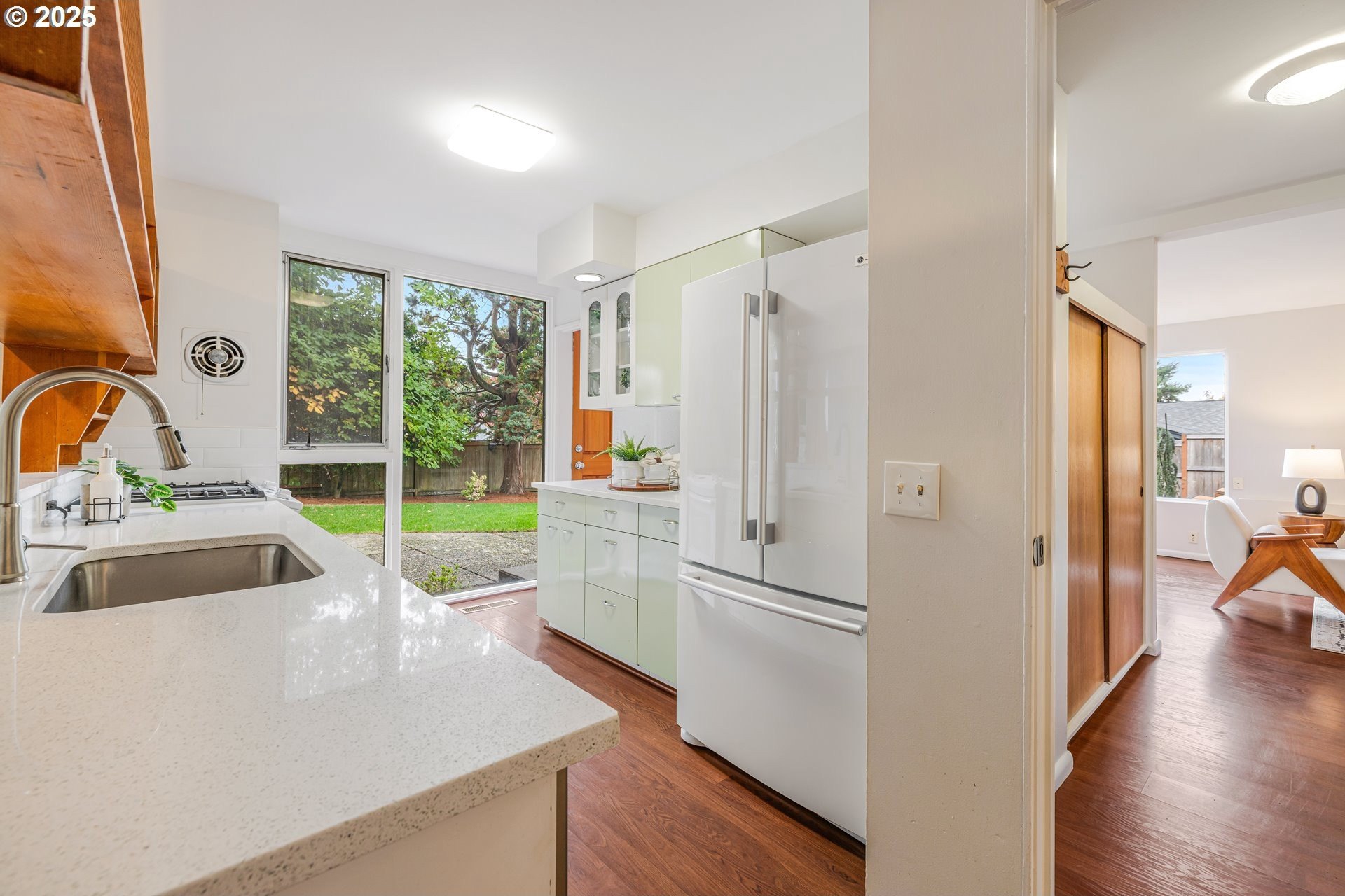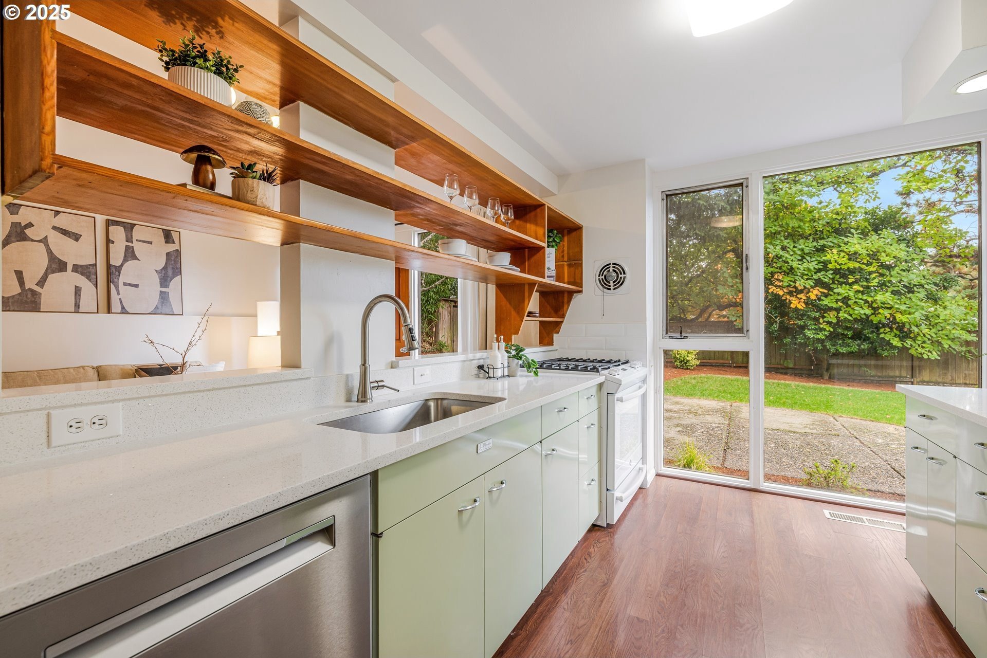 Stunning mid-century home in the beautiful Westerlook Heights neighborhood. Built in 1956 this Southwest Portland home masterfully blends timeless style with modern upgrades. Nestled on a generous lot in one of the area’s most sought-after neighborhoods. Stunning territorial views from the second floor and exceptional privacy on the main, make this home ideal for both lively gatherings or quiet relaxation. Step inside to be greeted by a warm, inviting atmosphere accentuated by the solid wood open staircase and vaulted foyer, cedar accent walls and wood burning fireplaces in both the family room and primary bedroom seating area. Vaulted ceilings and expansive picture windows fill the home with abundant natural light, showcasing the classic mid-century architectural details throughout. The kitchen retains its original period metal cabinets, thoughtfully paired with custom wood shelving for a unique and stylish touch. Elegant quartz countertops elevate the space, while the bathrooms have been tastefully updated to offer modern comfort that harmonizes with the home's authentic aesthetic. Recent improvements include a new roof, furnace, air conditioning, upgraded electrical panel, fresh interior and exterior paint, dishwasher, blinds, EV charging outlet, and professional landscaping. Tucked away in a peaceful, private setting, this home offers tranquility and scenic views while keeping you near every convenience. With its perfect blend of style and comfort, this standout property is truly a rare find. Don’t miss your chance to make this inviting retreat your home! [Home Energy Score = 1. HES Report at https://rpt.greenbuildingregistry.com/hes/OR10226459]